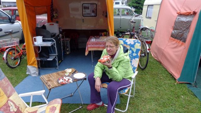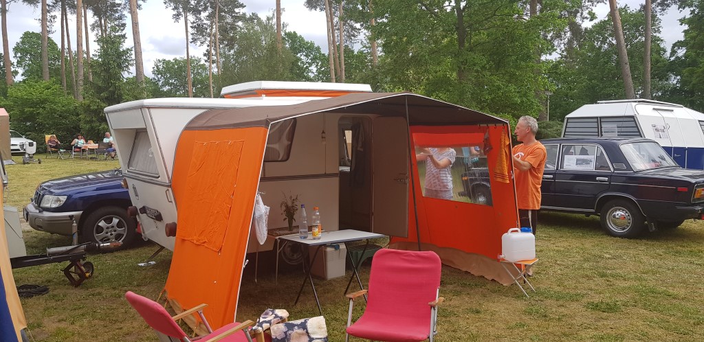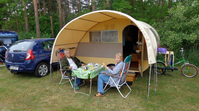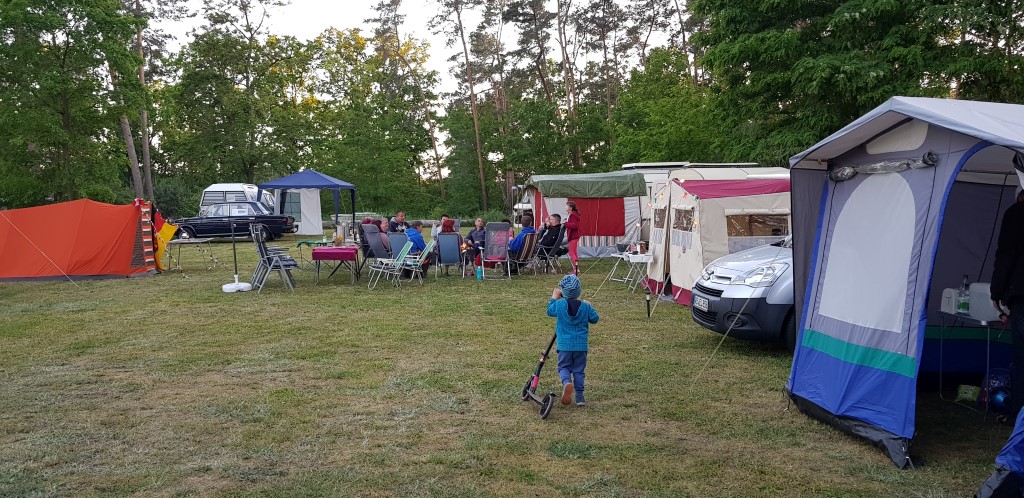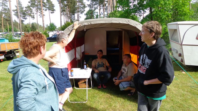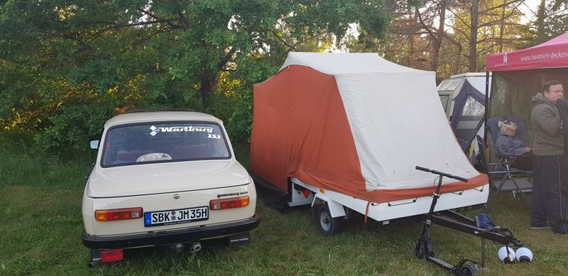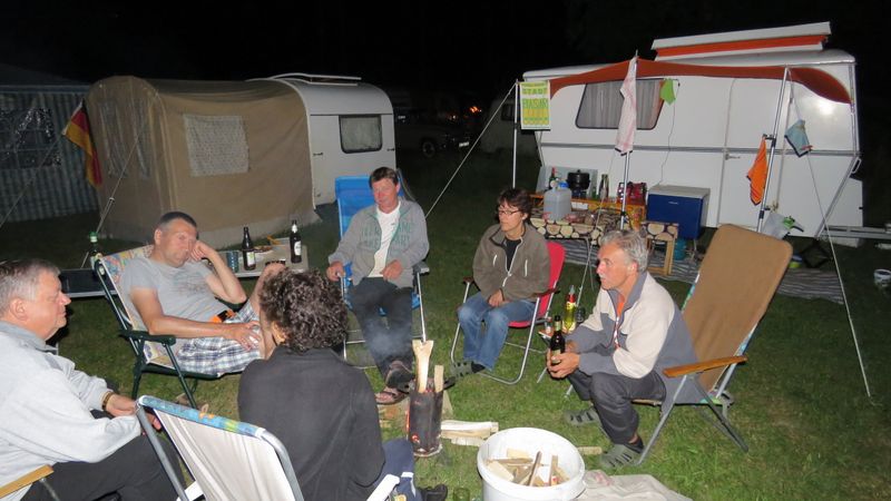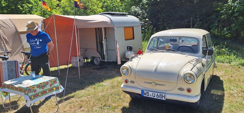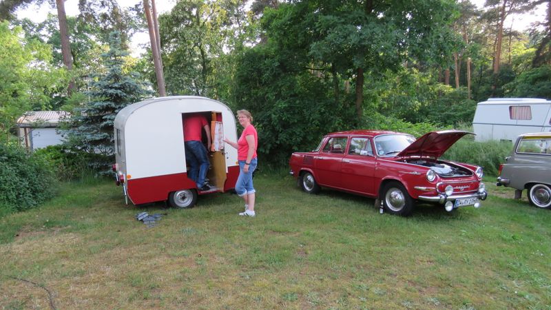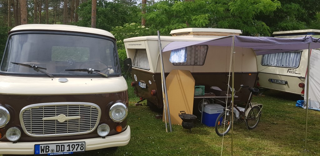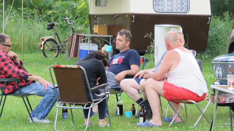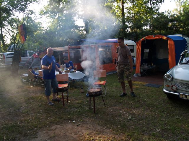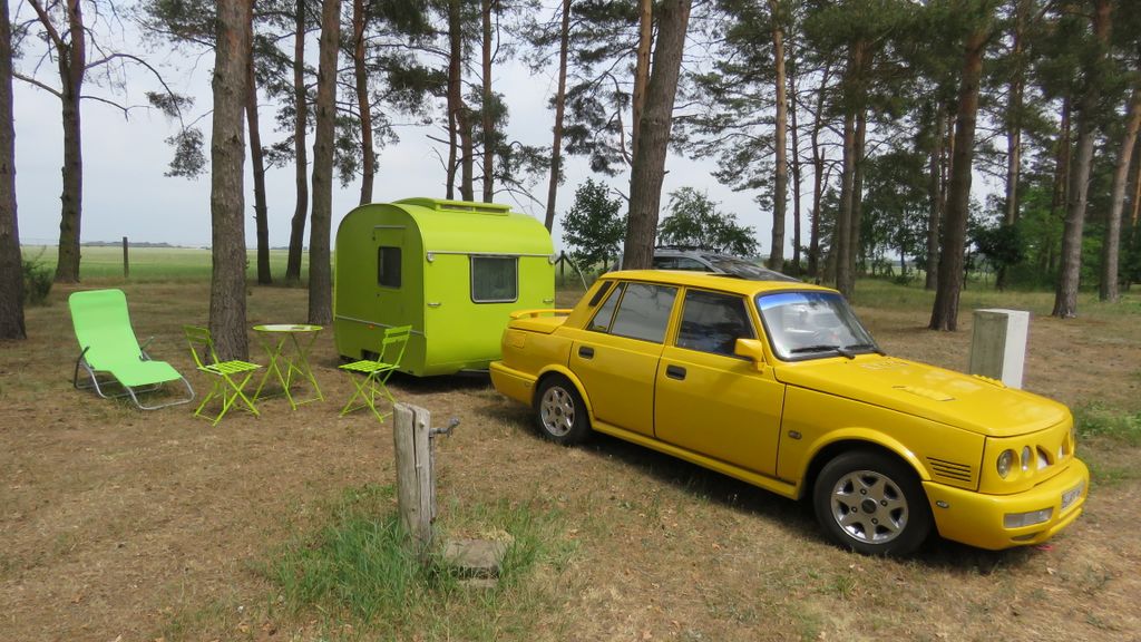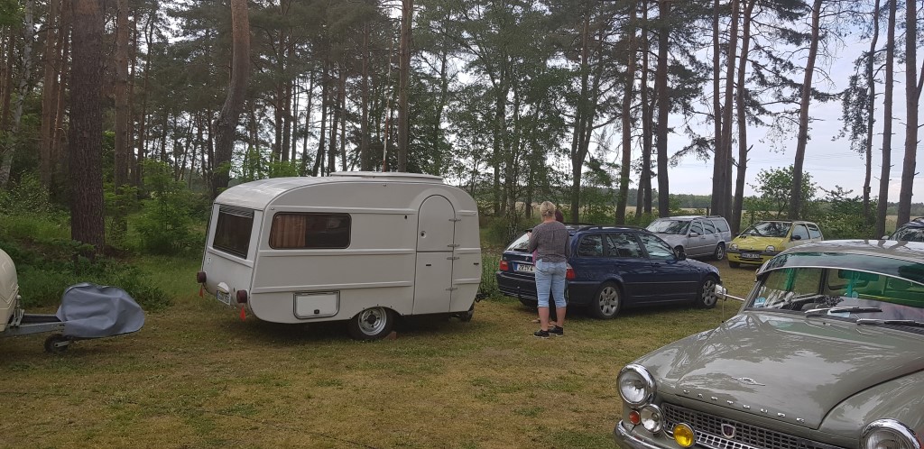 Beim gemeinsamen Frühtück haben wir das originellste Gespann prämiert. So konnte Micha mit dem Trabbi-Kübel und dem passenden Qek einen prima Liegestuhl, gesponsert von www.elbe-caravan.de, in Empfang nehmen