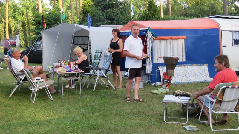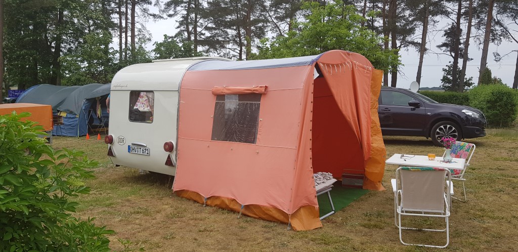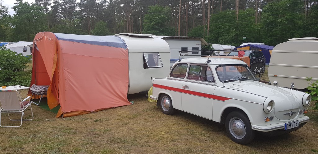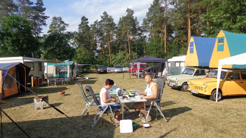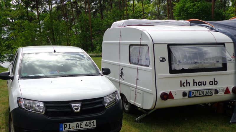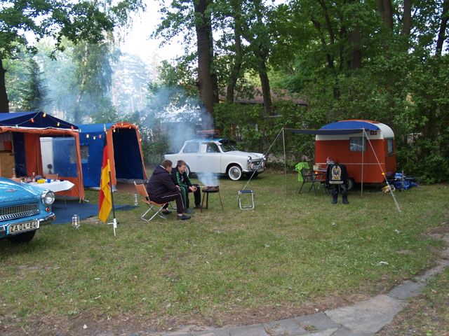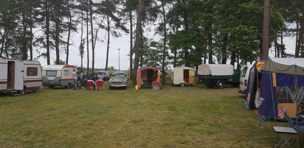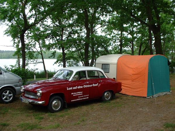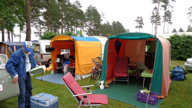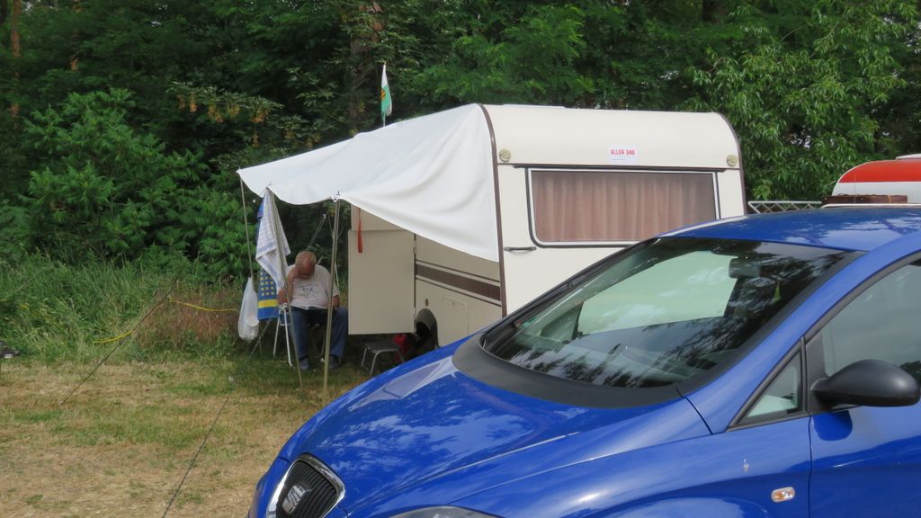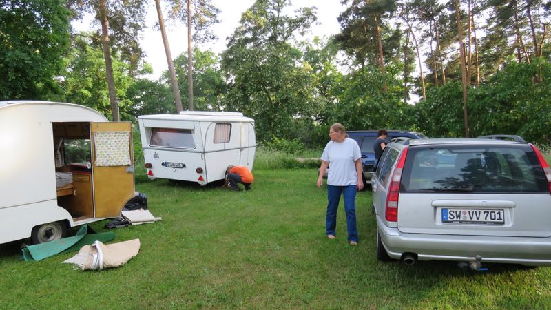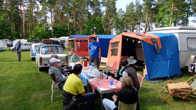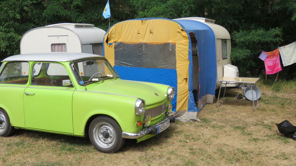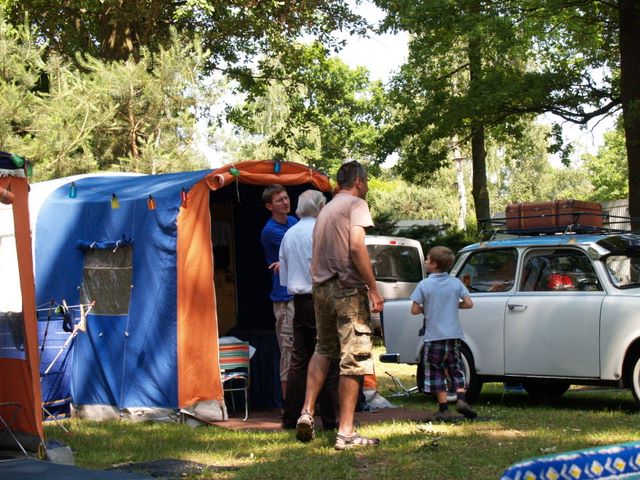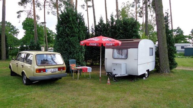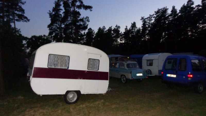 Beim gemeinsamen Frühtück haben wir das originellste Gespann prämiert. So konnte Micha mit dem Trabbi-Kübel und dem passenden Qek einen prima Liegestuhl, gesponsert von www.elbe-caravan.de, in Empfang nehmen