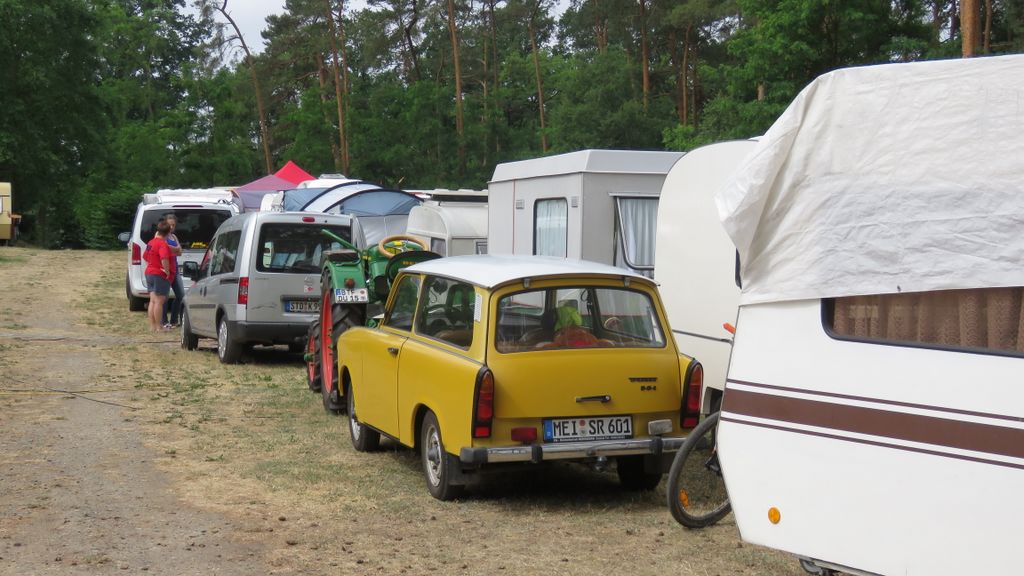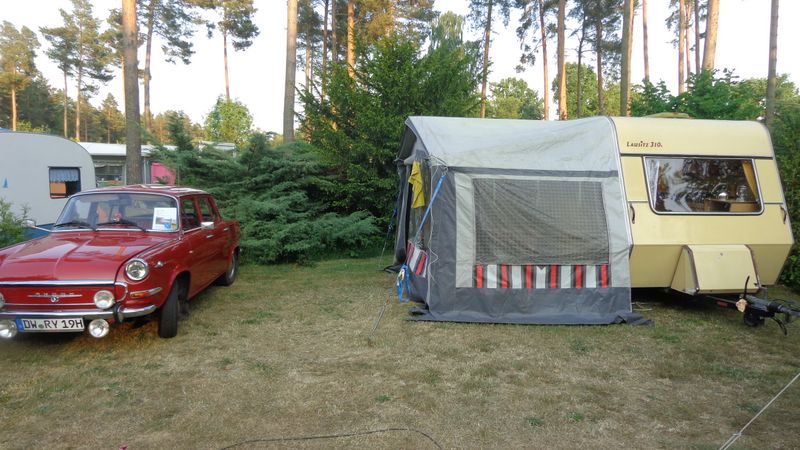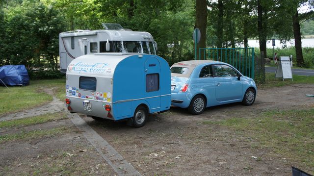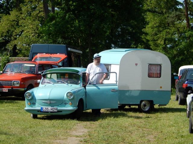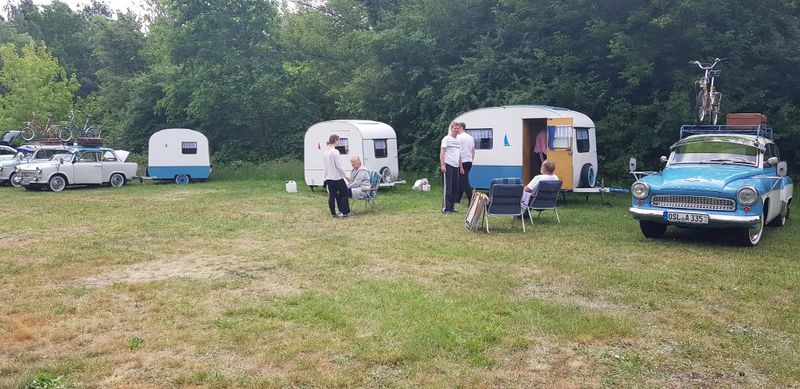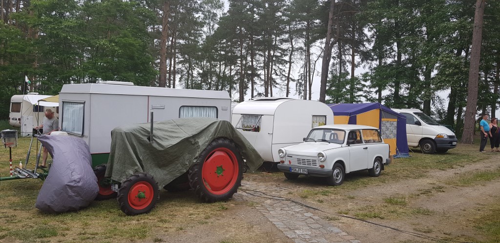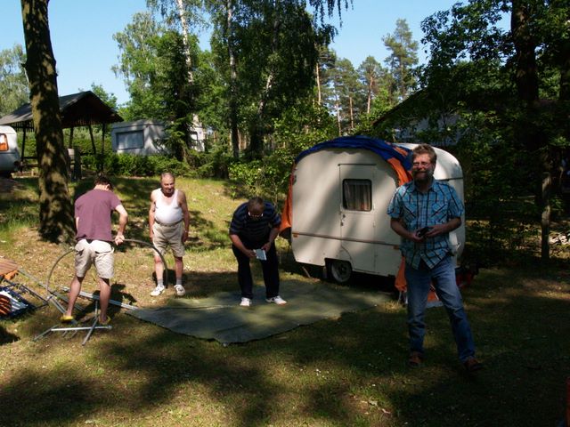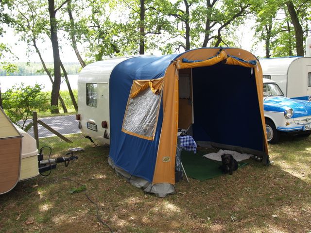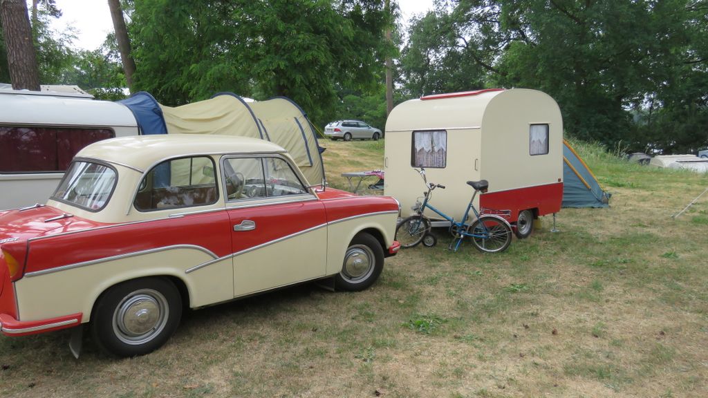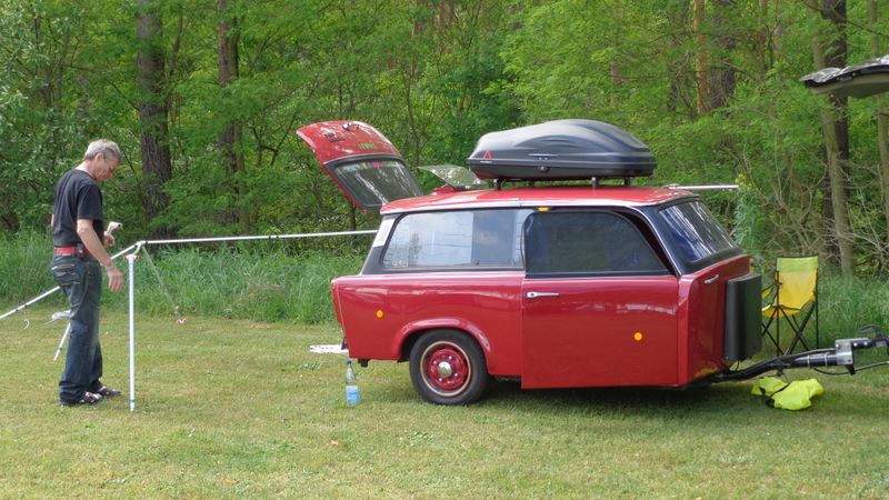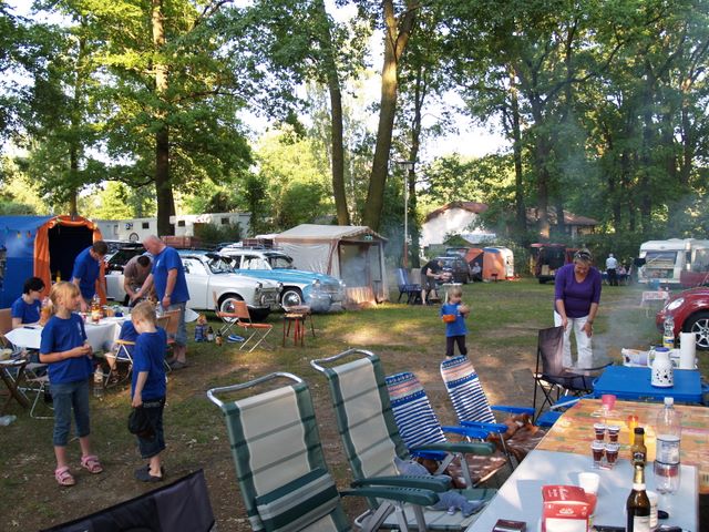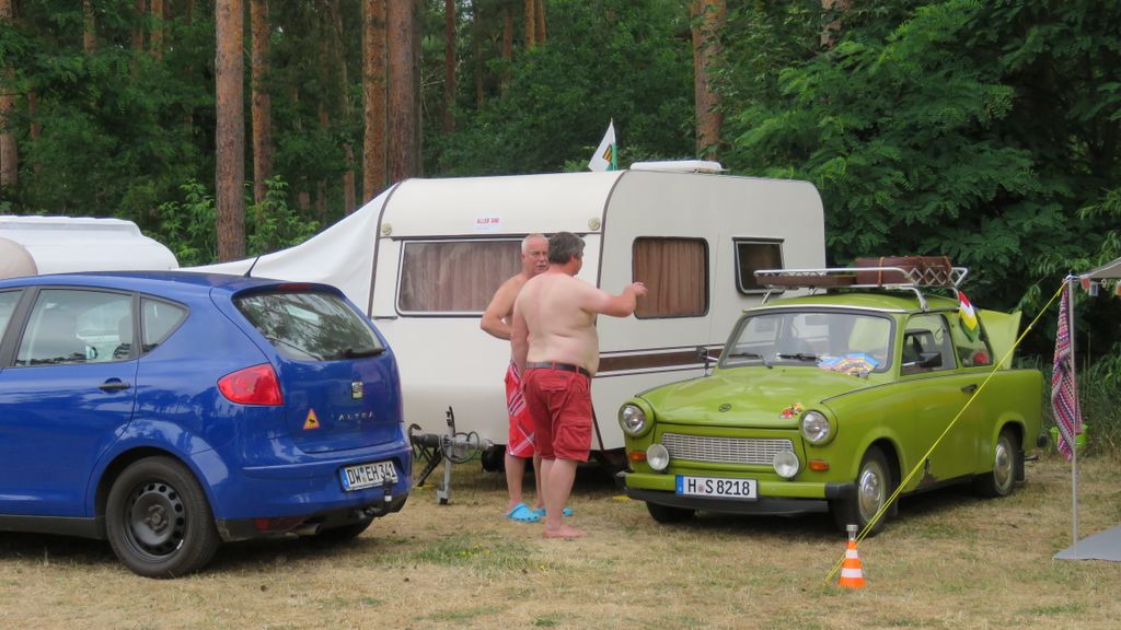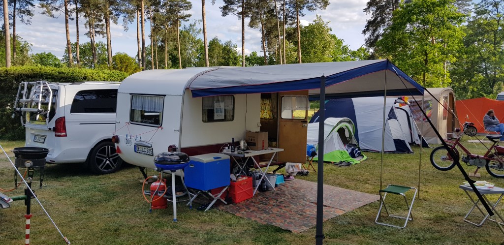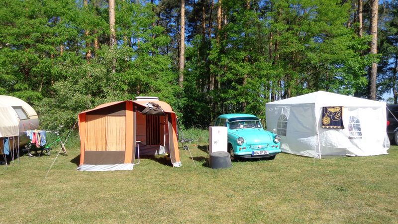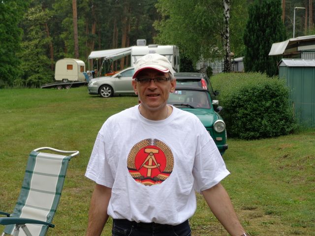 Beim gemeinsamen Frühtück haben wir das originellste Gespann prämiert. So konnte Micha mit dem Trabbi-Kübel und dem passenden Qek einen prima Liegestuhl, gesponsert von www.elbe-caravan.de, in Empfang nehmen