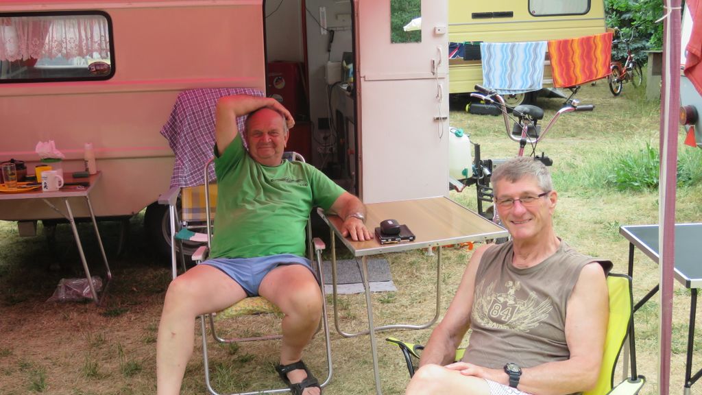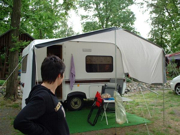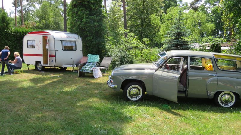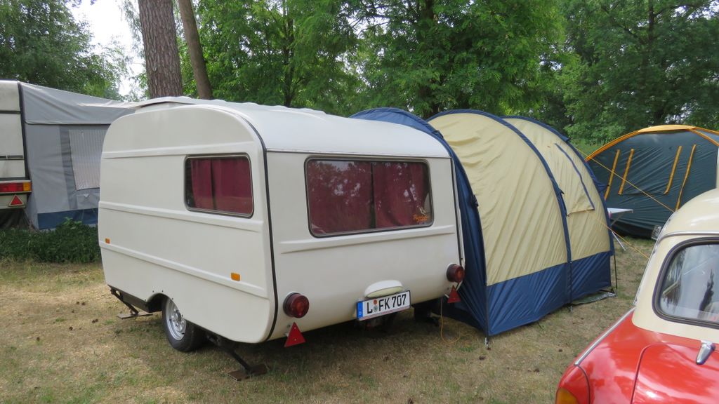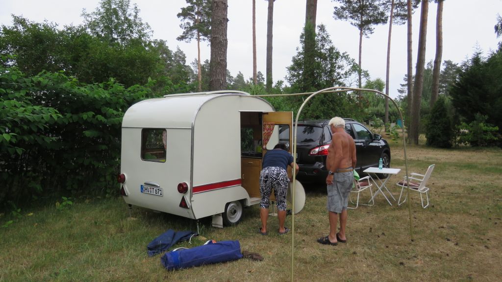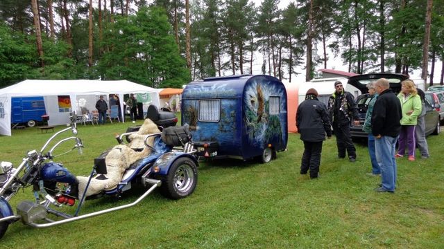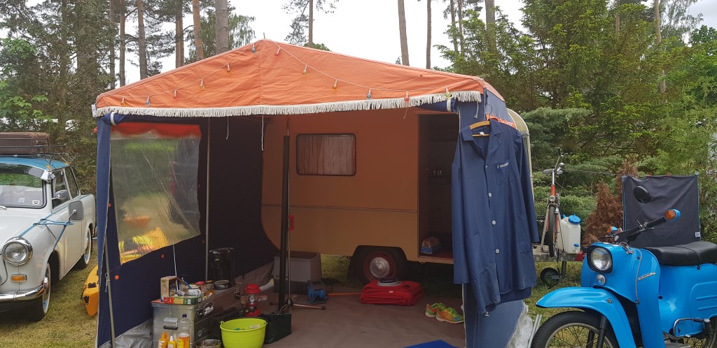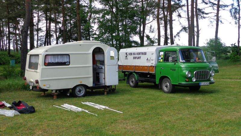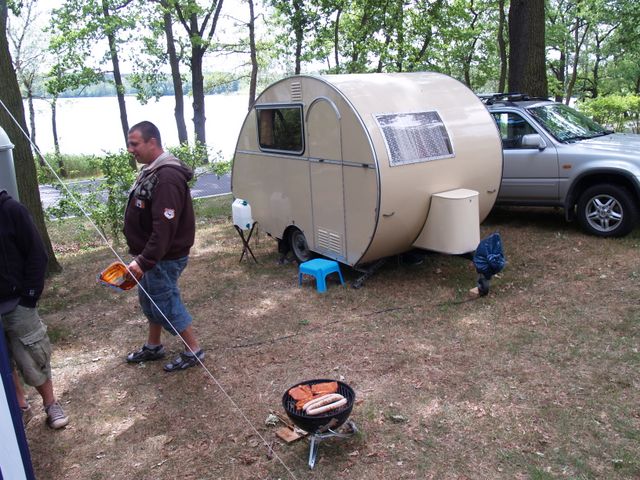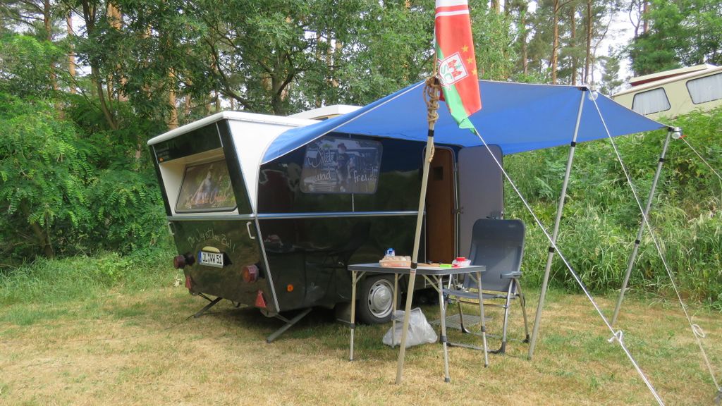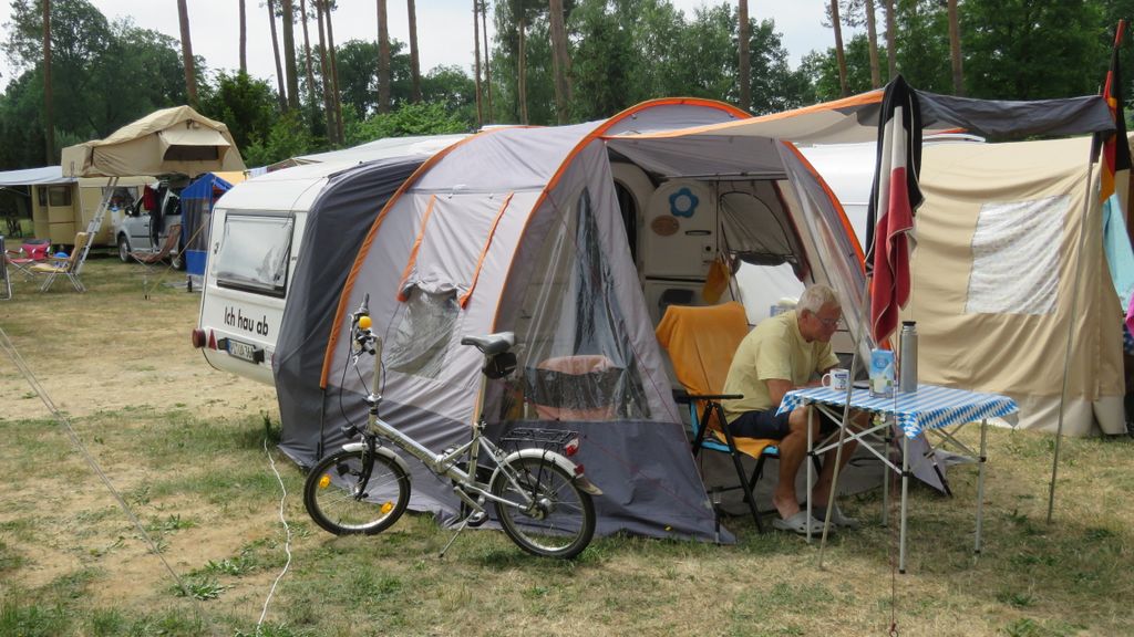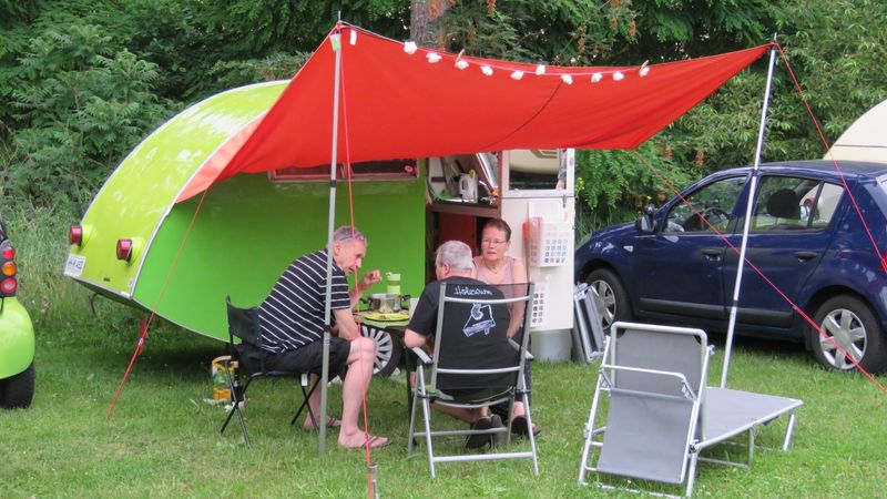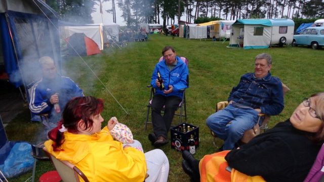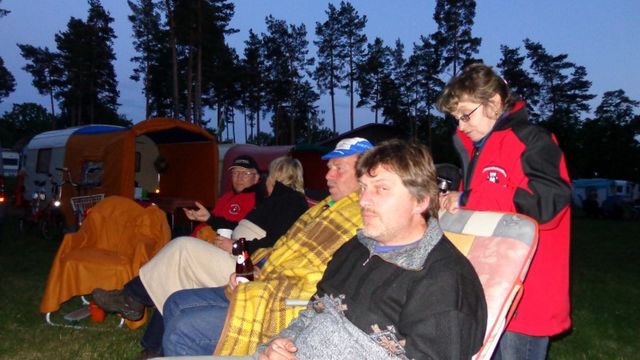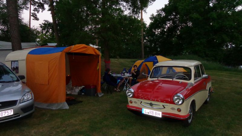 Beim gemeinsamen Frühtück haben wir das originellste Gespann prämiert. So konnte Micha mit dem Trabbi-Kübel und dem passenden Qek einen prima Liegestuhl, gesponsert von www.elbe-caravan.de, in Empfang nehmen
