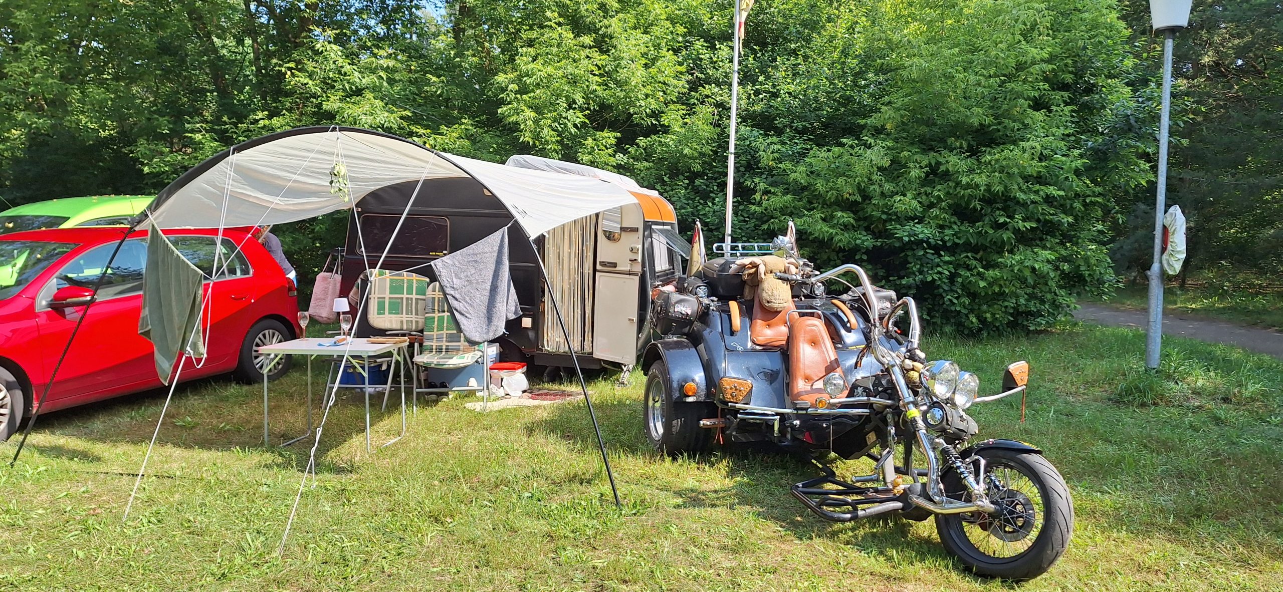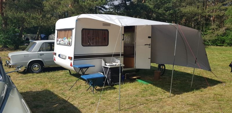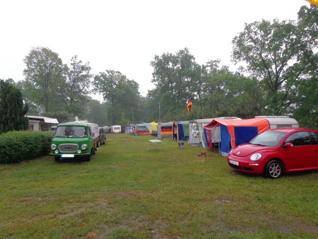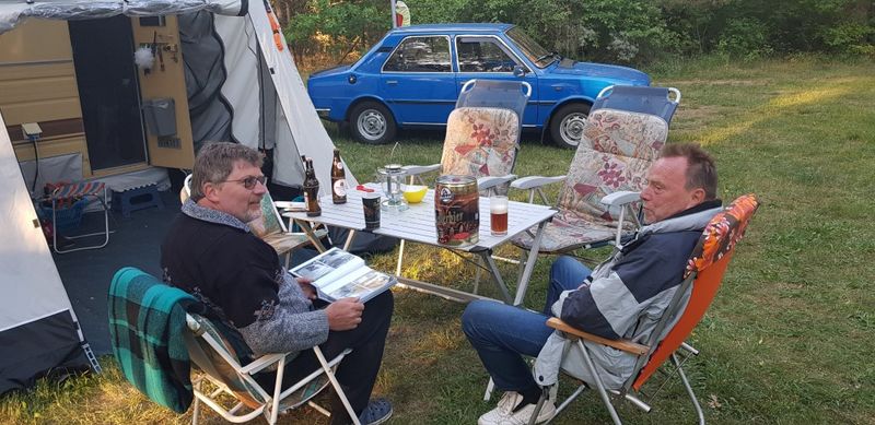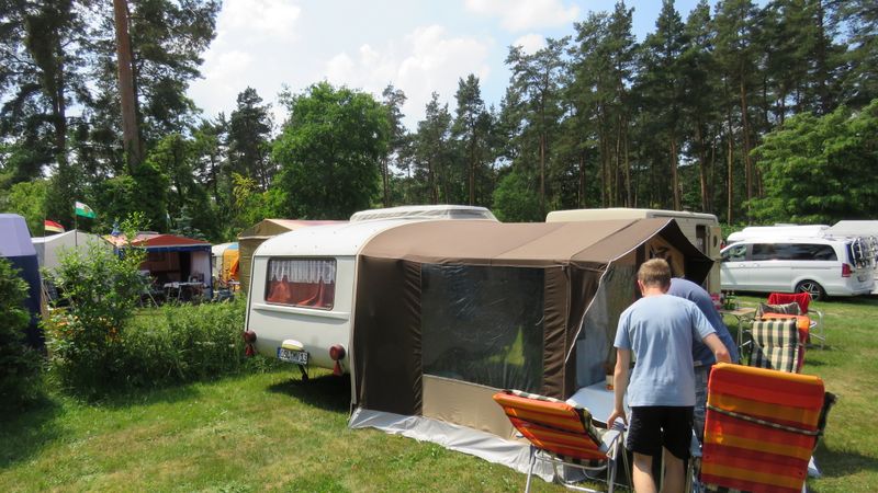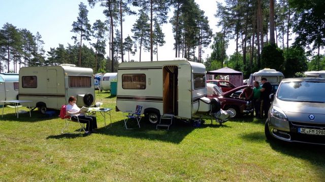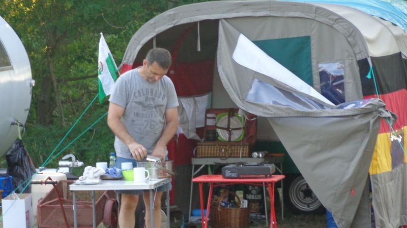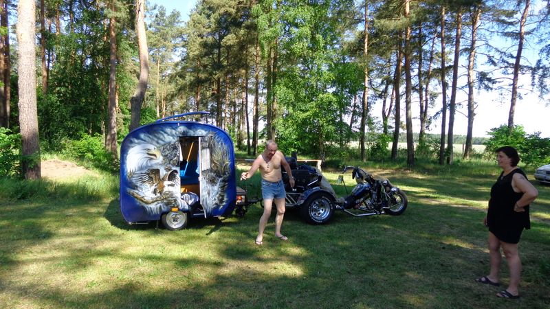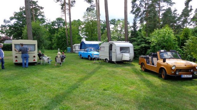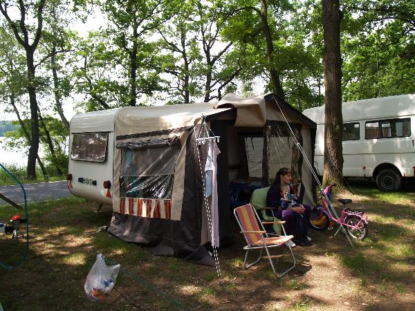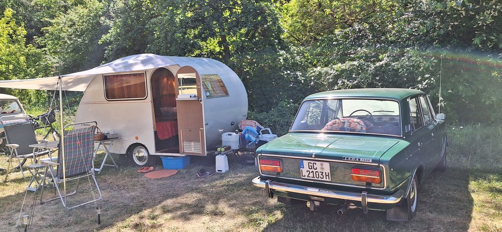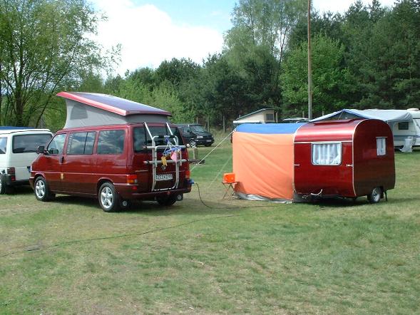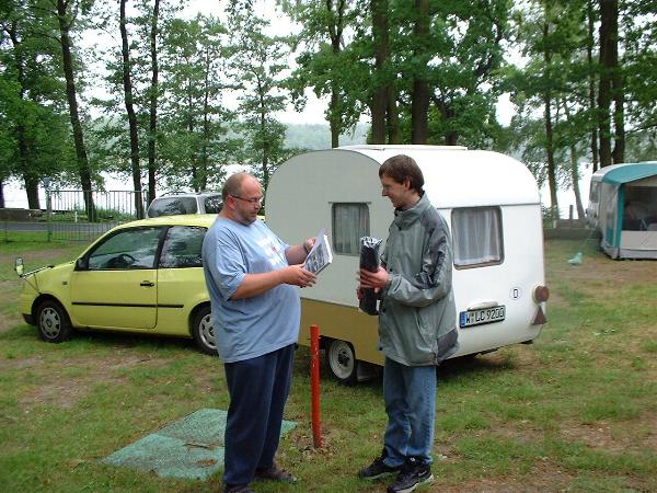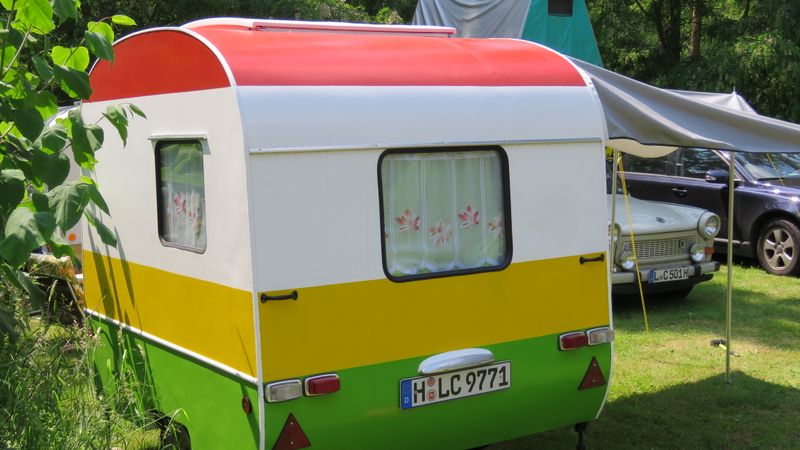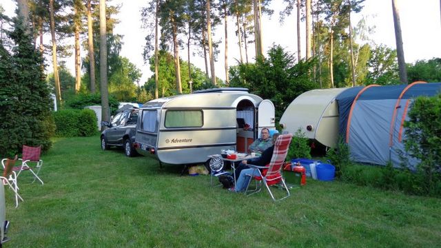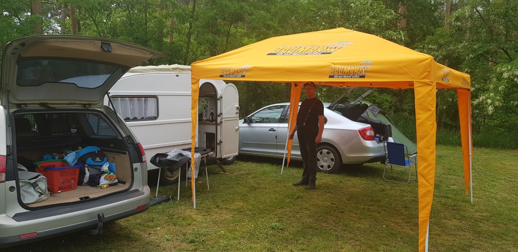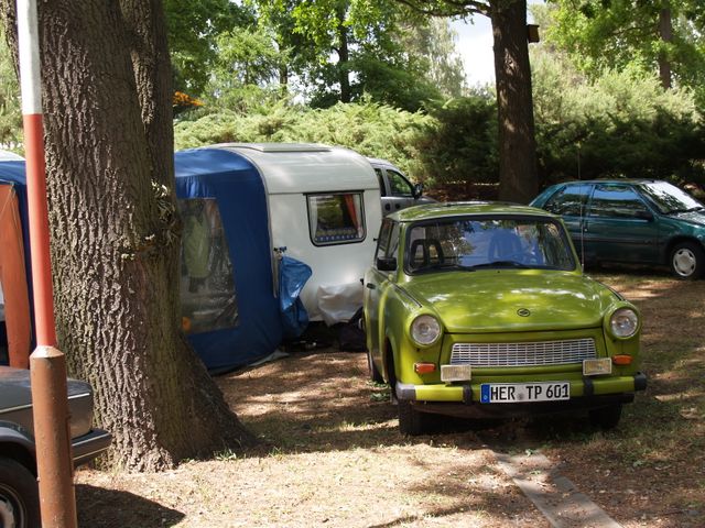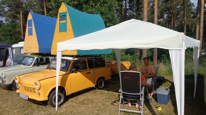 Beim gemeinsamen Frühtück haben wir das originellste Gespann prämiert. So konnte Micha mit dem Trabbi-Kübel und dem passenden Qek einen prima Liegestuhl, gesponsert von www.elbe-caravan.de, in Empfang nehmen