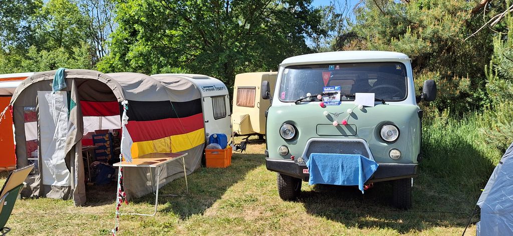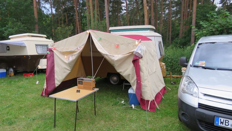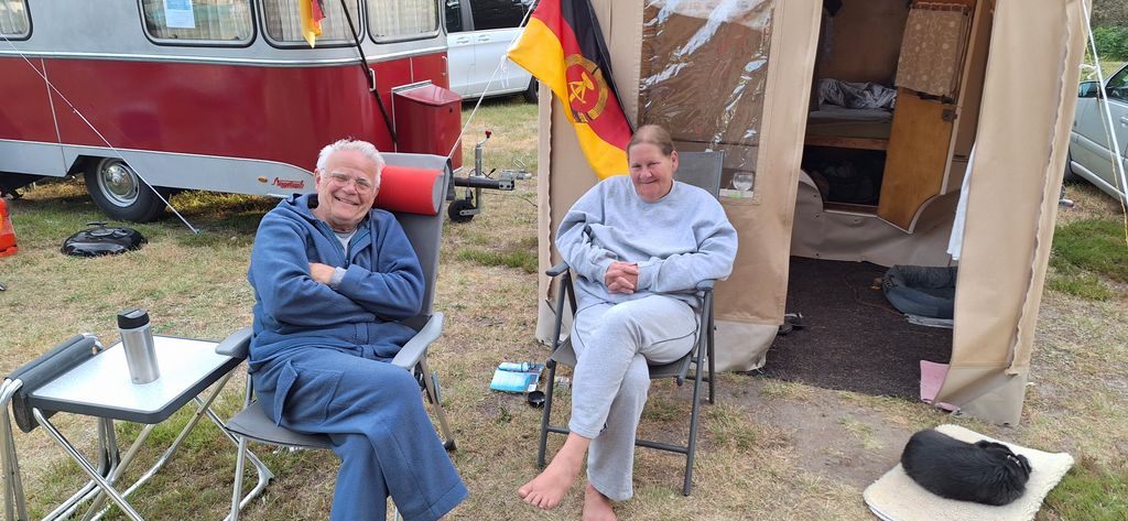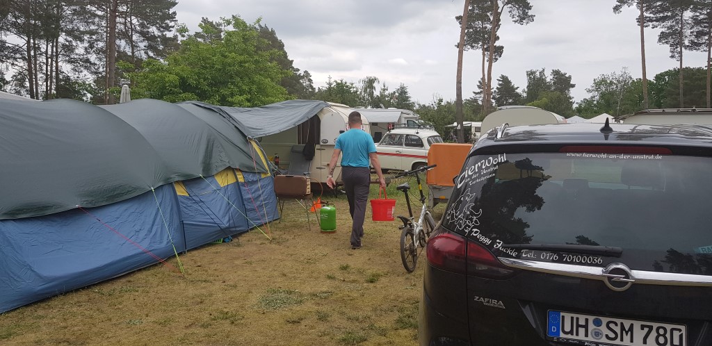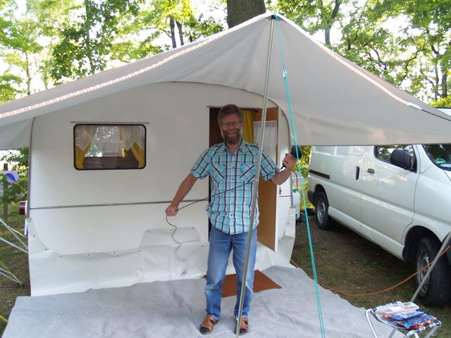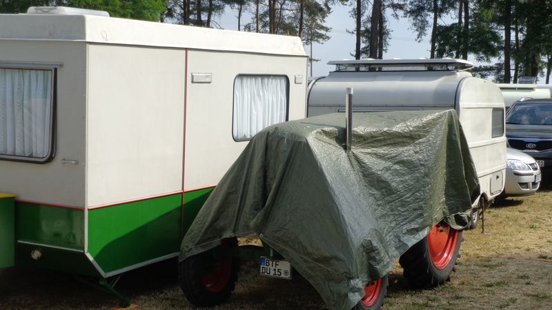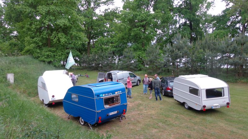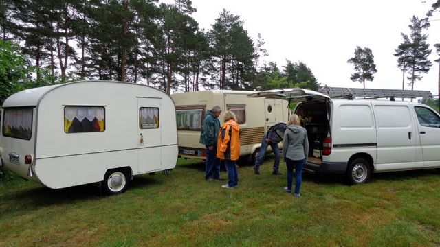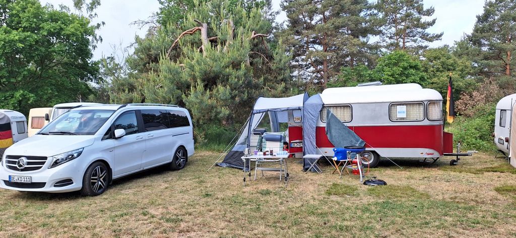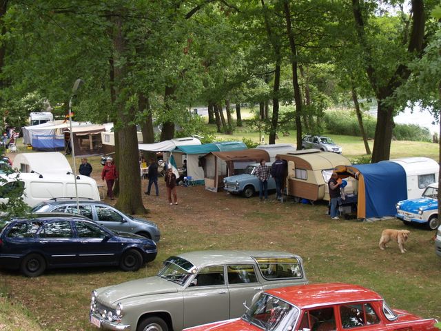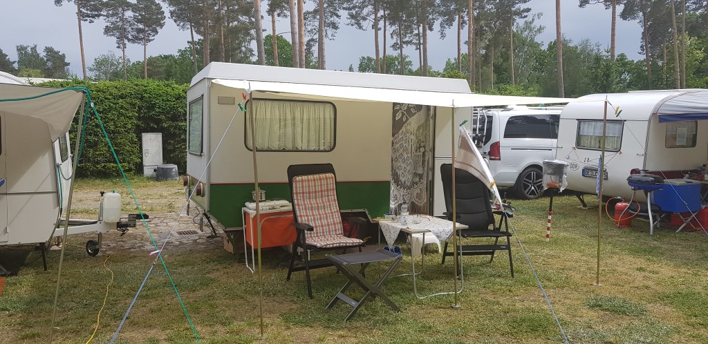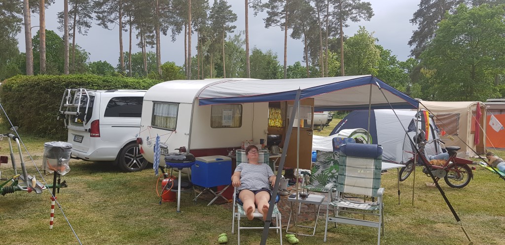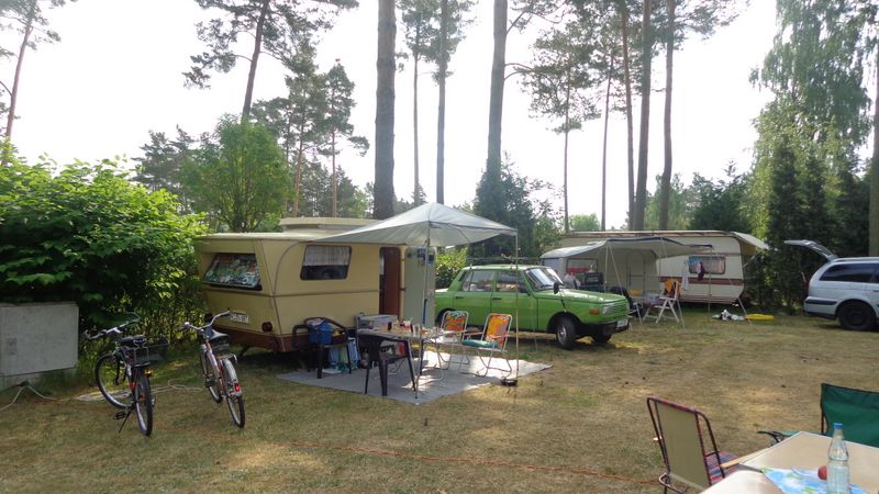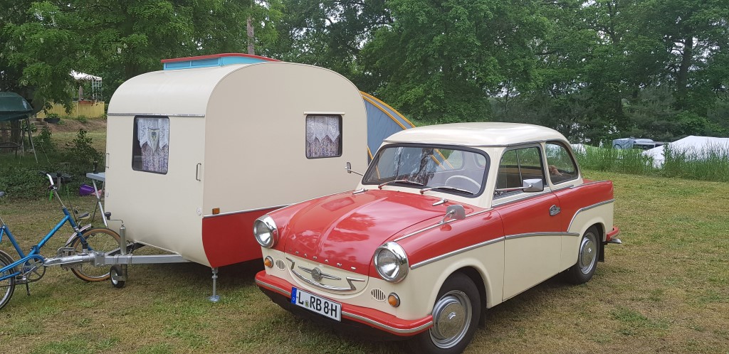 Beim gemeinsamen Frühtück haben wir das originellste Gespann prämiert. So konnte Micha mit dem Trabbi-Kübel und dem passenden Qek einen prima Liegestuhl, gesponsert von www.elbe-caravan.de, in Empfang nehmen