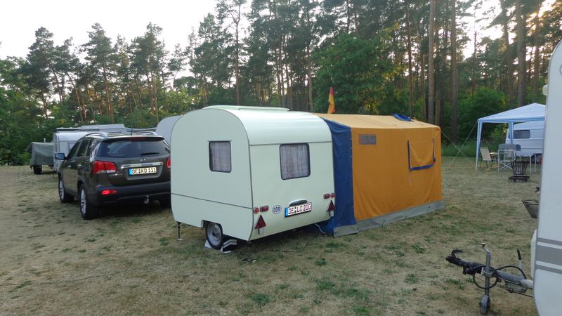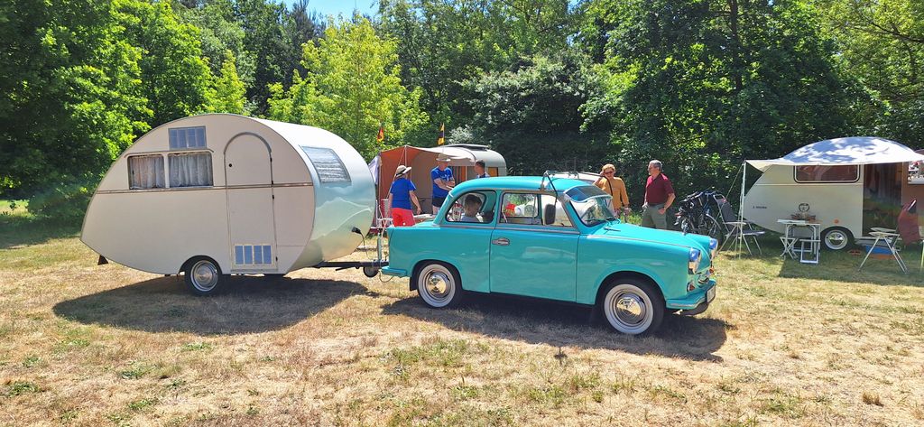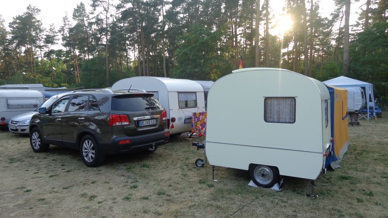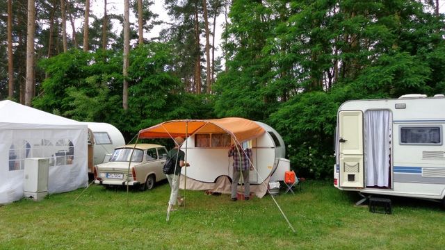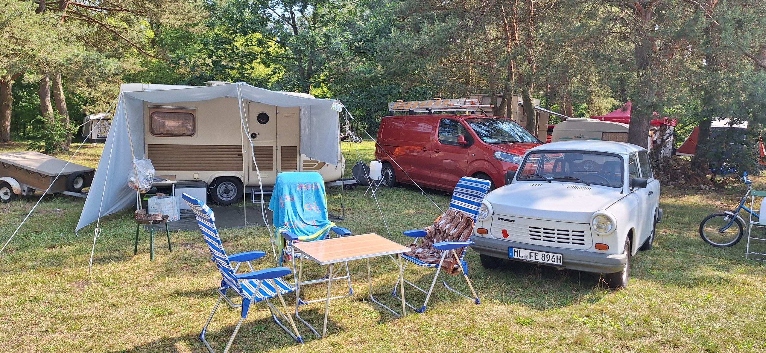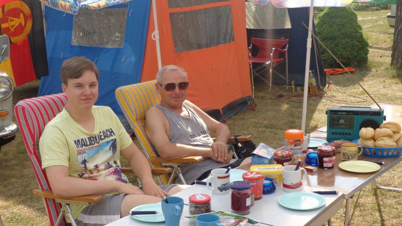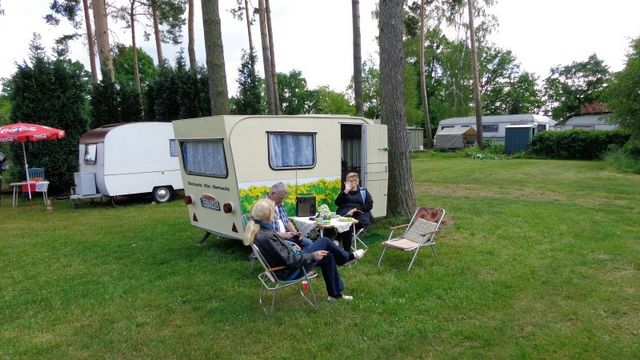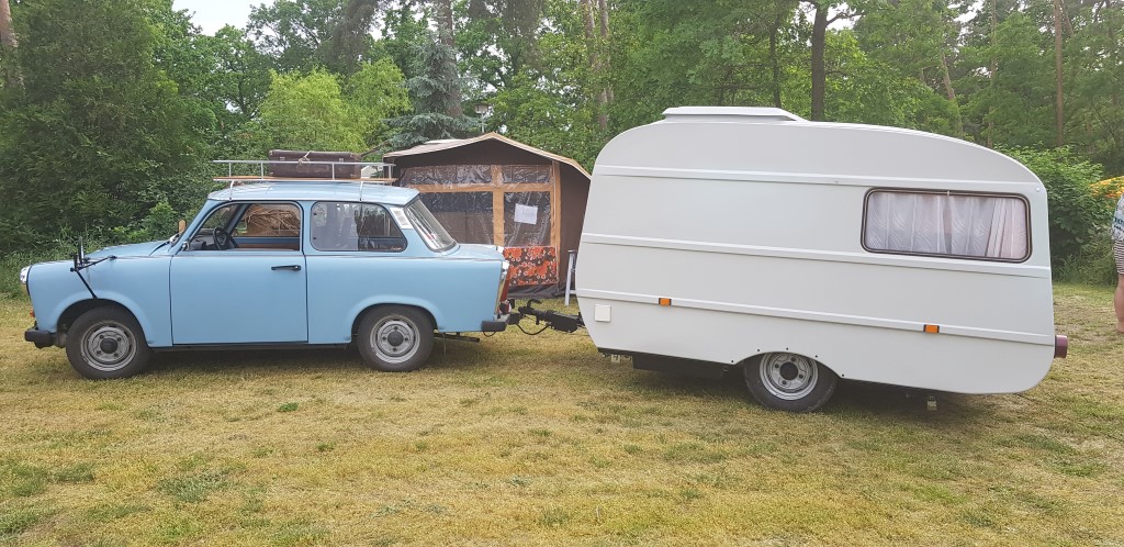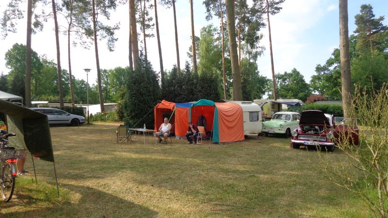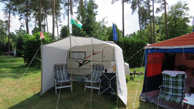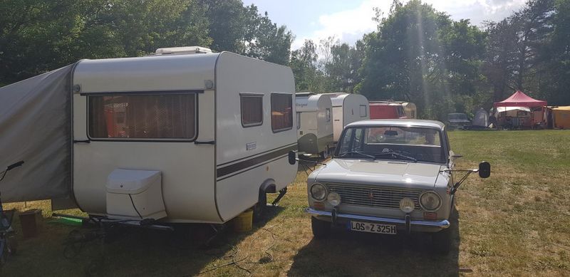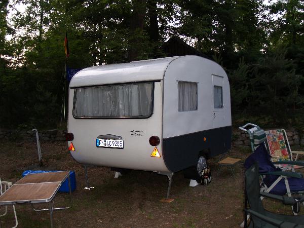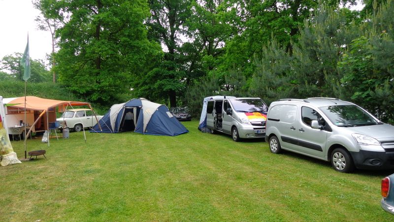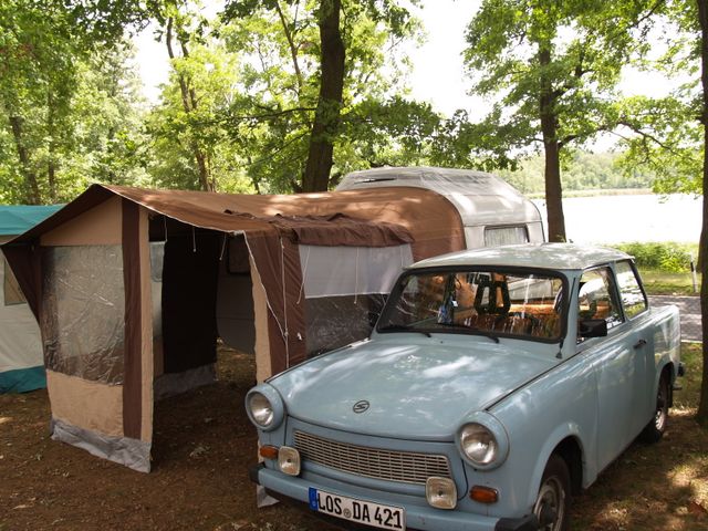 Beim gemeinsamen Frühtück haben wir das originellste Gespann prämiert. So konnte Micha mit dem Trabbi-Kübel und dem passenden Qek einen prima Liegestuhl, gesponsert von www.elbe-caravan.de, in Empfang nehmen