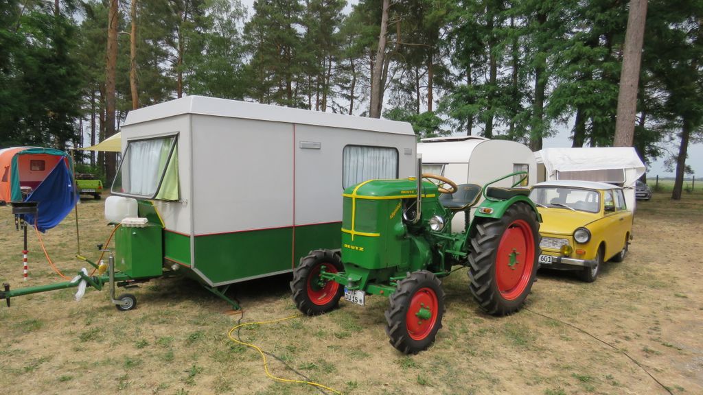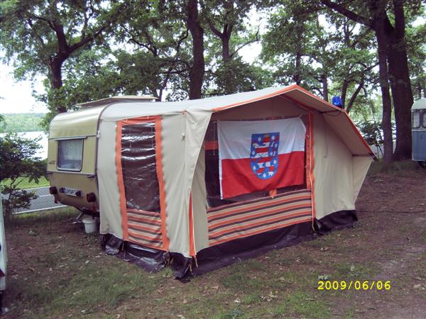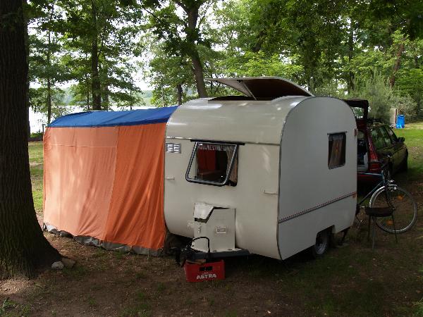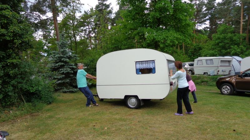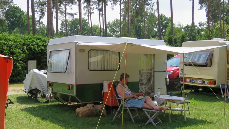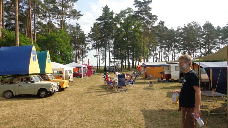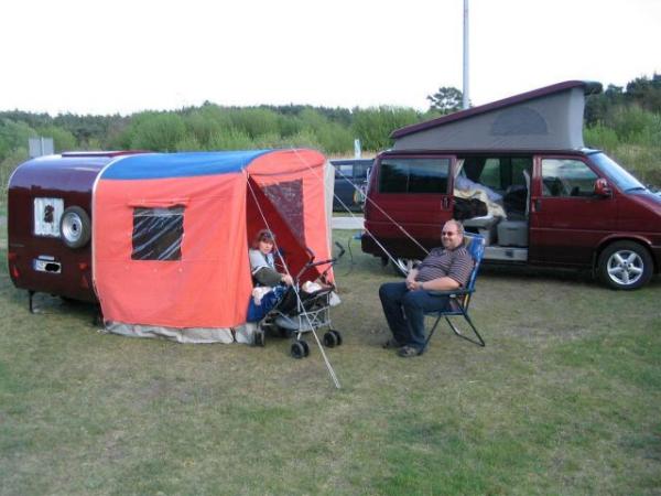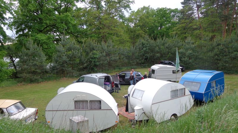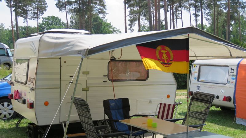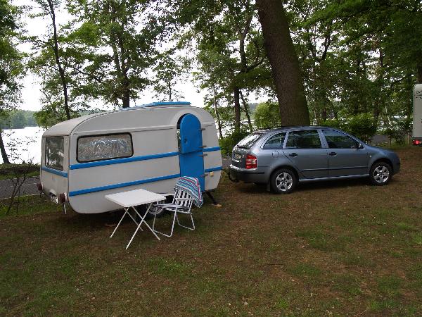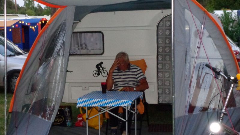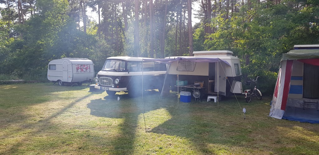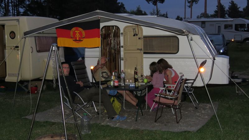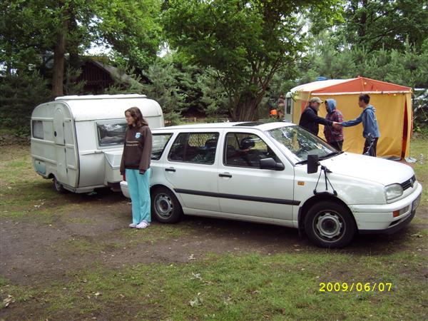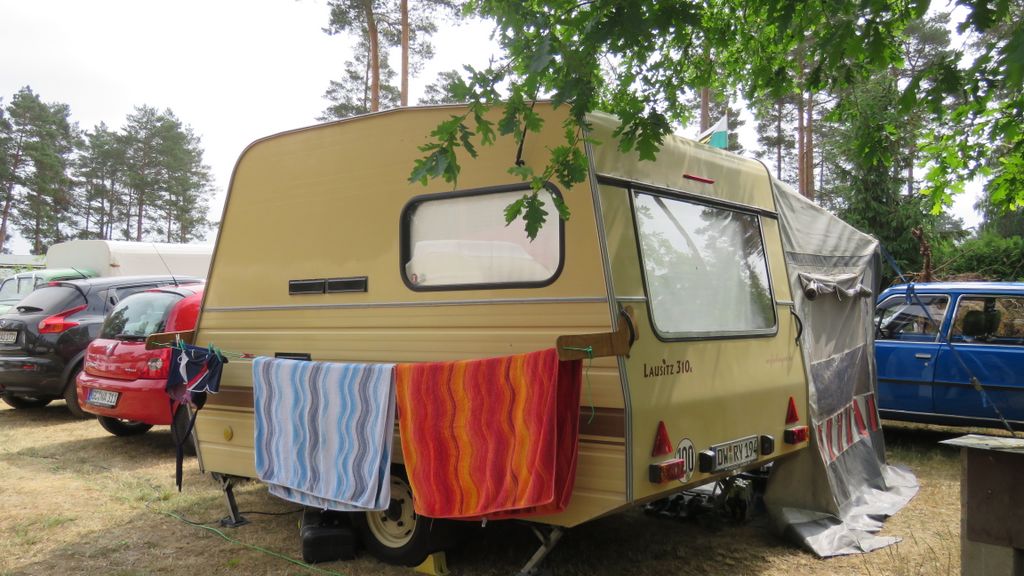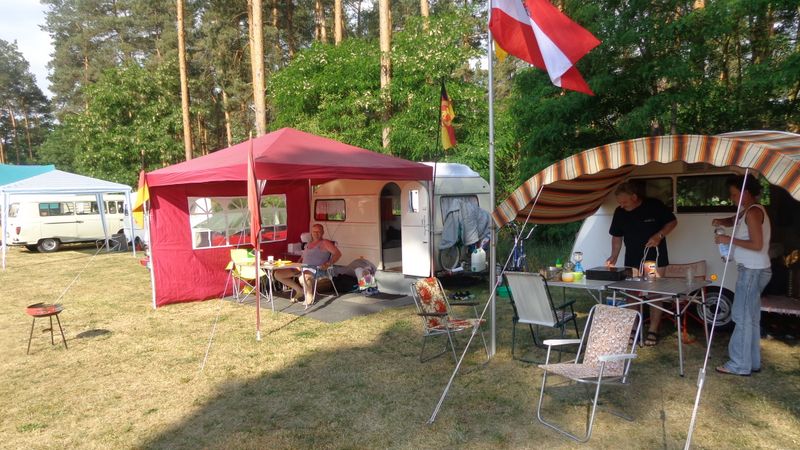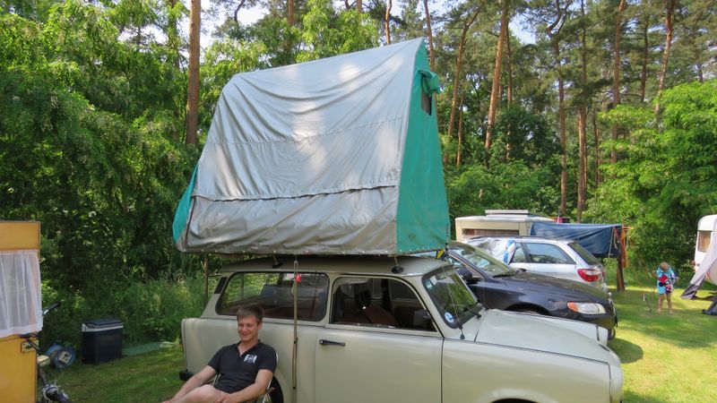 Beim gemeinsamen Frühtück haben wir das originellste Gespann prämiert. So konnte Micha mit dem Trabbi-Kübel und dem passenden Qek einen prima Liegestuhl, gesponsert von www.elbe-caravan.de, in Empfang nehmen