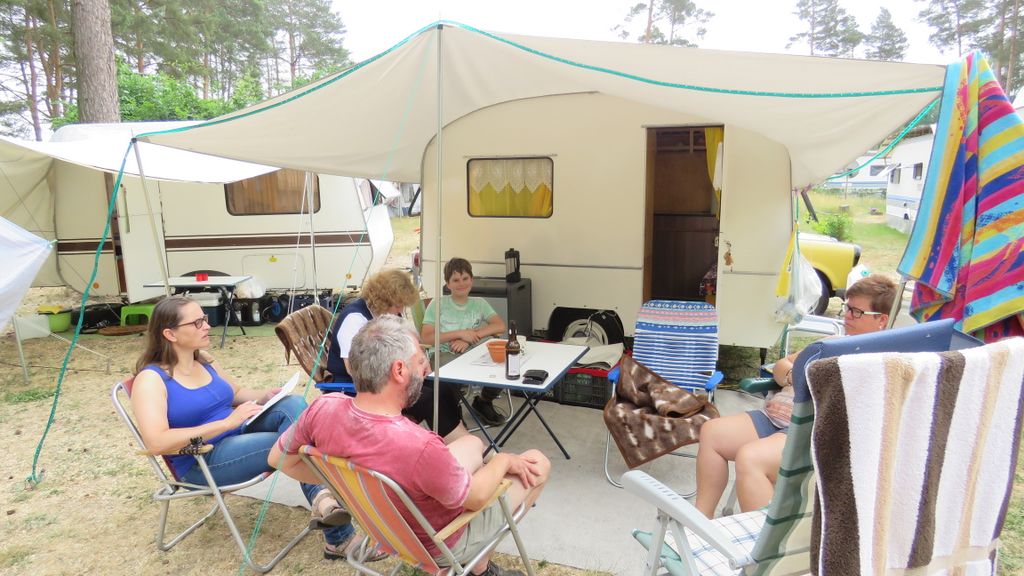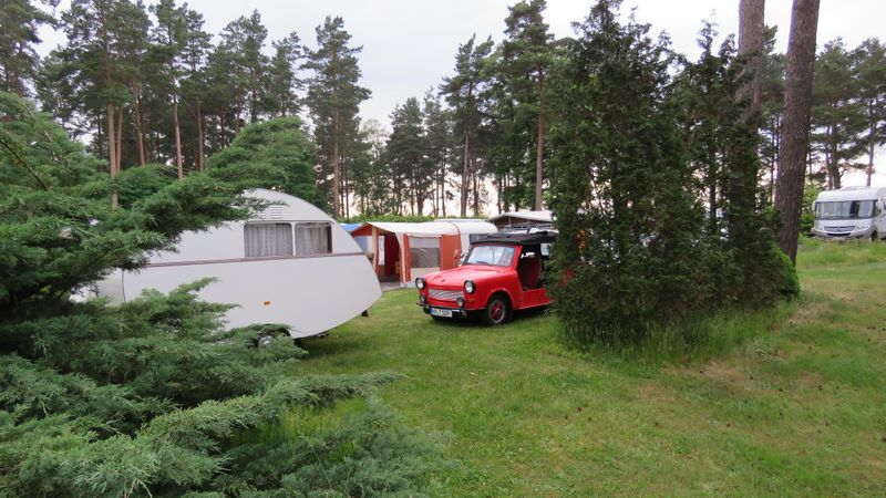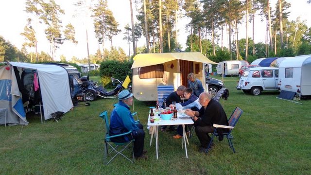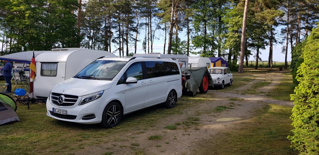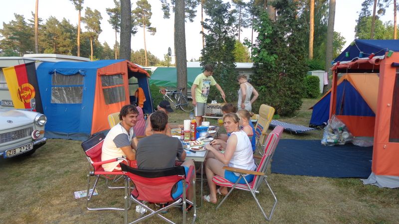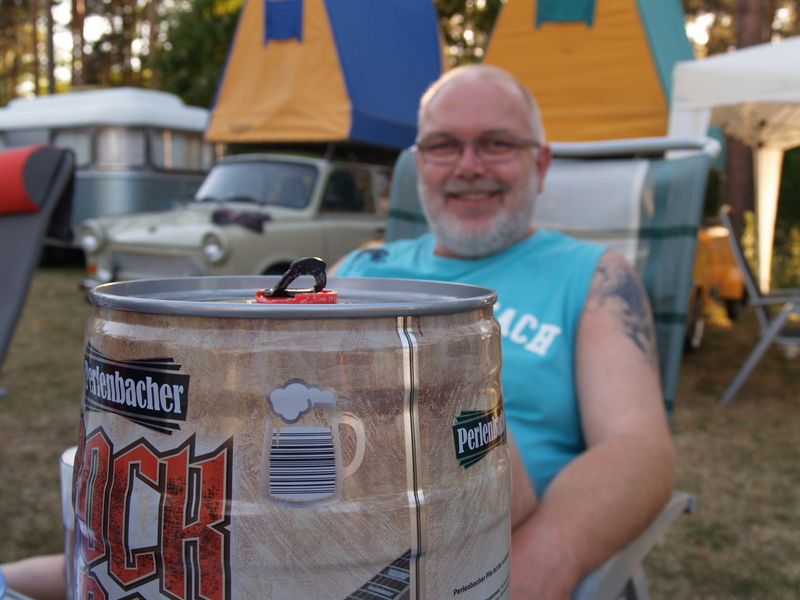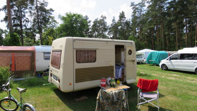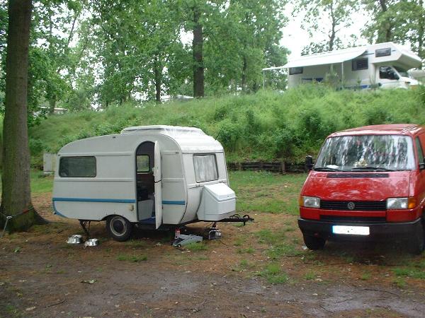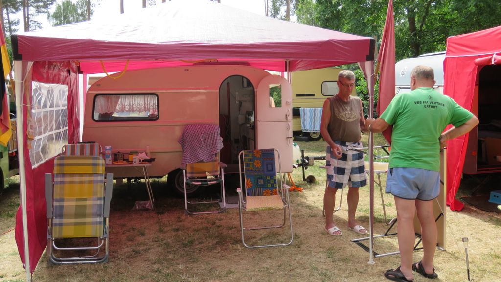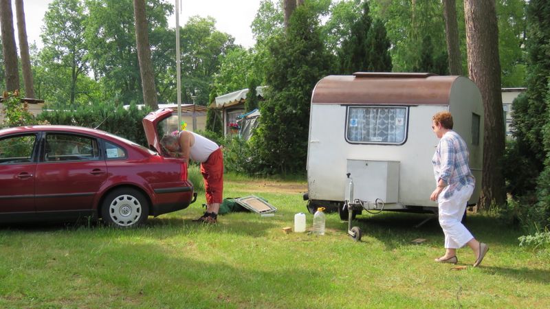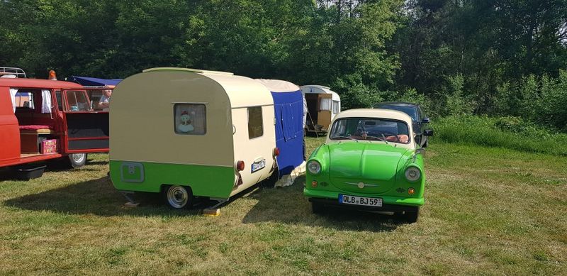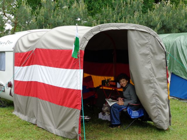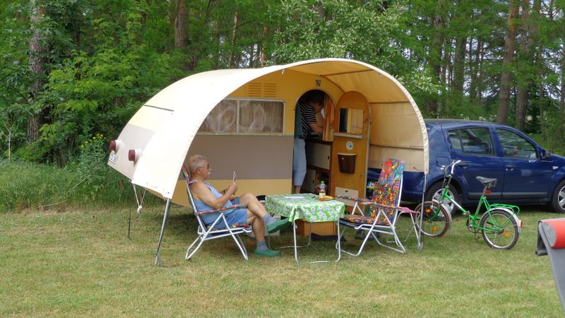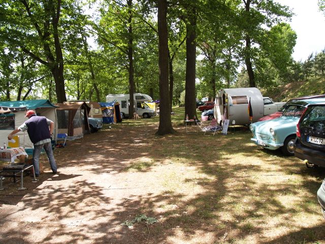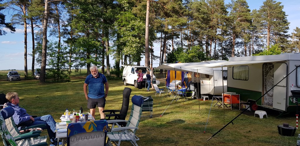 Beim gemeinsamen Frühtück haben wir das originellste Gespann prämiert. So konnte Micha mit dem Trabbi-Kübel und dem passenden Qek einen prima Liegestuhl, gesponsert von www.elbe-caravan.de, in Empfang nehmen