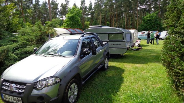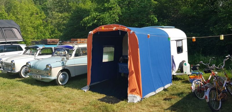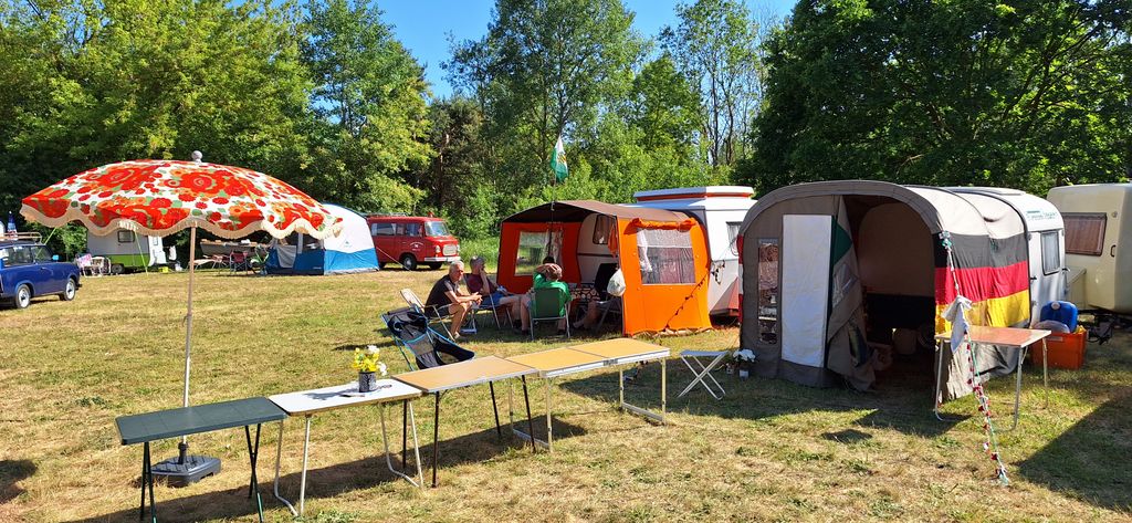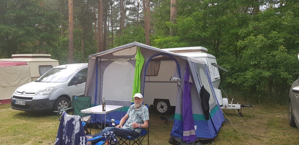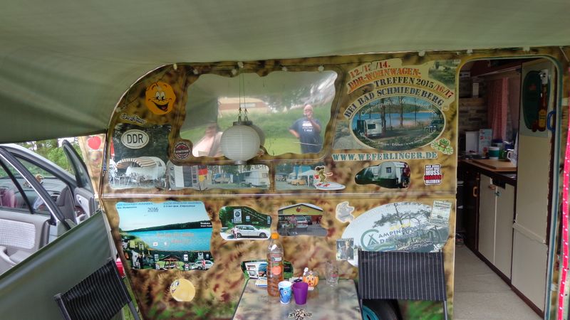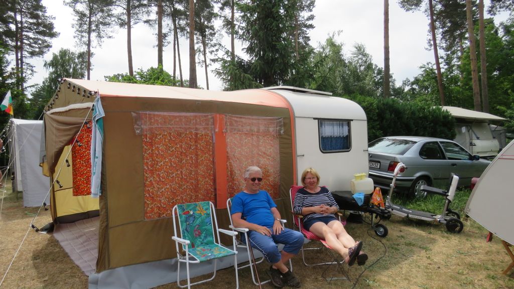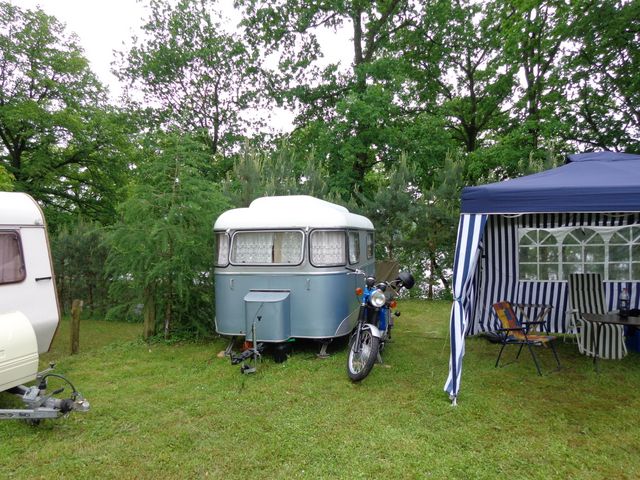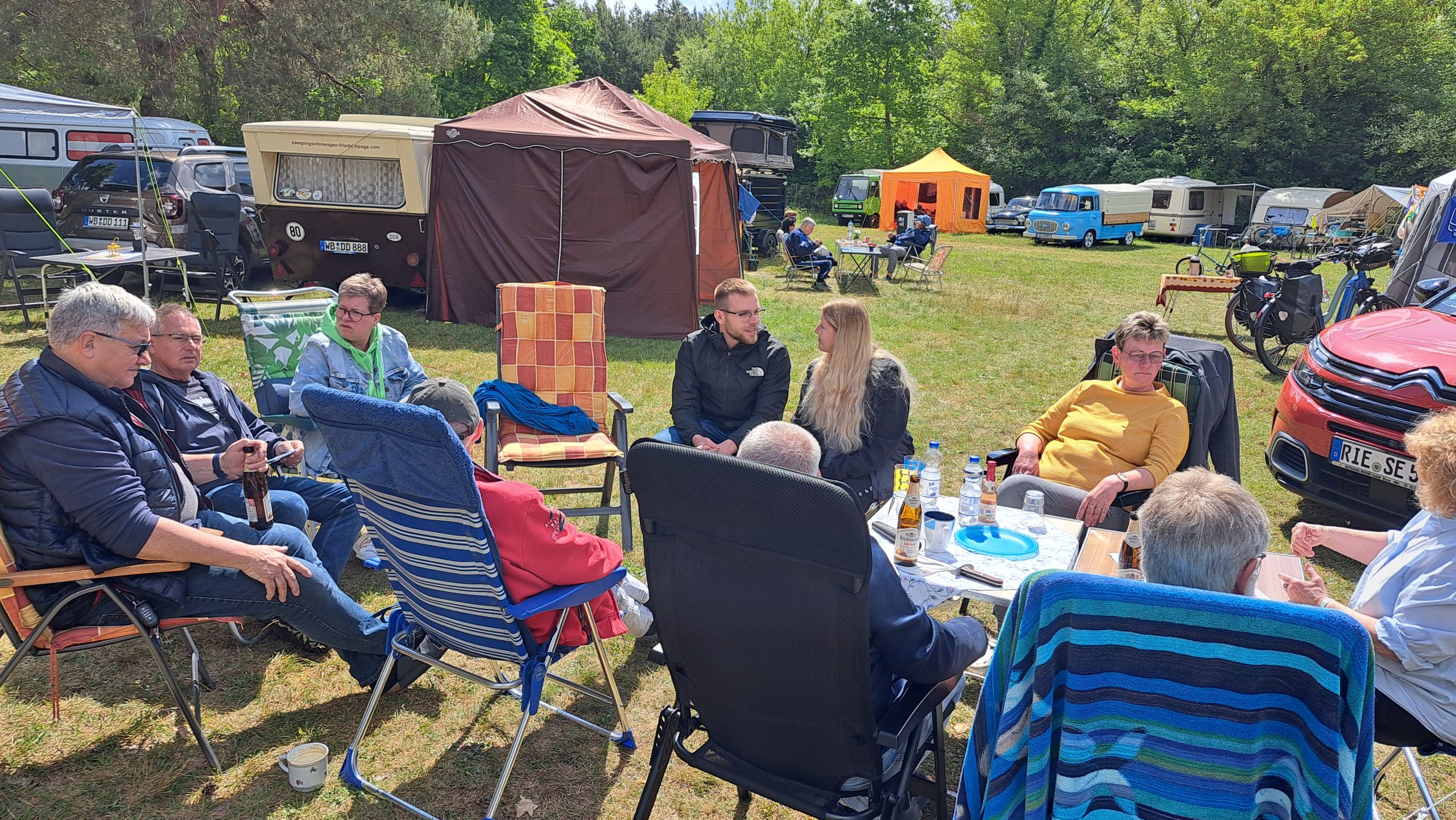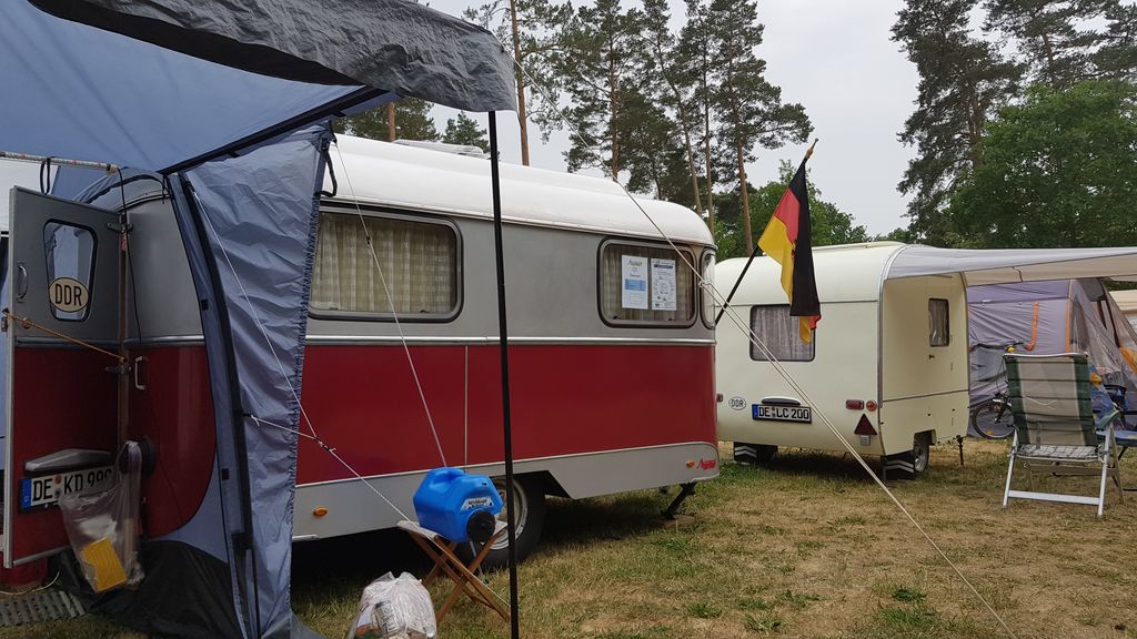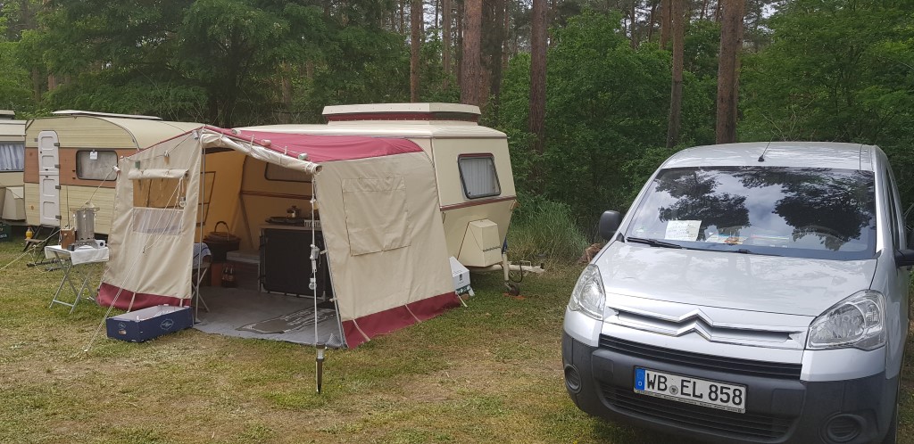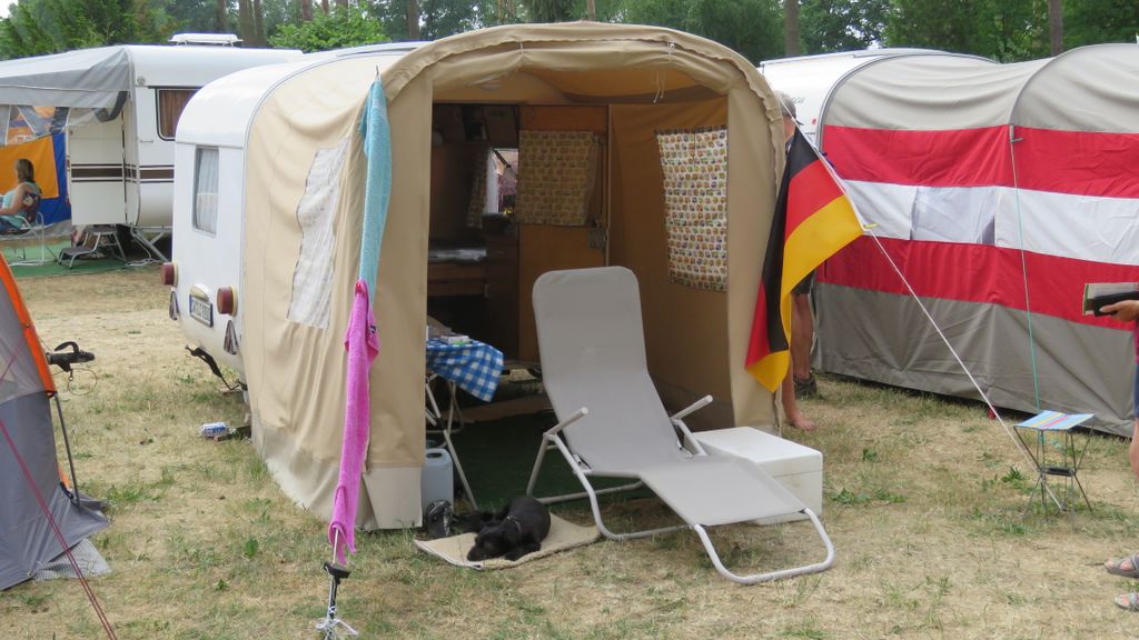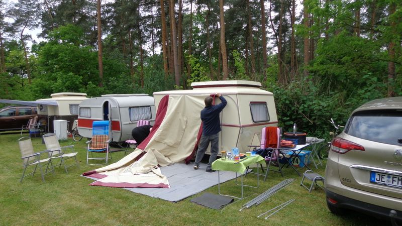 Beim gemeinsamen Frühtück haben wir das originellste Gespann prämiert. So konnte Micha mit dem Trabbi-Kübel und dem passenden Qek einen prima Liegestuhl, gesponsert von www.elbe-caravan.de, in Empfang nehmen