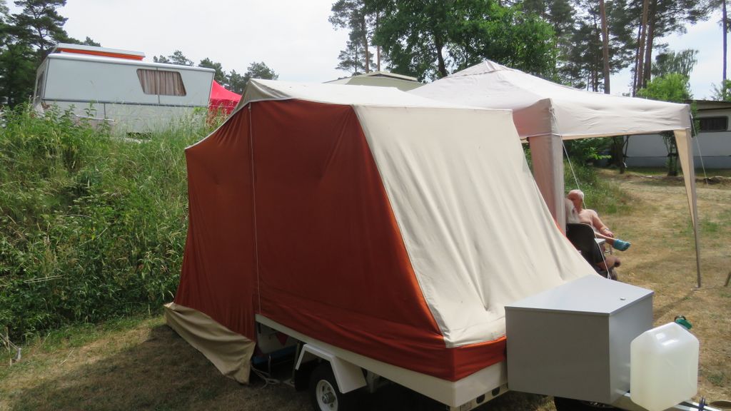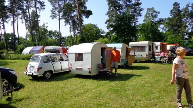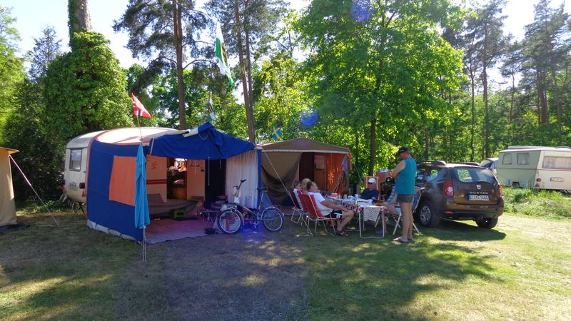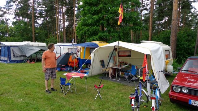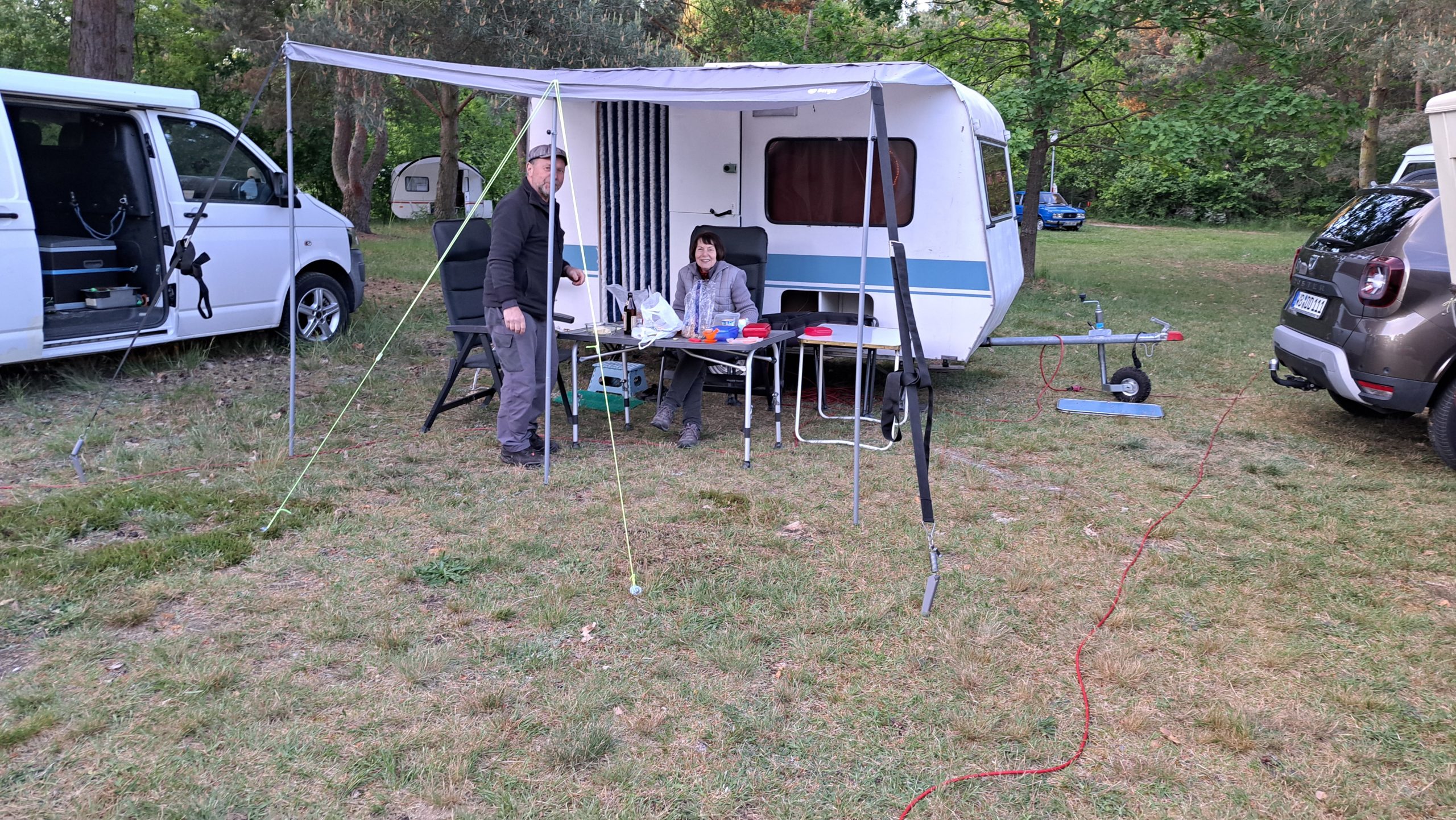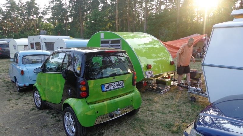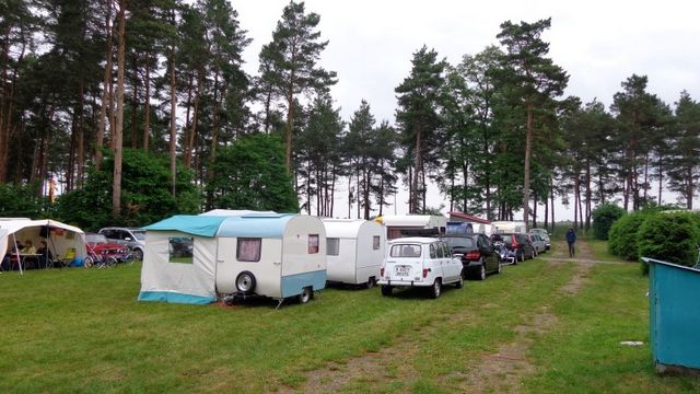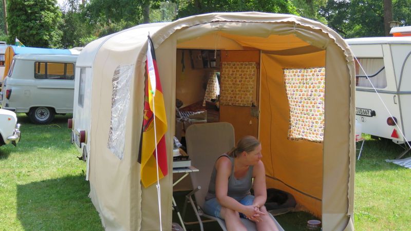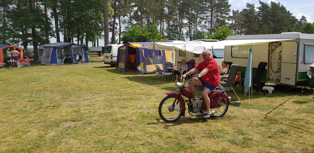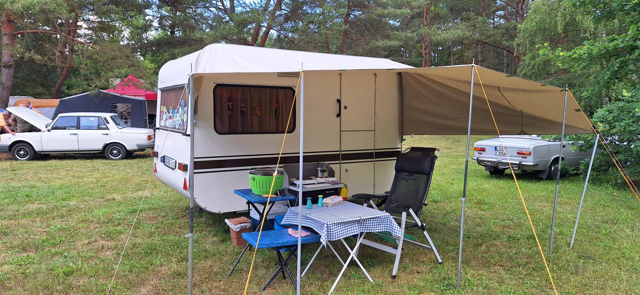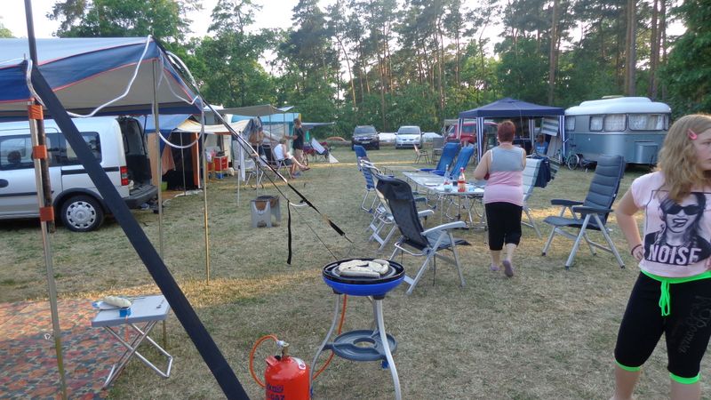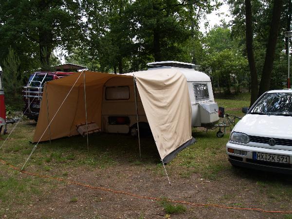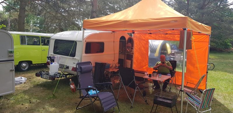 Beim gemeinsamen Frühtück haben wir das originellste Gespann prämiert. So konnte Micha mit dem Trabbi-Kübel und dem passenden Qek einen prima Liegestuhl, gesponsert von www.elbe-caravan.de, in Empfang nehmen