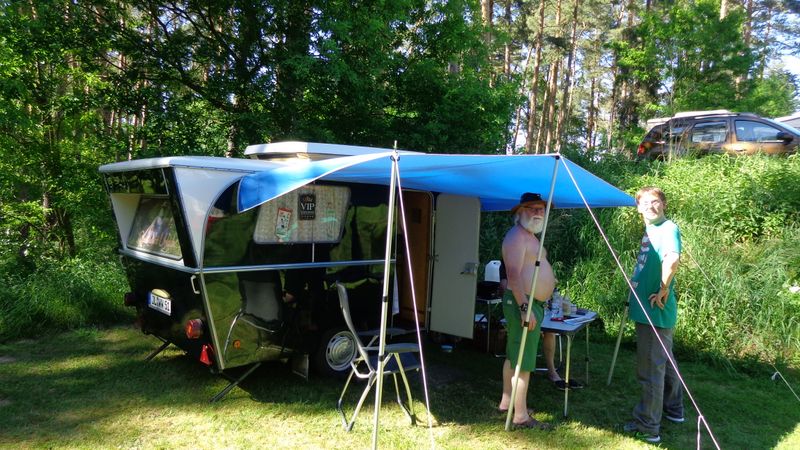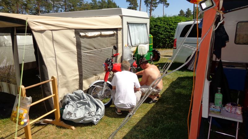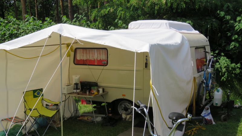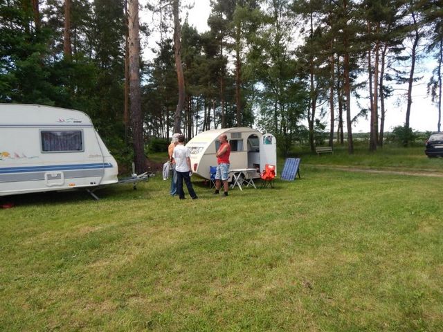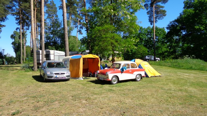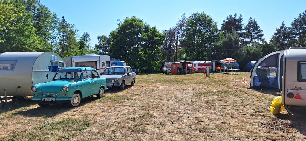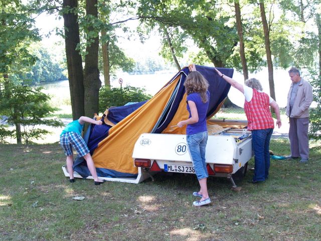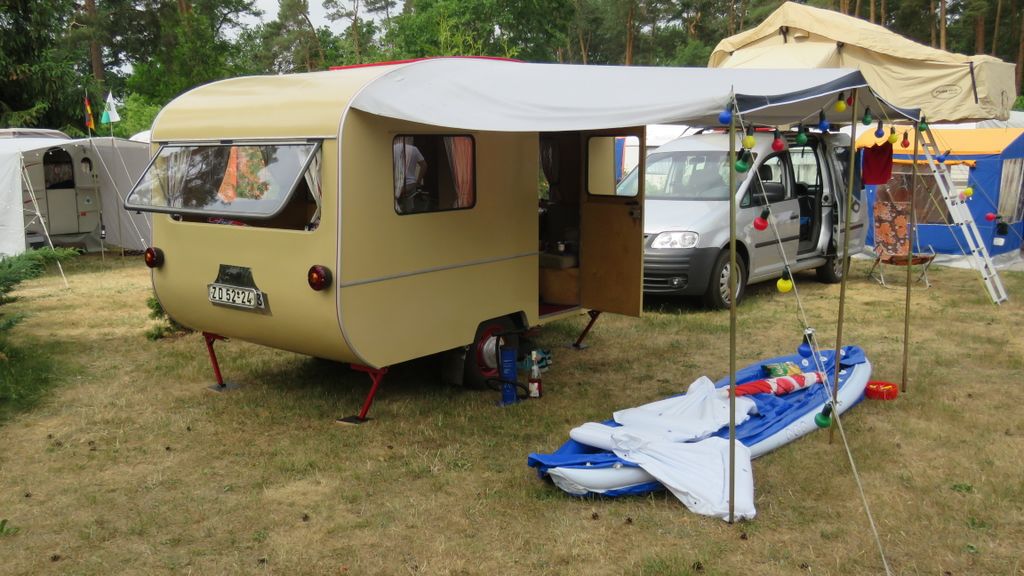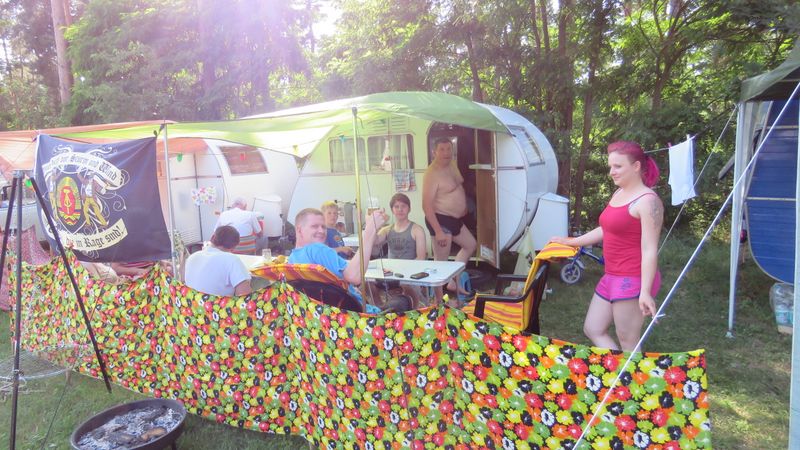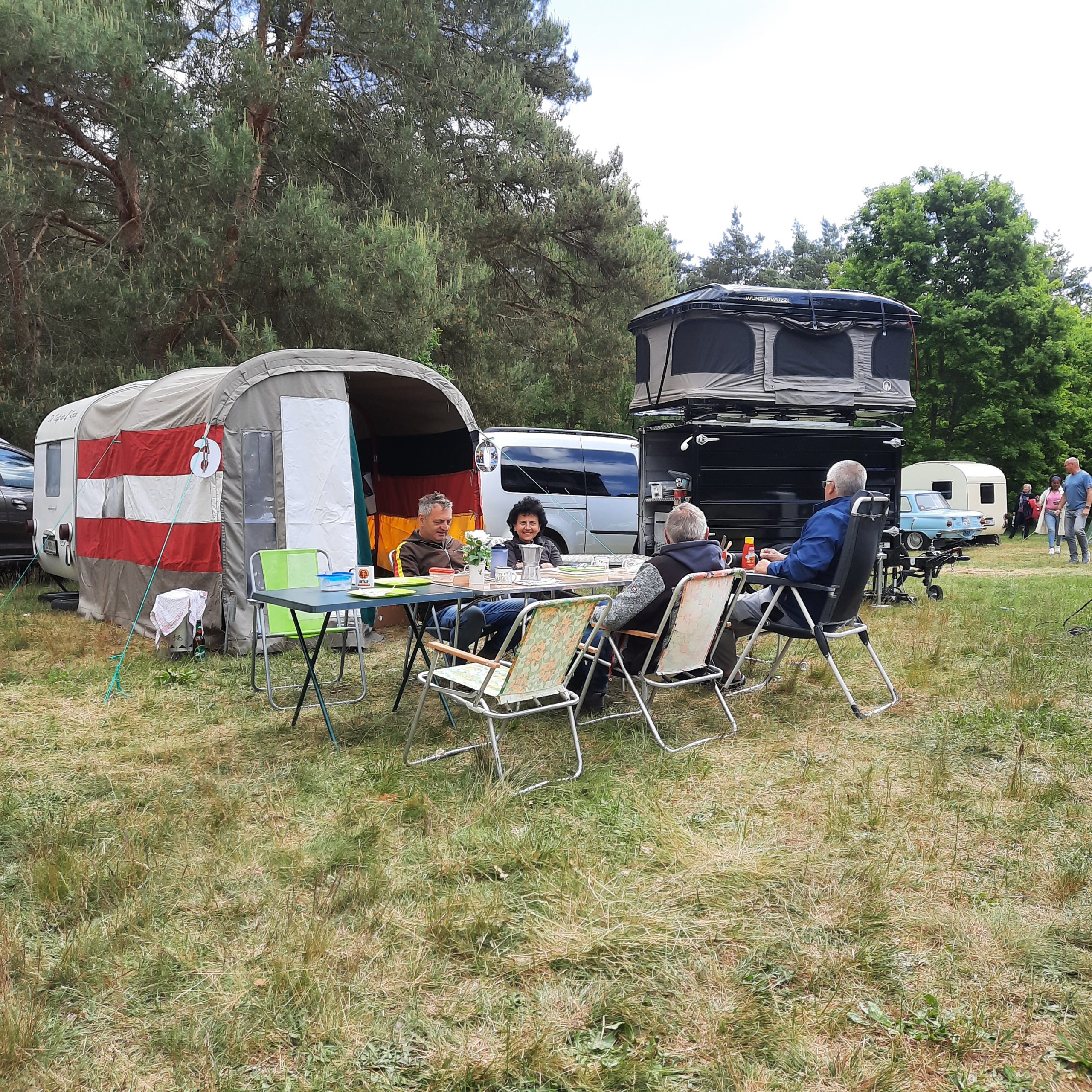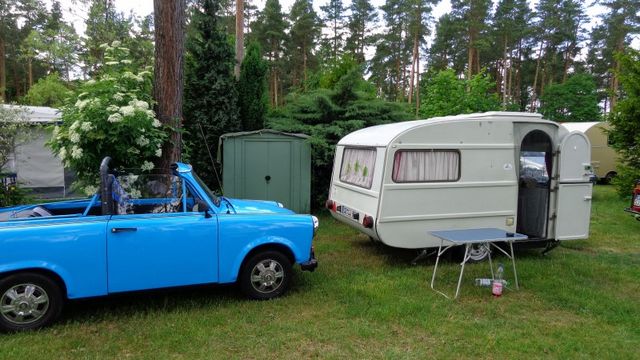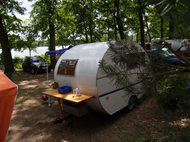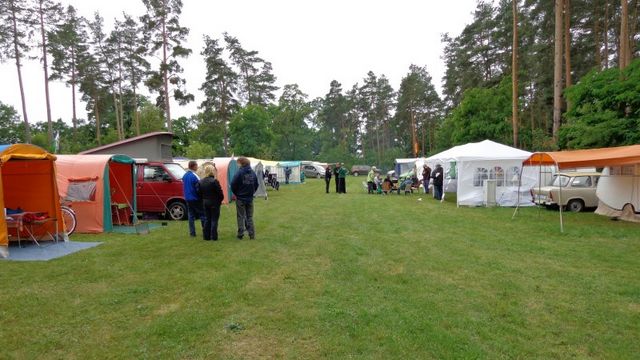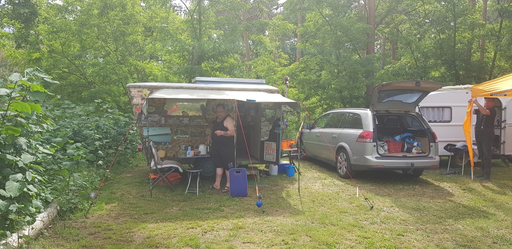 Beim gemeinsamen Frühtück haben wir das originellste Gespann prämiert. So konnte Micha mit dem Trabbi-Kübel und dem passenden Qek einen prima Liegestuhl, gesponsert von www.elbe-caravan.de, in Empfang nehmen