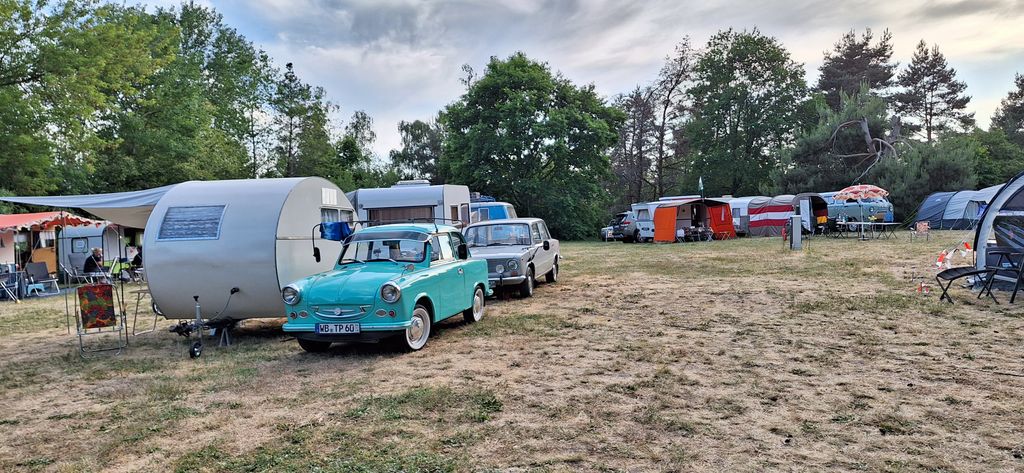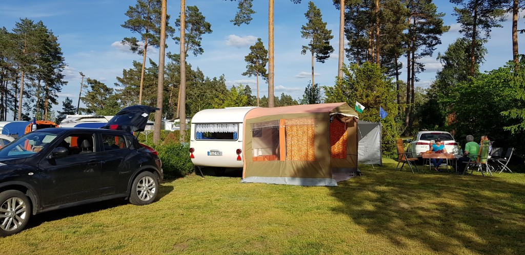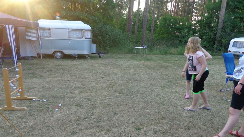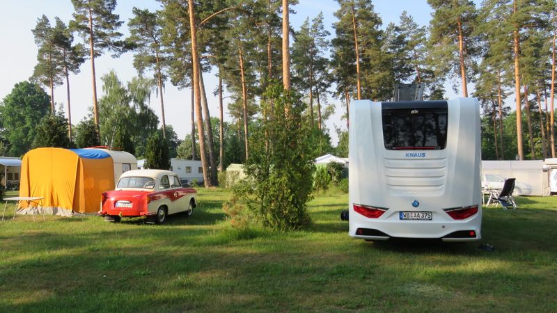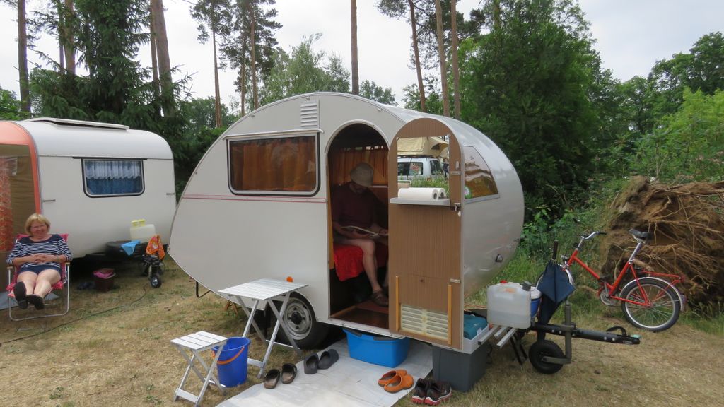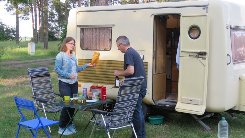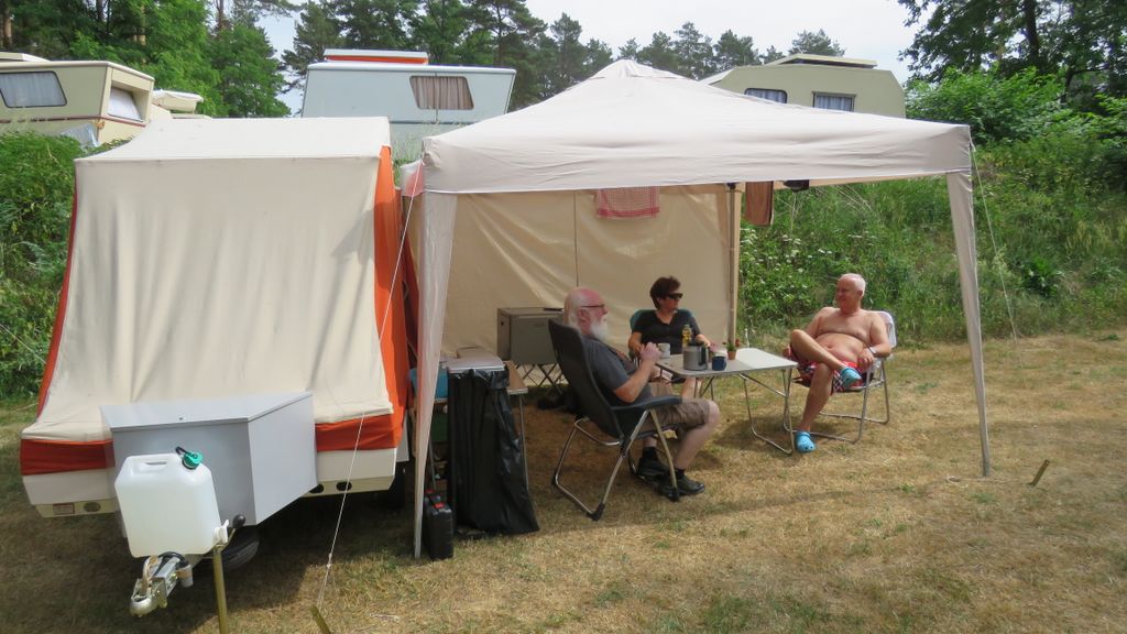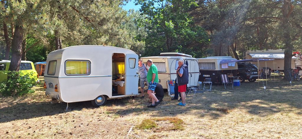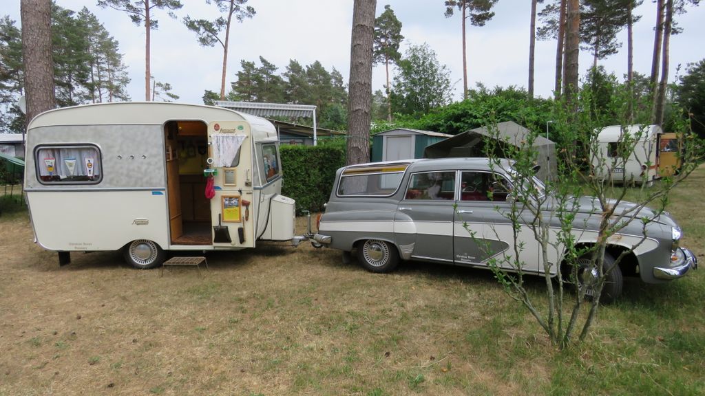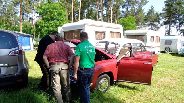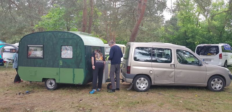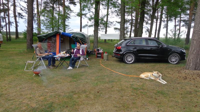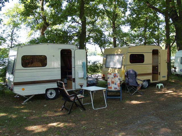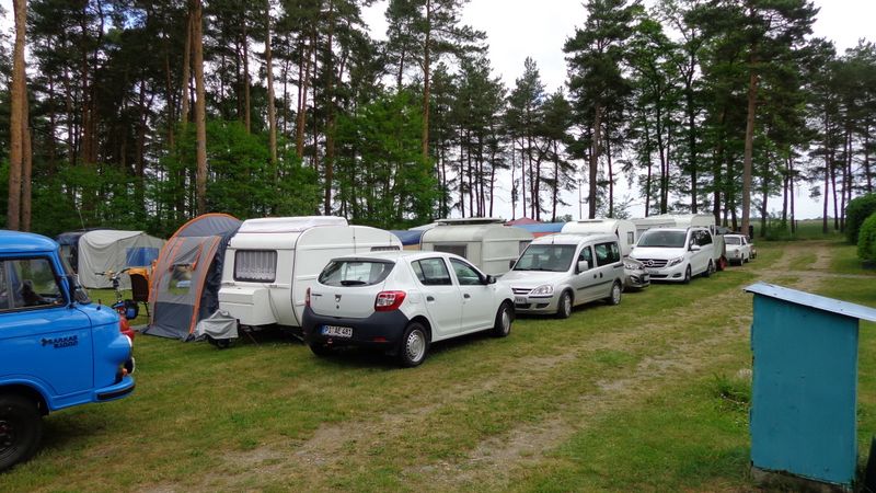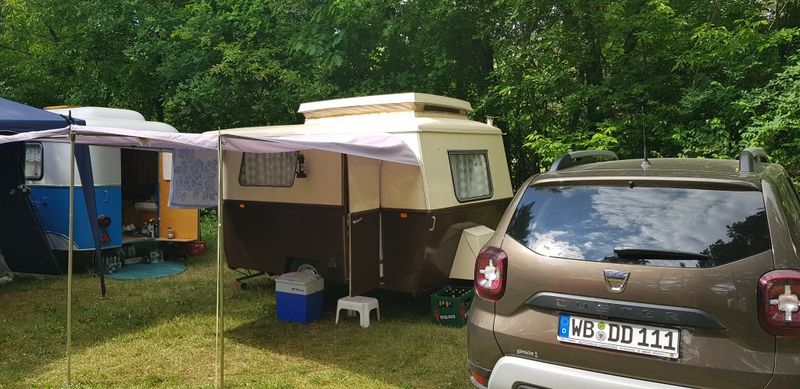 Beim gemeinsamen Frühtück haben wir das originellste Gespann prämiert. So konnte Micha mit dem Trabbi-Kübel und dem passenden Qek einen prima Liegestuhl, gesponsert von www.elbe-caravan.de, in Empfang nehmen