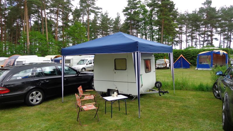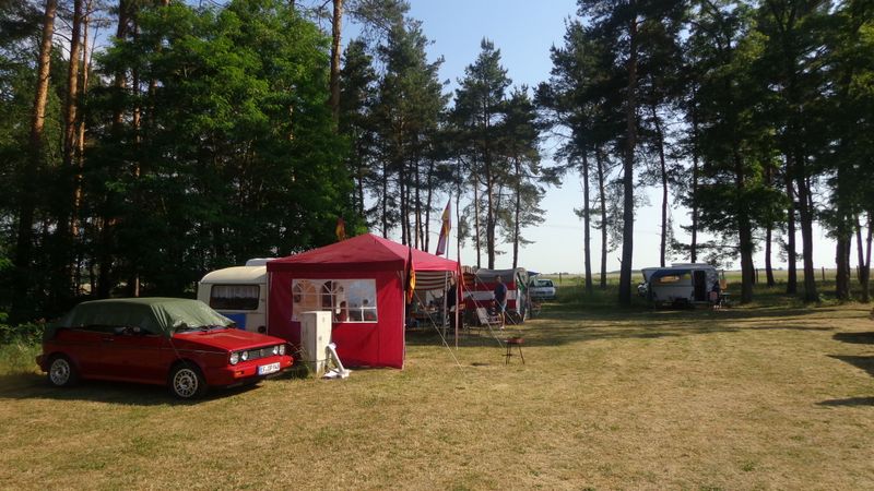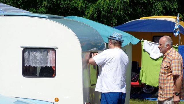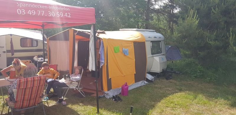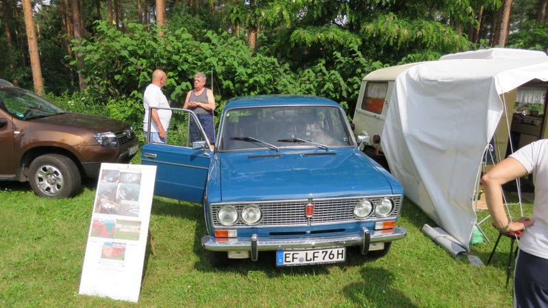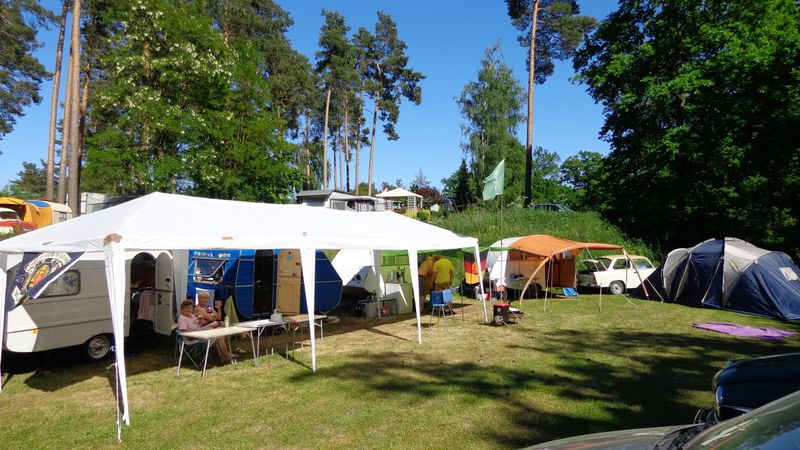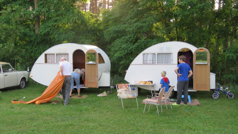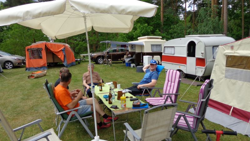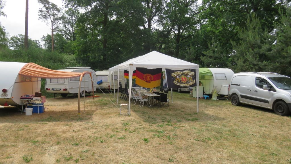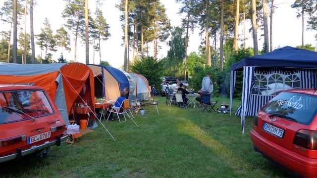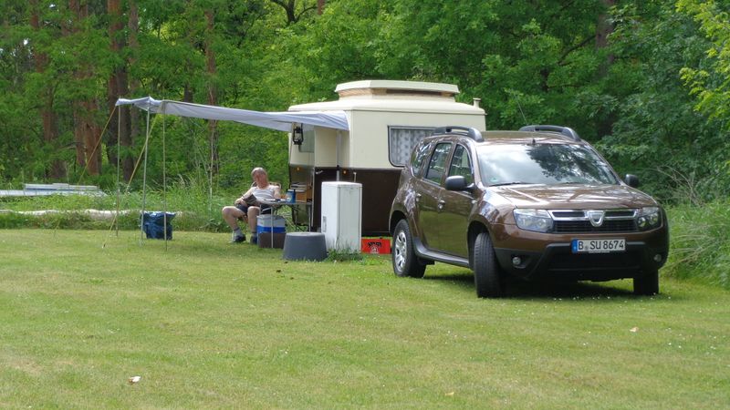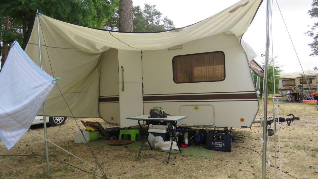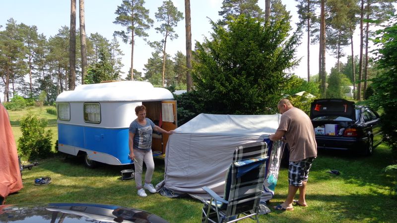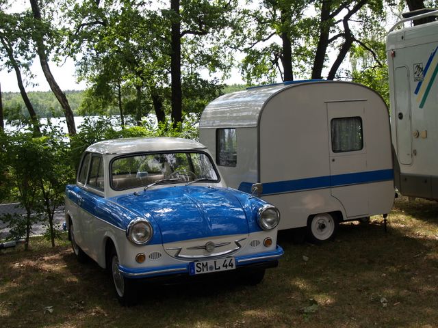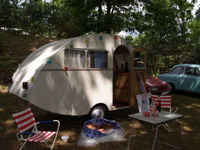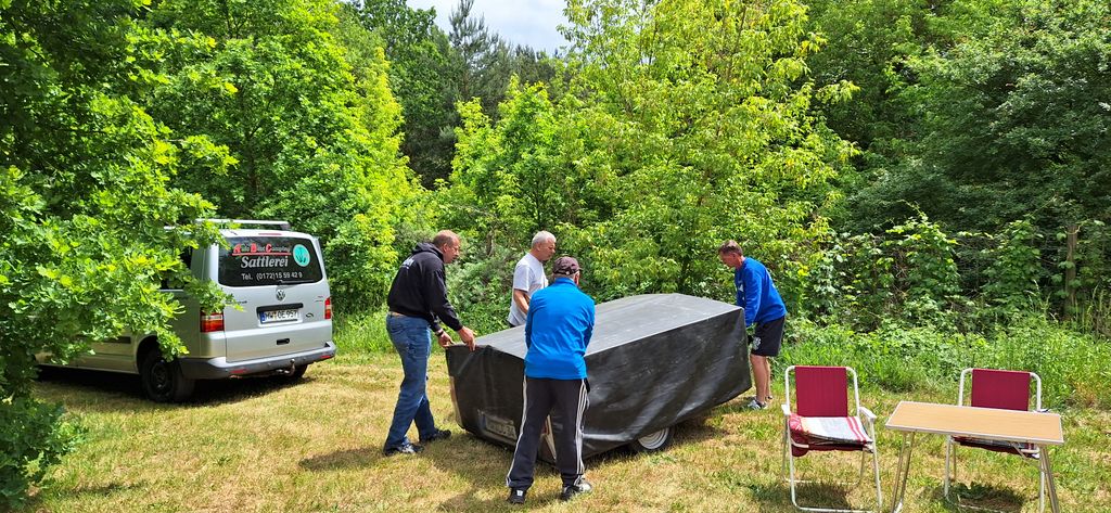 Beim gemeinsamen Frühtück haben wir das originellste Gespann prämiert. So konnte Micha mit dem Trabbi-Kübel und dem passenden Qek einen prima Liegestuhl, gesponsert von www.elbe-caravan.de, in Empfang nehmen