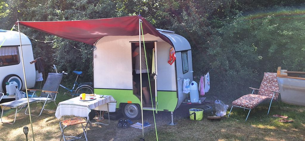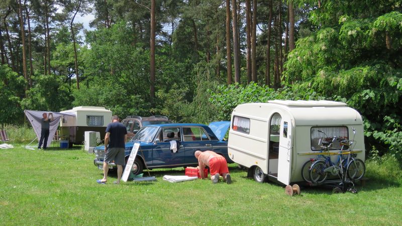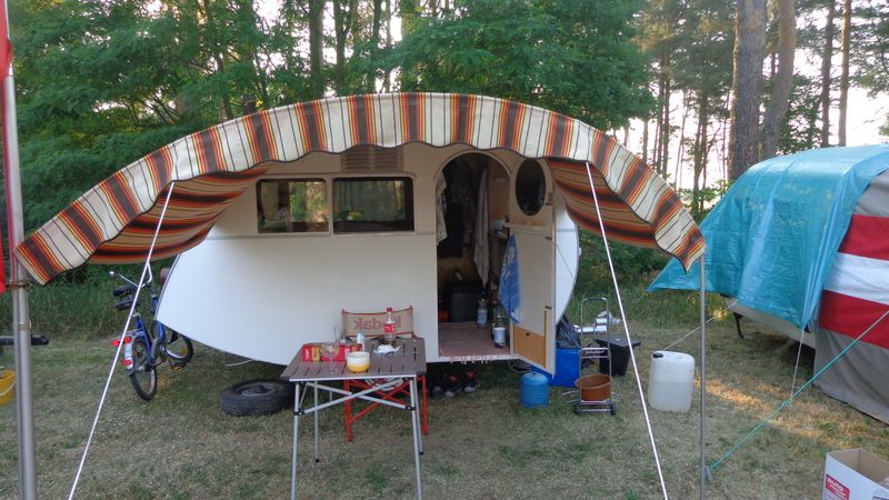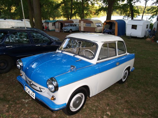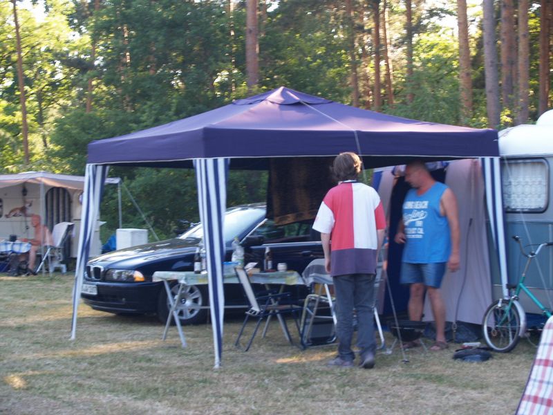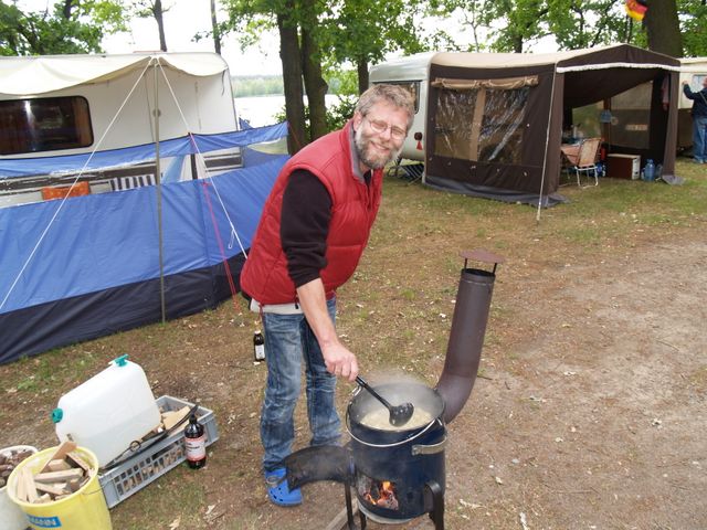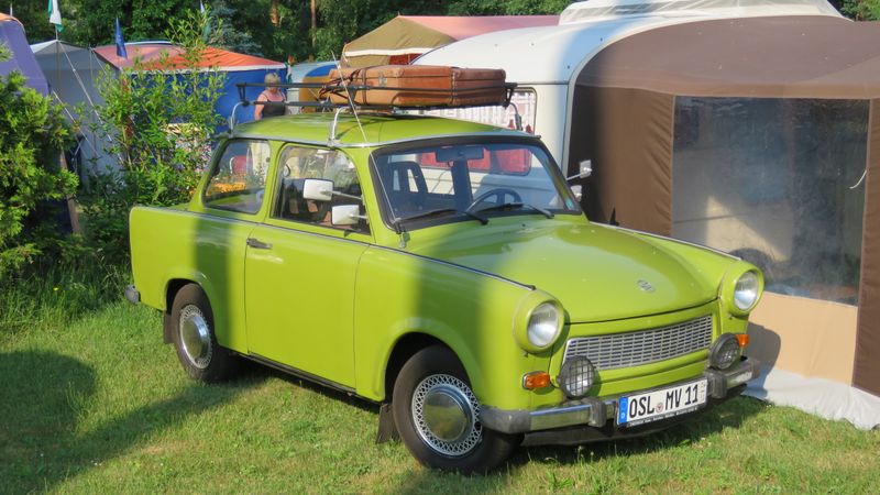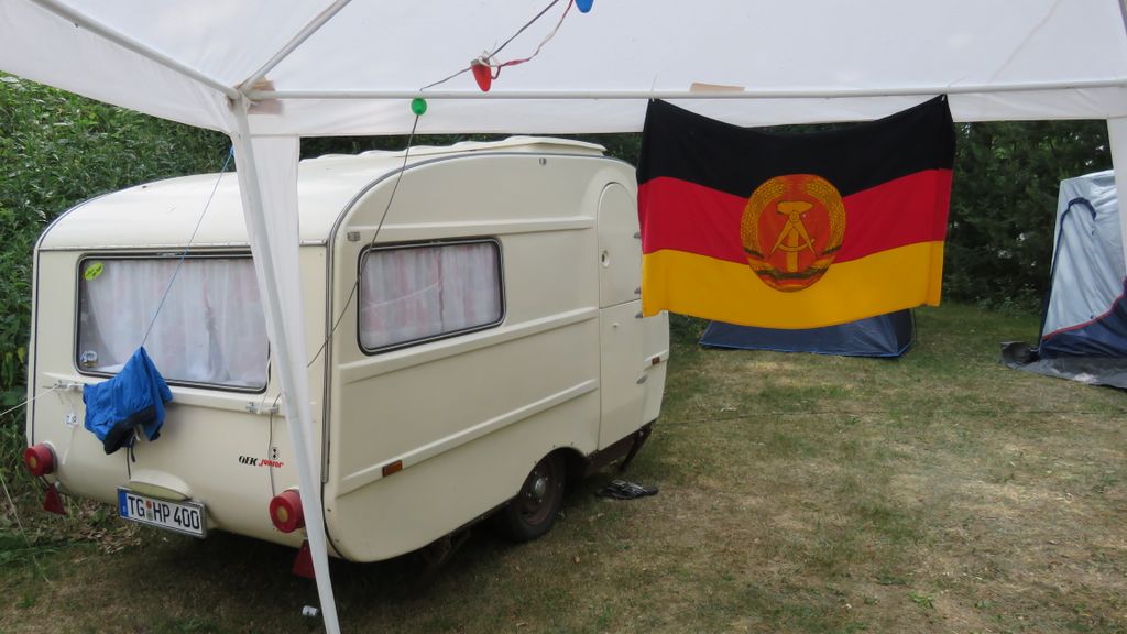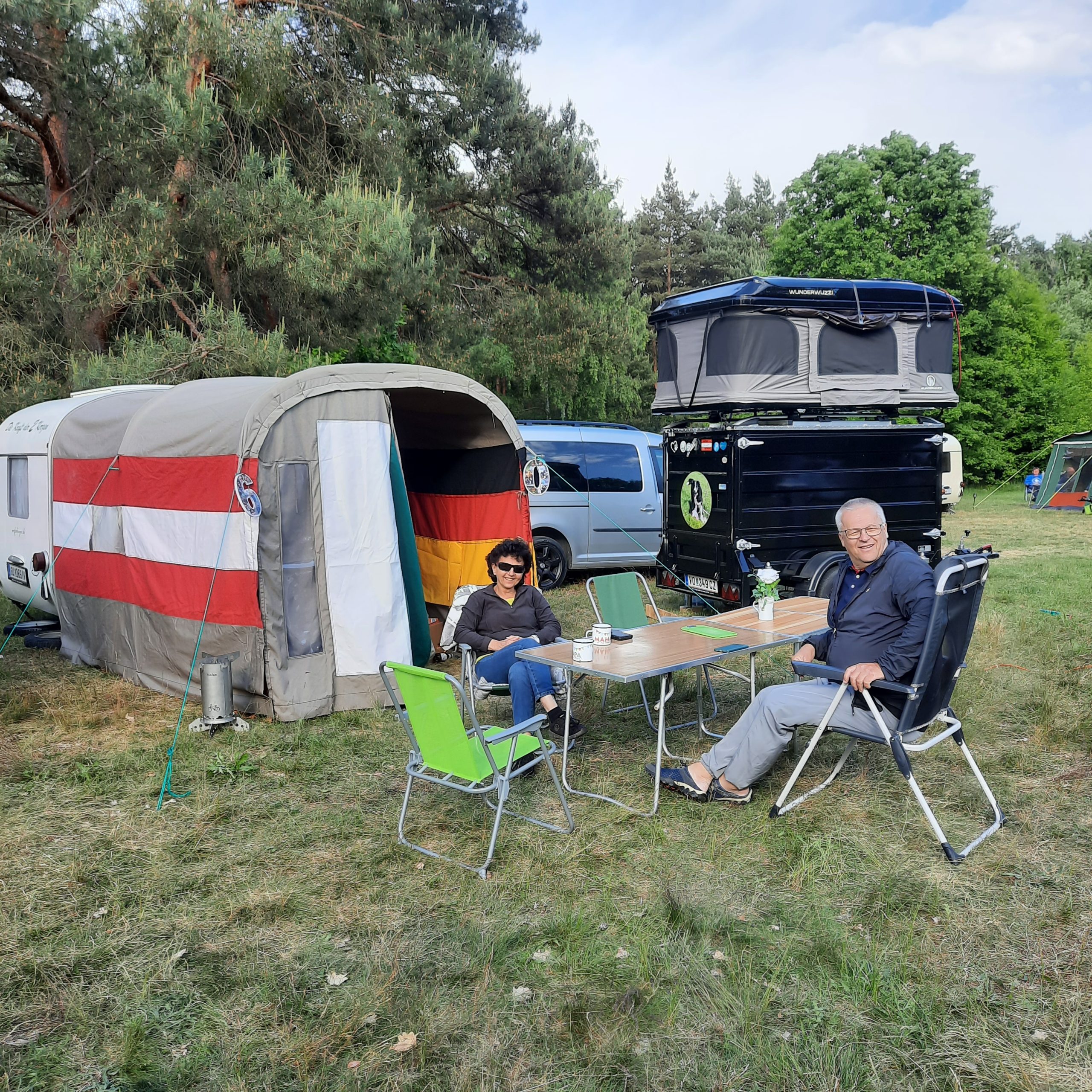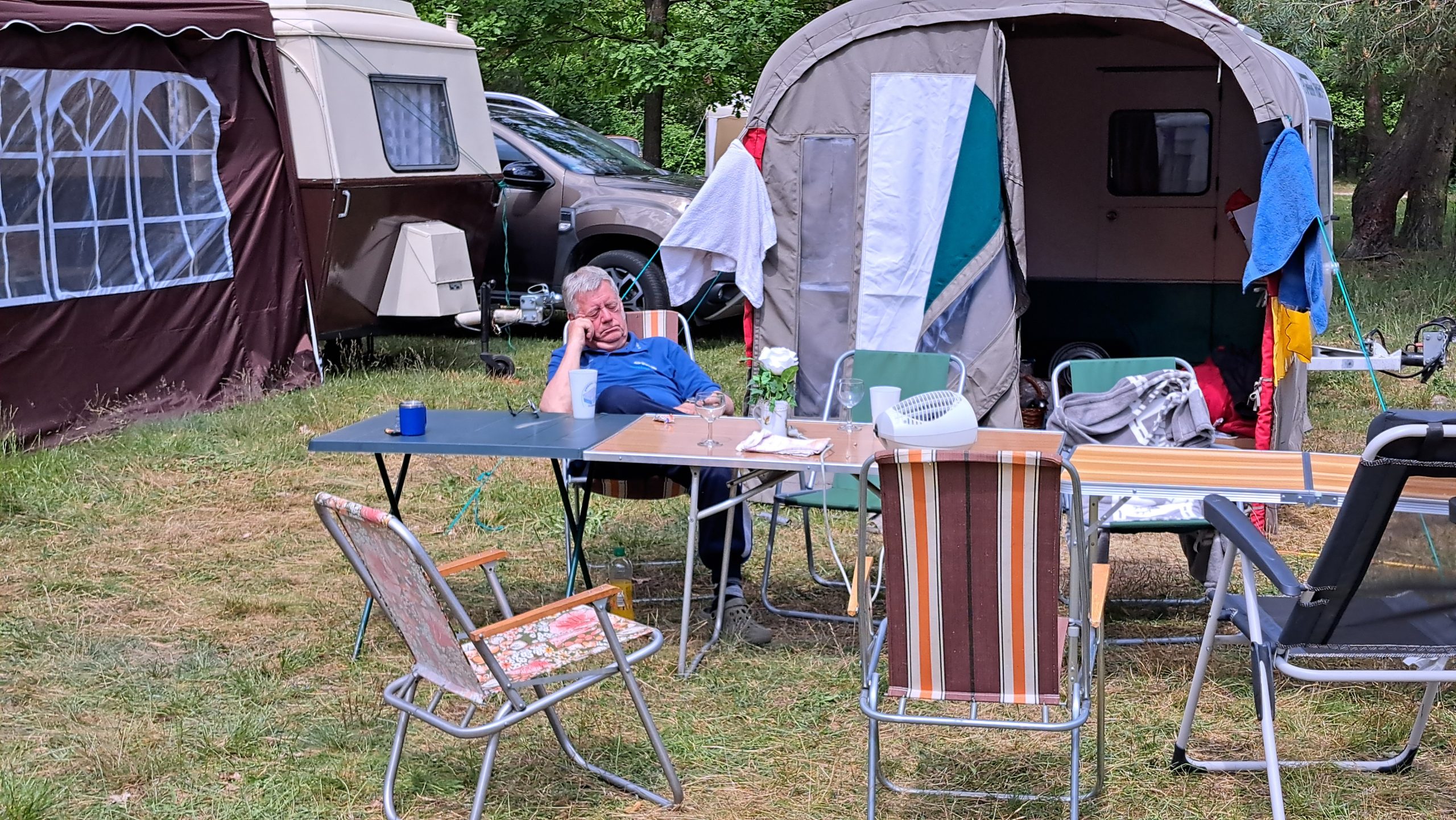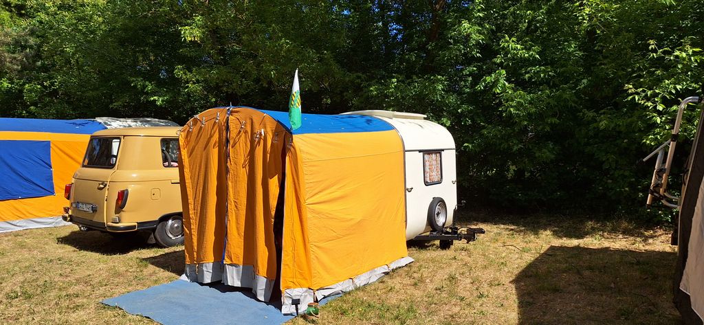 Beim gemeinsamen Frühtück haben wir das originellste Gespann prämiert. So konnte Micha mit dem Trabbi-Kübel und dem passenden Qek einen prima Liegestuhl, gesponsert von www.elbe-caravan.de, in Empfang nehmen