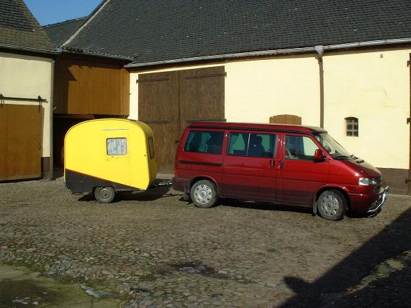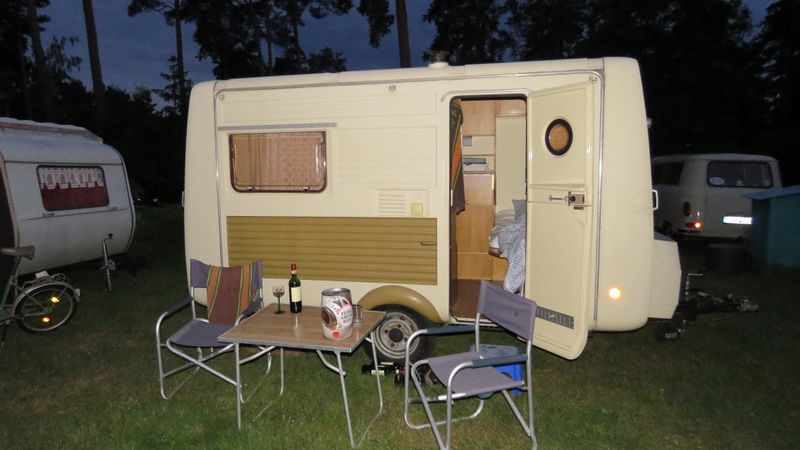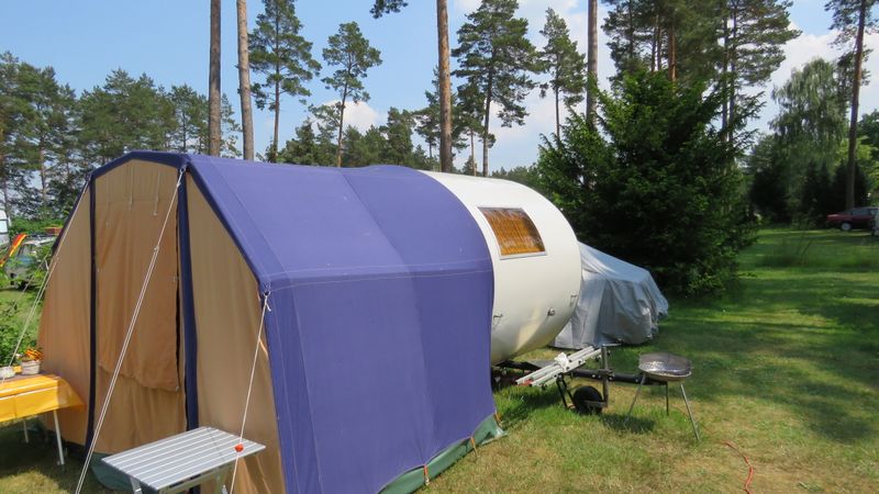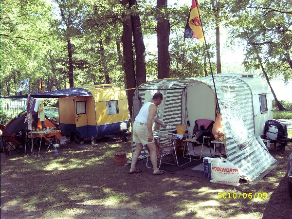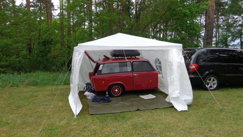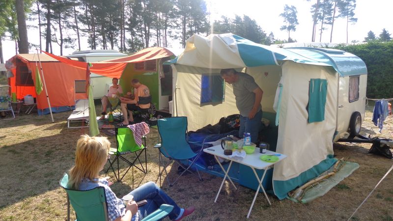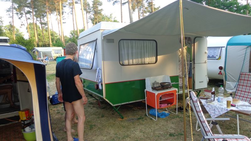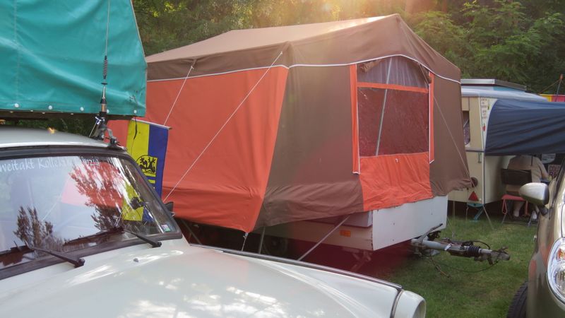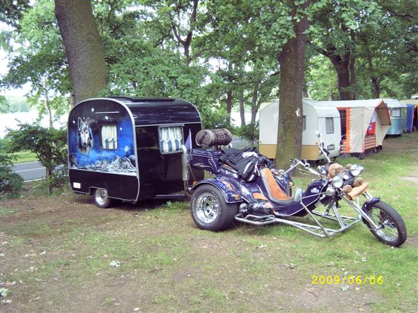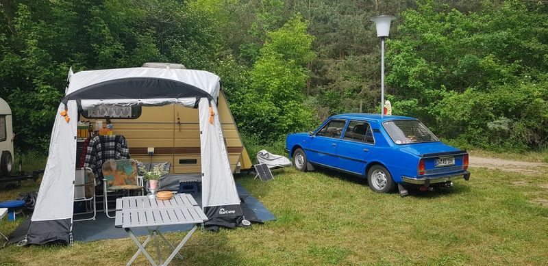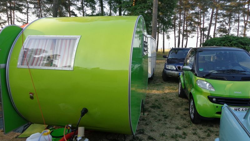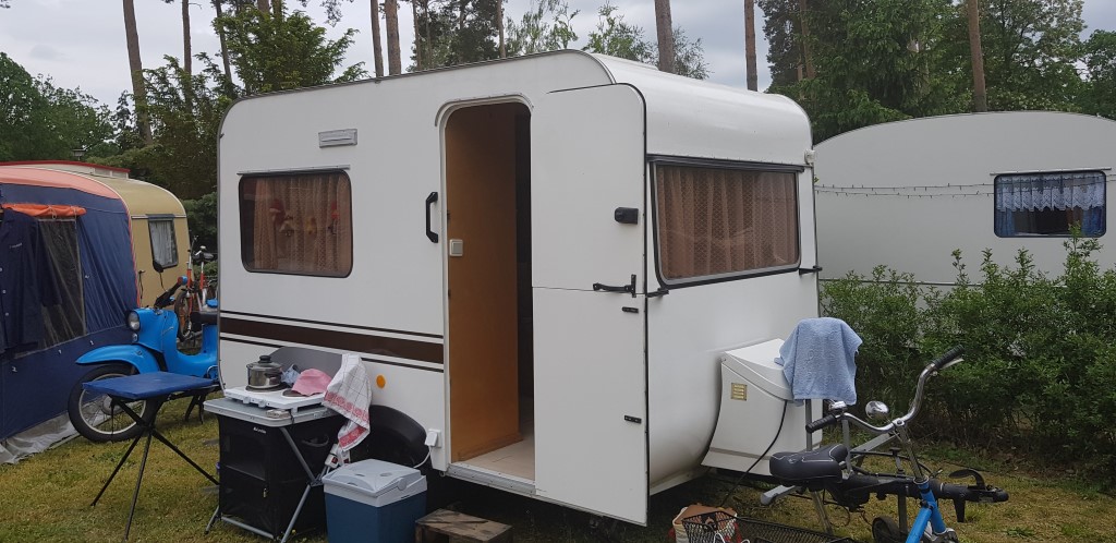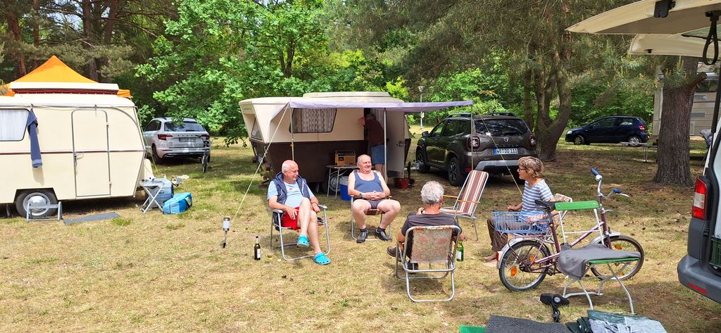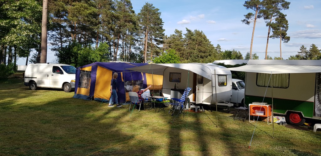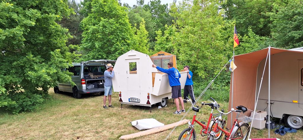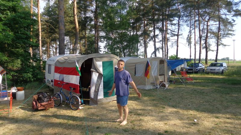 Beim gemeinsamen Frühtück haben wir das originellste Gespann prämiert. So konnte Micha mit dem Trabbi-Kübel und dem passenden Qek einen prima Liegestuhl, gesponsert von www.elbe-caravan.de, in Empfang nehmen