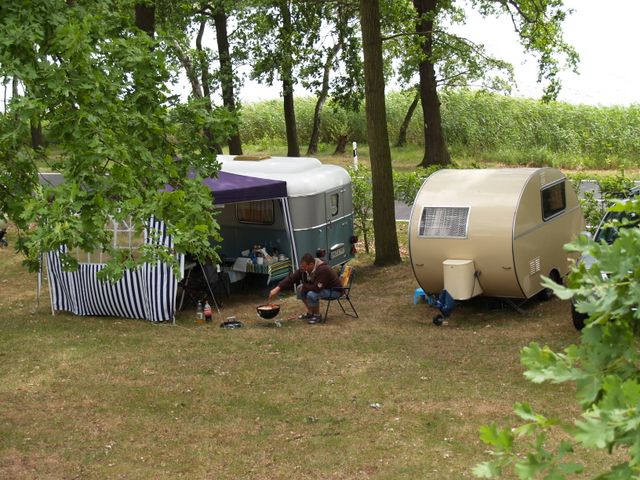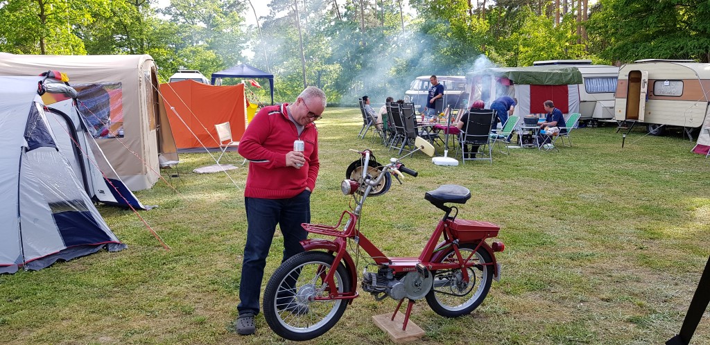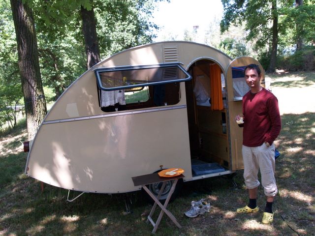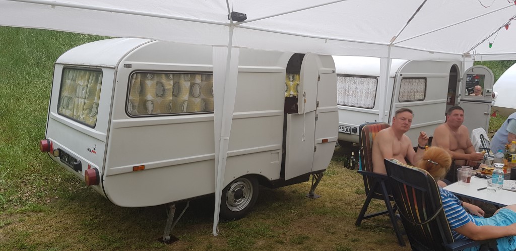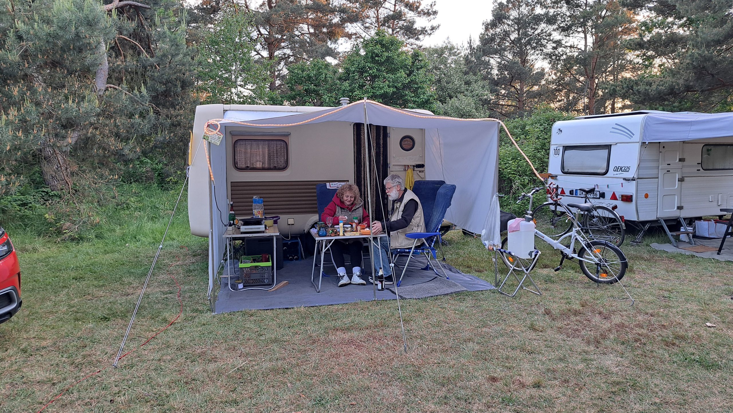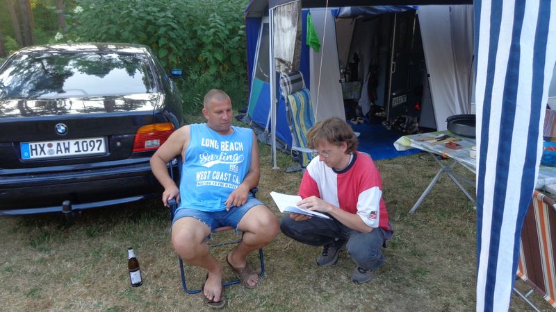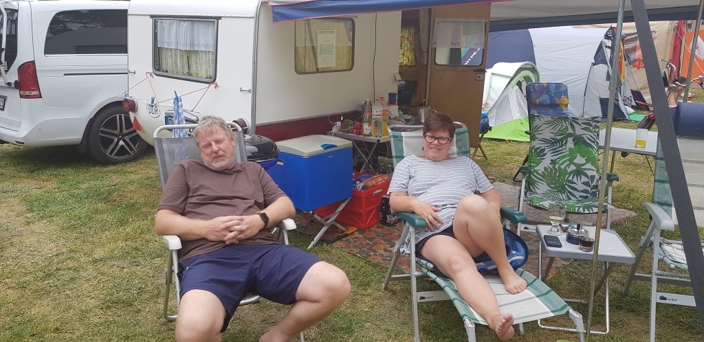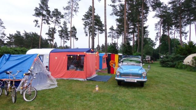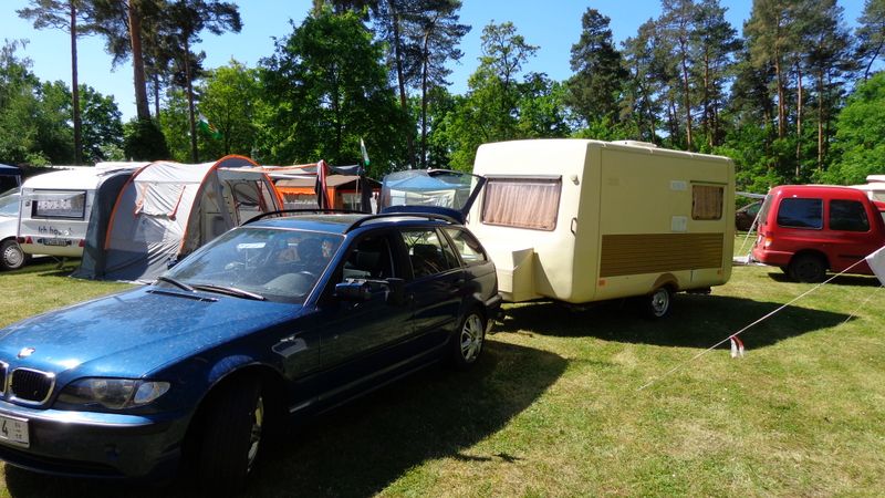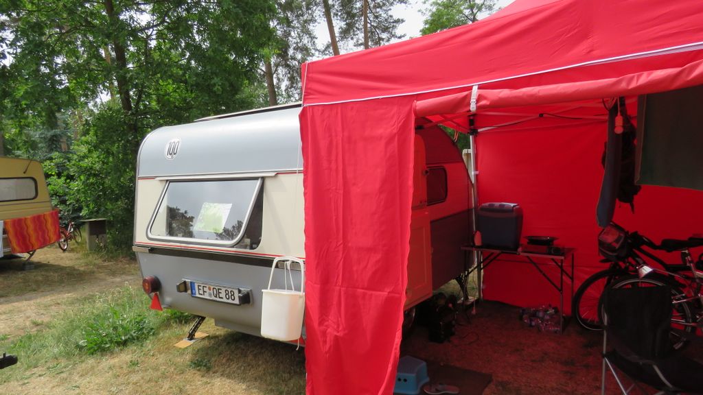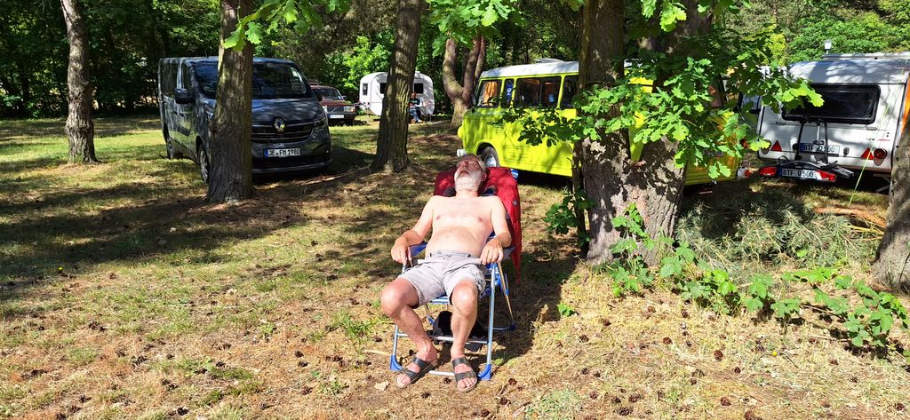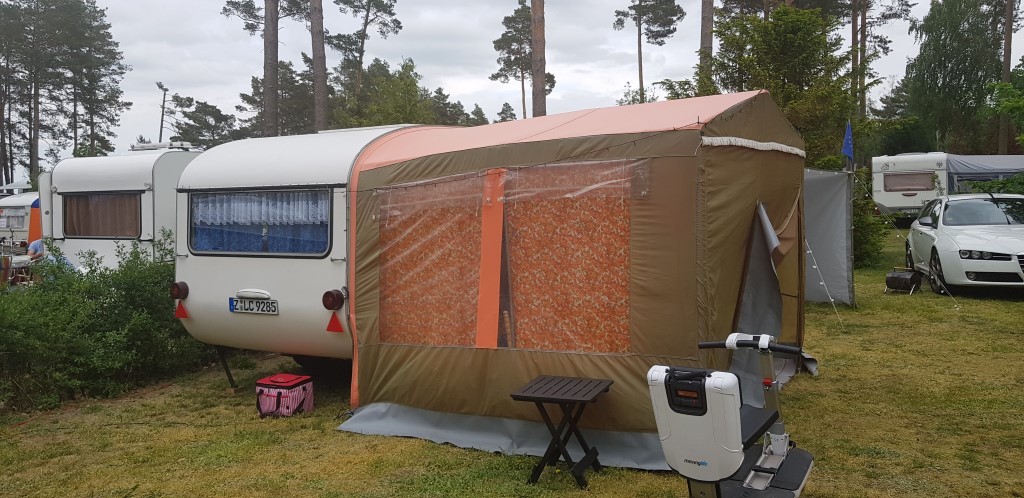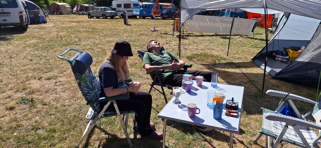 Beim gemeinsamen Frühtück haben wir das originellste Gespann prämiert. So konnte Micha mit dem Trabbi-Kübel und dem passenden Qek einen prima Liegestuhl, gesponsert von www.elbe-caravan.de, in Empfang nehmen
