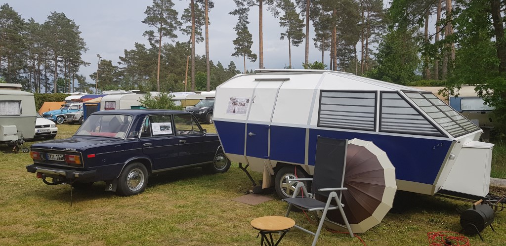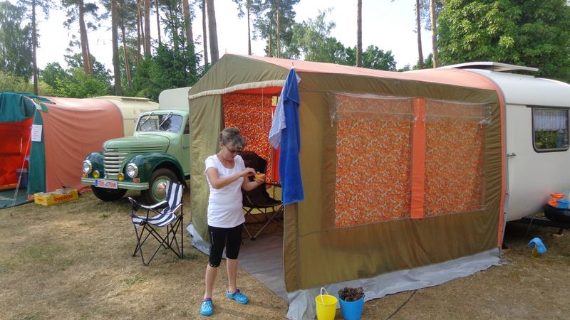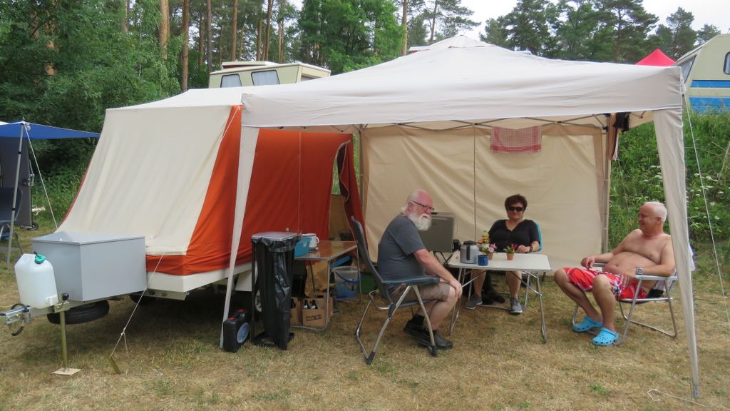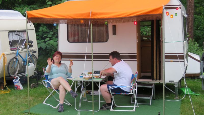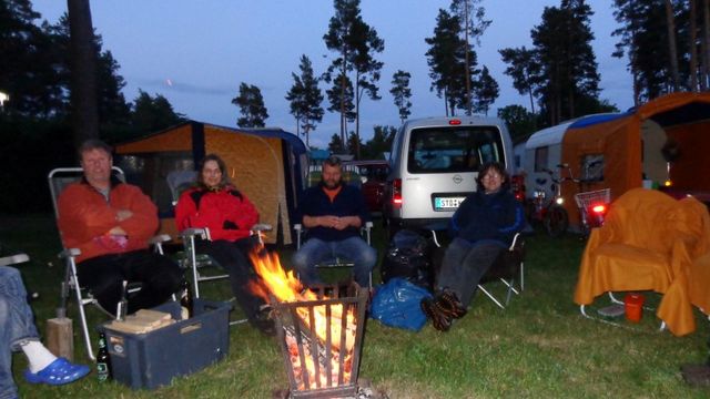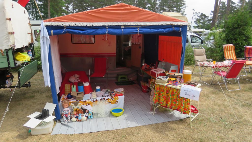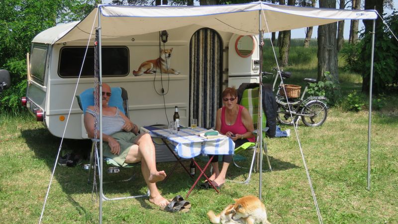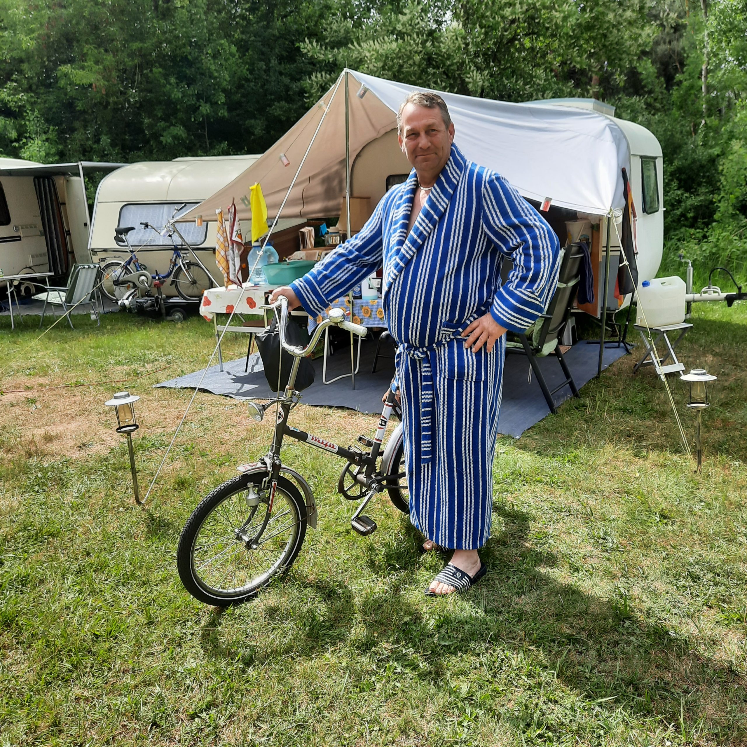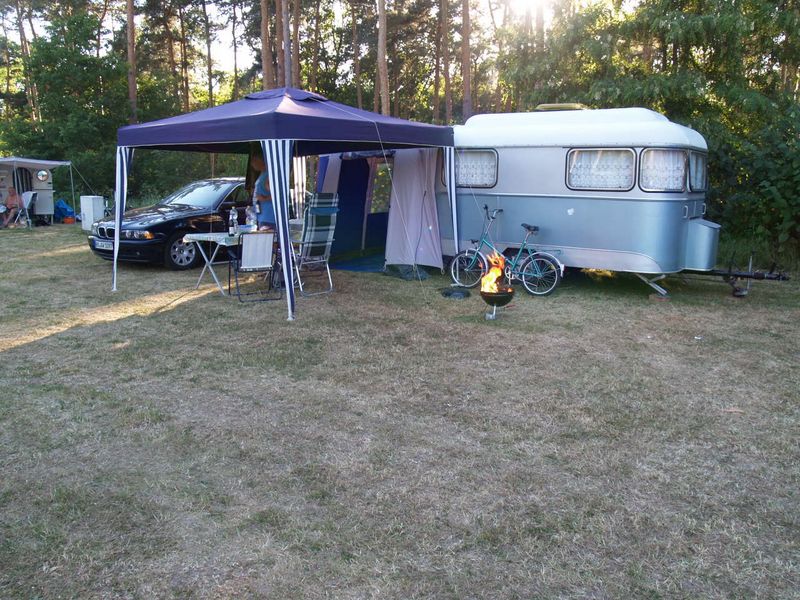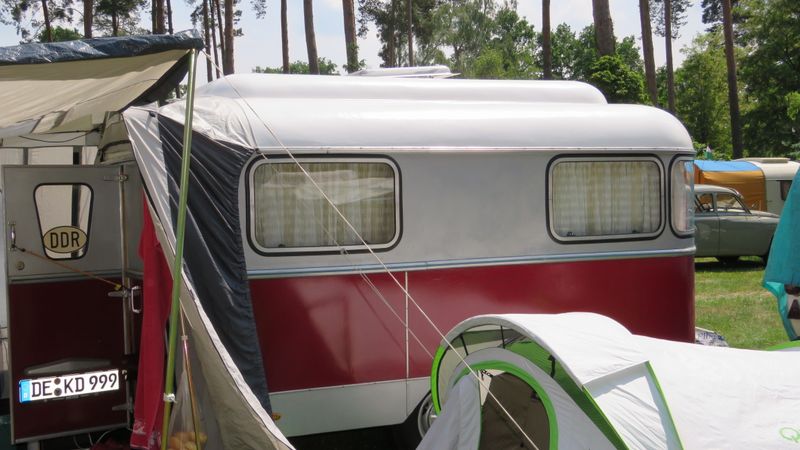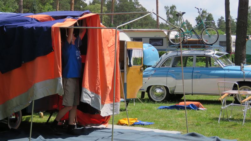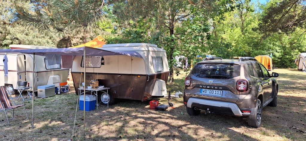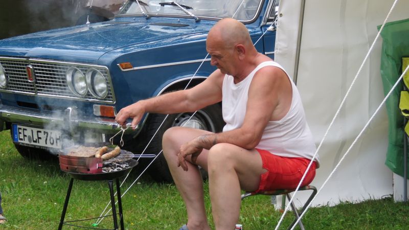 Beim gemeinsamen Frühtück haben wir das originellste Gespann prämiert. So konnte Micha mit dem Trabbi-Kübel und dem passenden Qek einen prima Liegestuhl, gesponsert von www.elbe-caravan.de, in Empfang nehmen