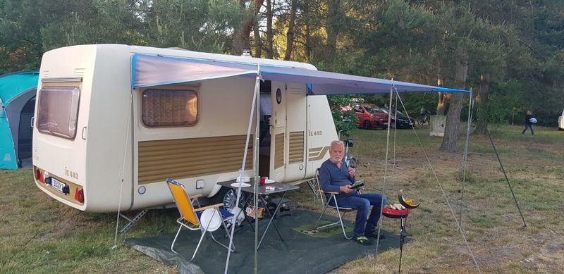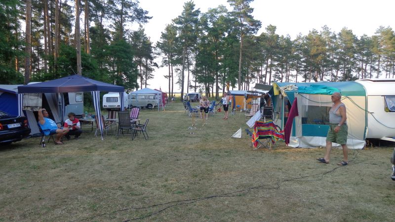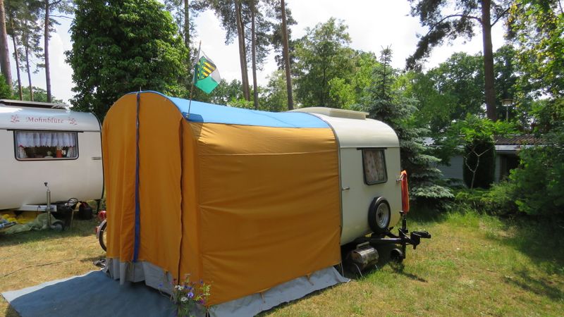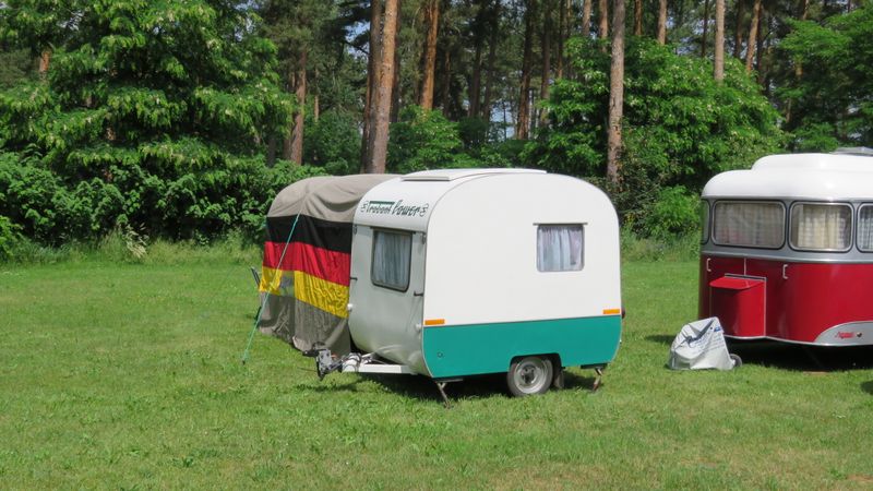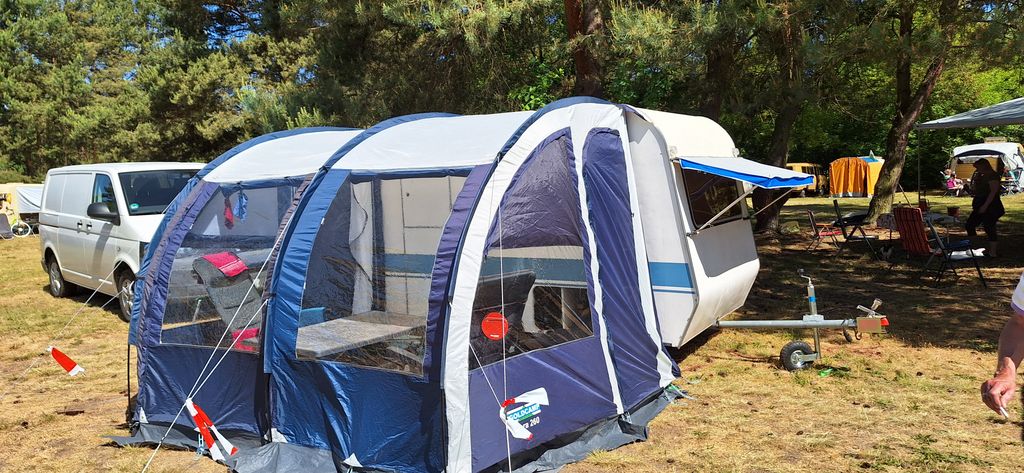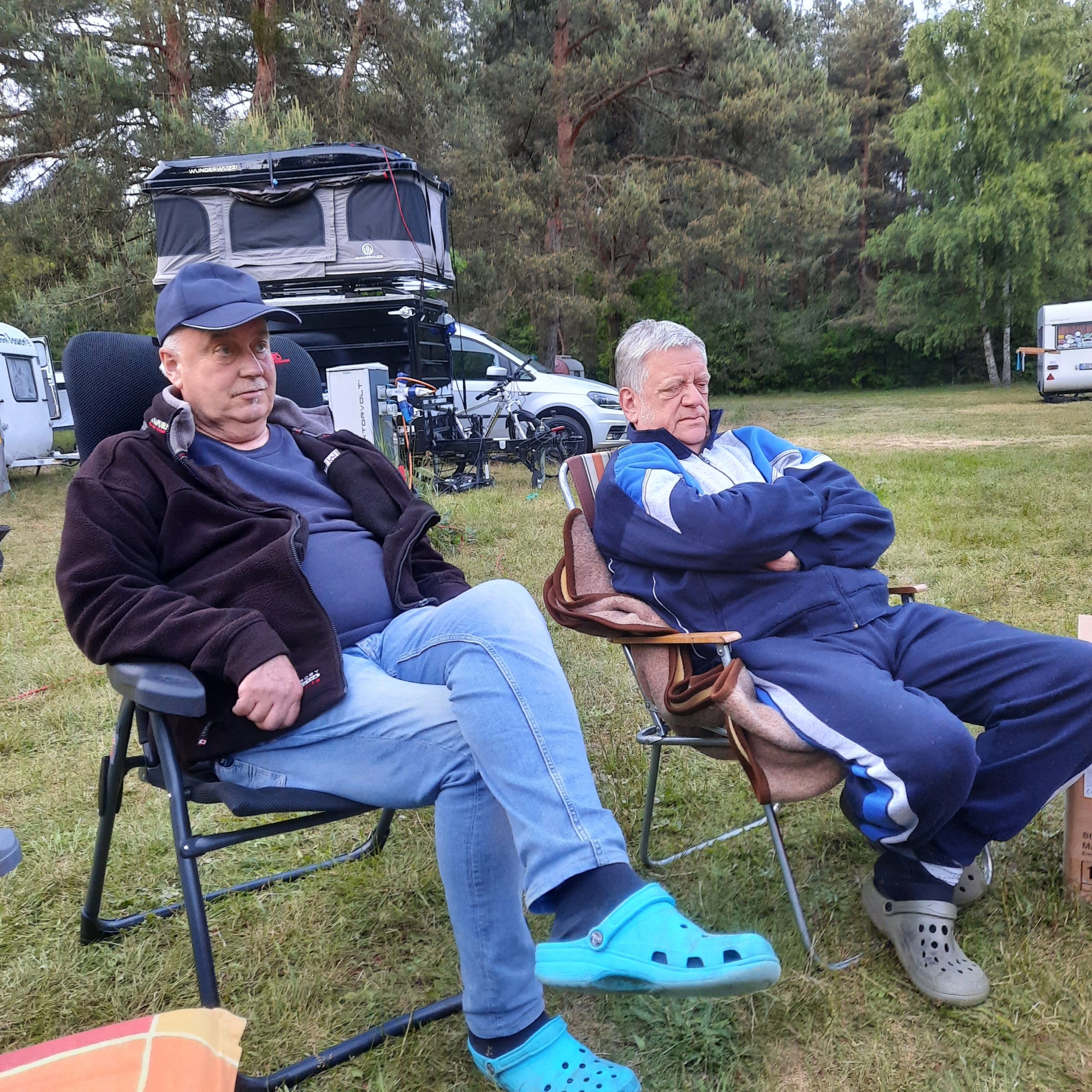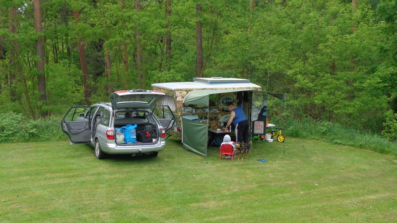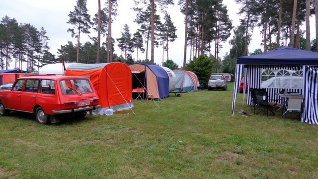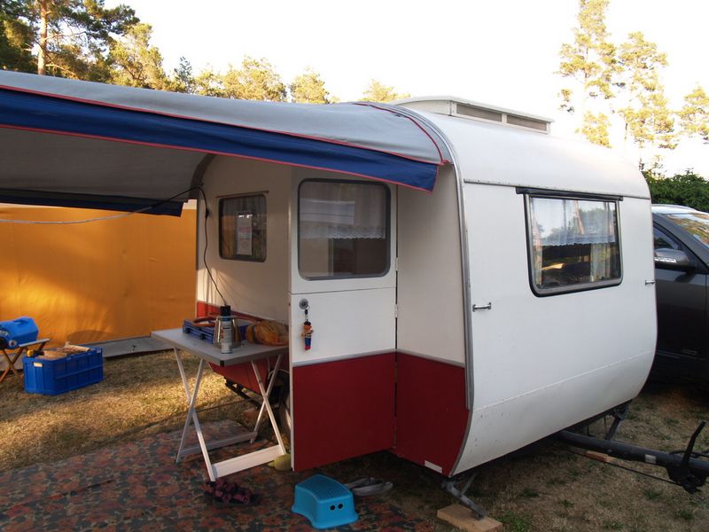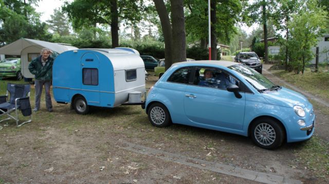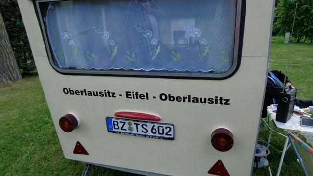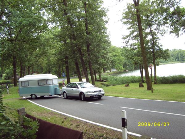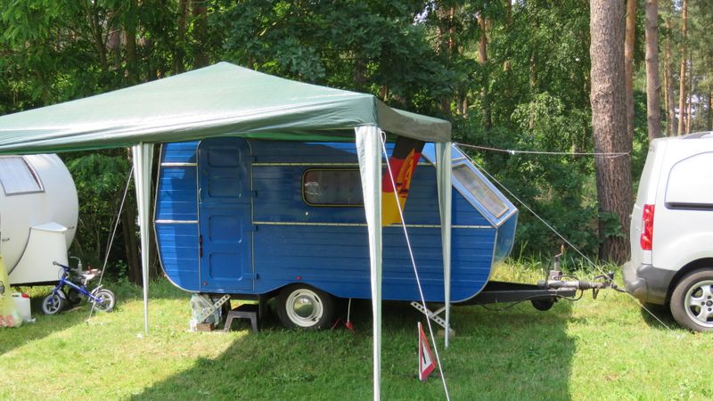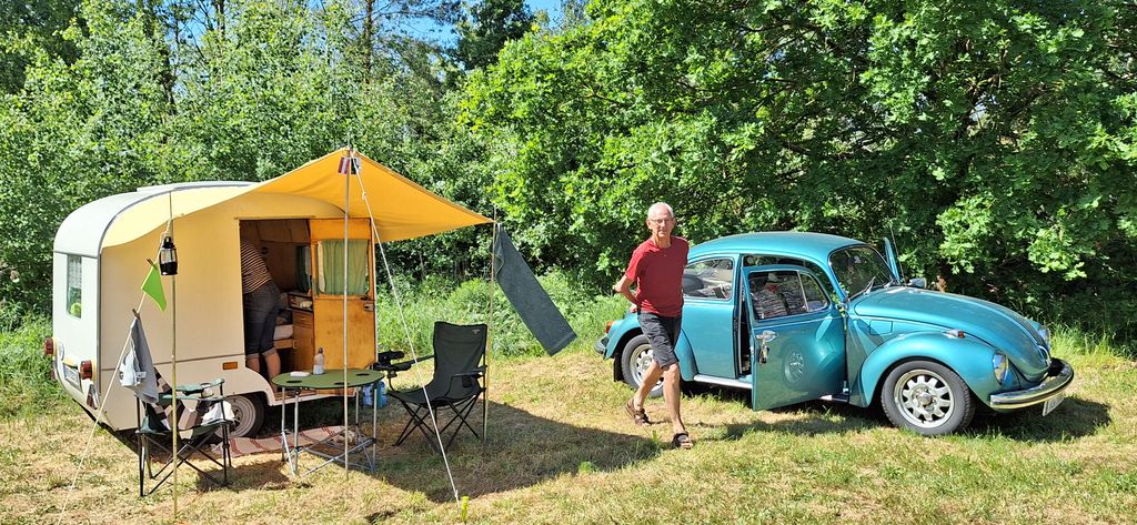 Beim gemeinsamen Frühtück haben wir das originellste Gespann prämiert. So konnte Micha mit dem Trabbi-Kübel und dem passenden Qek einen prima Liegestuhl, gesponsert von www.elbe-caravan.de, in Empfang nehmen