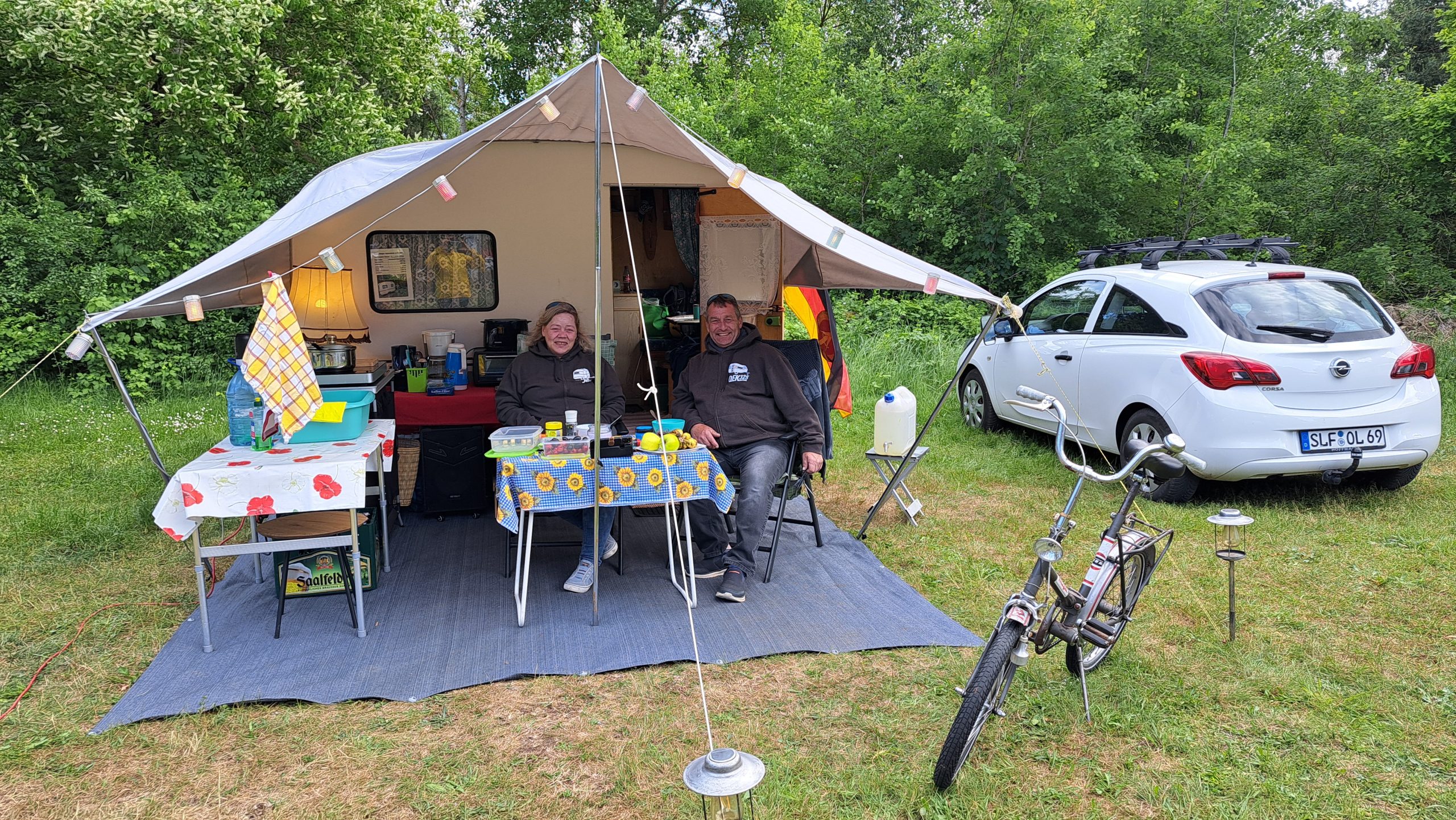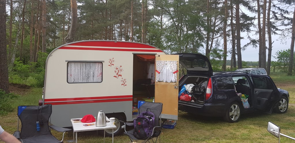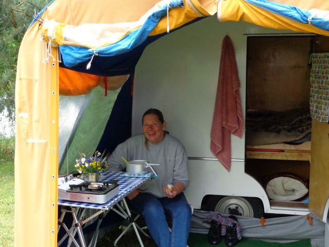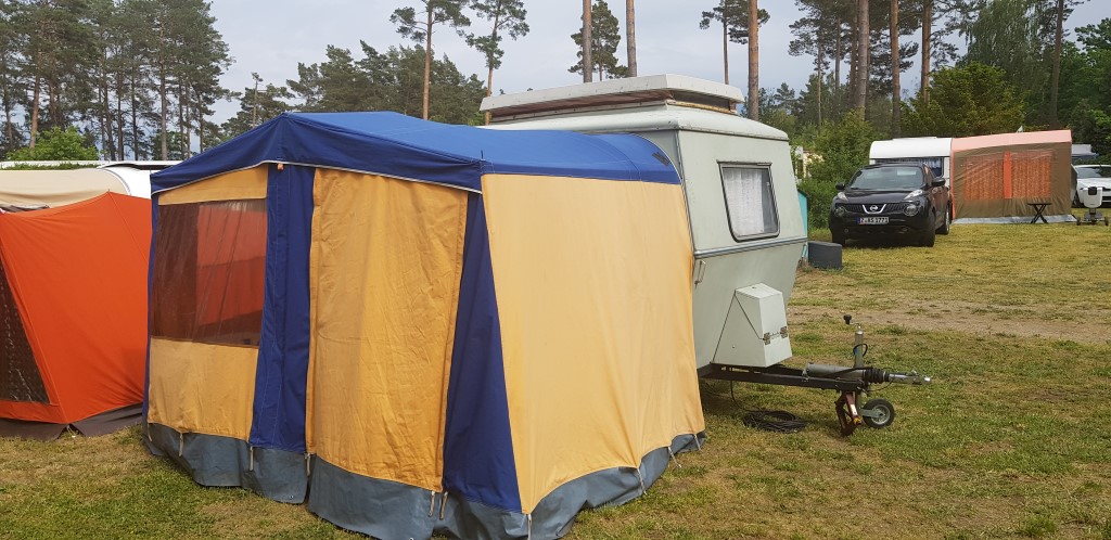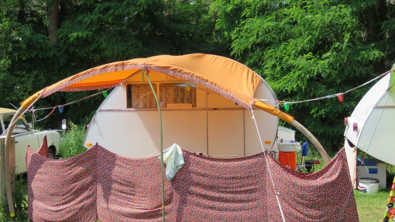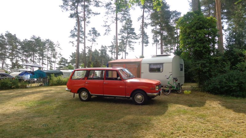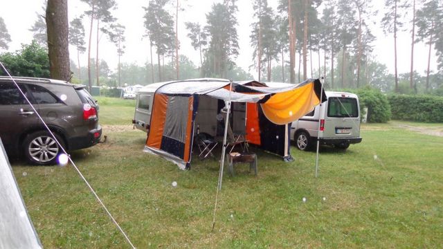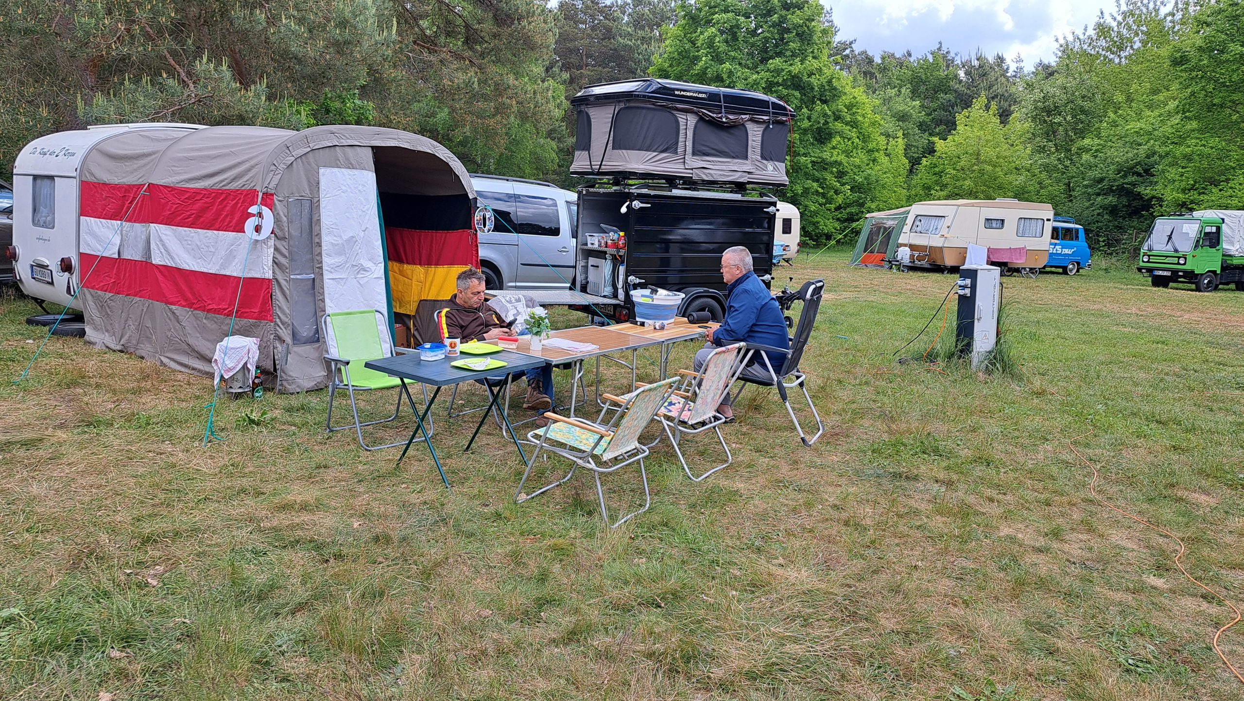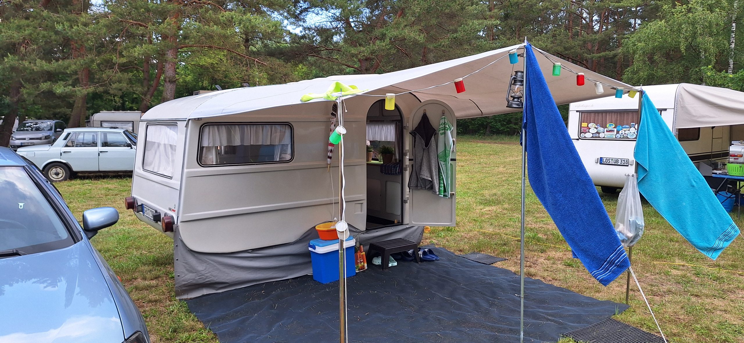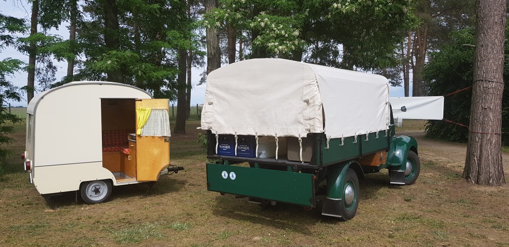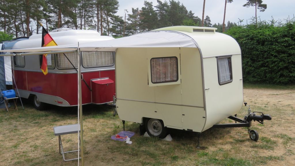 Beim gemeinsamen Frühtück haben wir das originellste Gespann prämiert. So konnte Micha mit dem Trabbi-Kübel und dem passenden Qek einen prima Liegestuhl, gesponsert von www.elbe-caravan.de, in Empfang nehmen