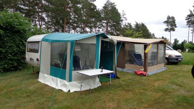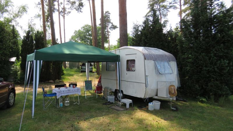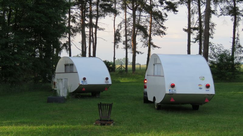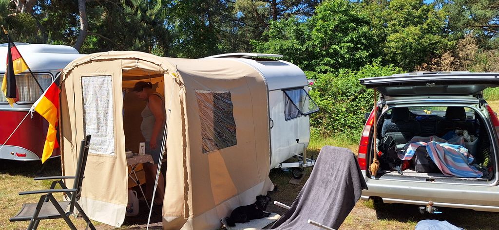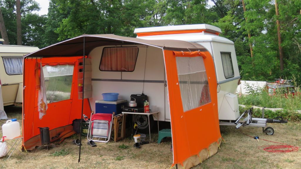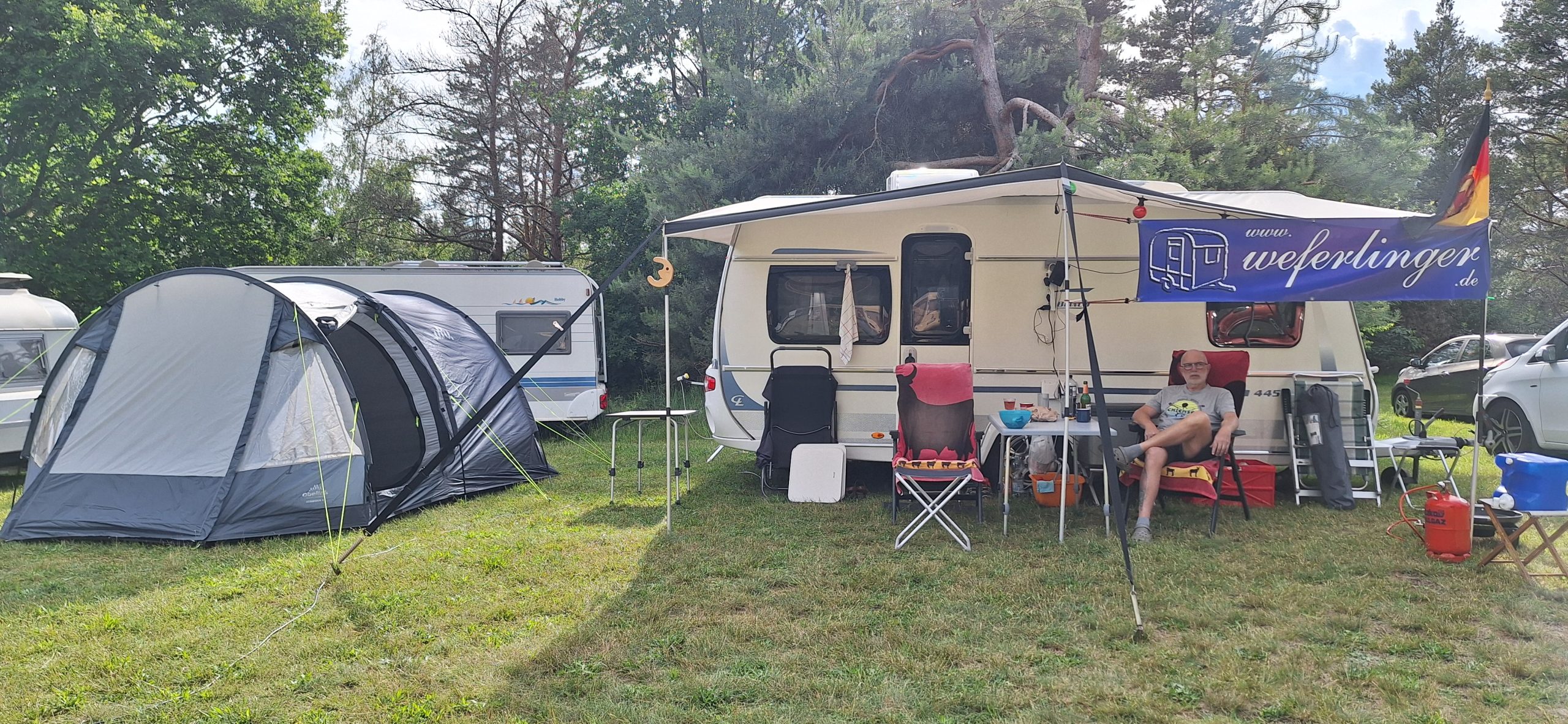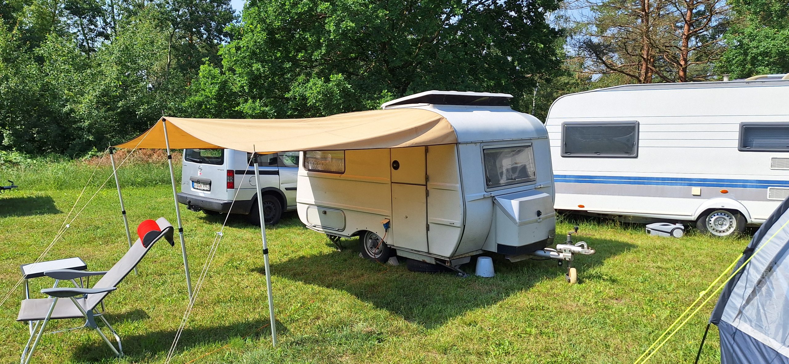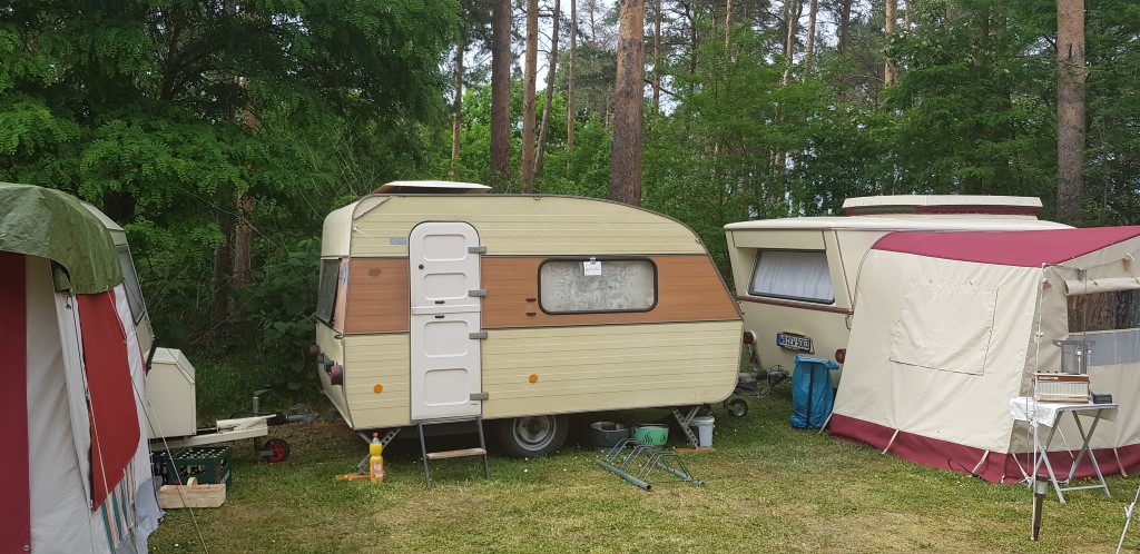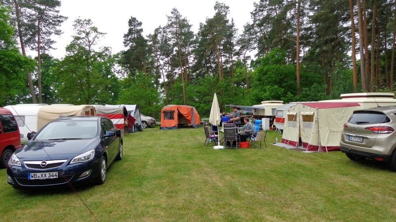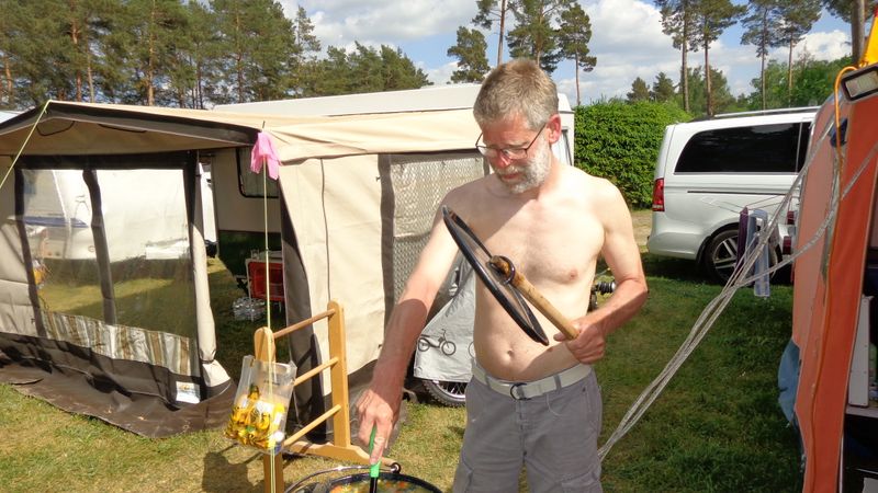 Beim gemeinsamen Frühtück haben wir das originellste Gespann prämiert. So konnte Micha mit dem Trabbi-Kübel und dem passenden Qek einen prima Liegestuhl, gesponsert von www.elbe-caravan.de, in Empfang nehmen