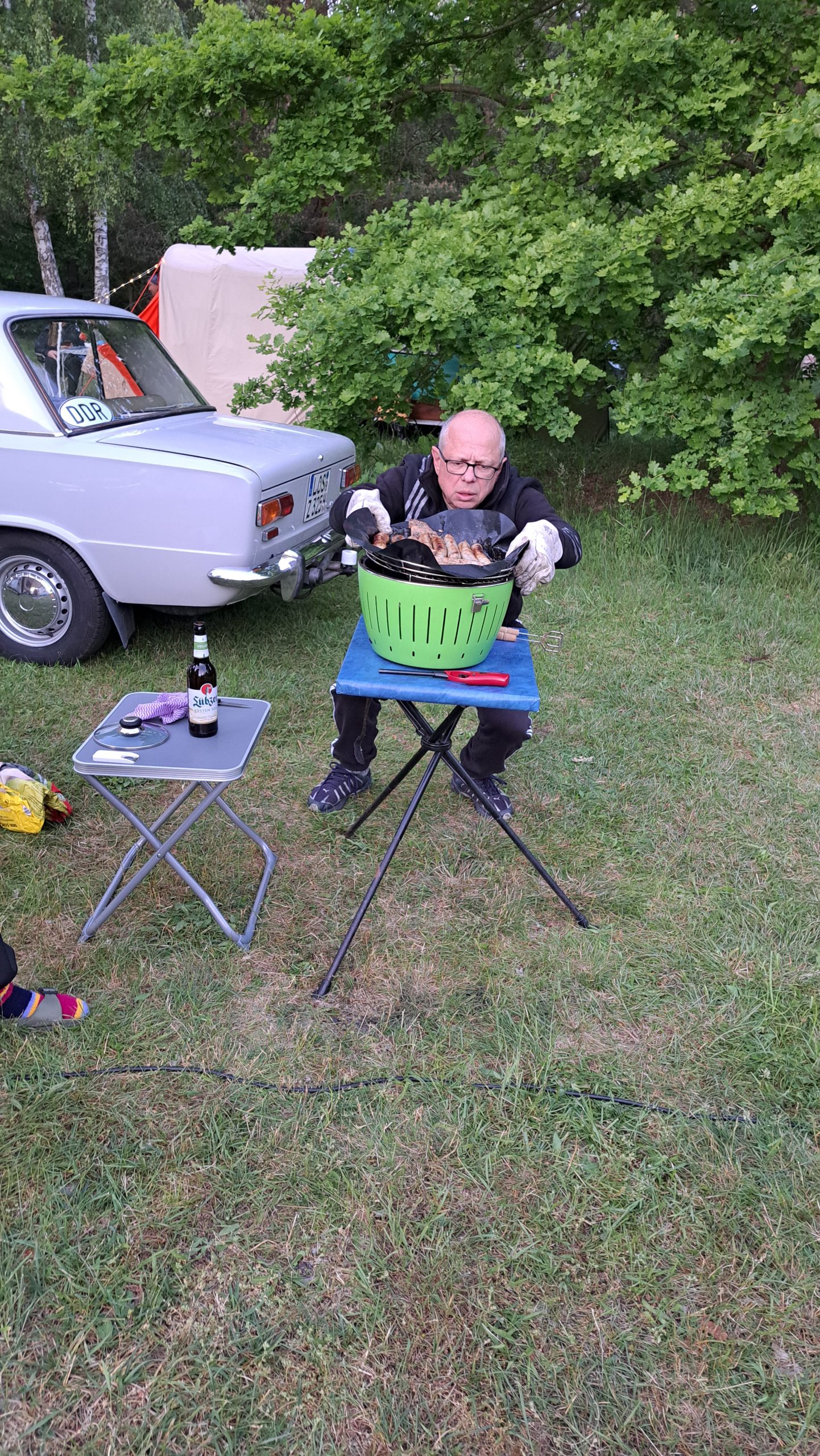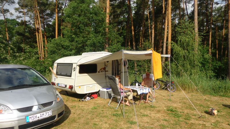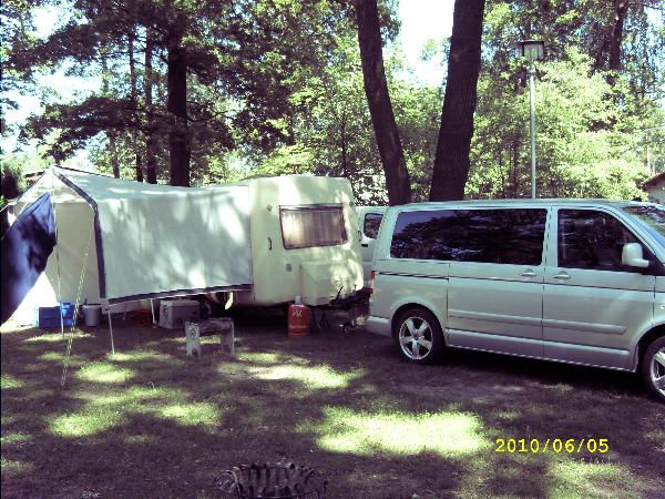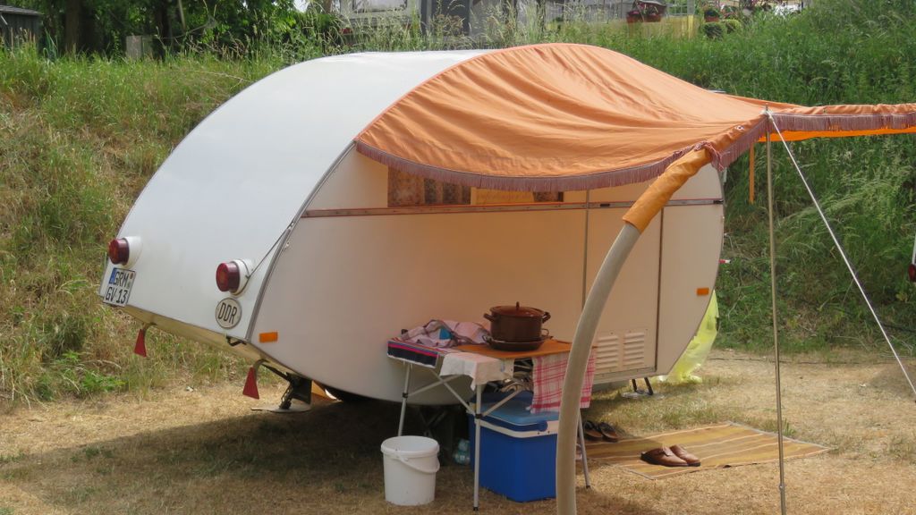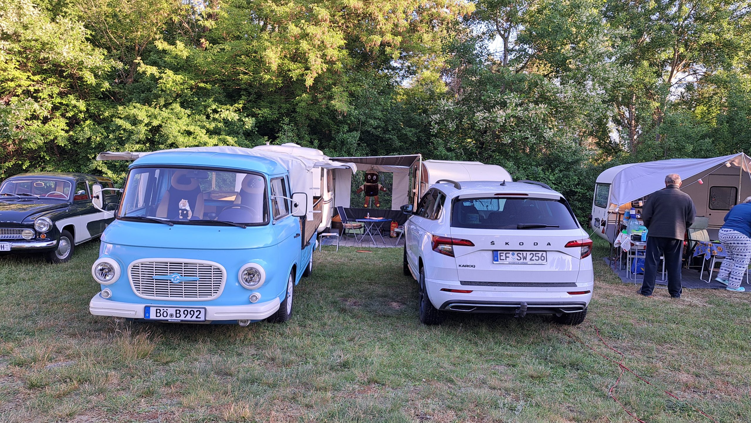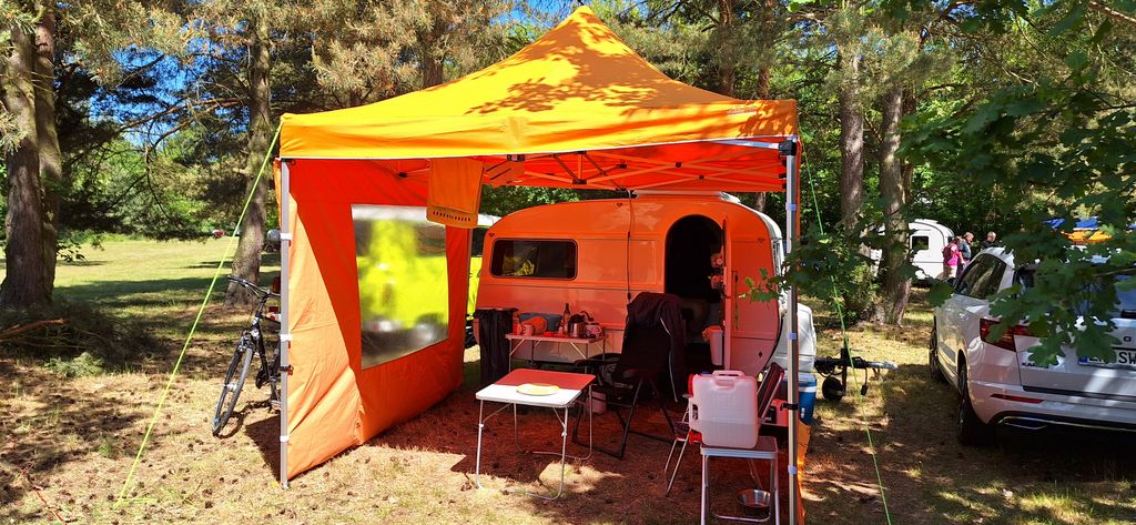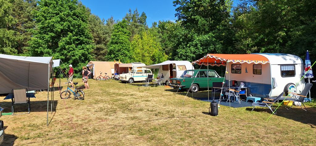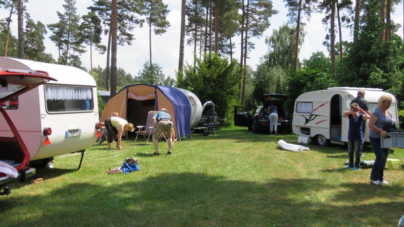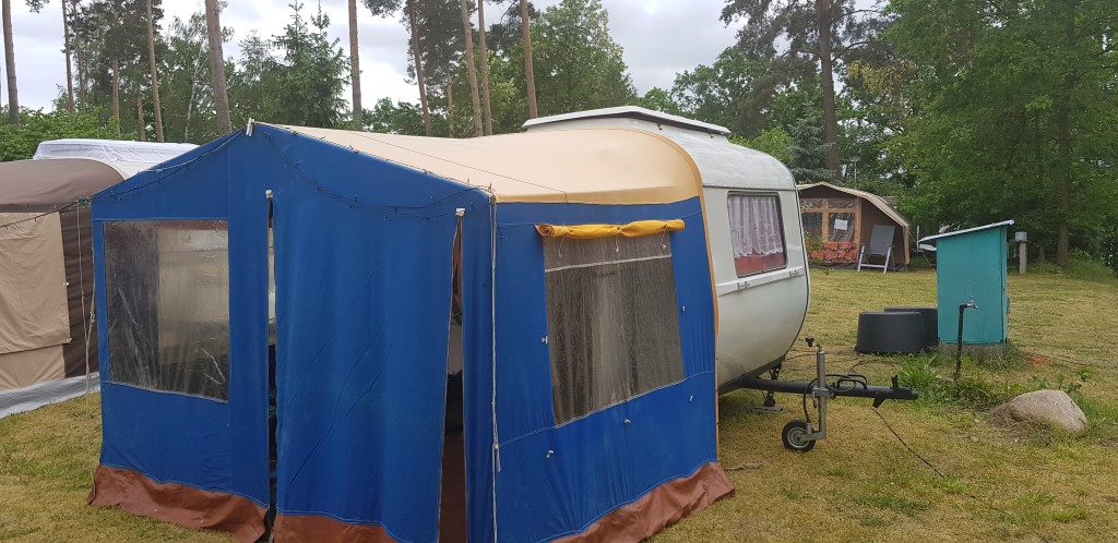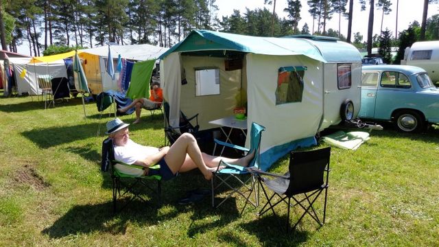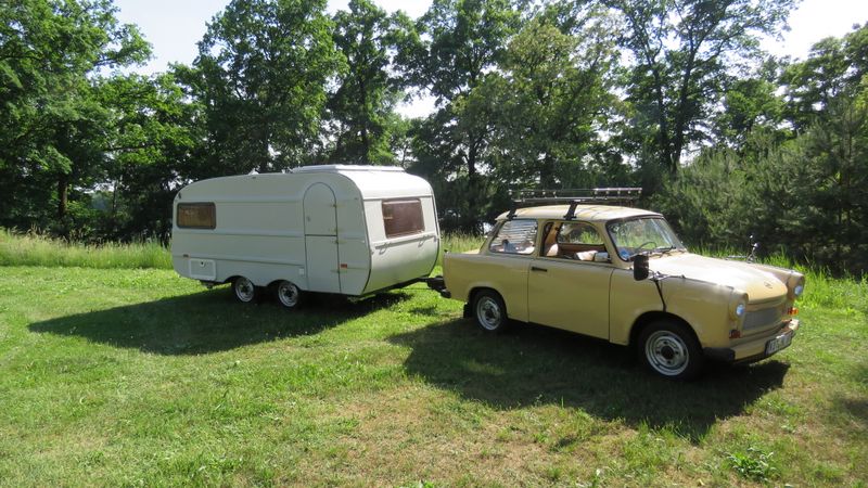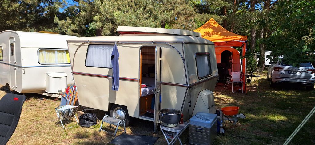 Beim gemeinsamen Frühtück haben wir das originellste Gespann prämiert. So konnte Micha mit dem Trabbi-Kübel und dem passenden Qek einen prima Liegestuhl, gesponsert von www.elbe-caravan.de, in Empfang nehmen