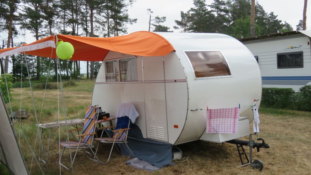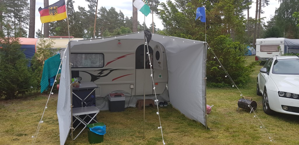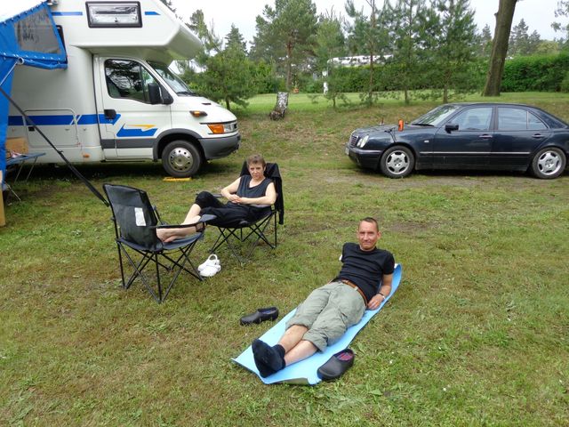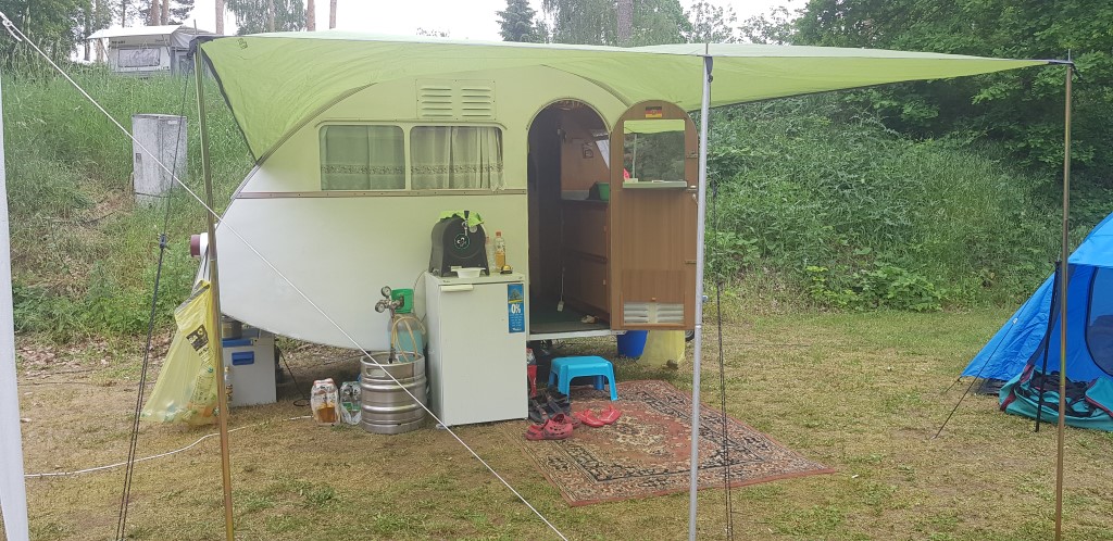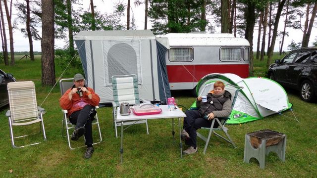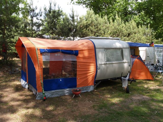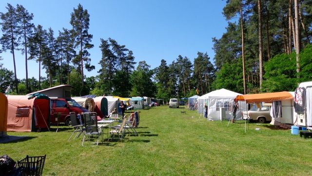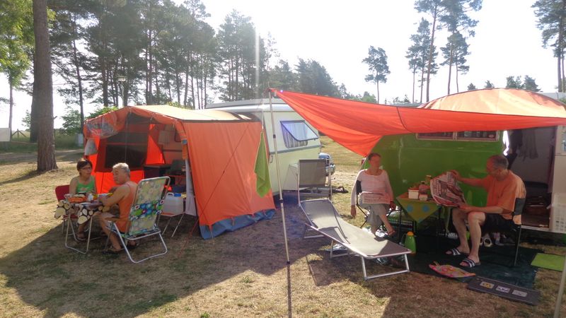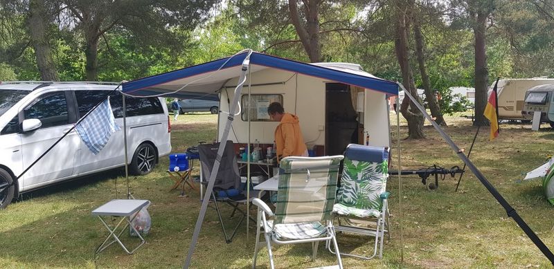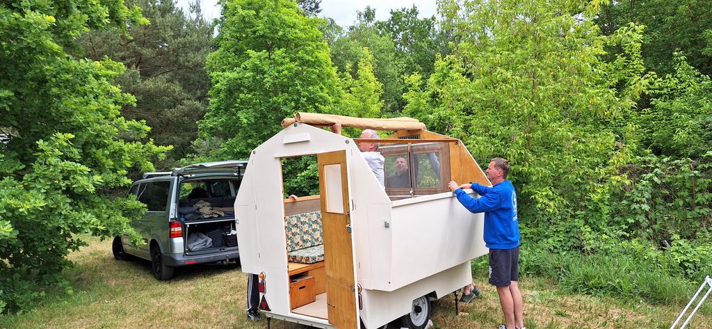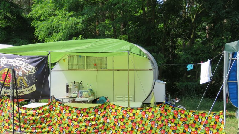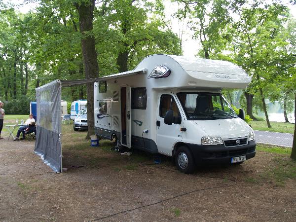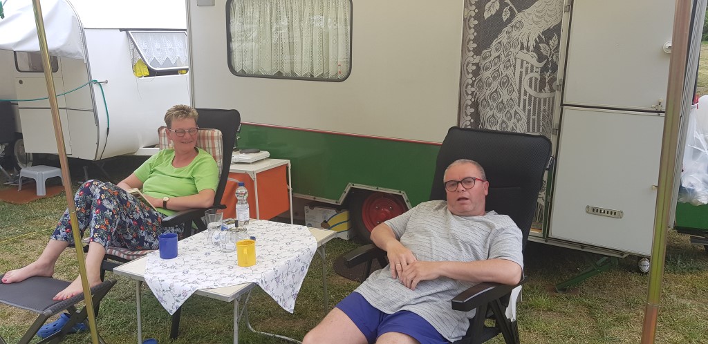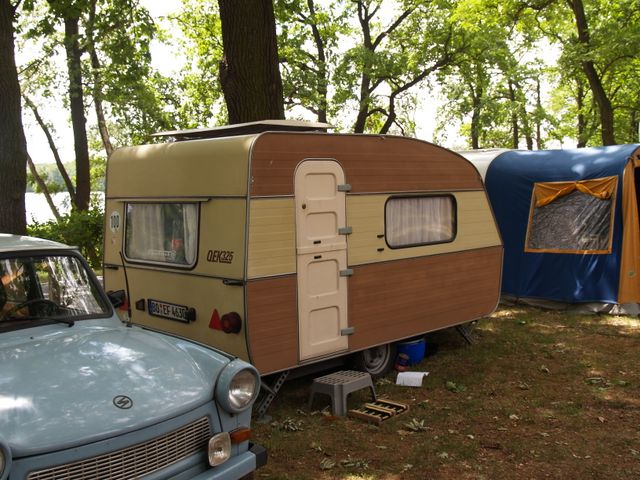 Beim gemeinsamen Frühtück haben wir das originellste Gespann prämiert. So konnte Micha mit dem Trabbi-Kübel und dem passenden Qek einen prima Liegestuhl, gesponsert von www.elbe-caravan.de, in Empfang nehmen