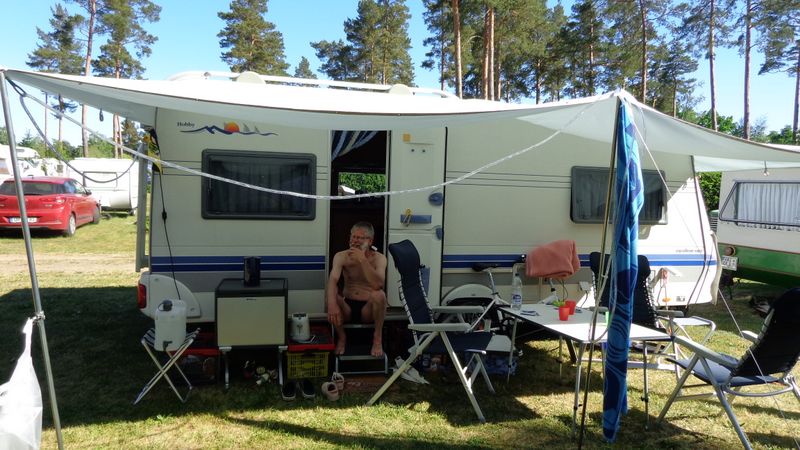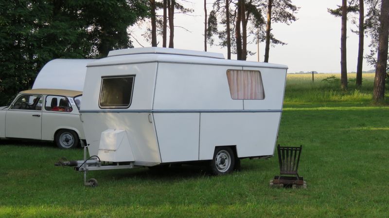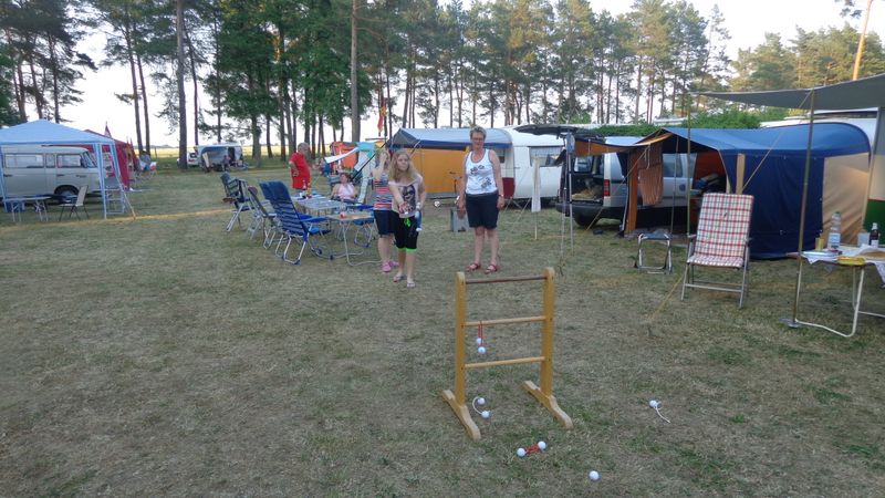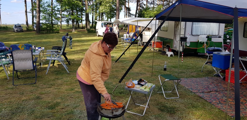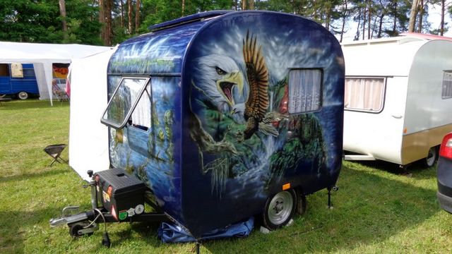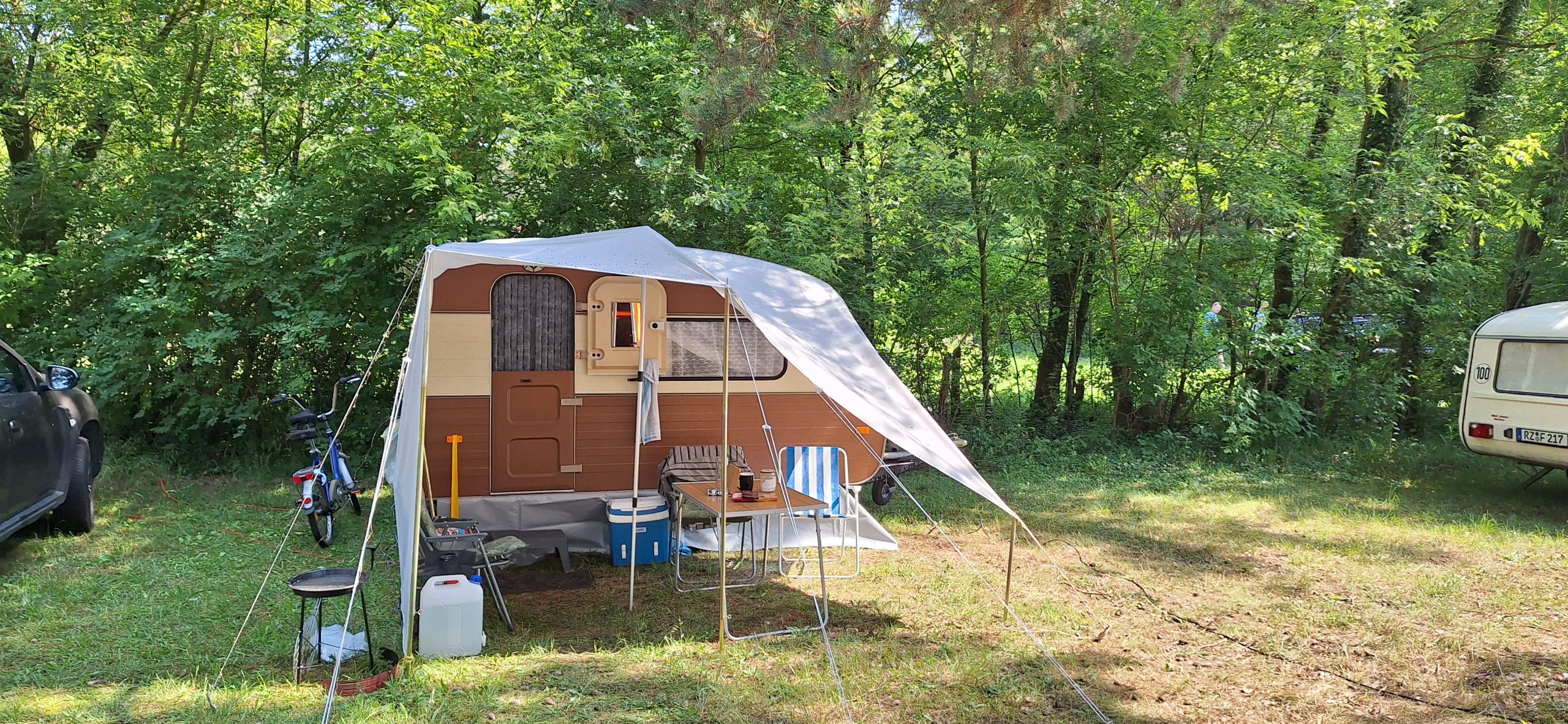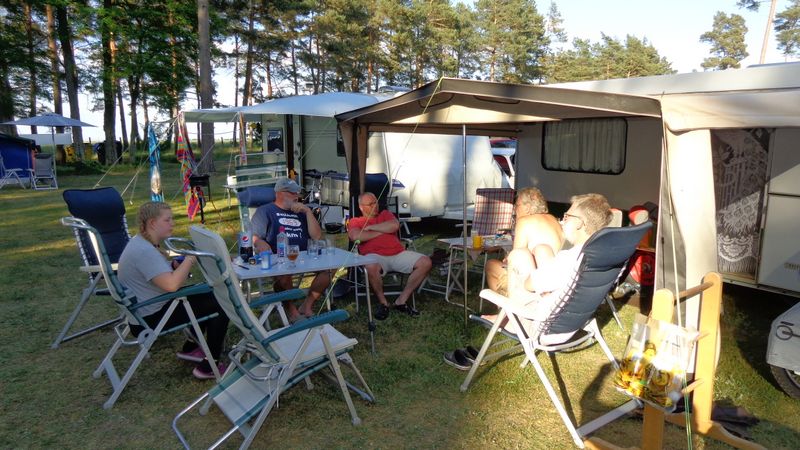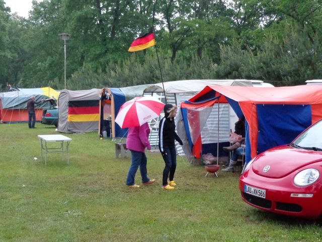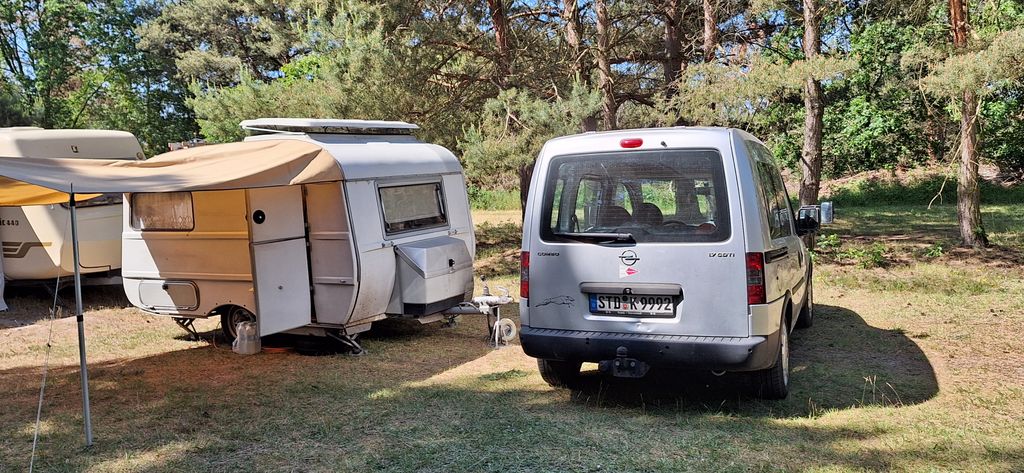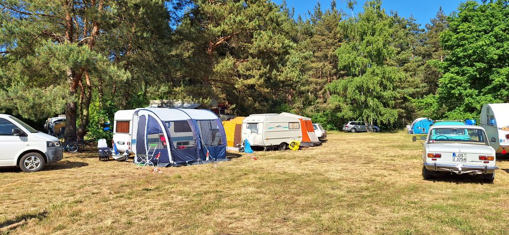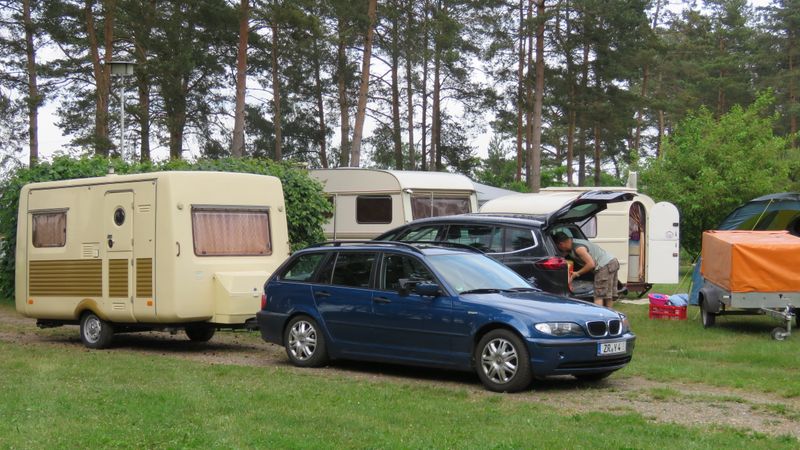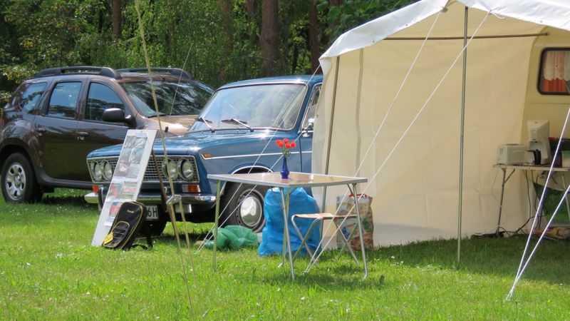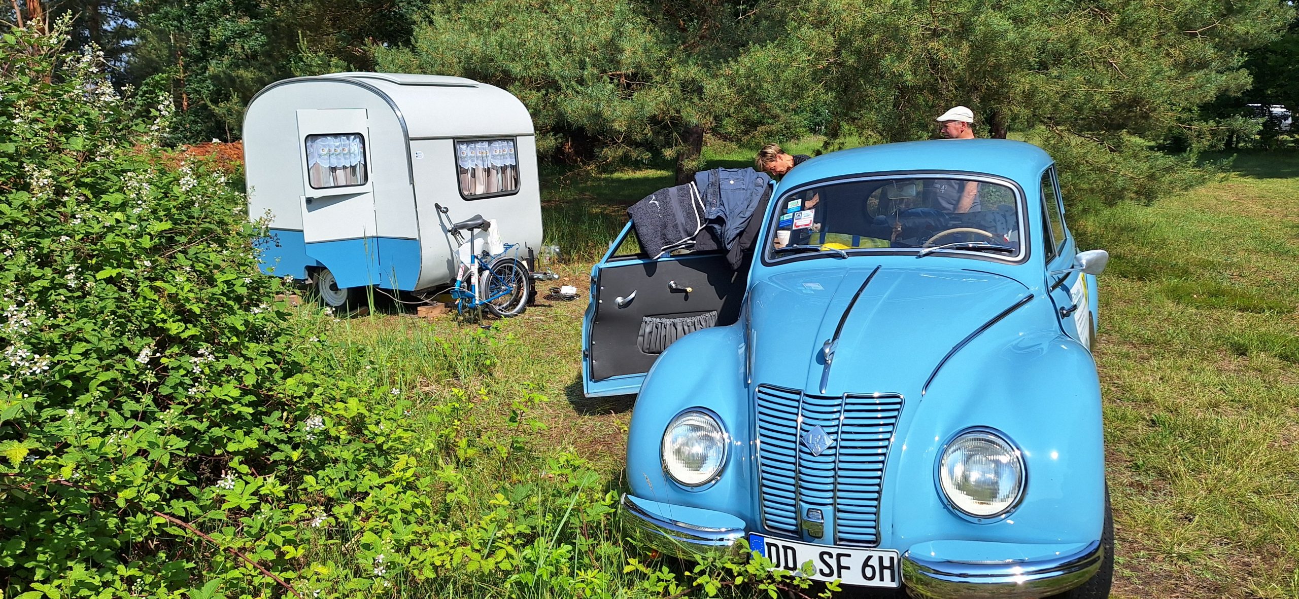 Beim gemeinsamen Frühtück haben wir das originellste Gespann prämiert. So konnte Micha mit dem Trabbi-Kübel und dem passenden Qek einen prima Liegestuhl, gesponsert von www.elbe-caravan.de, in Empfang nehmen
