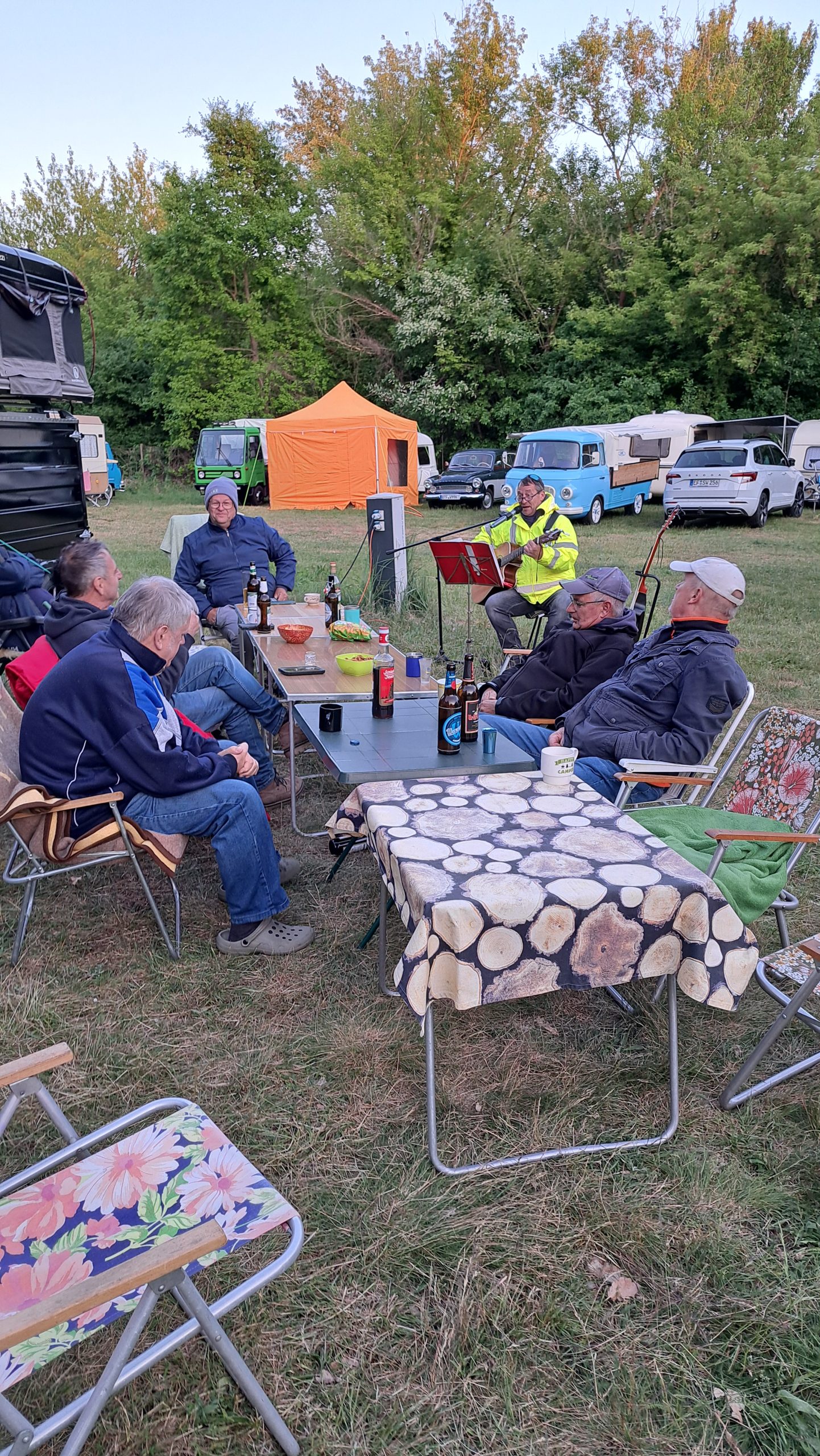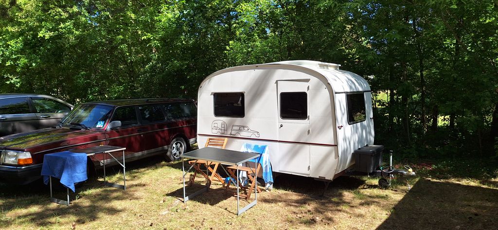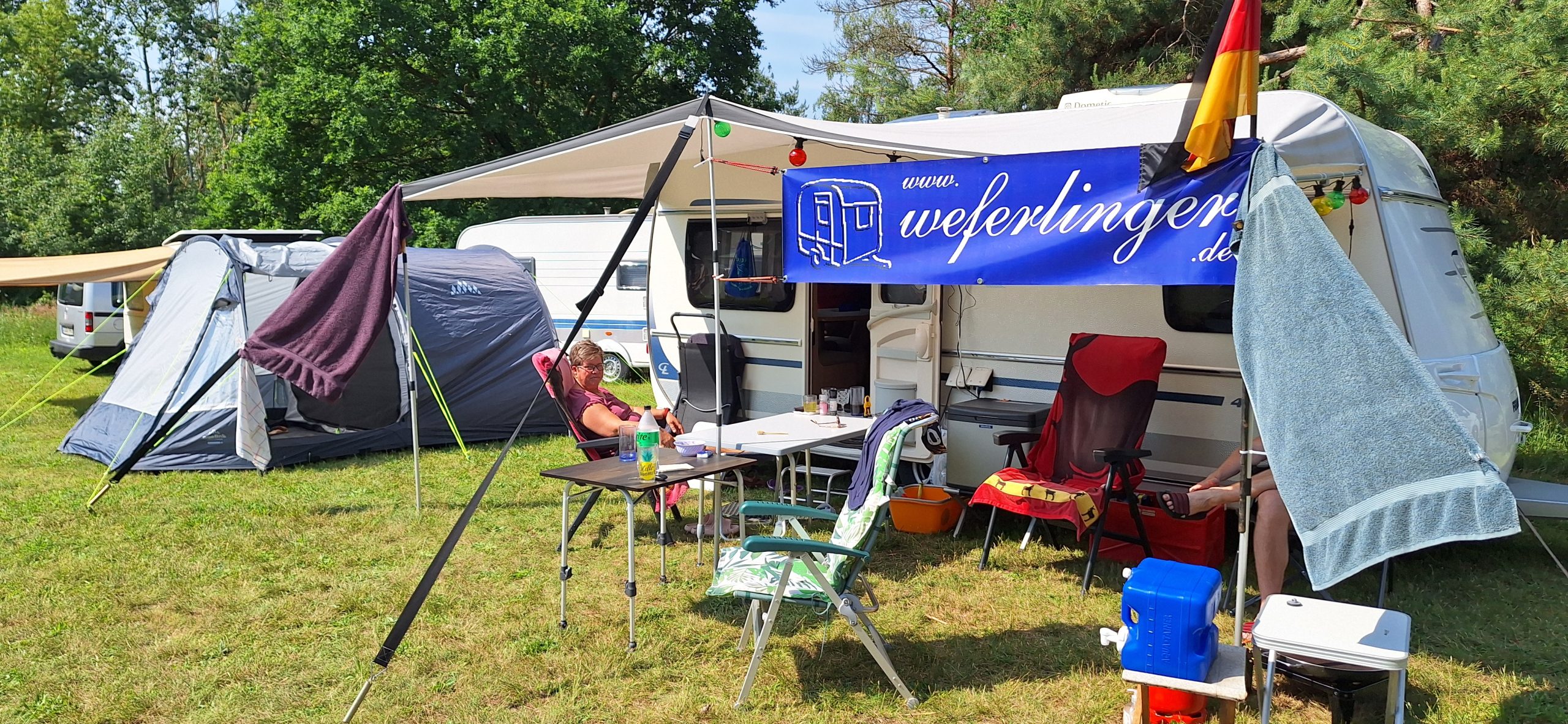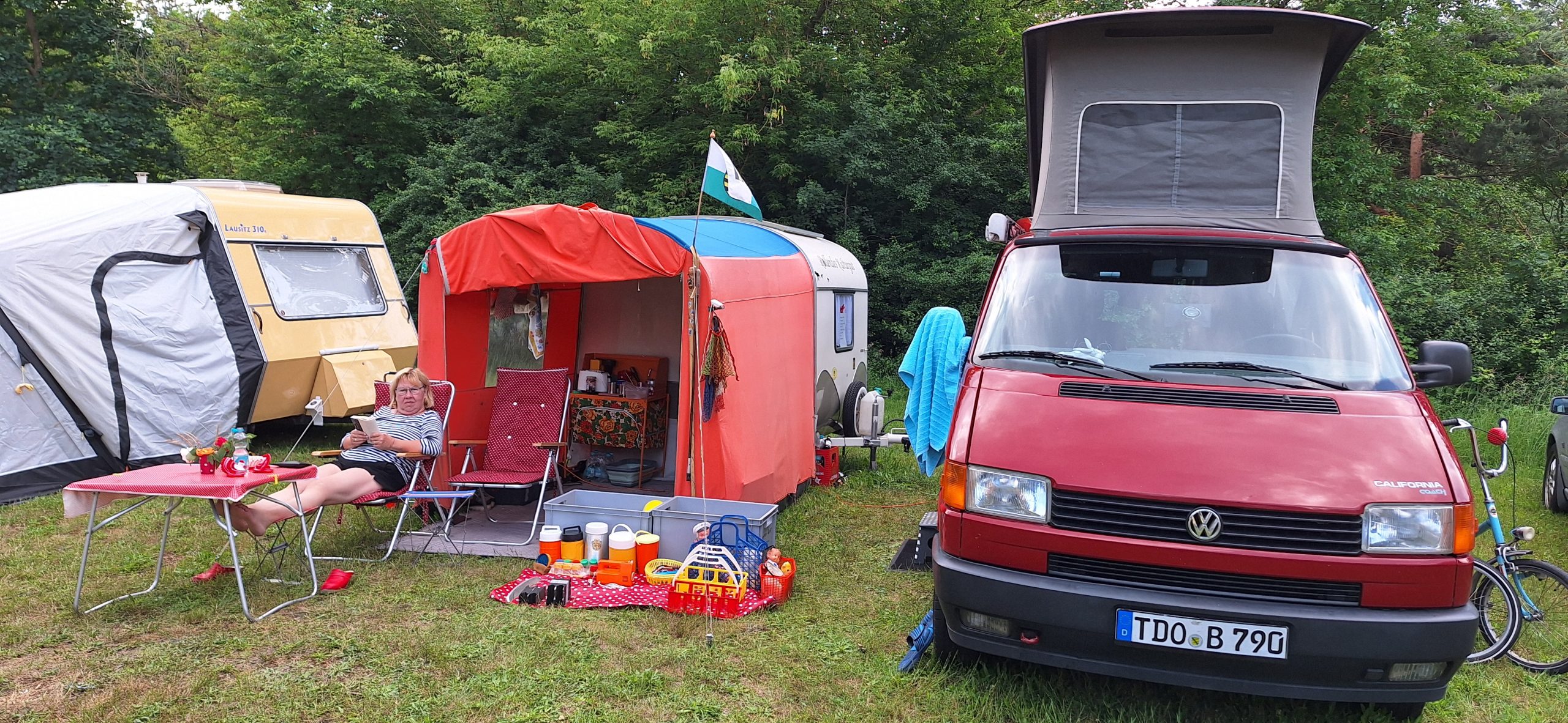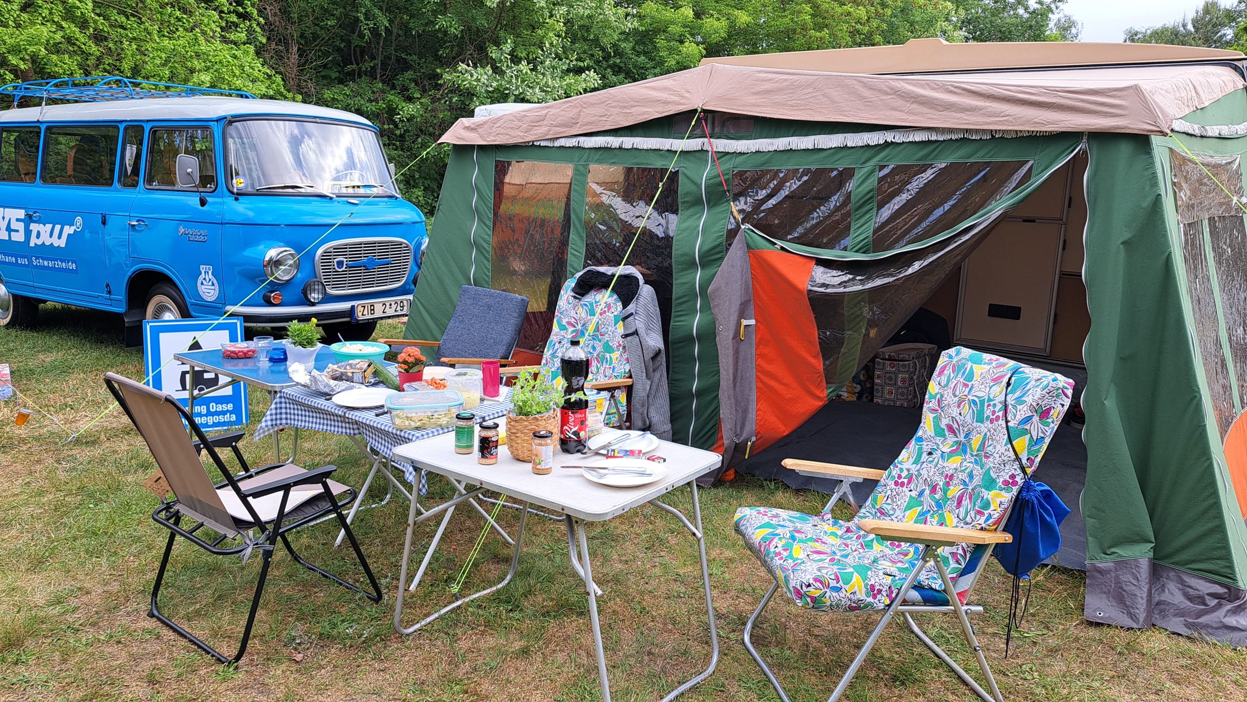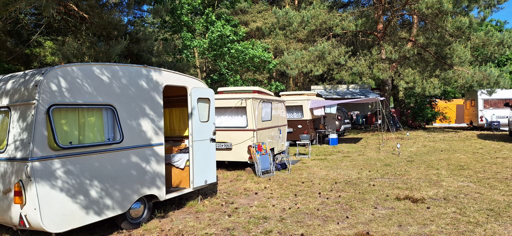 Beim gemeinsamen Frühtück haben wir das originellste Gespann prämiert. So konnte Micha mit dem Trabbi-Kübel und dem passenden Qek einen prima Liegestuhl, gesponsert von www.elbe-caravan.de, in Empfang nehmen
