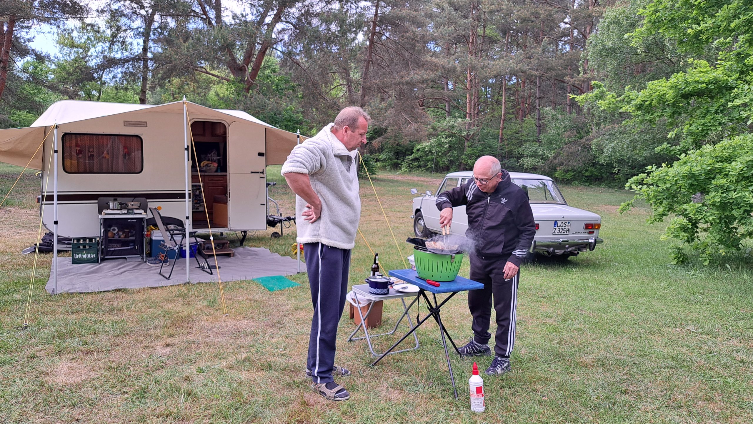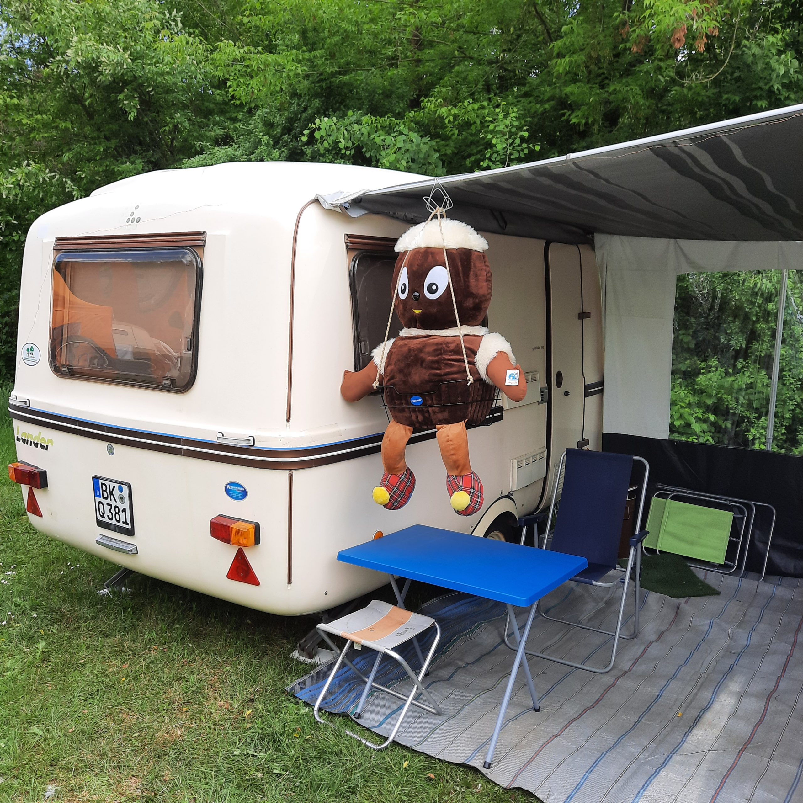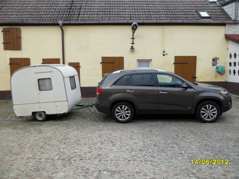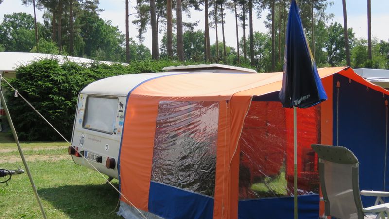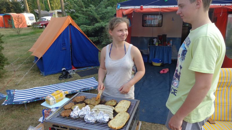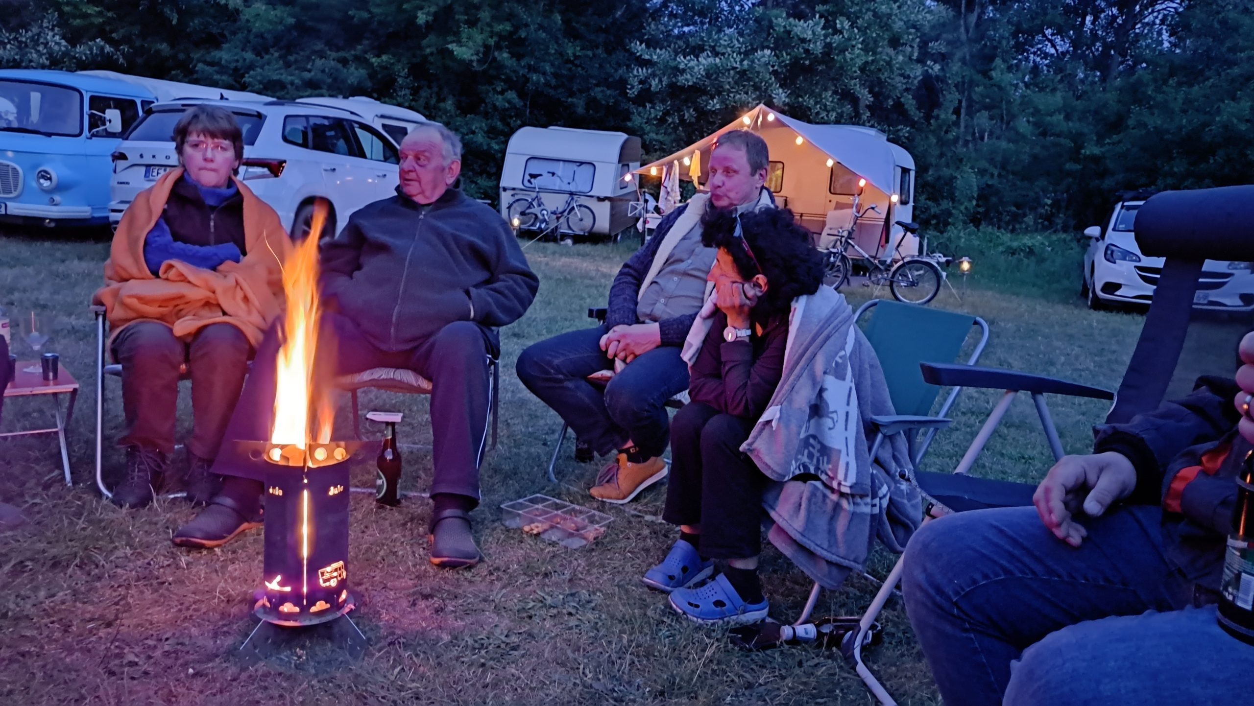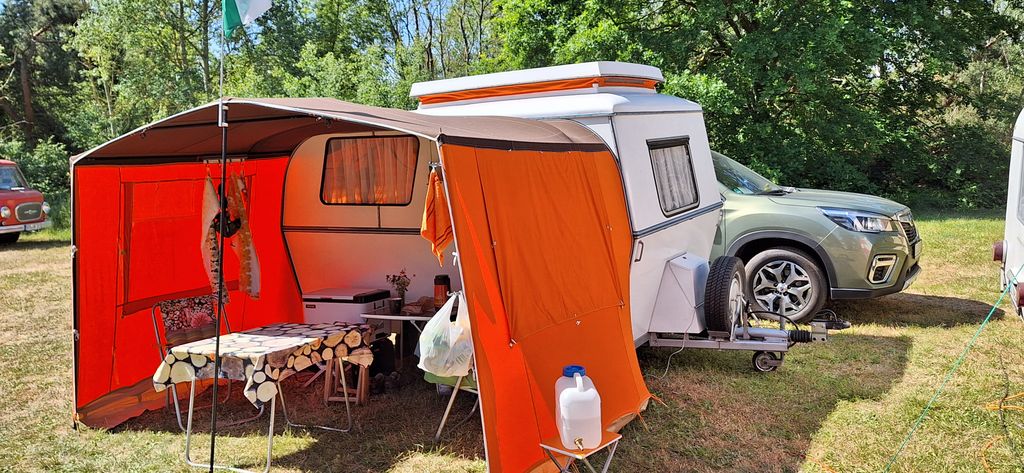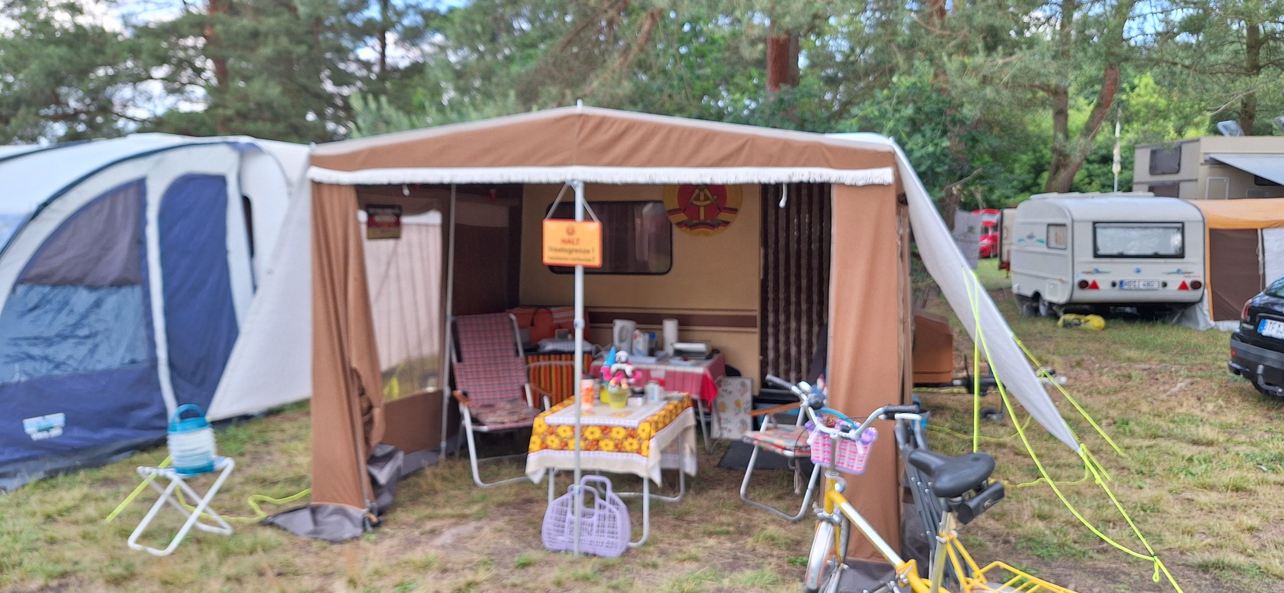Beim gemeinsamen Frühtück haben wir das originellste Gespann prämiert. So konnte Micha mit dem Trabbi-Kübel und dem passenden Qek einen prima Liegestuhl, gesponsert von www.elbe-caravan.de, in Empfang nehmen