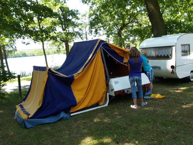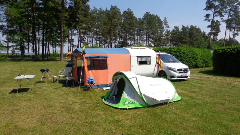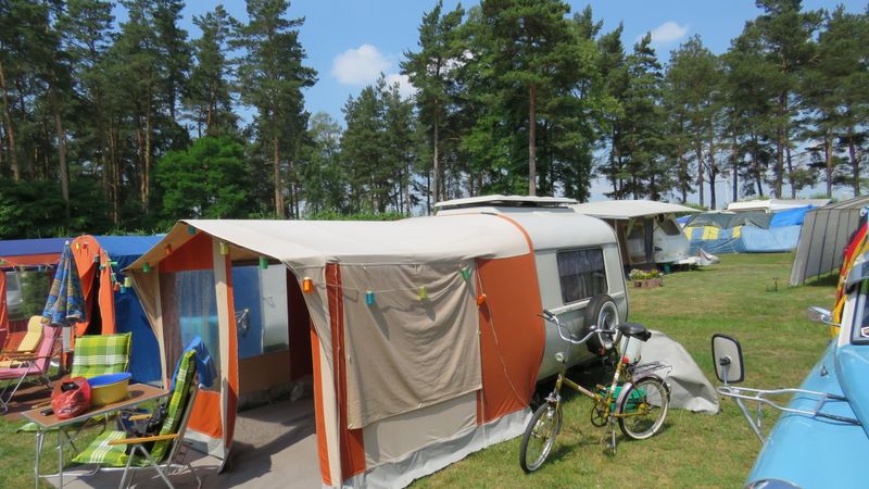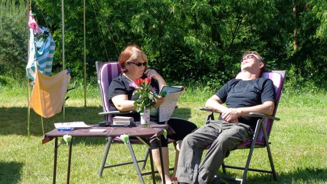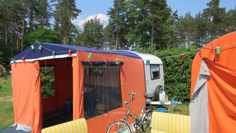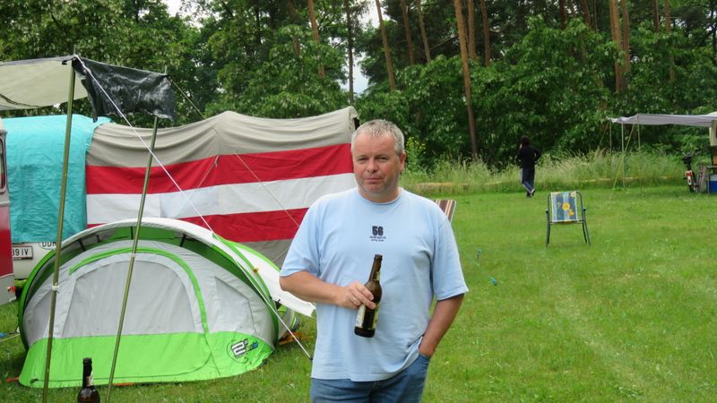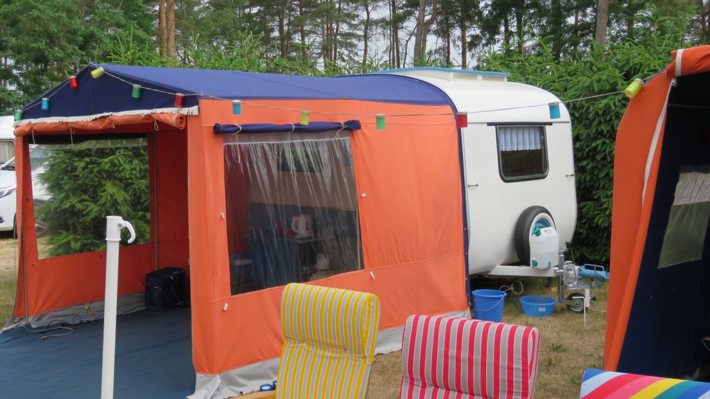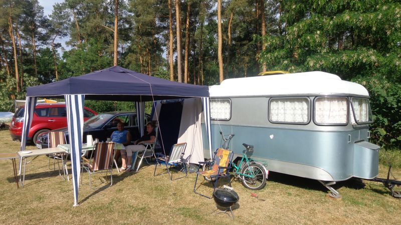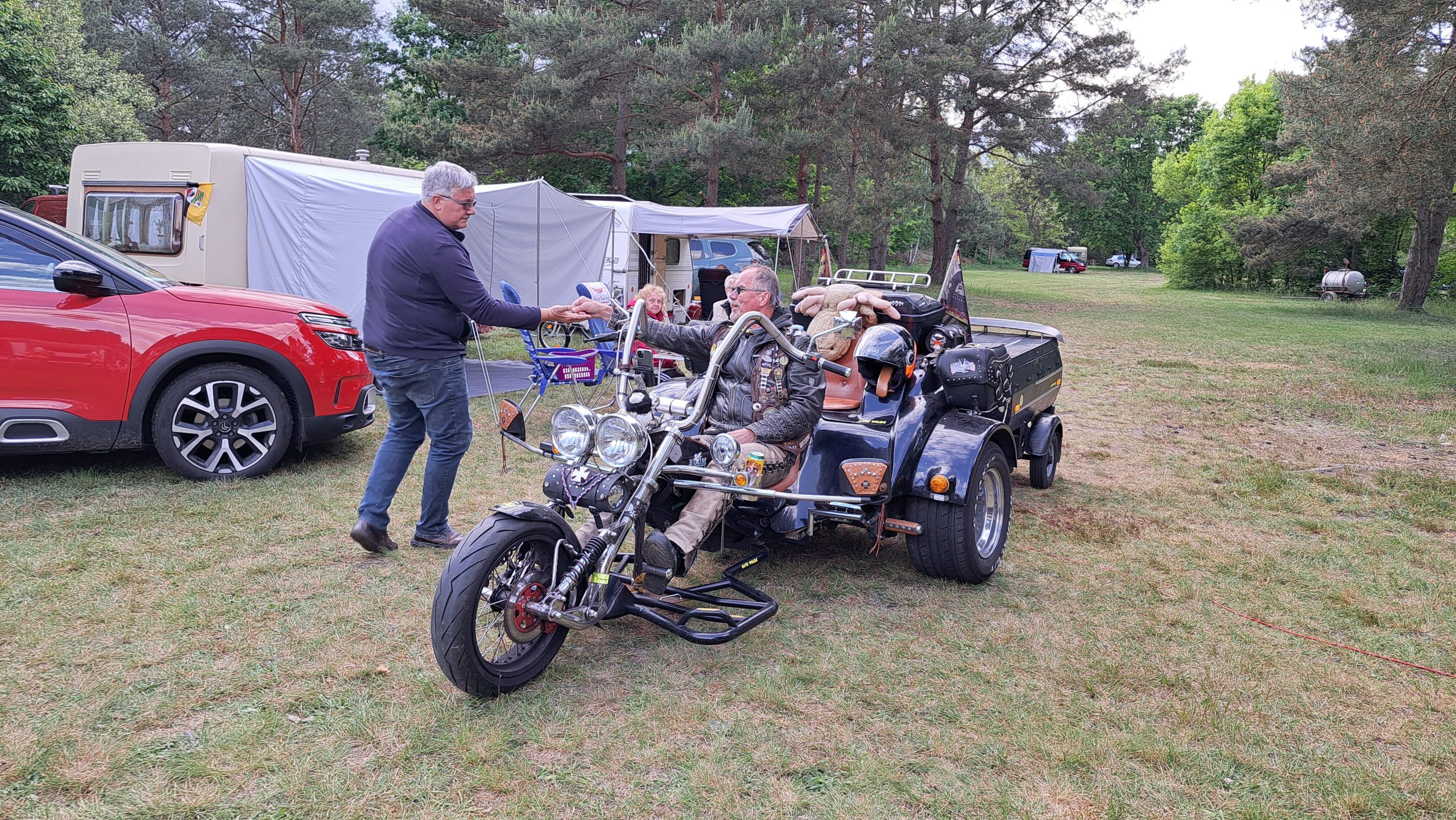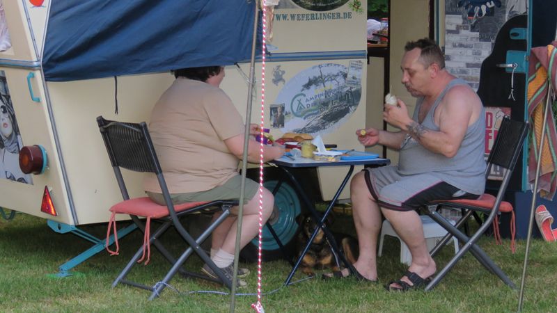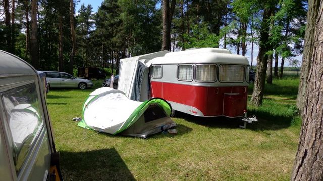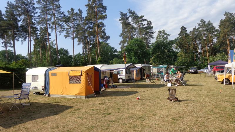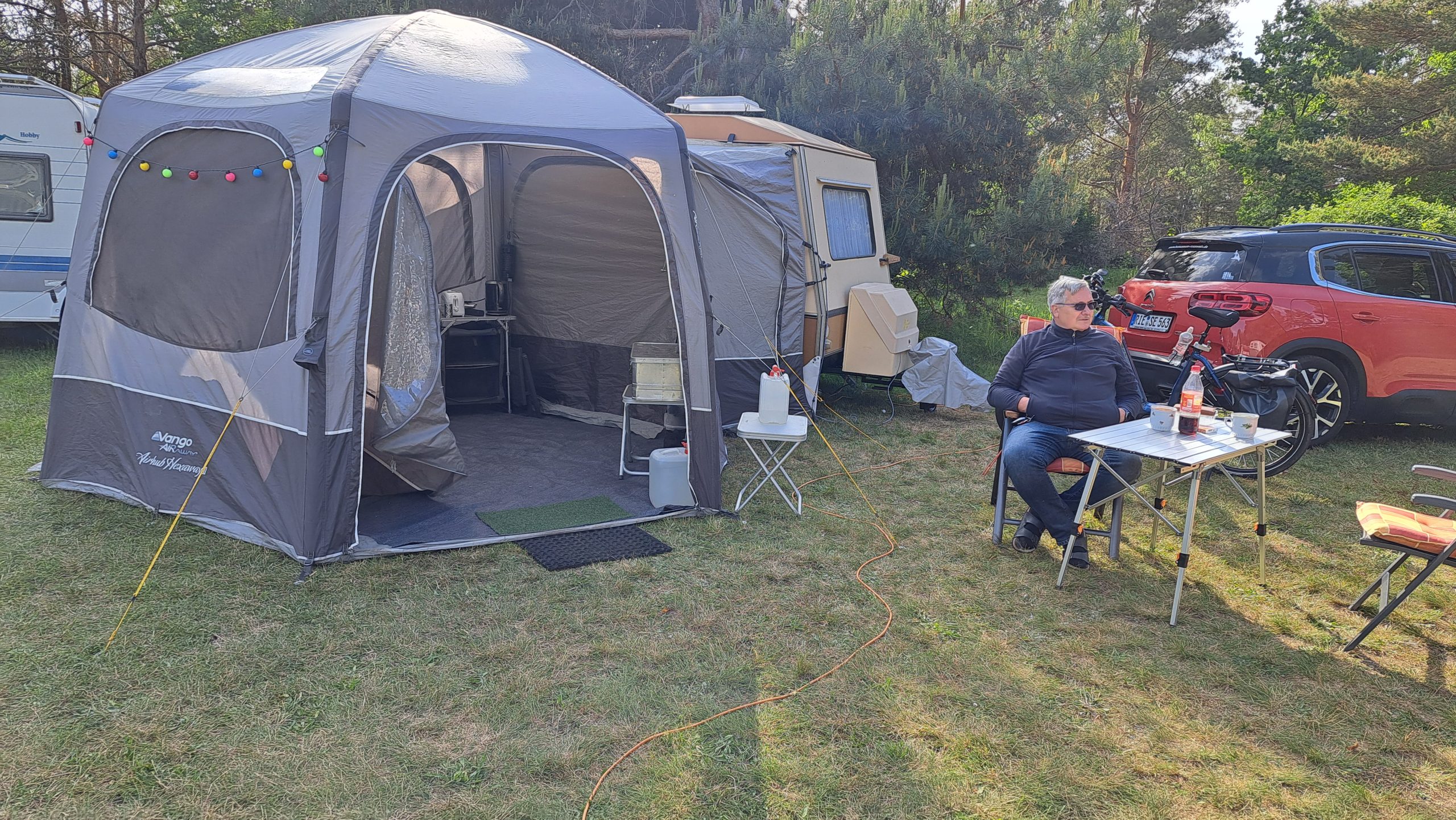 Beim gemeinsamen Frühtück haben wir das originellste Gespann prämiert. So konnte Micha mit dem Trabbi-Kübel und dem passenden Qek einen prima Liegestuhl, gesponsert von www.elbe-caravan.de, in Empfang nehmen