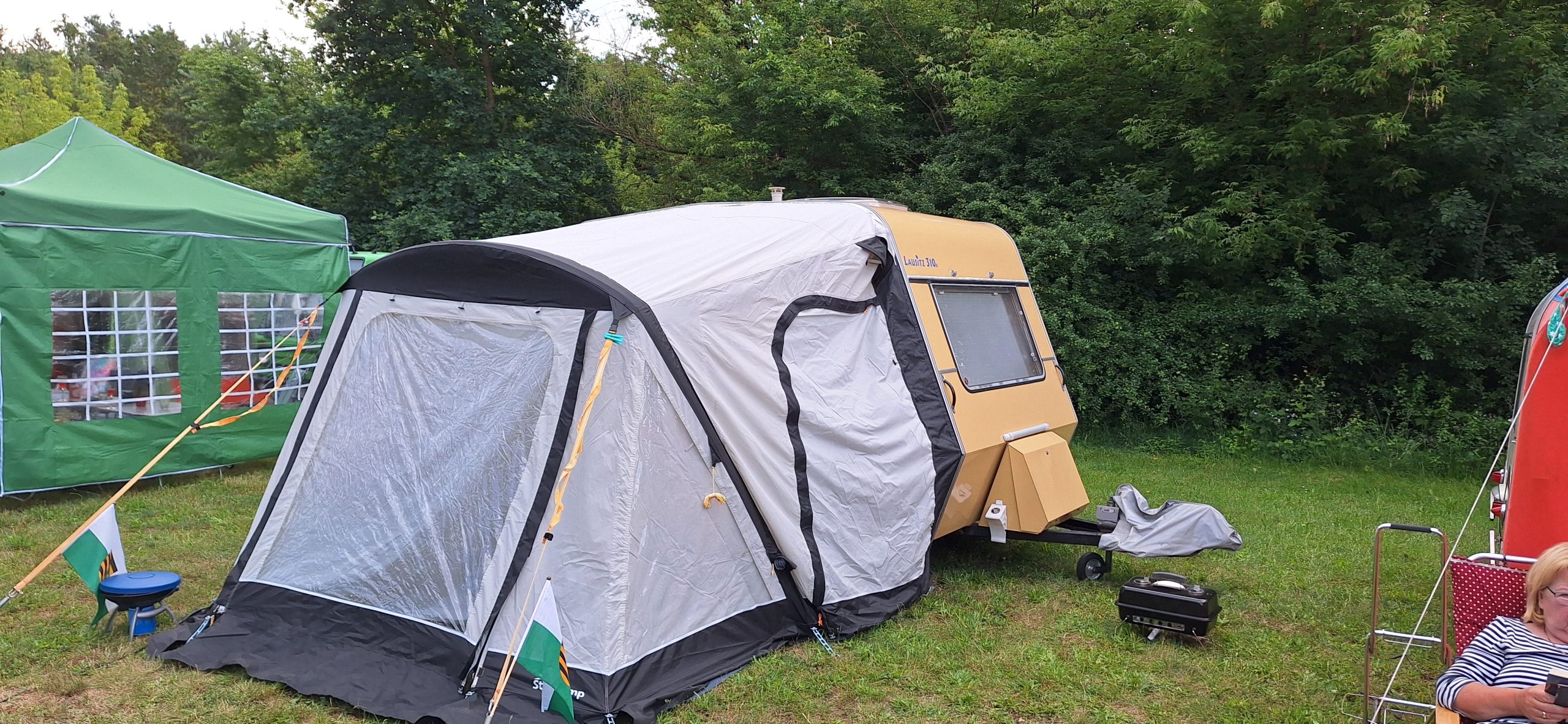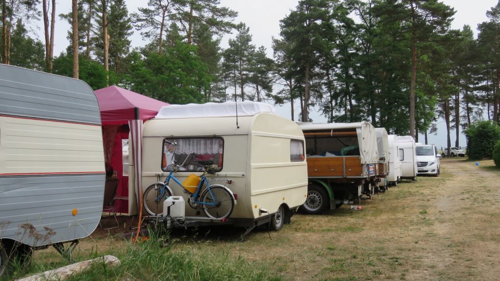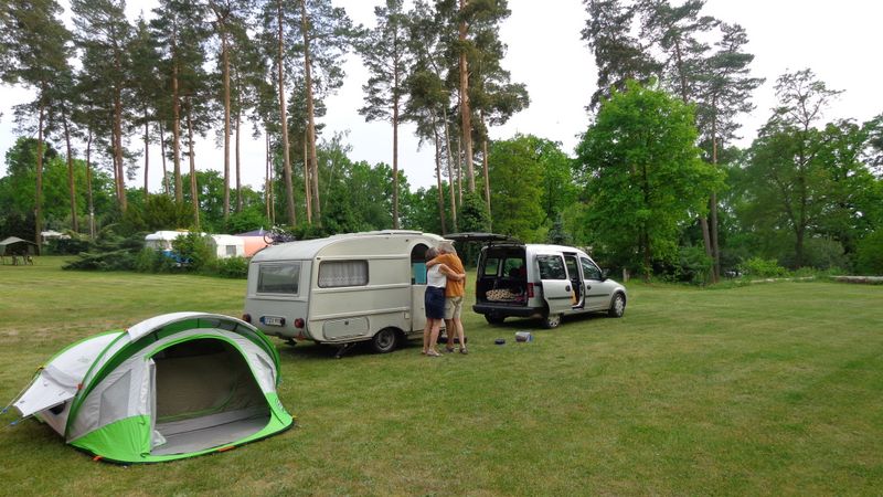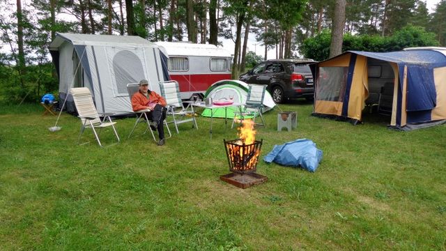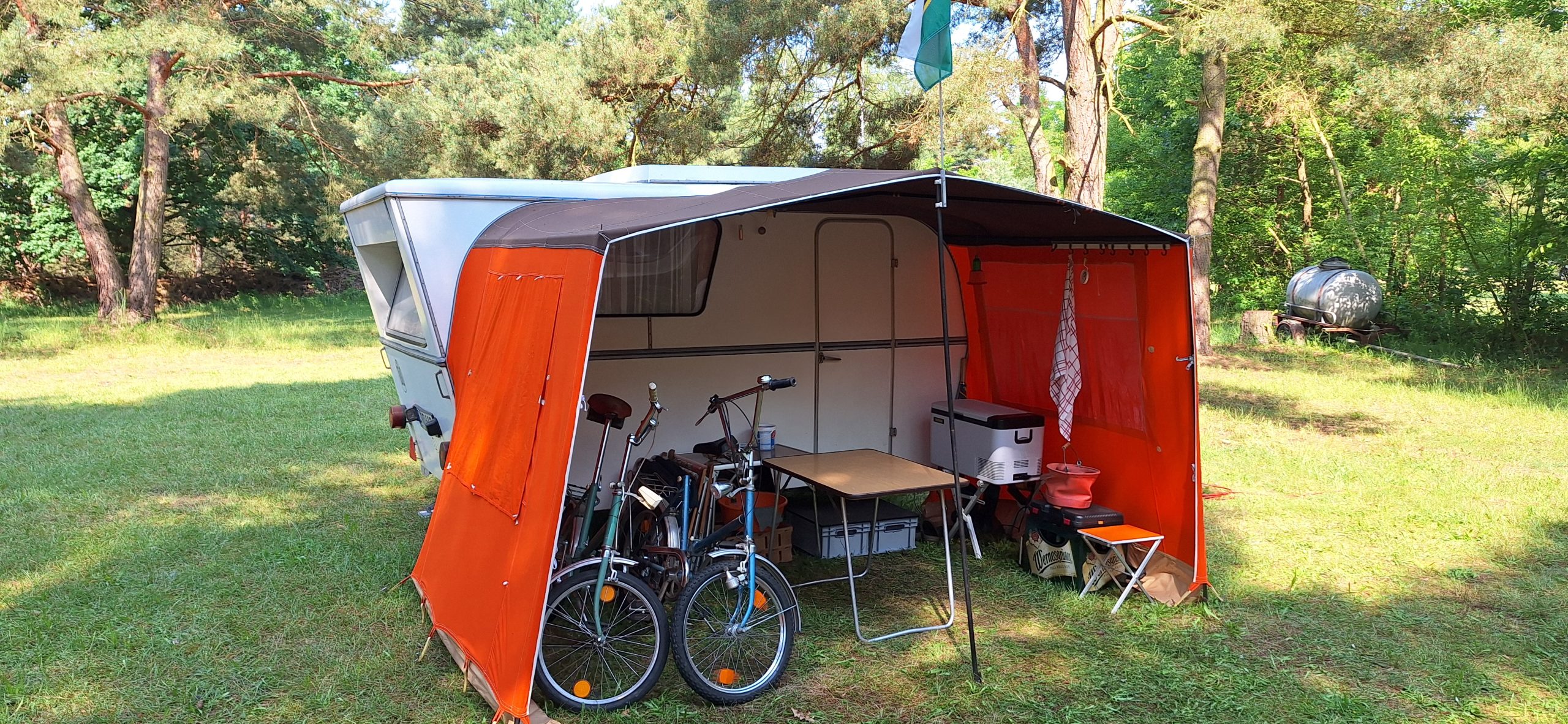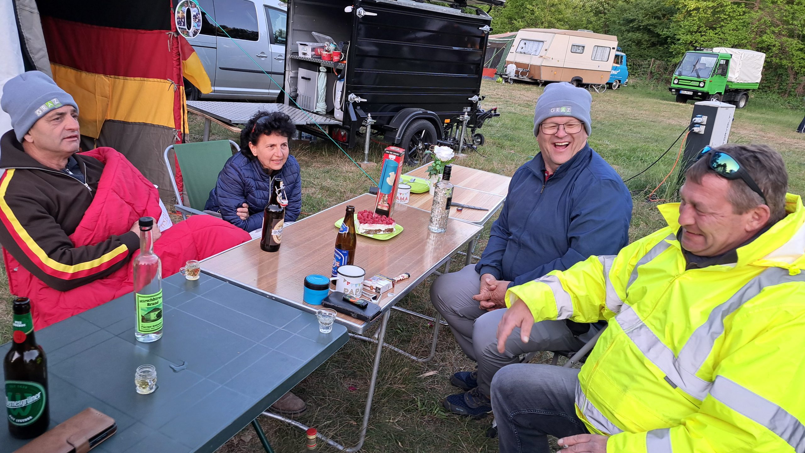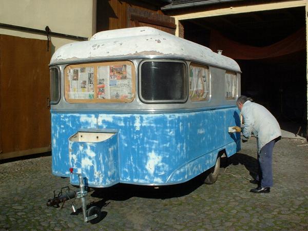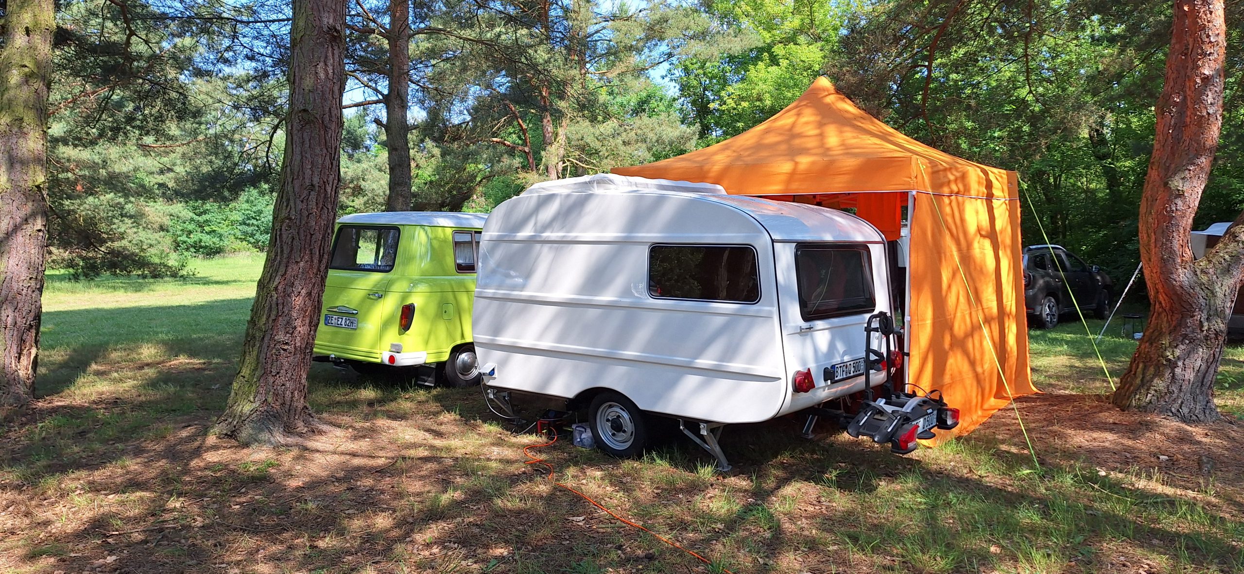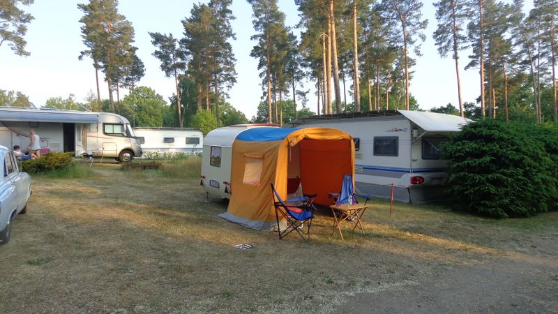 Beim gemeinsamen Frühtück haben wir das originellste Gespann prämiert. So konnte Micha mit dem Trabbi-Kübel und dem passenden Qek einen prima Liegestuhl, gesponsert von www.elbe-caravan.de, in Empfang nehmen