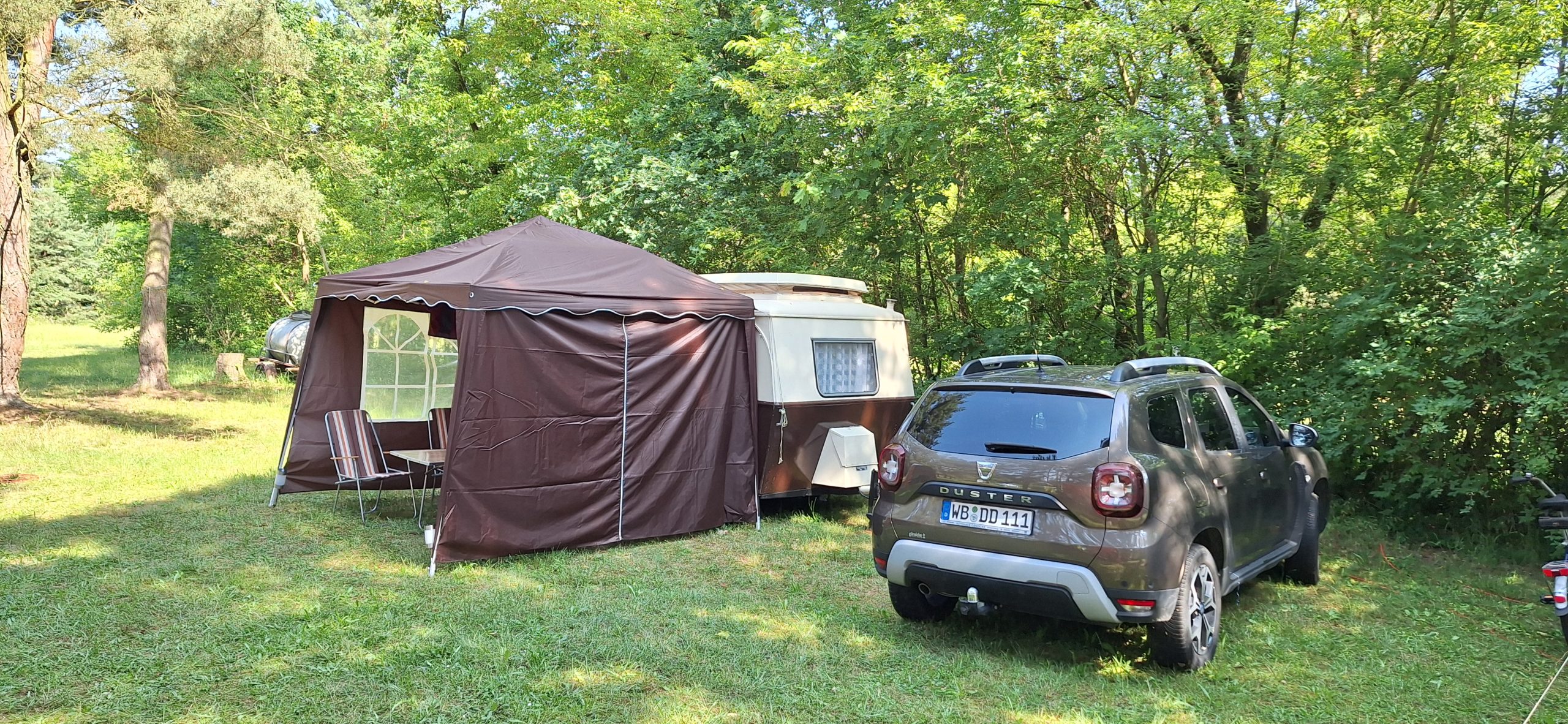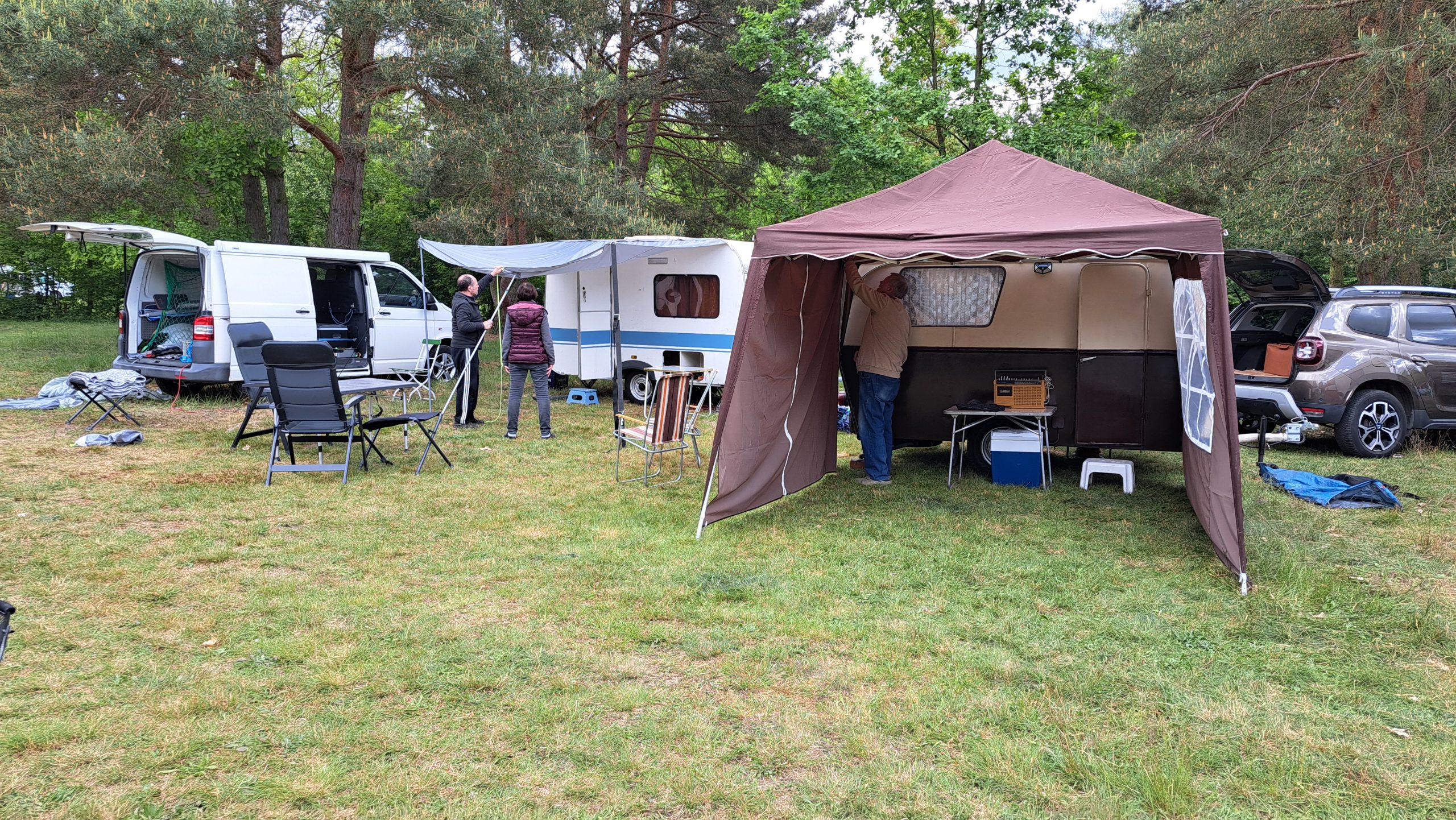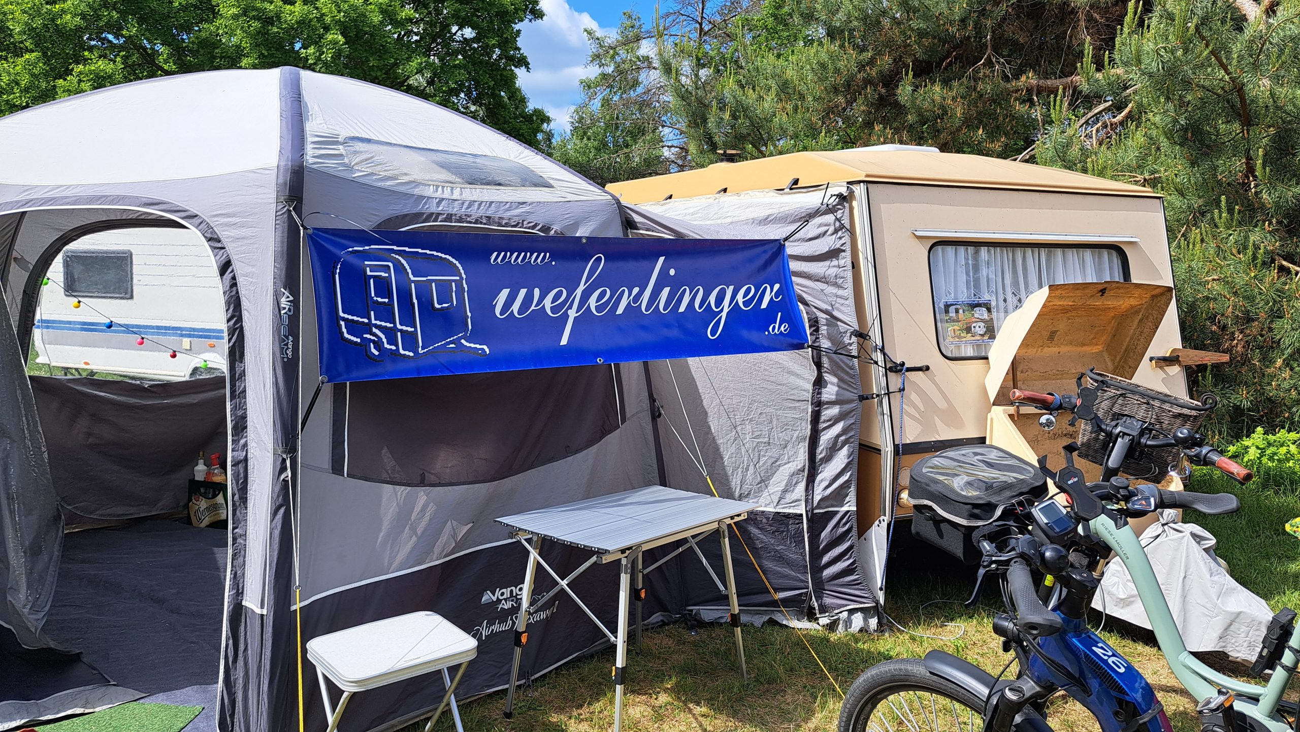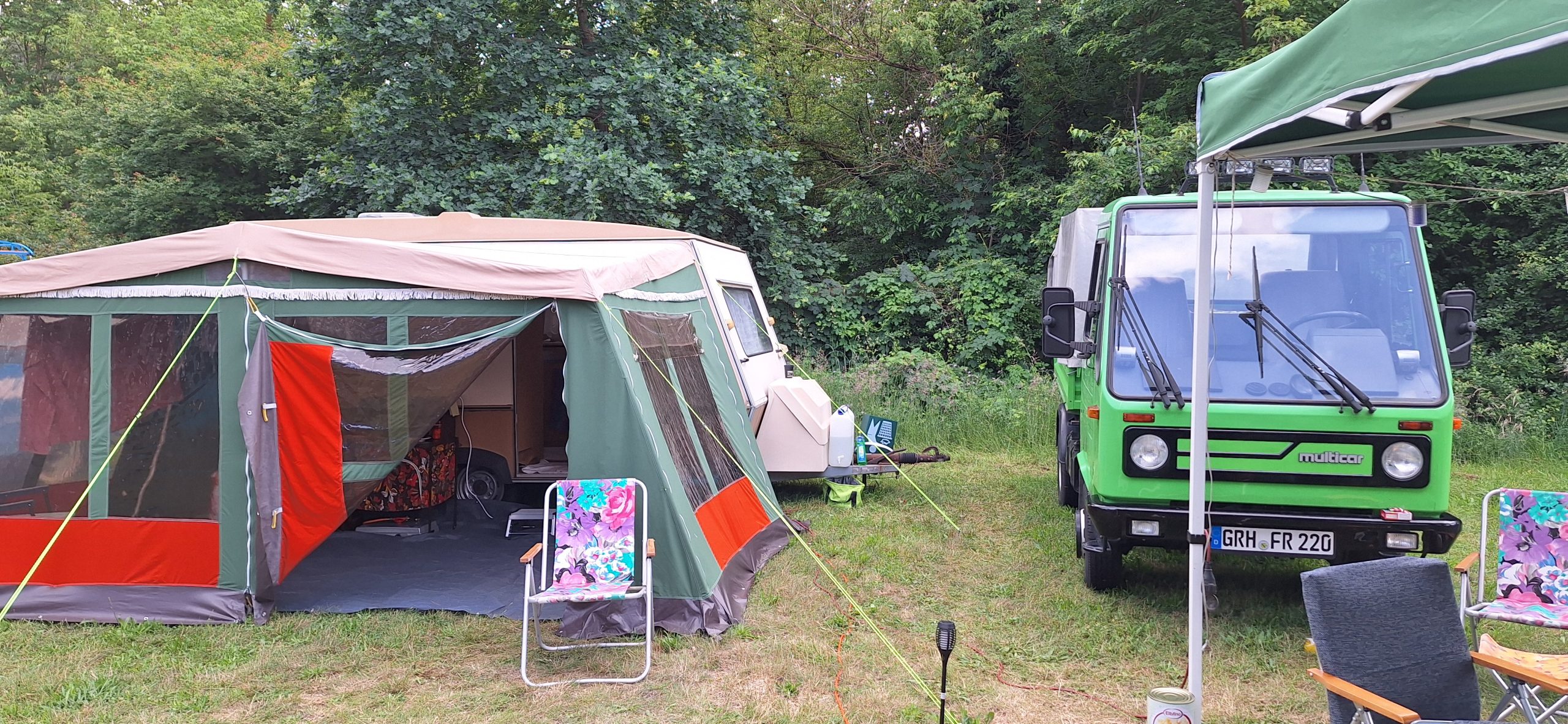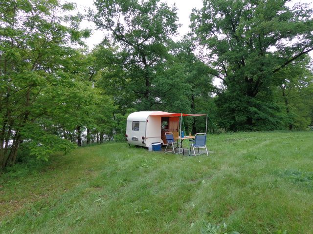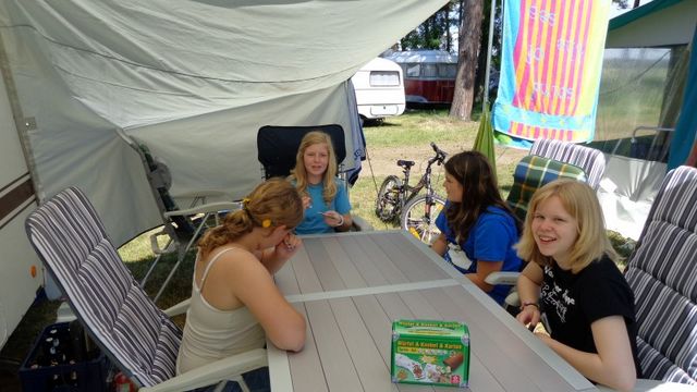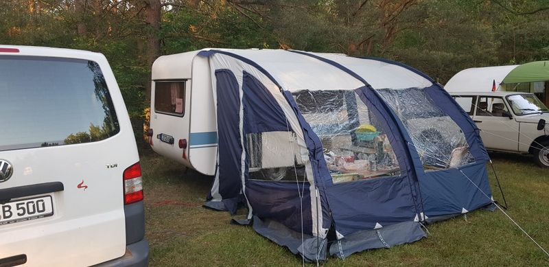 Beim gemeinsamen Frühtück haben wir das originellste Gespann prämiert. So konnte Micha mit dem Trabbi-Kübel und dem passenden Qek einen prima Liegestuhl, gesponsert von www.elbe-caravan.de, in Empfang nehmen