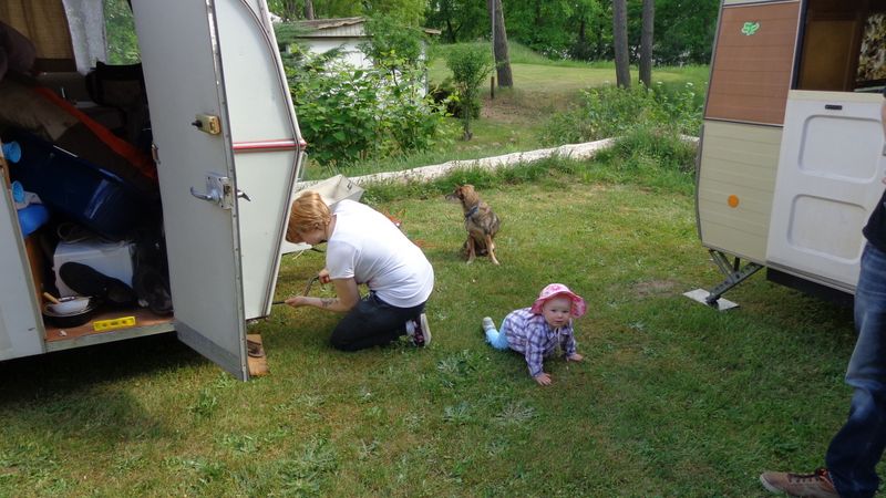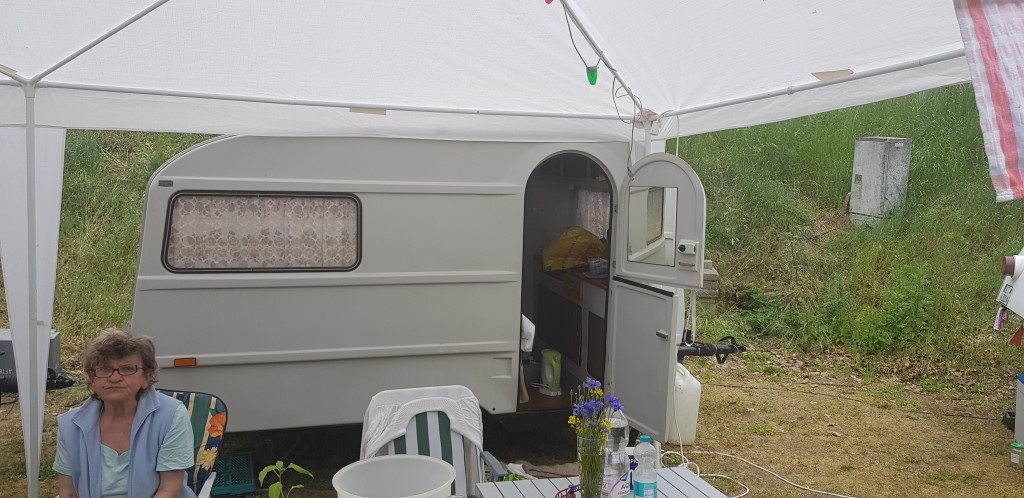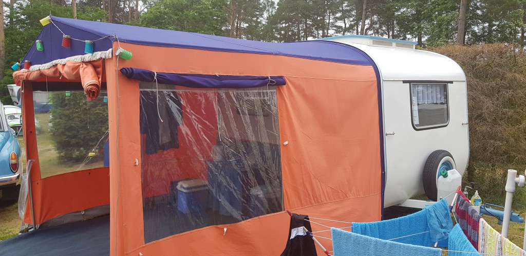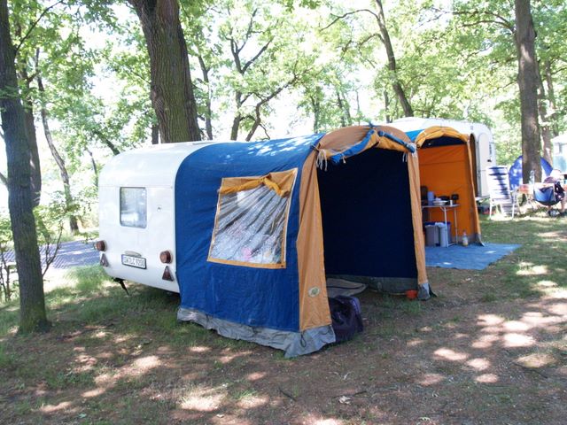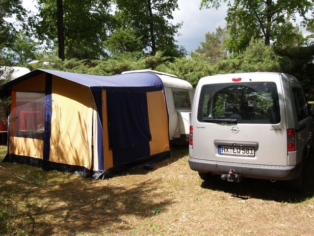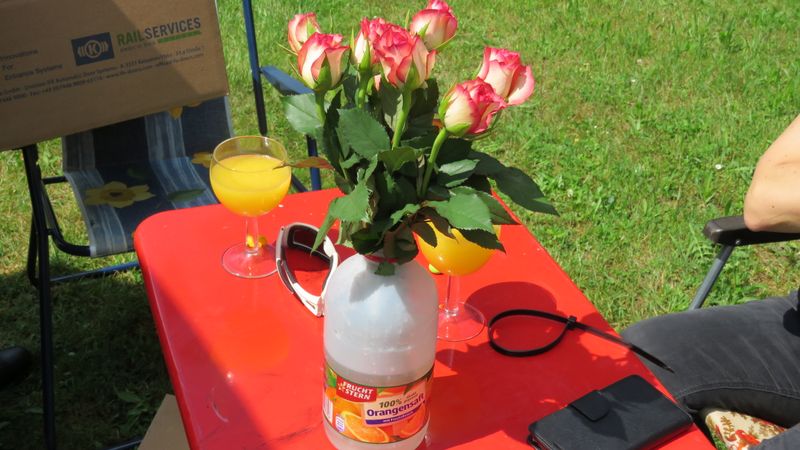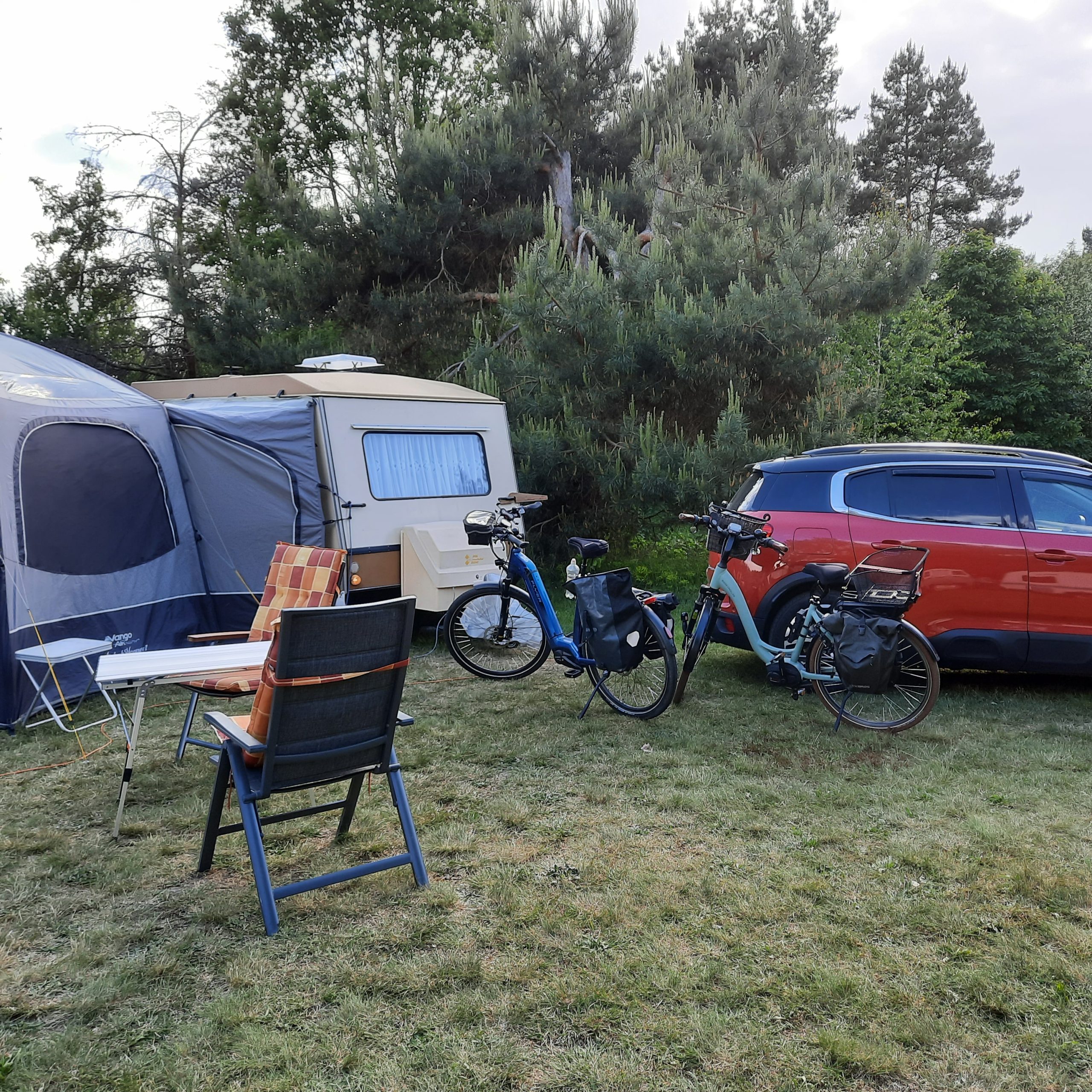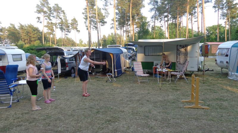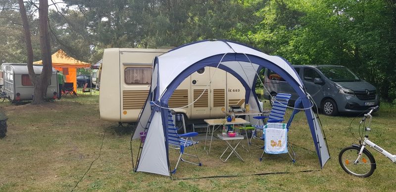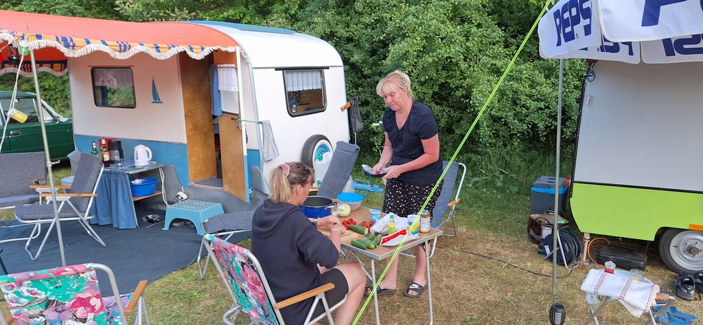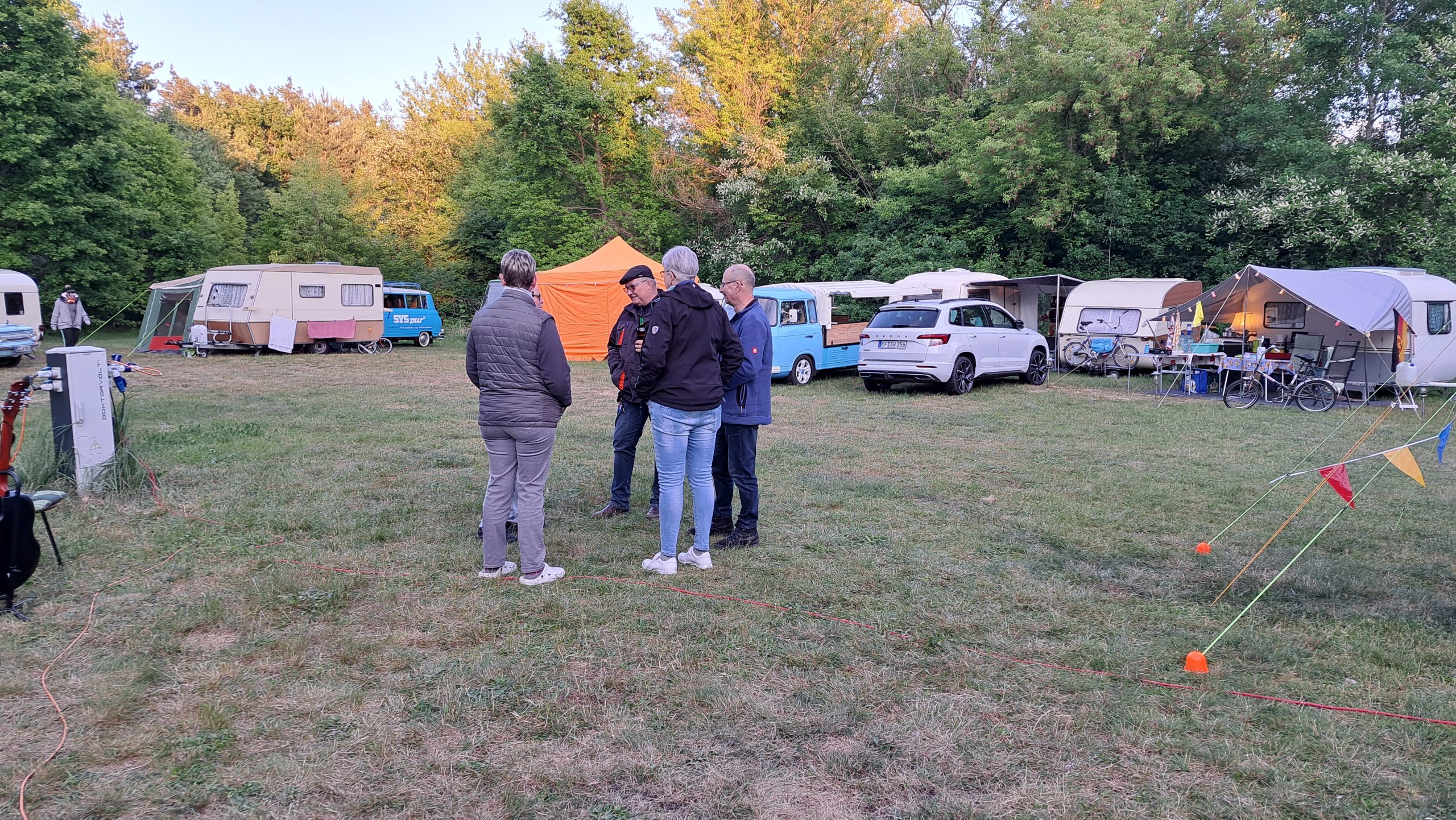Beim gemeinsamen Frühtück haben wir das originellste Gespann prämiert. So konnte Micha mit dem Trabbi-Kübel und dem passenden Qek einen prima Liegestuhl, gesponsert von www.elbe-caravan.de, in Empfang nehmen