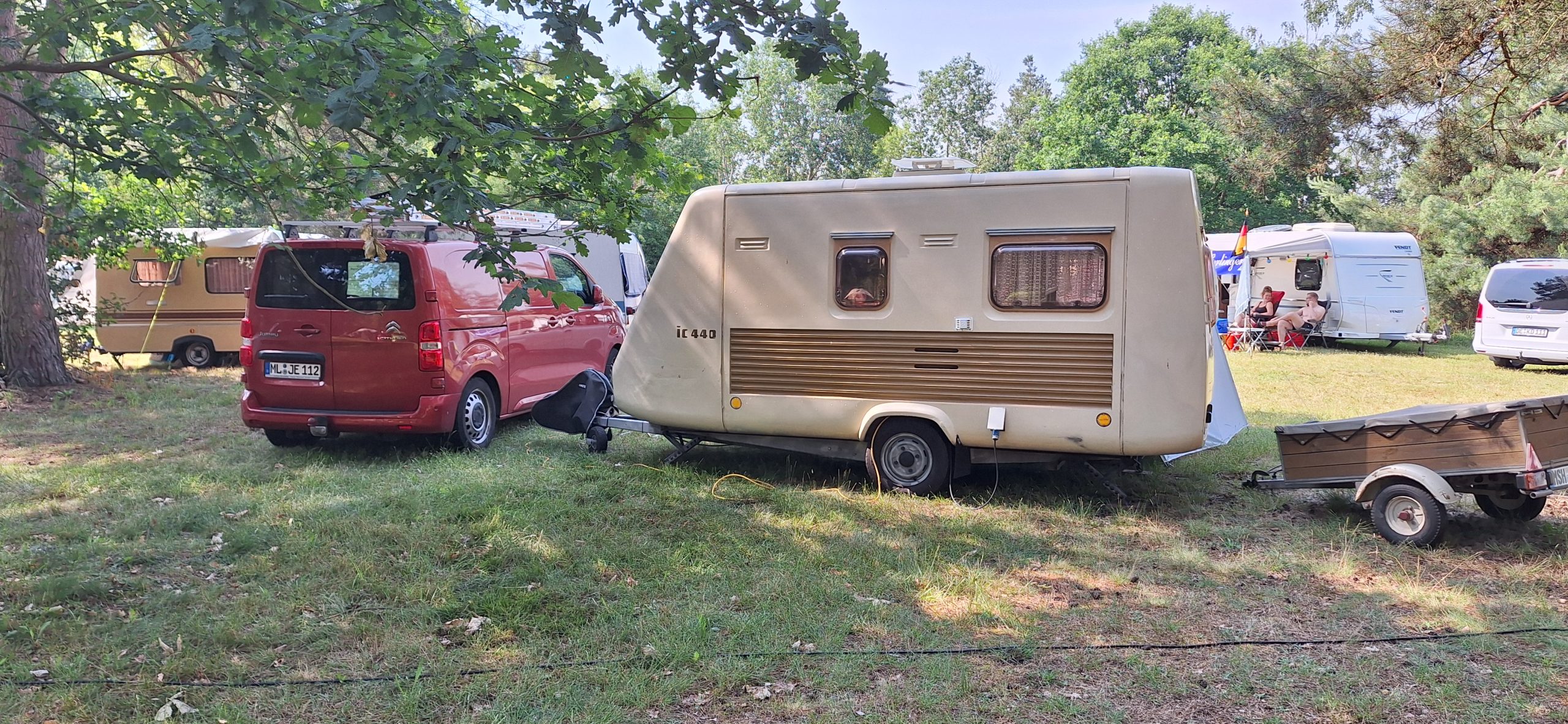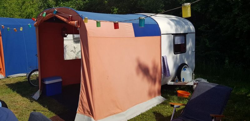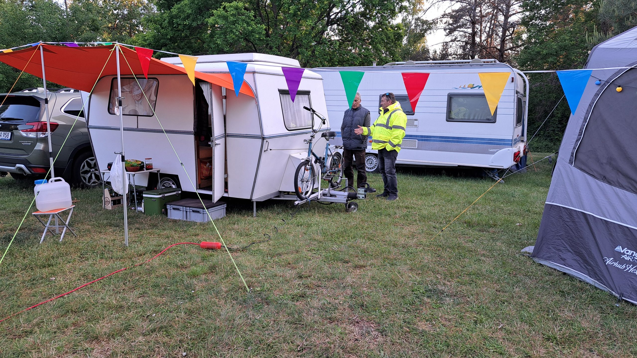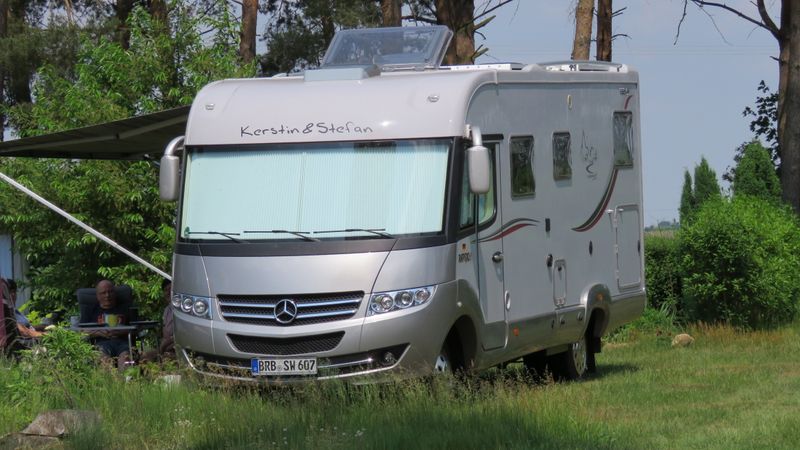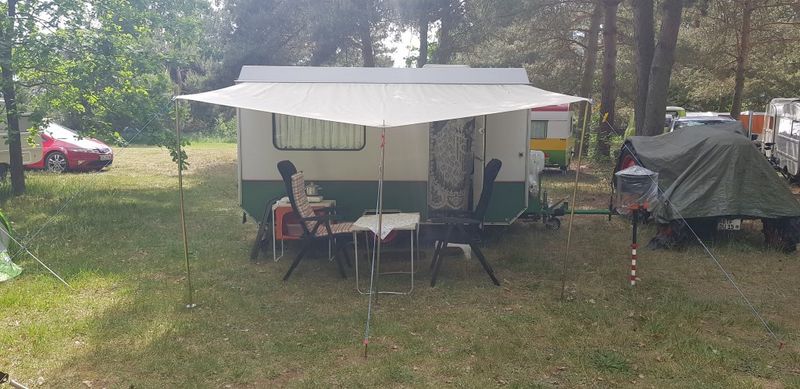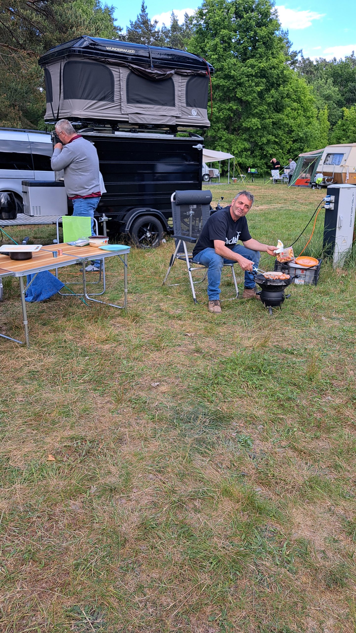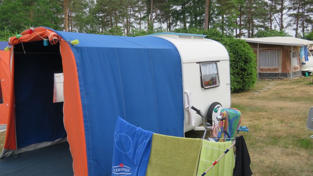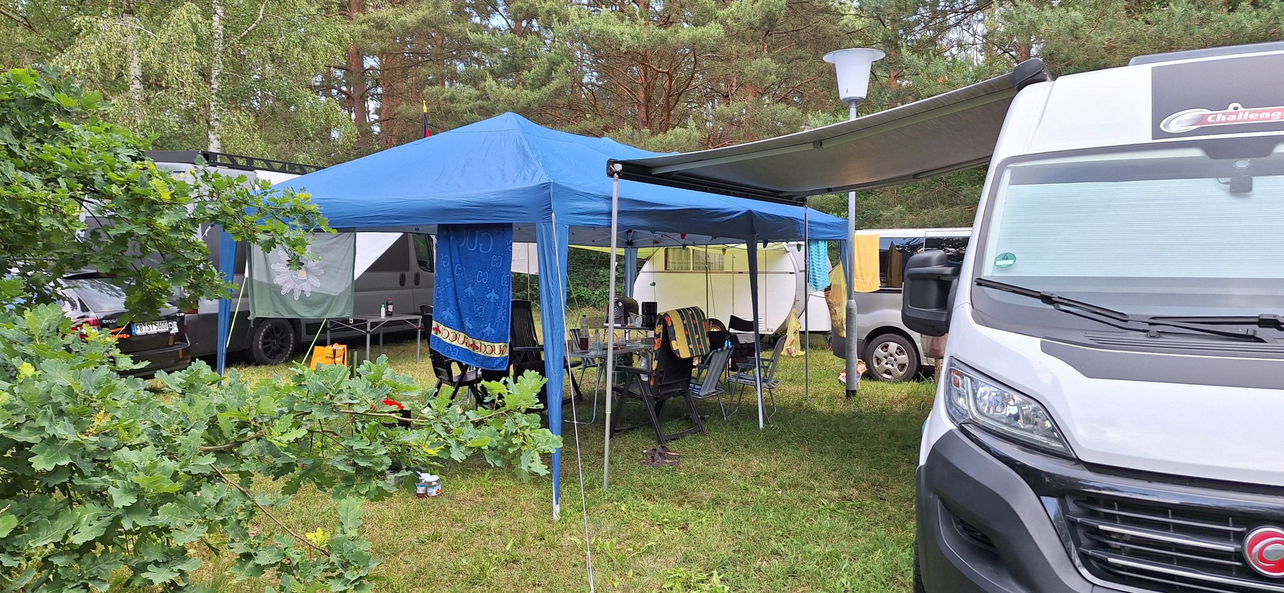 Beim gemeinsamen Frühtück haben wir das originellste Gespann prämiert. So konnte Micha mit dem Trabbi-Kübel und dem passenden Qek einen prima Liegestuhl, gesponsert von www.elbe-caravan.de, in Empfang nehmen