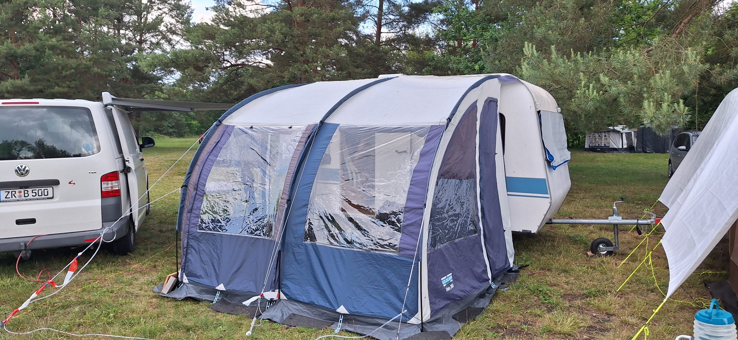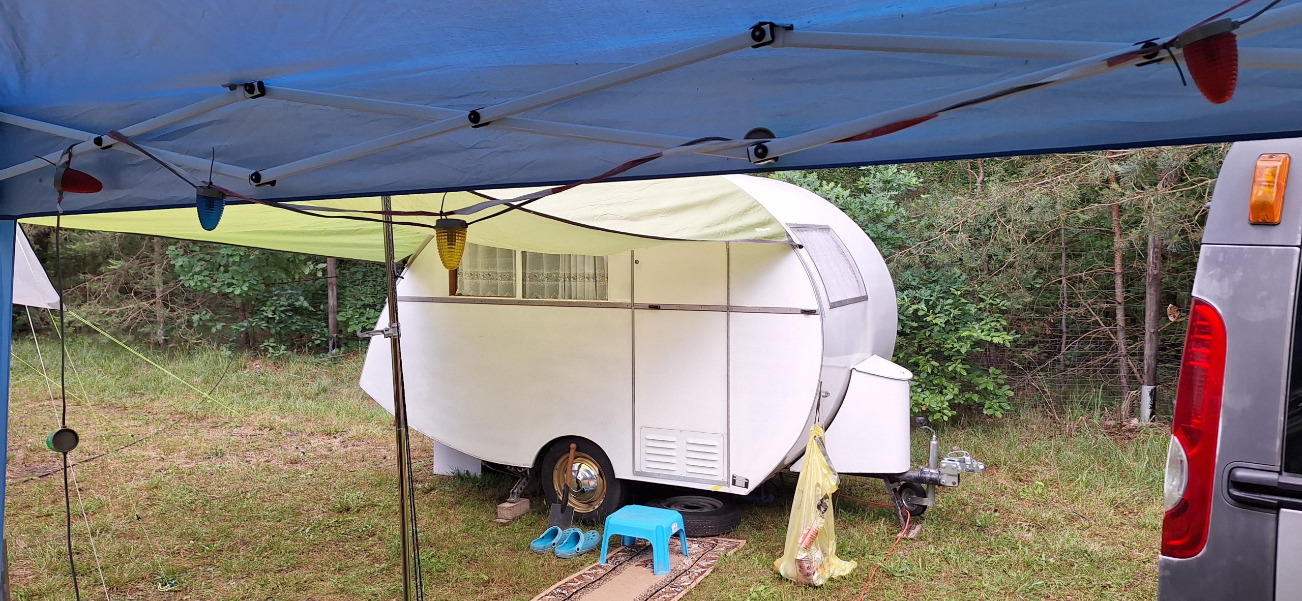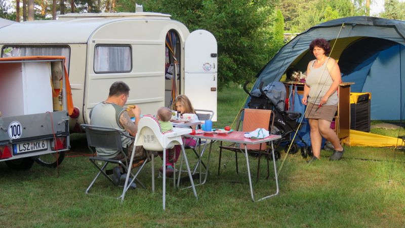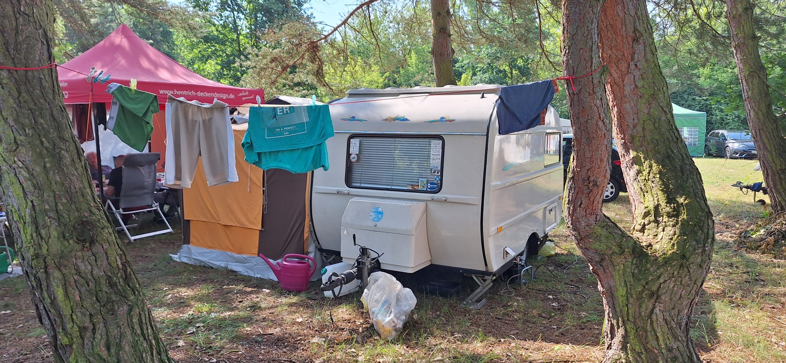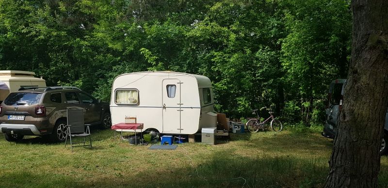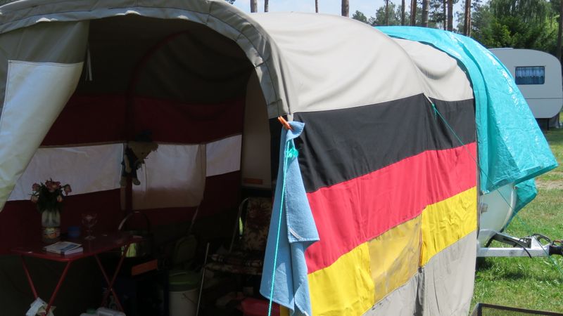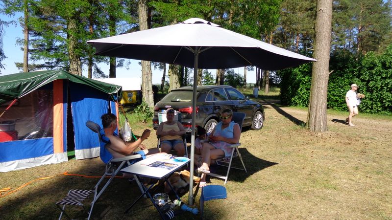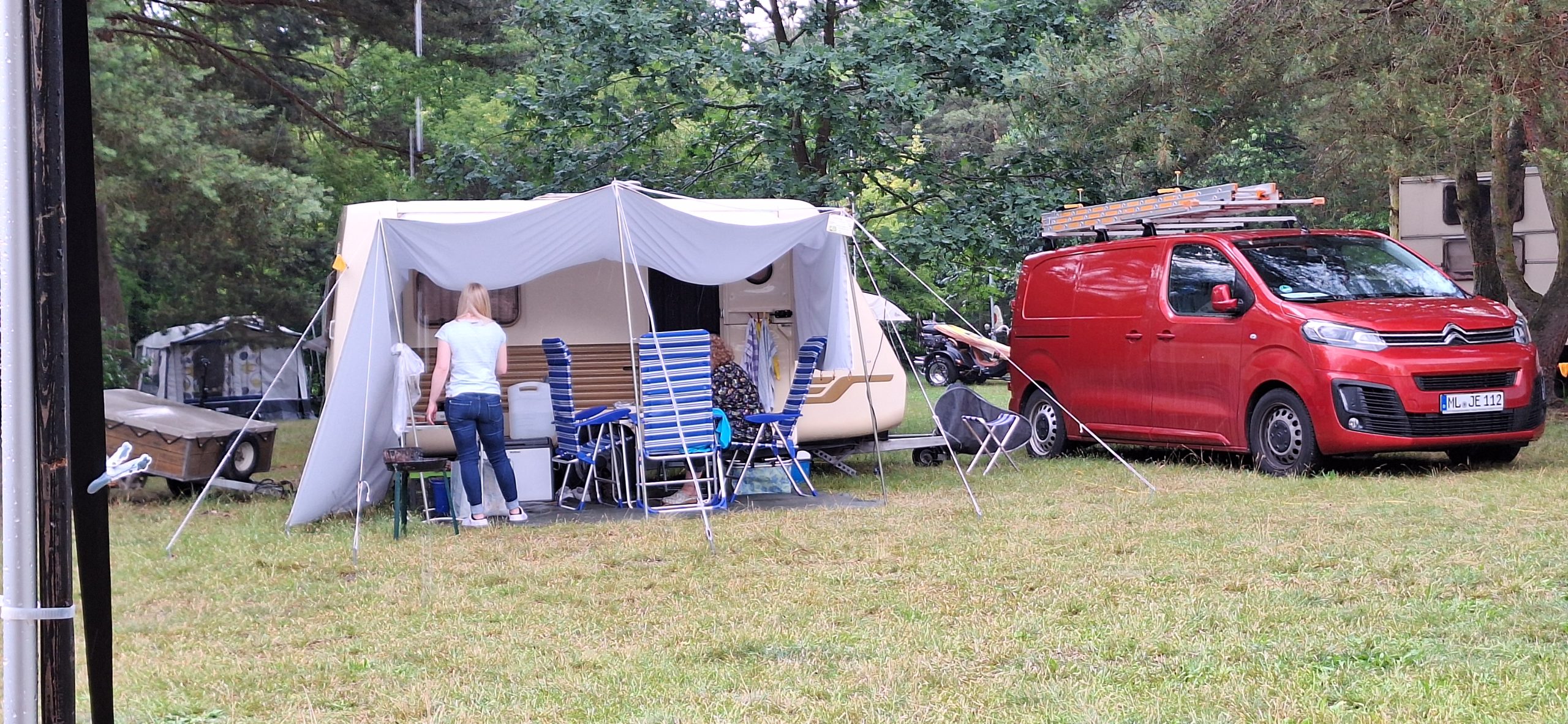Beim gemeinsamen Frühtück haben wir das originellste Gespann prämiert. So konnte Micha mit dem Trabbi-Kübel und dem passenden Qek einen prima Liegestuhl, gesponsert von www.elbe-caravan.de, in Empfang nehmen