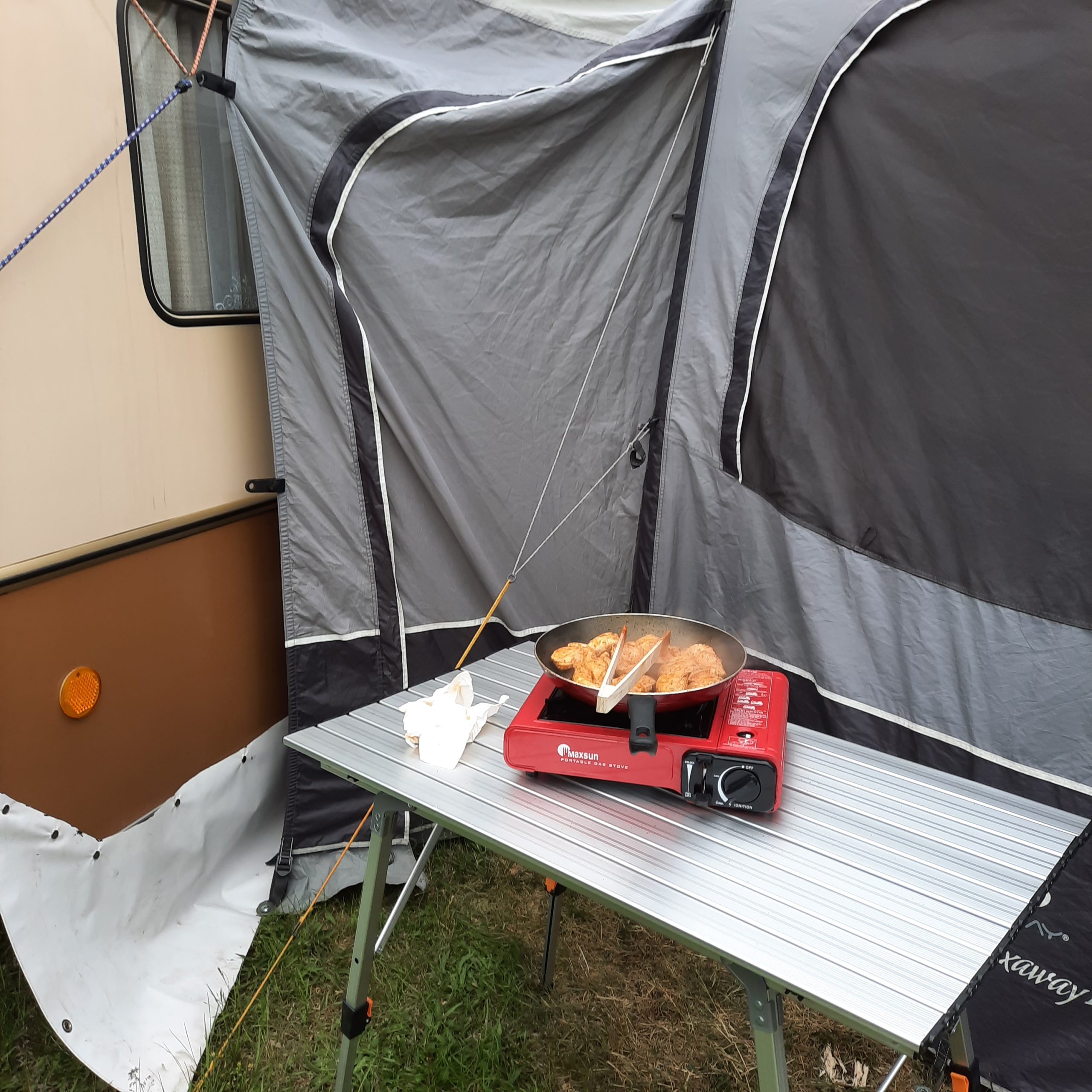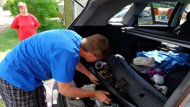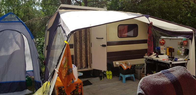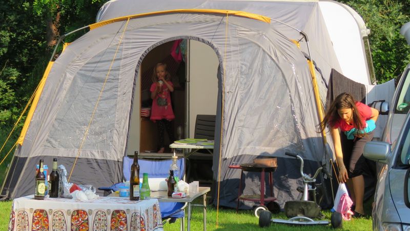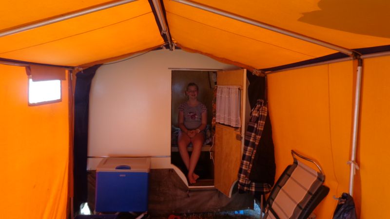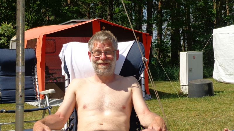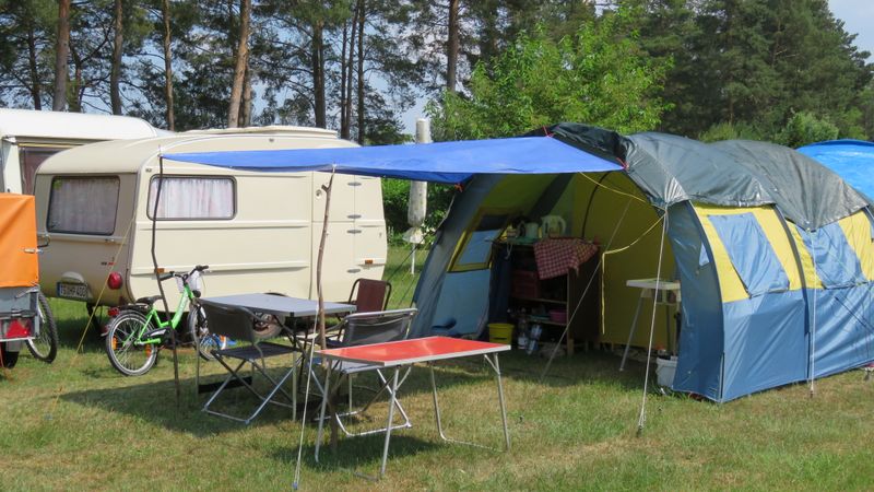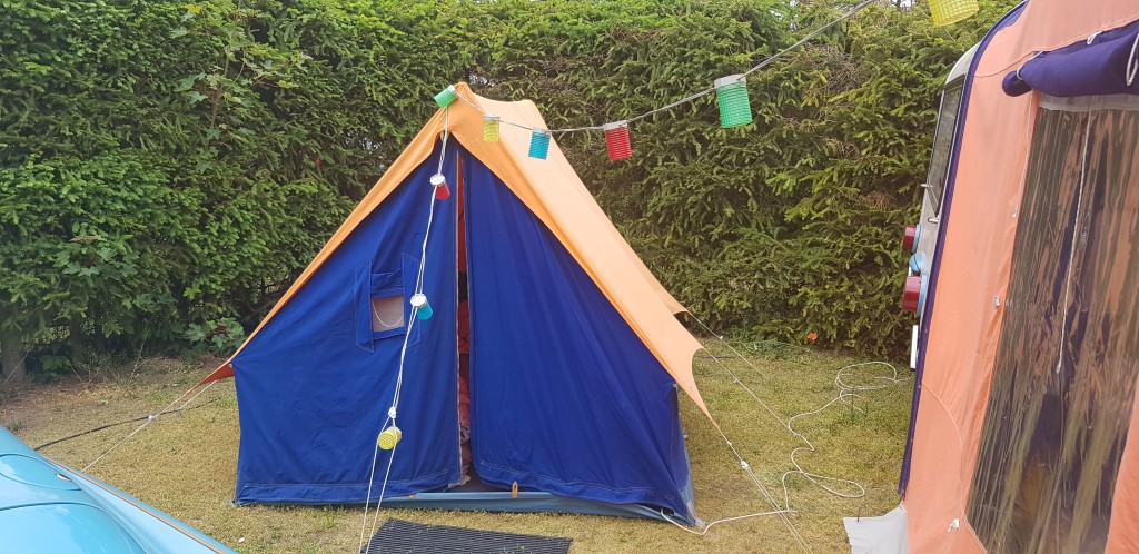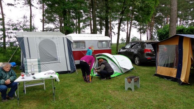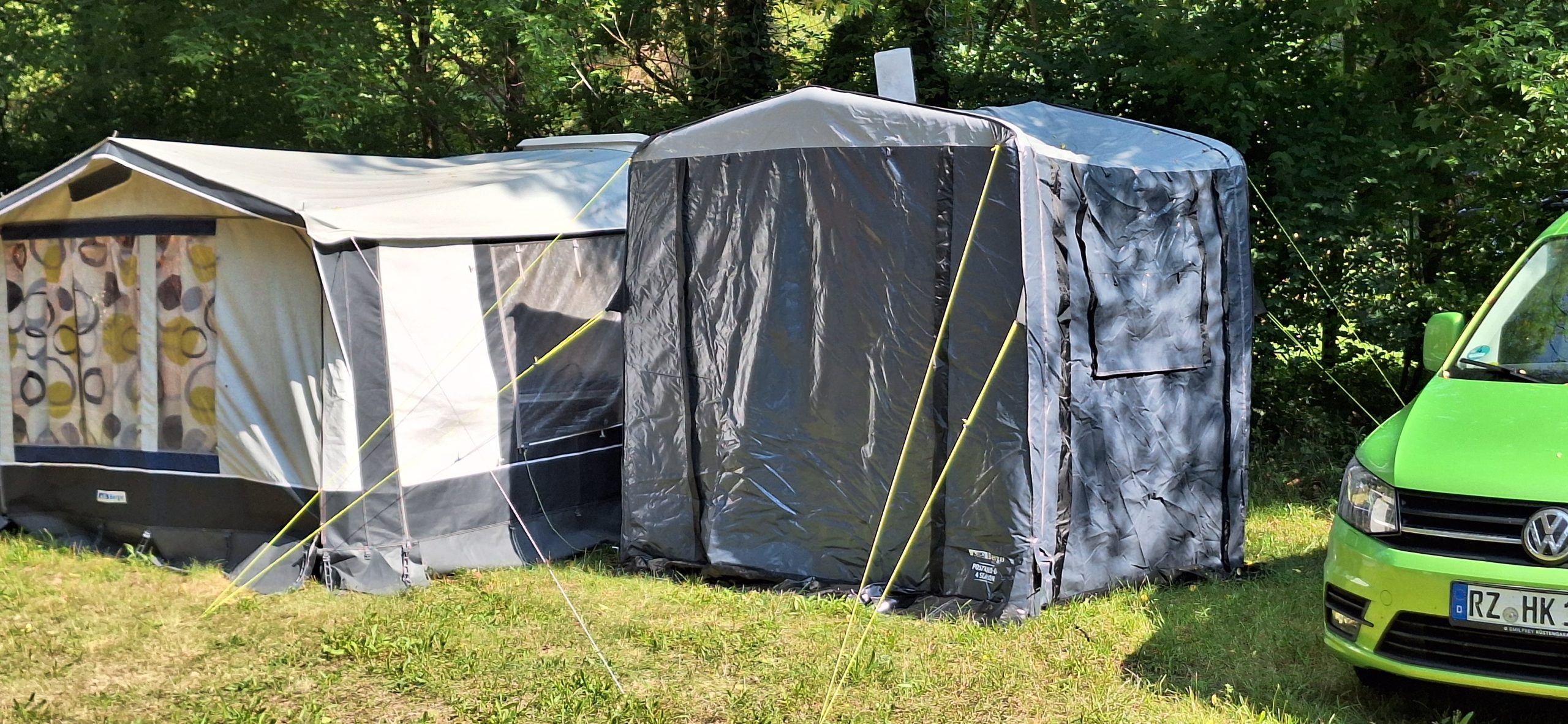 Ein Zelt wechselt den Besitzer. Nach den anfänglich kläglich scheinenden Aufbauversuchern wurde dann doch noch ein Zelt daraus.