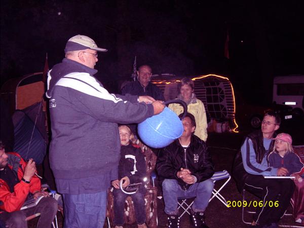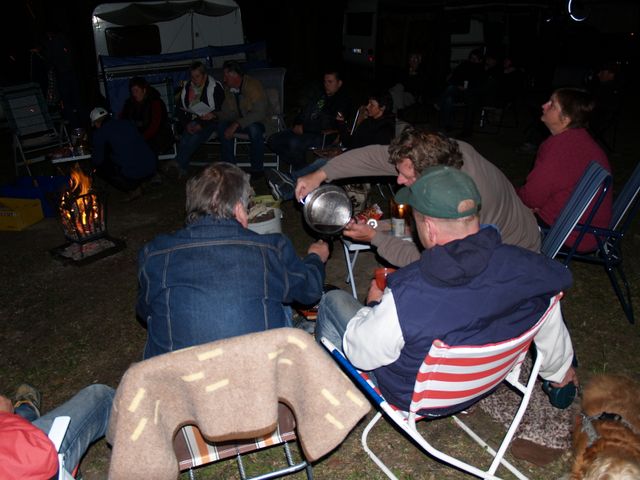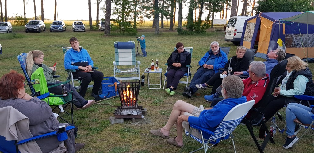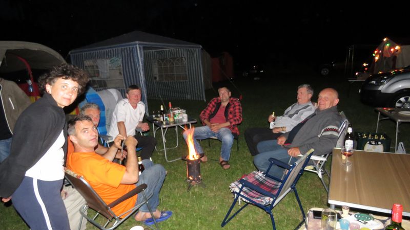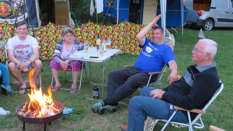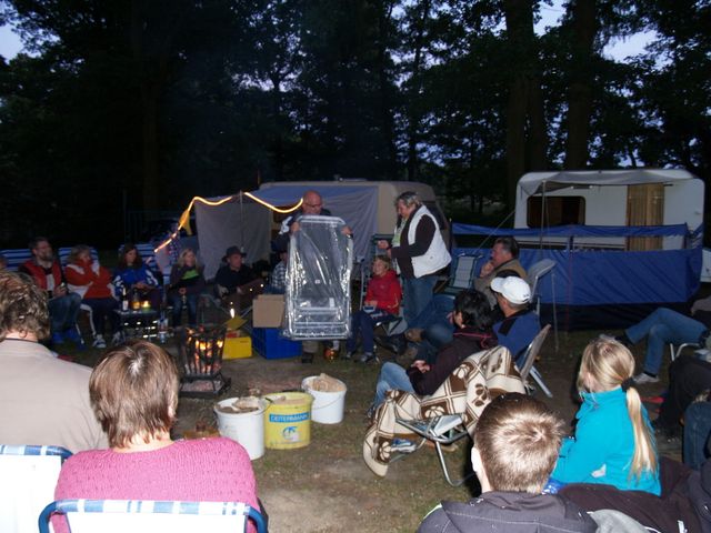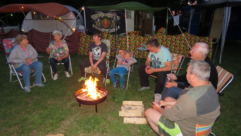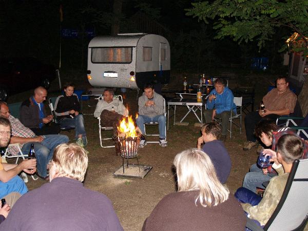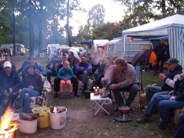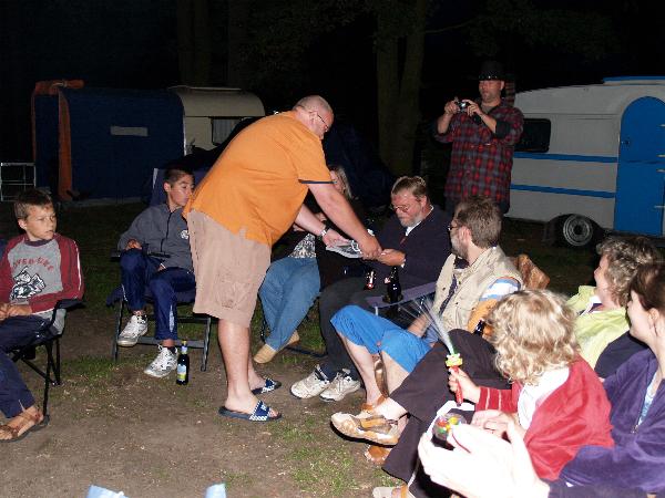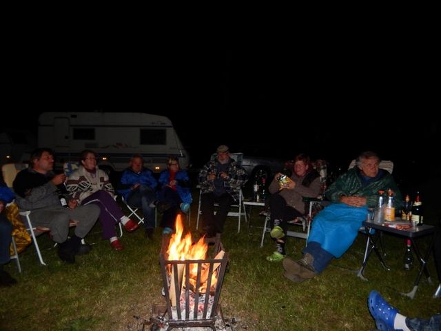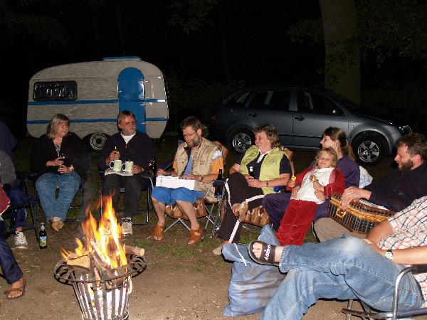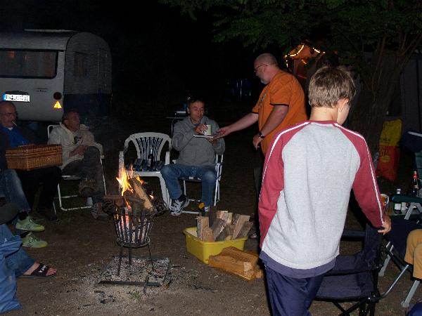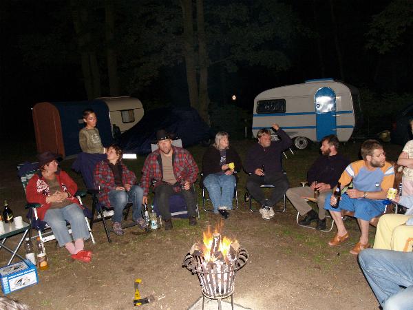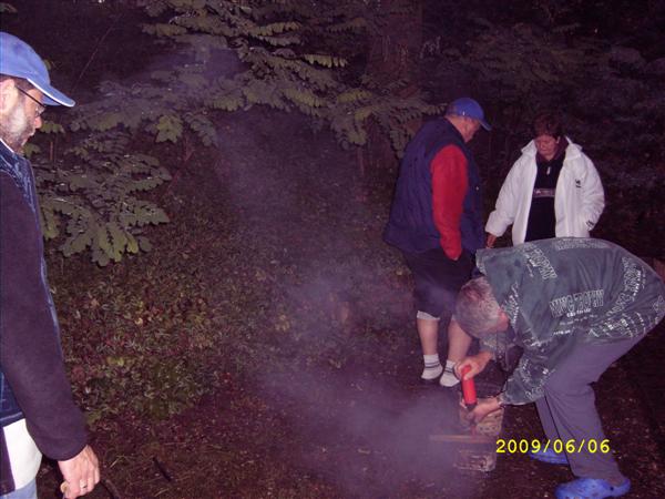 Am Feuer wurde dann weiter geredet und gesungen, spätestens jetzt kennen alle den Holzmichel. Walter und Bernd sorgten mit Ihrer kleinen Showeinlage für gute Stimmung.