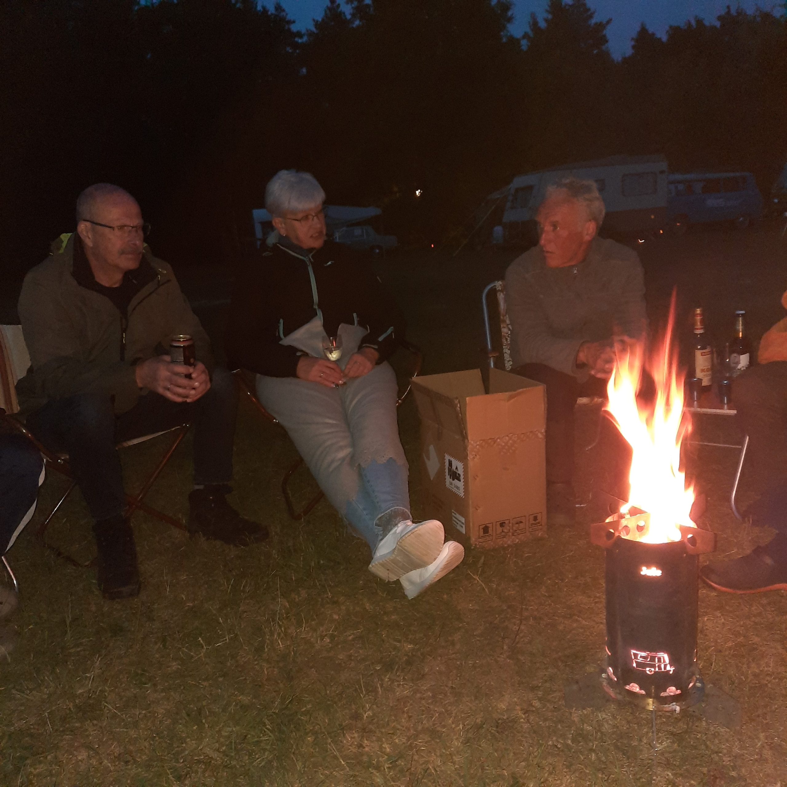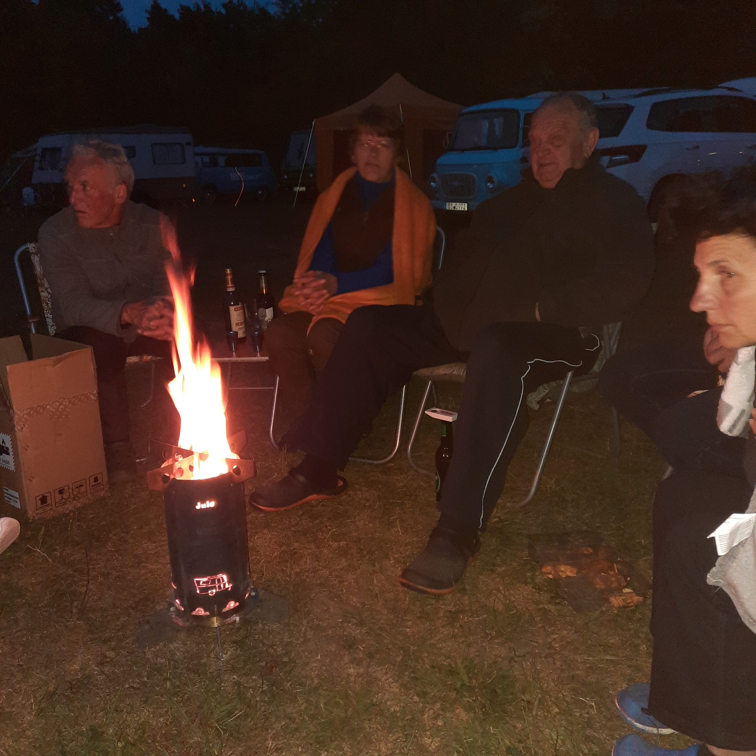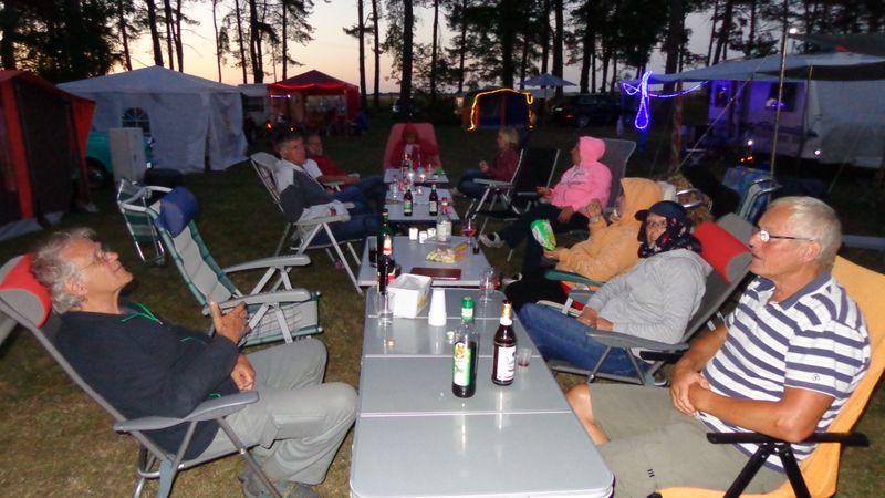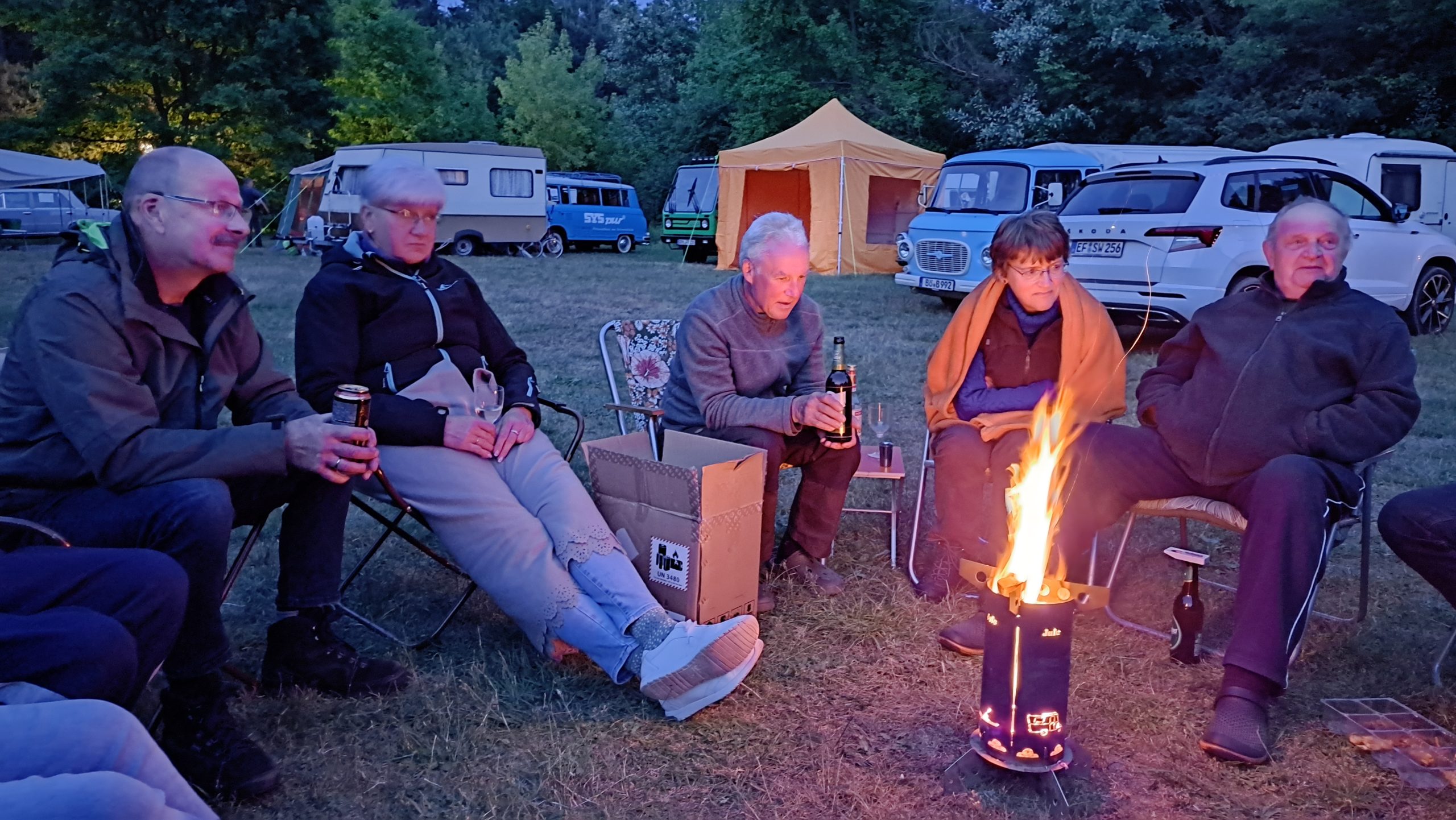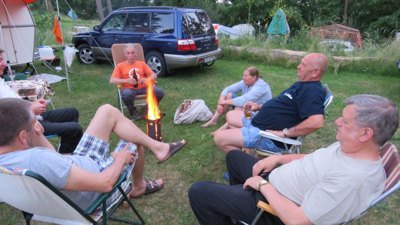 Am Feuer wurde dann weiter geredet und gesungen, spätestens jetzt kennen alle den Holzmichel. Walter und Bernd sorgten mit Ihrer kleinen Showeinlage für gute Stimmung.