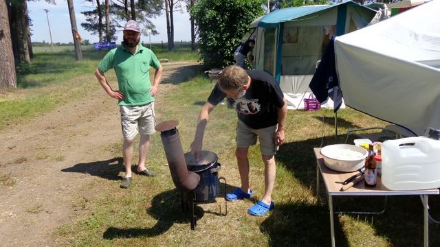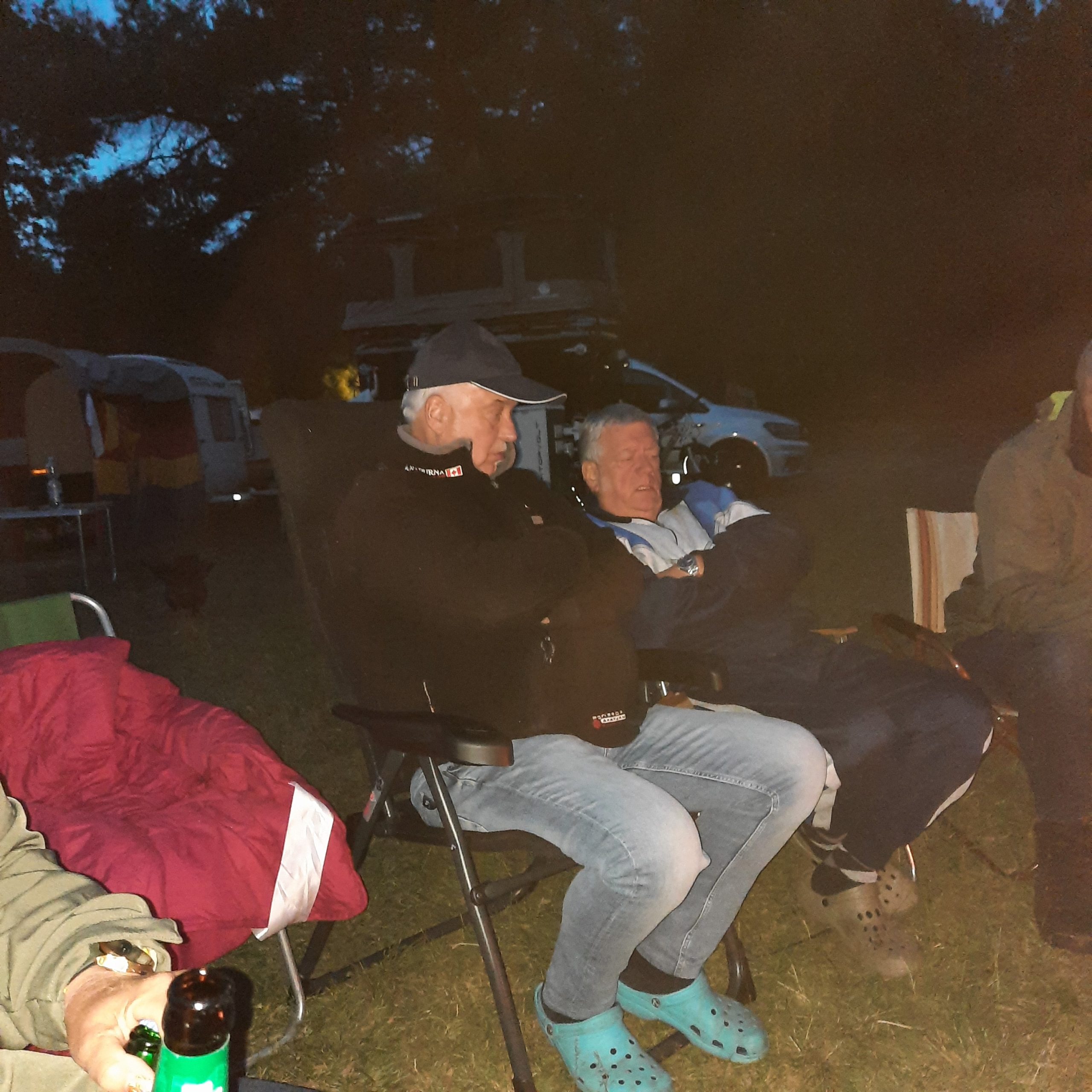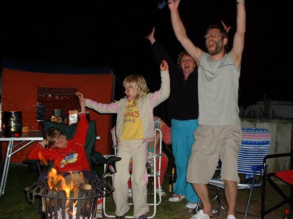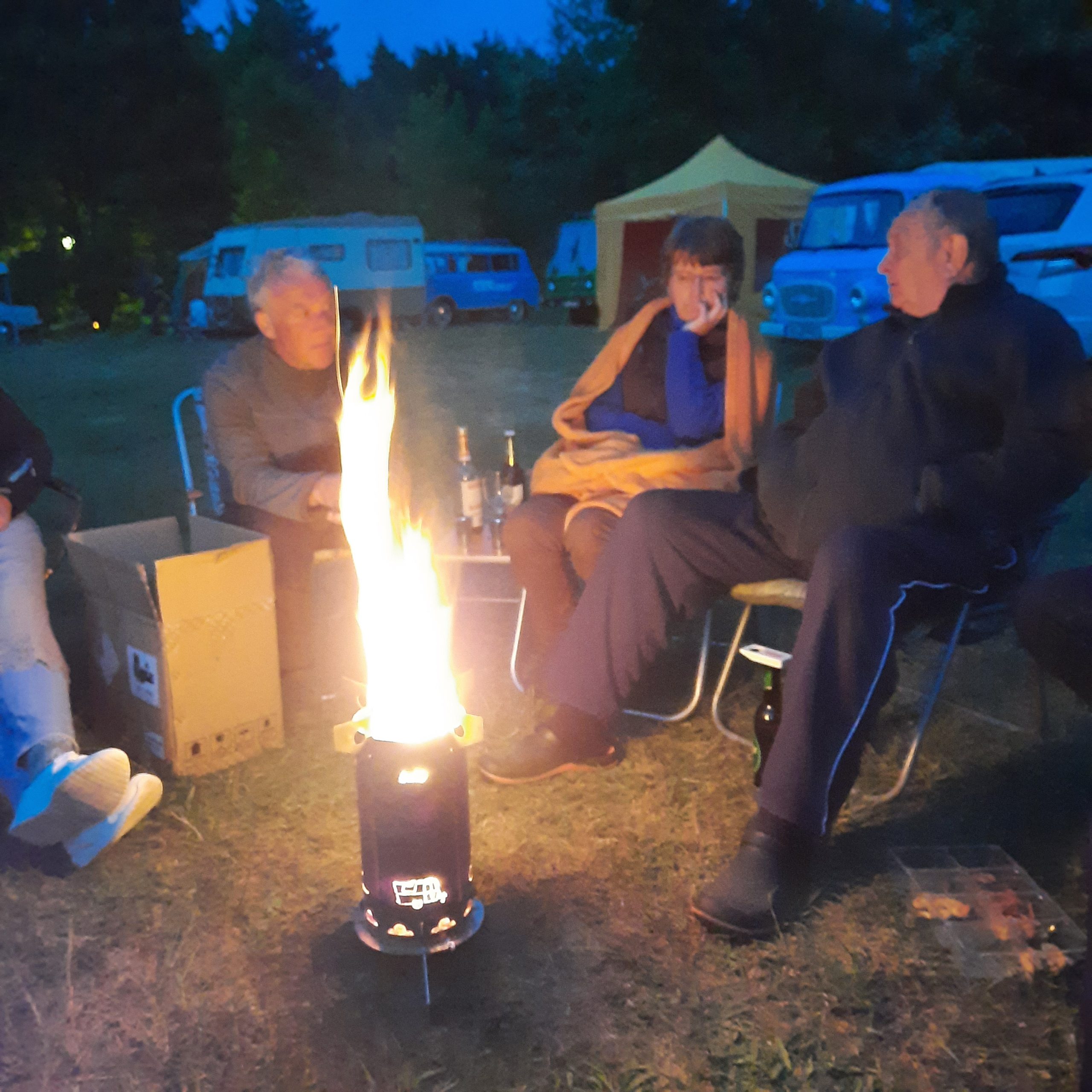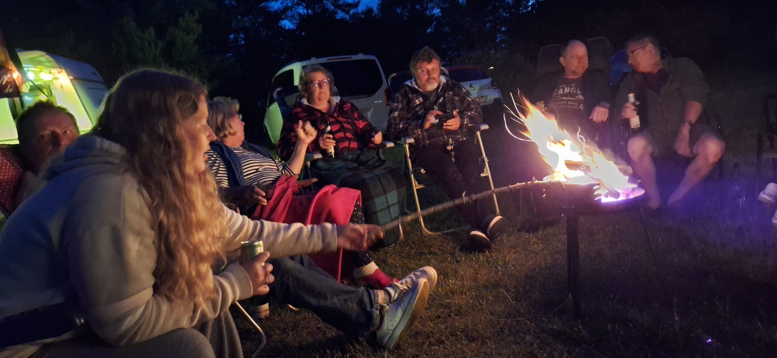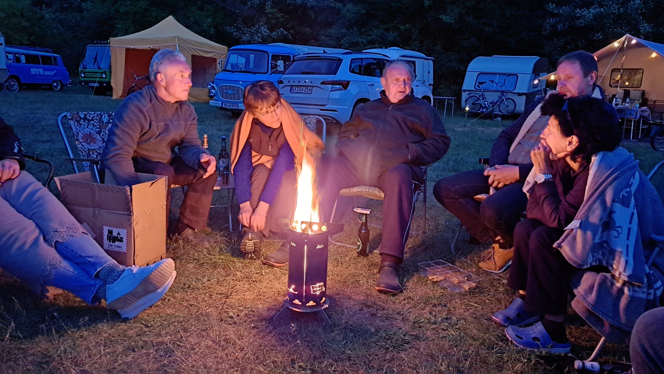 Am Feuer wurde dann weiter geredet und gesungen, spätestens jetzt kennen alle den Holzmichel. Walter und Bernd sorgten mit Ihrer kleinen Showeinlage für gute Stimmung.