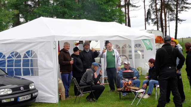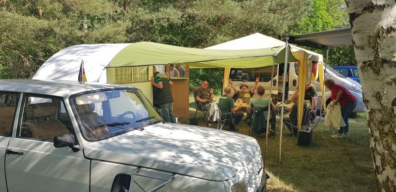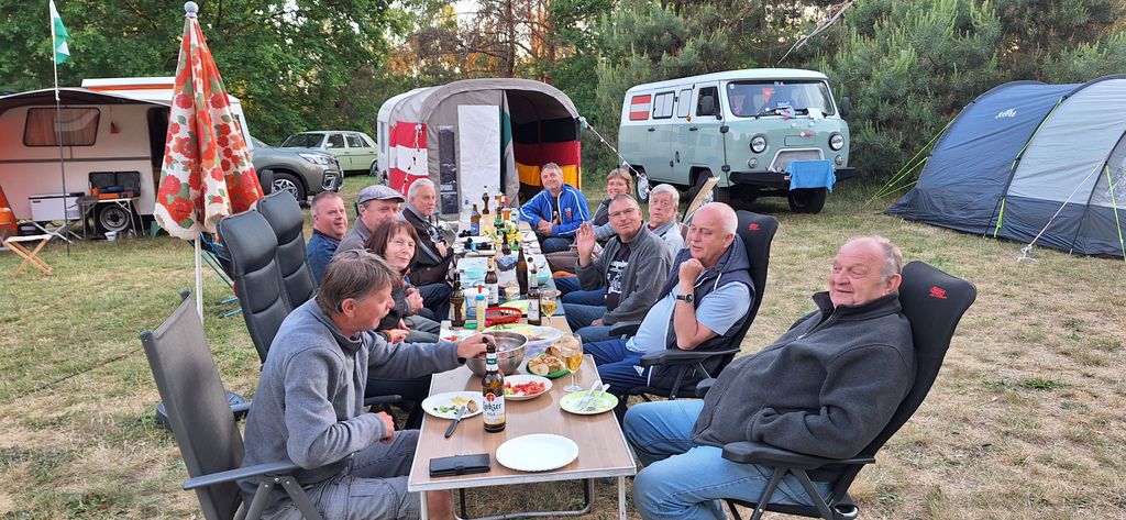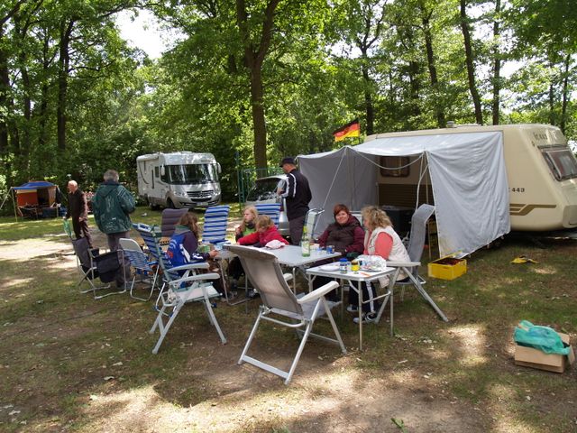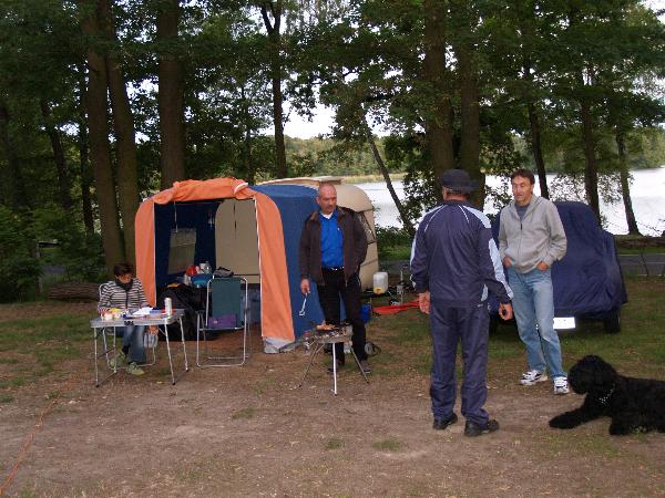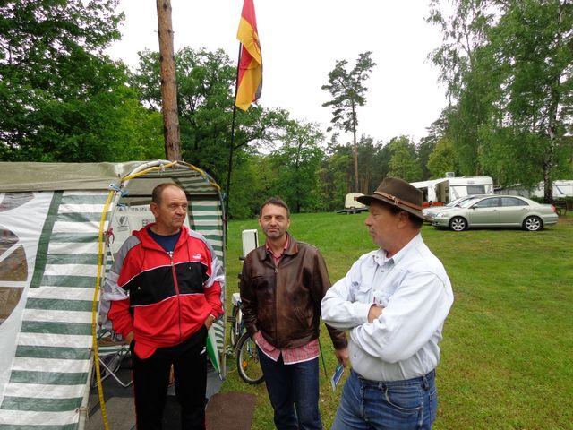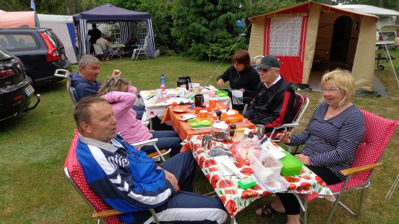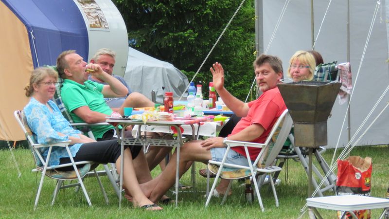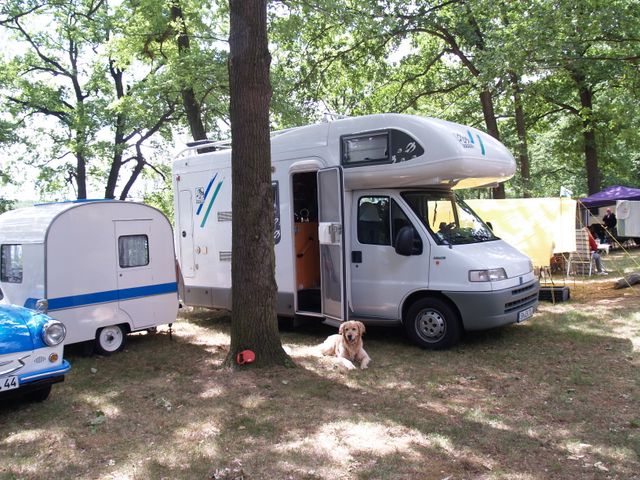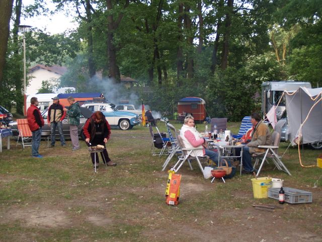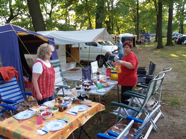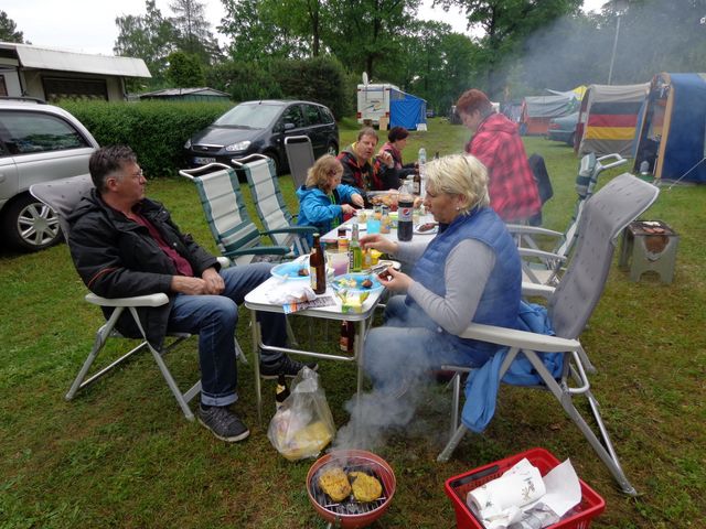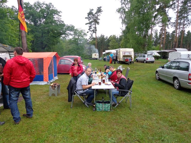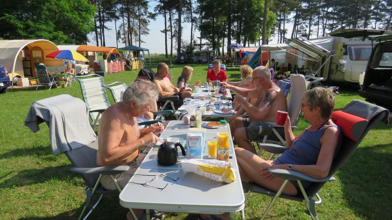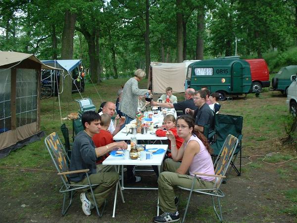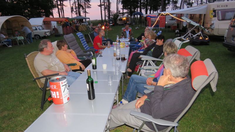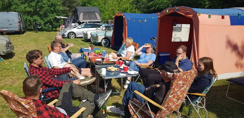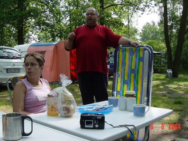 unser gemeinsames Frühstück, schön das alle dabei waren. Da haben wir dann auch gleich das originellste Gespann prämiert. So konnte Micha mit dem Trabbi-Kübel und dem passenden Qek einen prima Liegestuhl, gesponsert von www.elbe-caravan.de, in Empfang nehmen