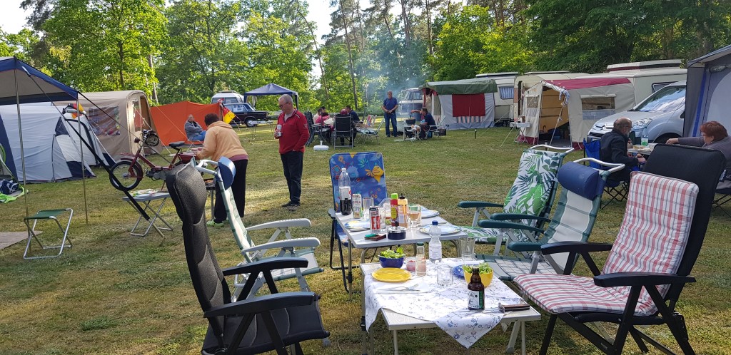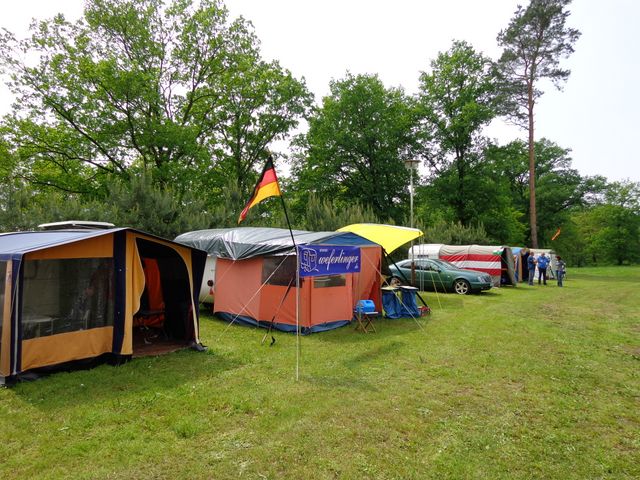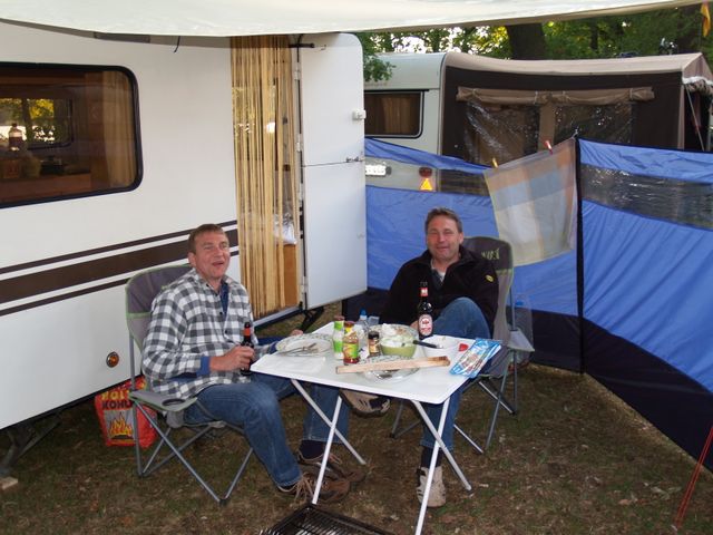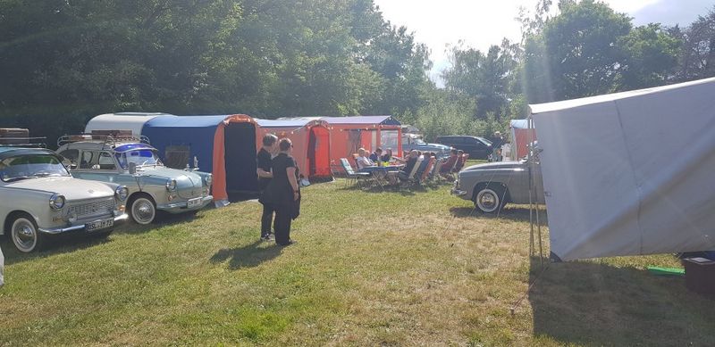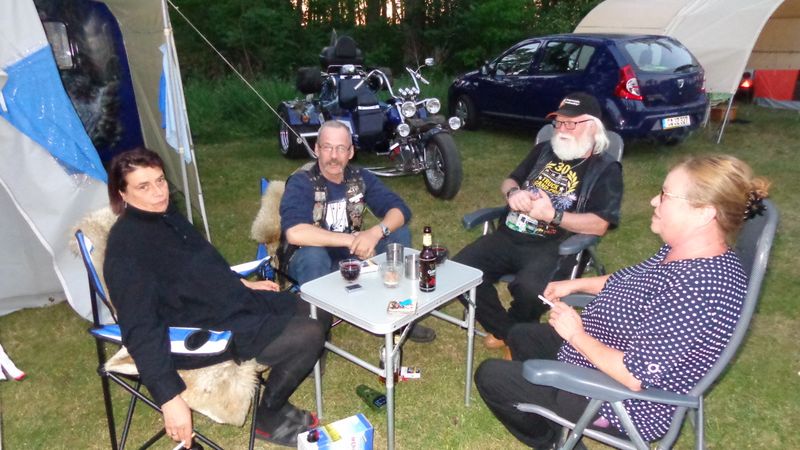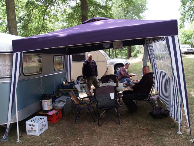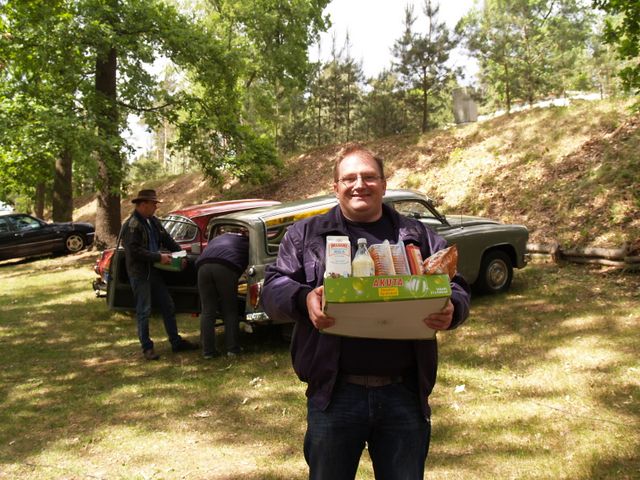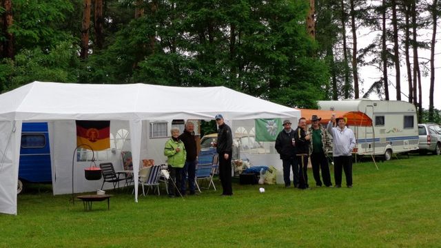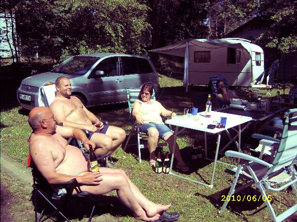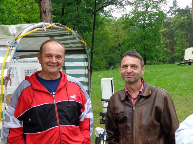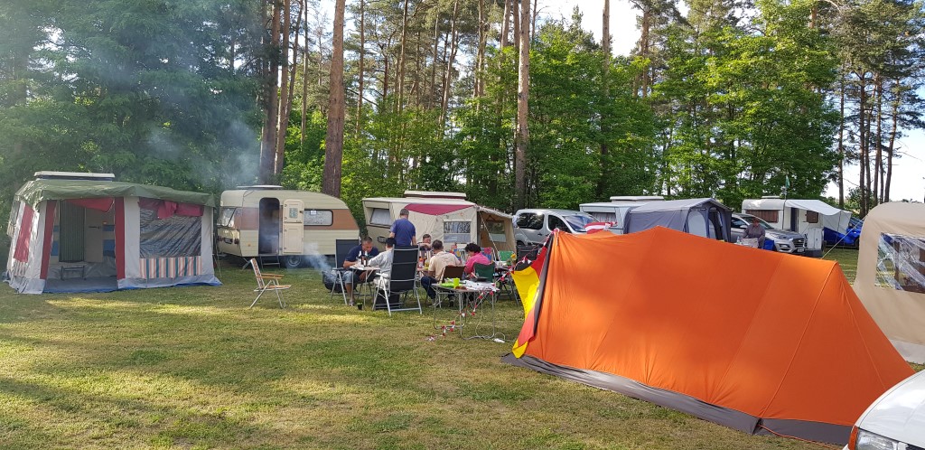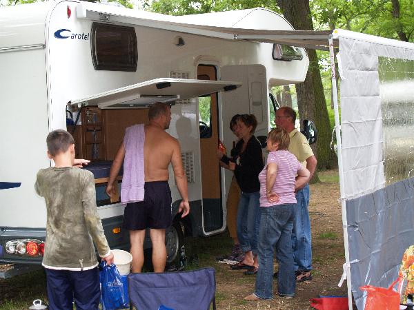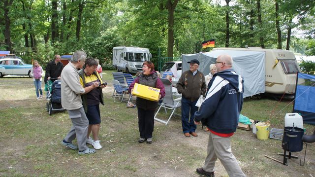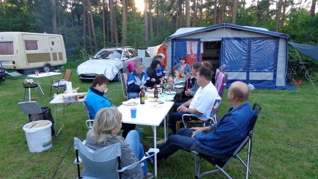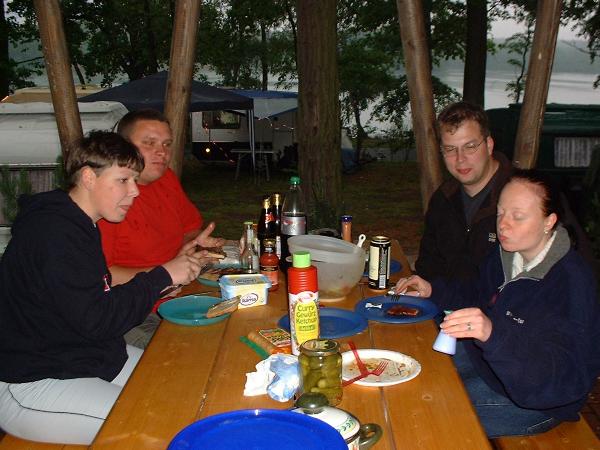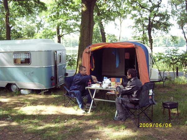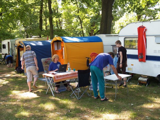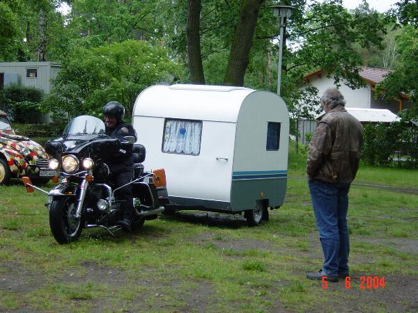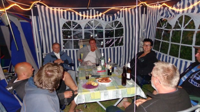 unser gemeinsames Frühstück, schön das alle dabei waren. Da haben wir dann auch gleich das originellste Gespann prämiert. So konnte Micha mit dem Trabbi-Kübel und dem passenden Qek einen prima Liegestuhl, gesponsert von www.elbe-caravan.de, in Empfang nehmen