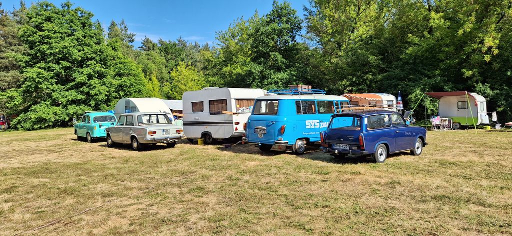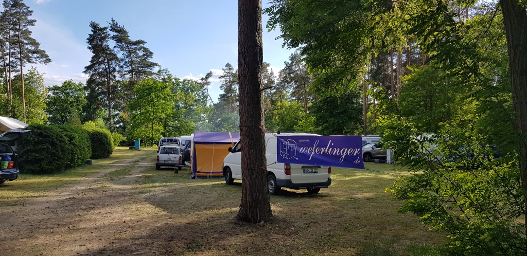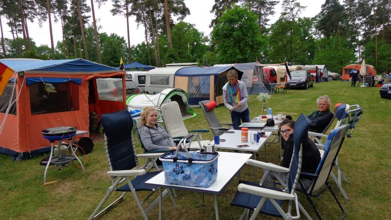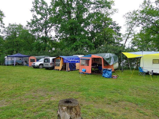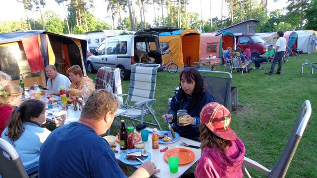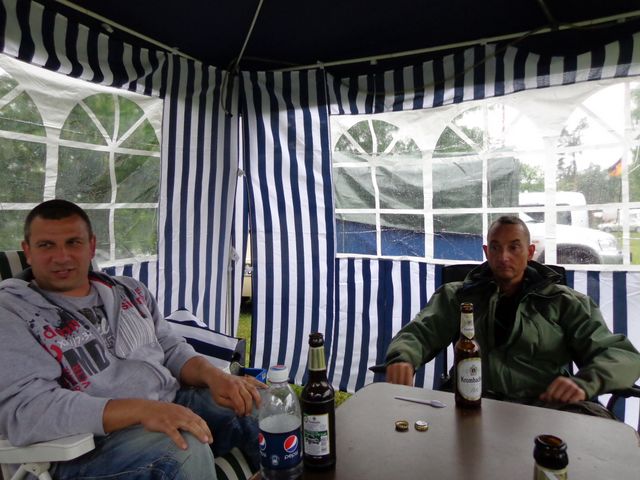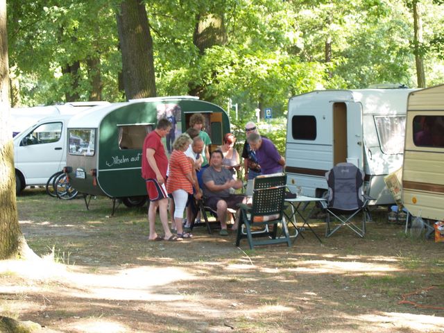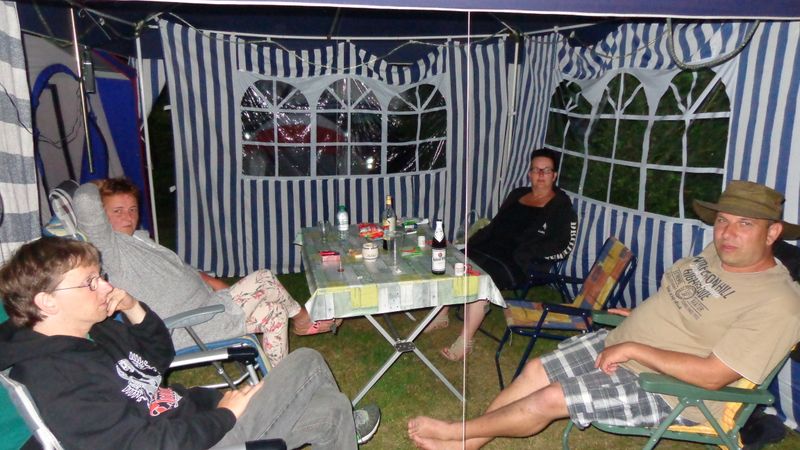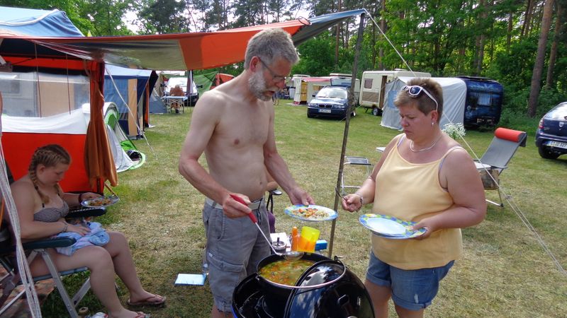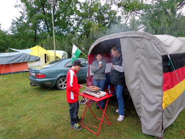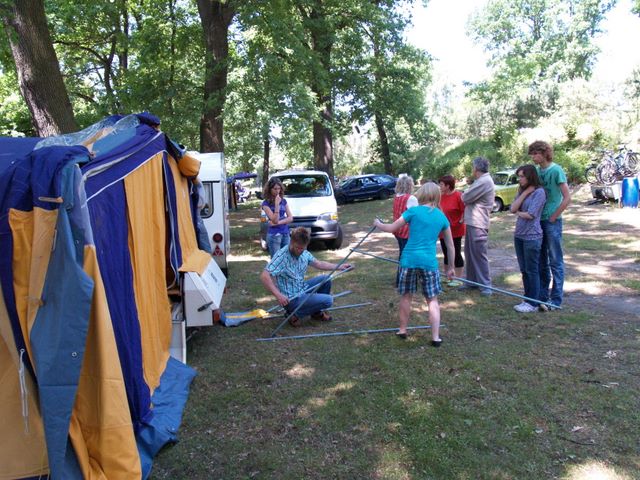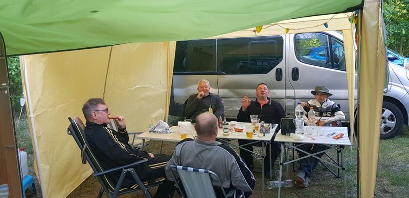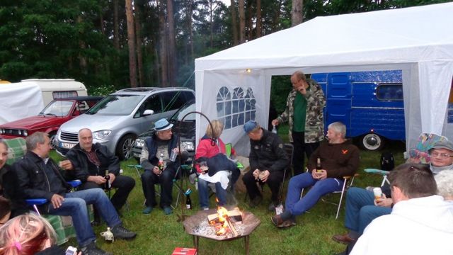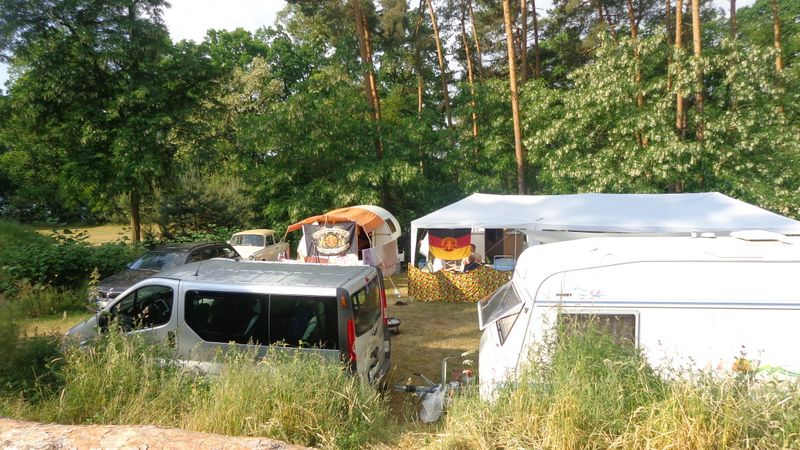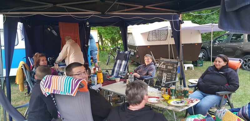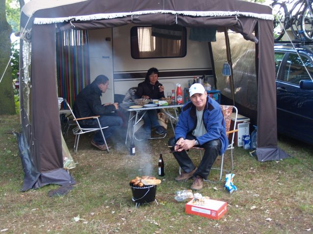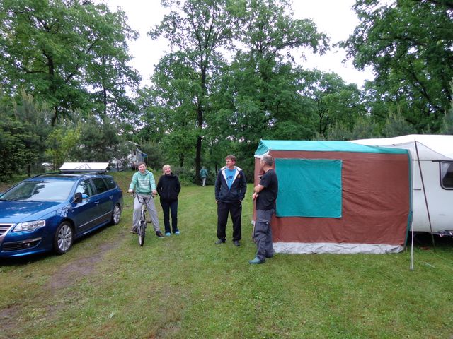unser gemeinsames Frühstück, schön das alle dabei waren. Da haben wir dann auch gleich das originellste Gespann prämiert. So konnte Micha mit dem Trabbi-Kübel und dem passenden Qek einen prima Liegestuhl, gesponsert von www.elbe-caravan.de, in Empfang nehmen