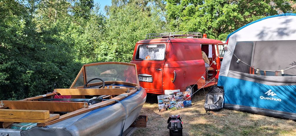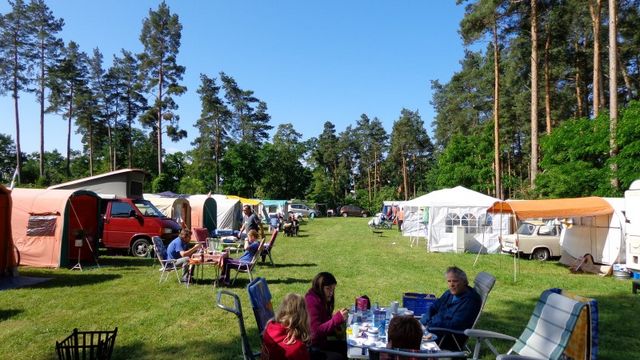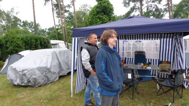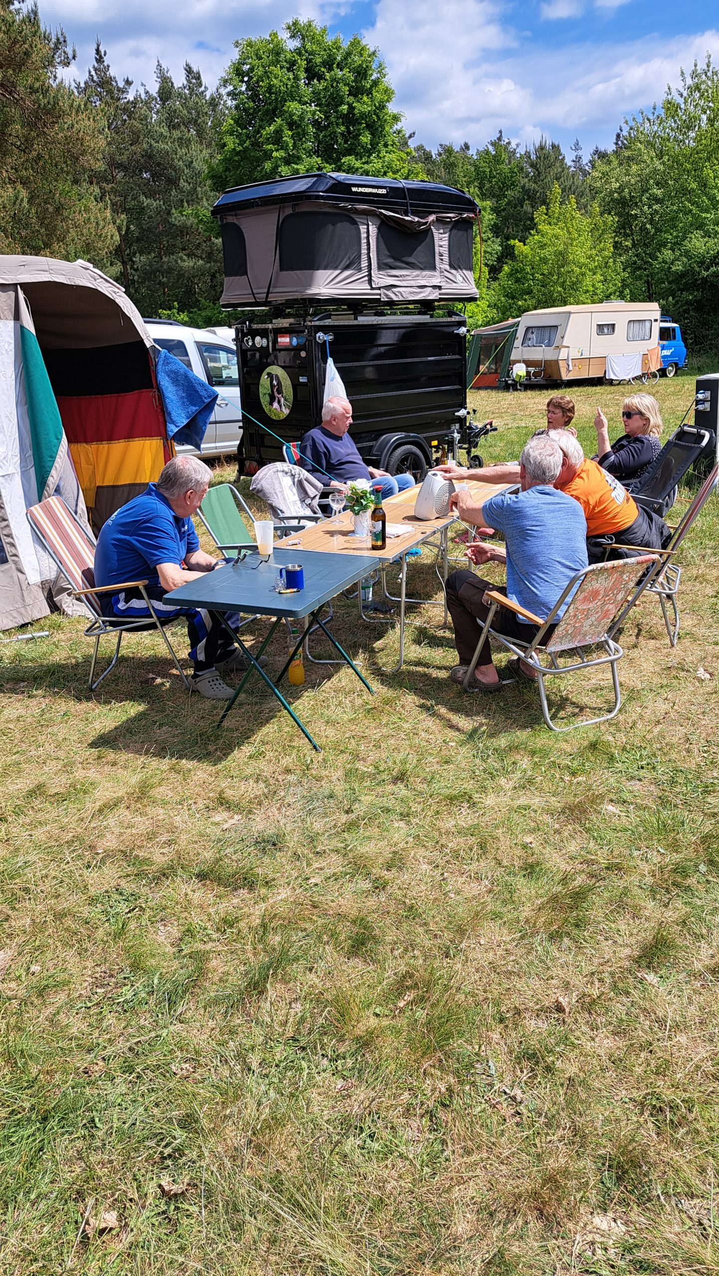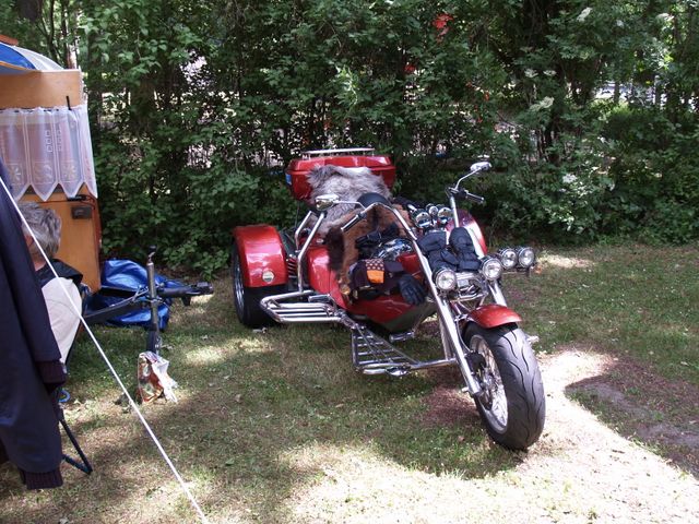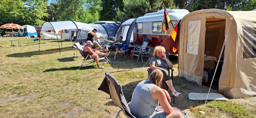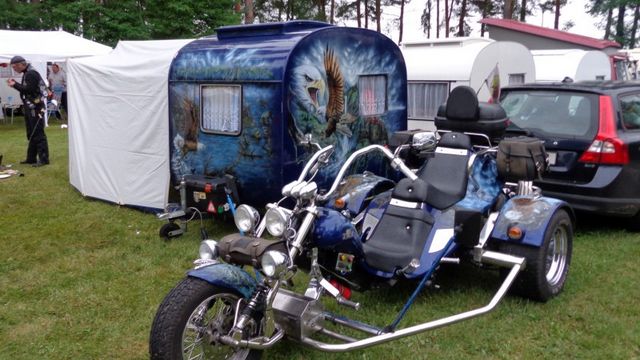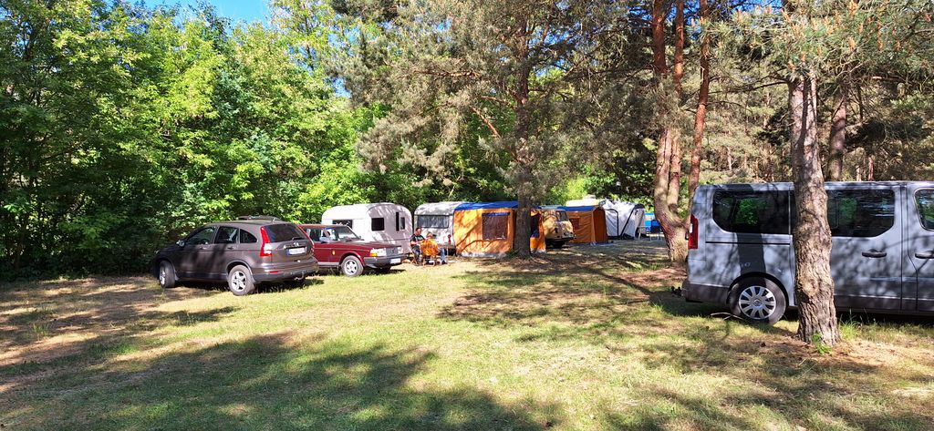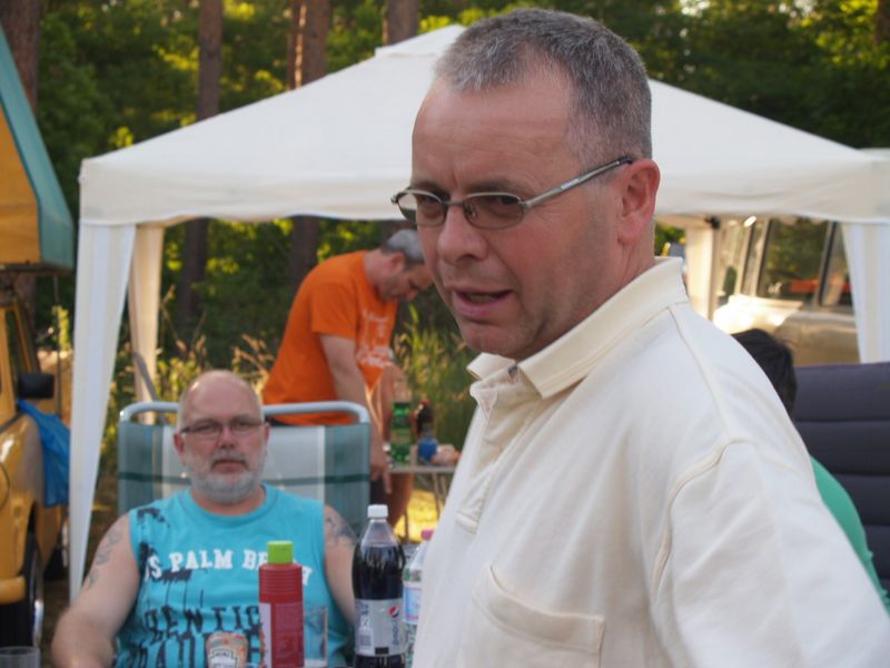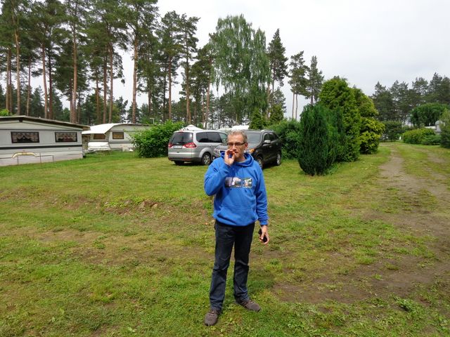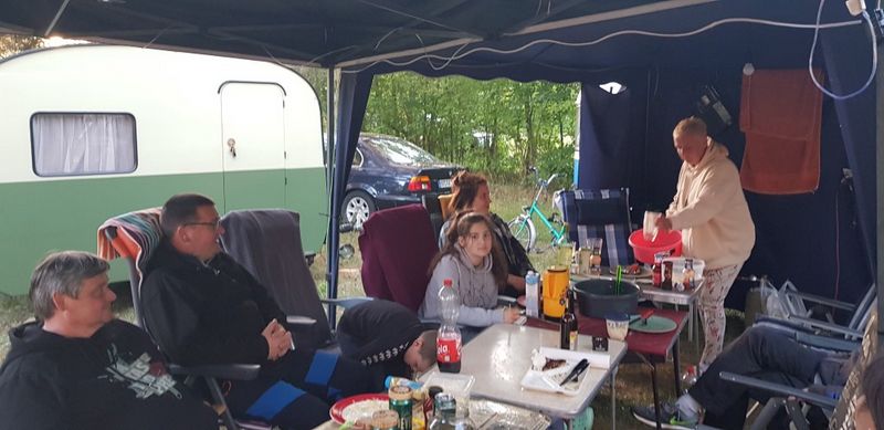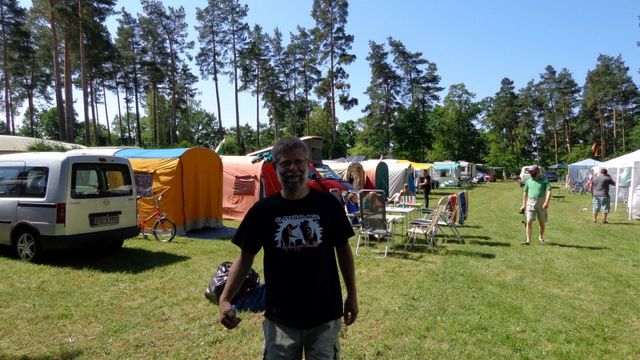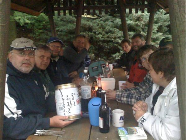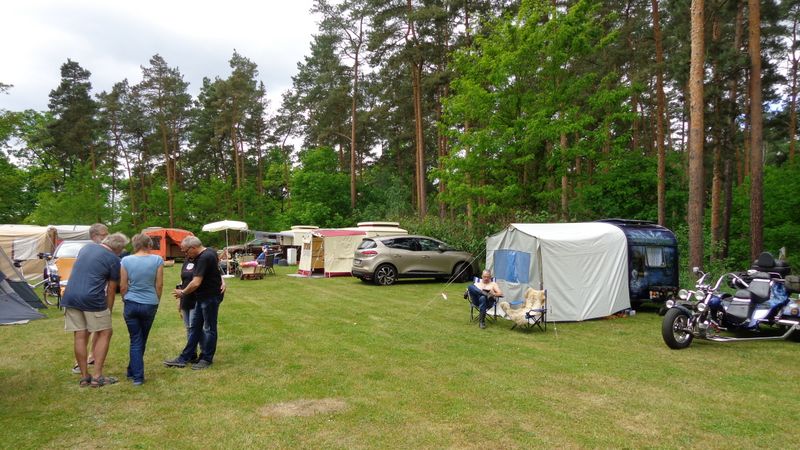 unser gemeinsames Frühstück, schön das alle dabei waren. Da haben wir dann auch gleich das originellste Gespann prämiert. So konnte Micha mit dem Trabbi-Kübel und dem passenden Qek einen prima Liegestuhl, gesponsert von www.elbe-caravan.de, in Empfang nehmen