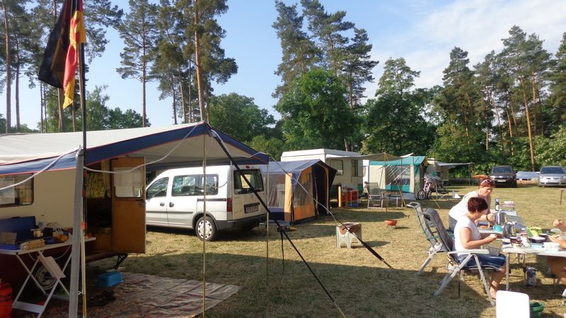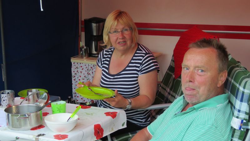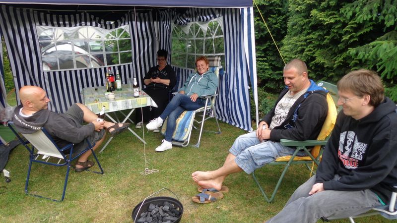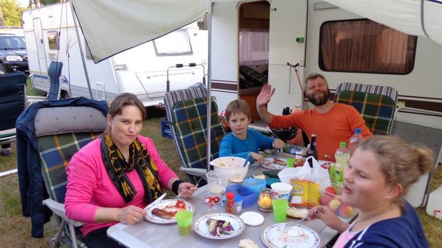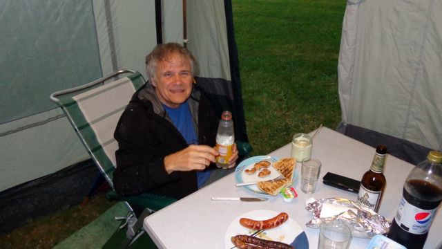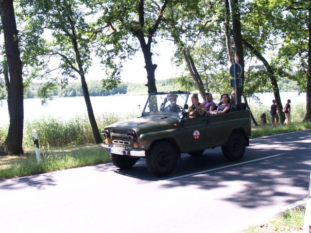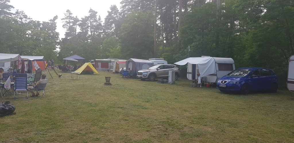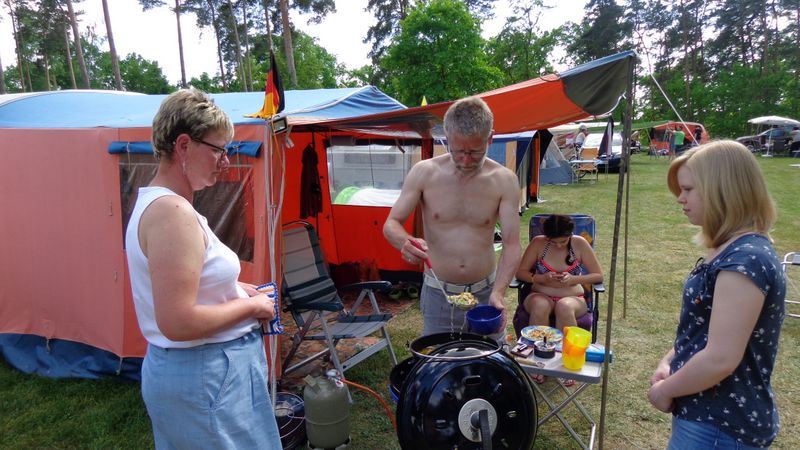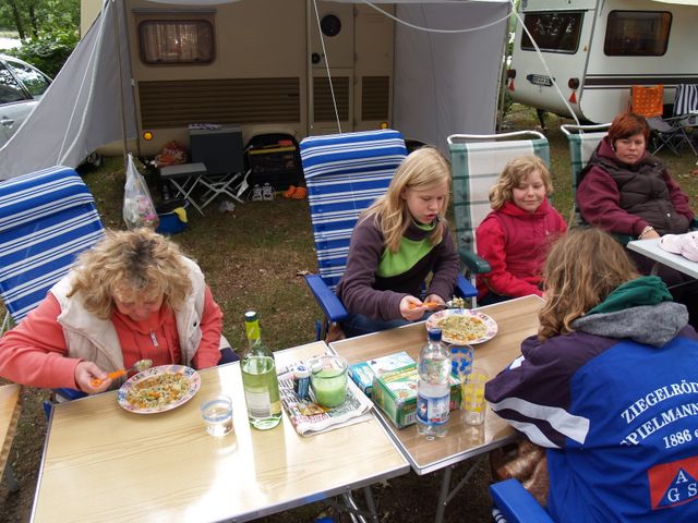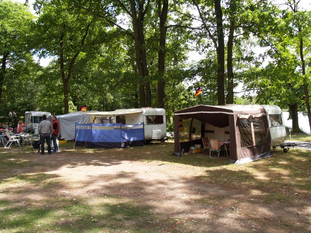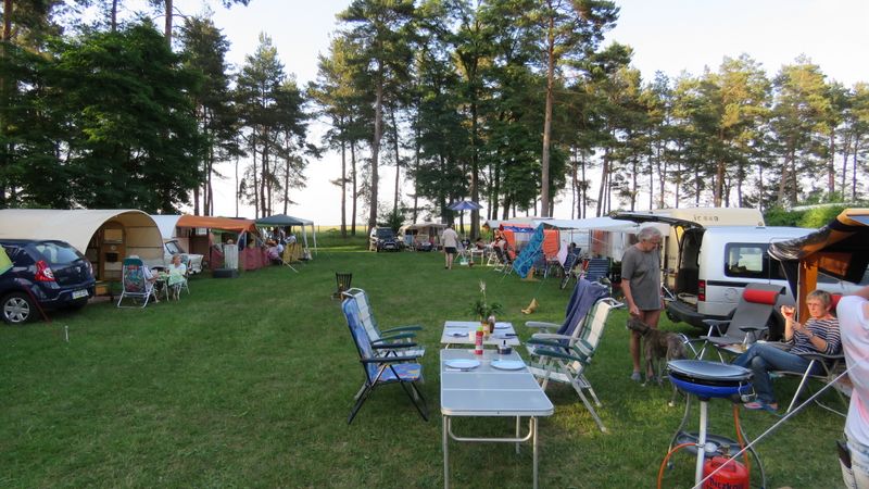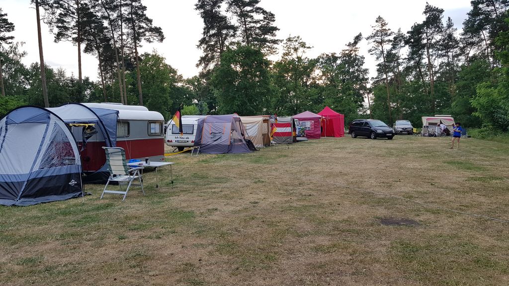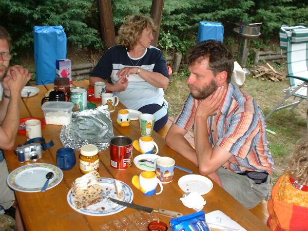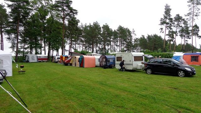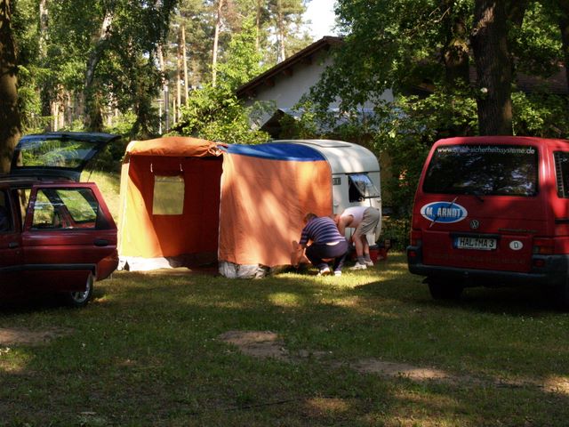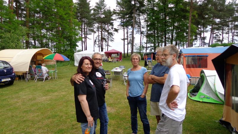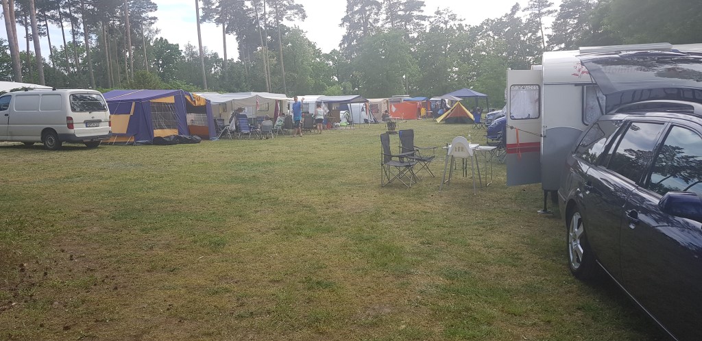 unser gemeinsames Frühstück, schön das alle dabei waren. Da haben wir dann auch gleich das originellste Gespann prämiert. So konnte Micha mit dem Trabbi-Kübel und dem passenden Qek einen prima Liegestuhl, gesponsert von www.elbe-caravan.de, in Empfang nehmen