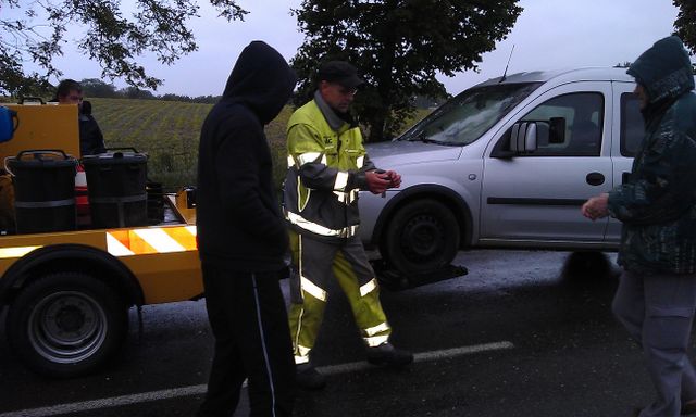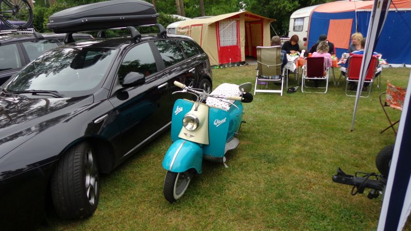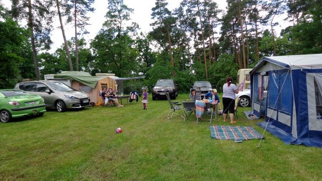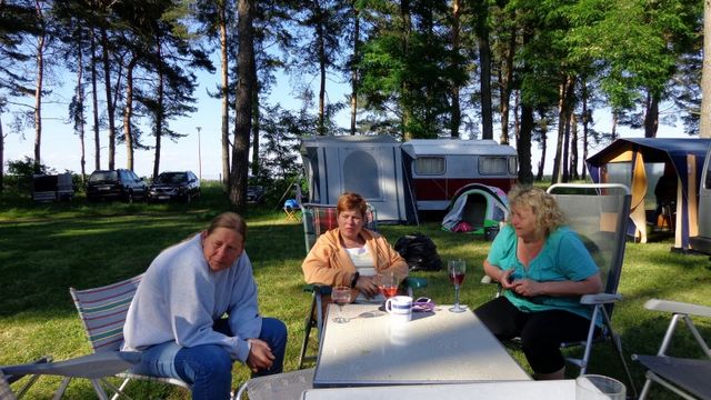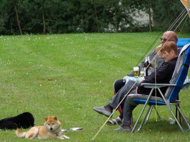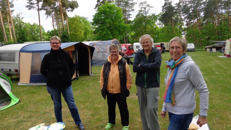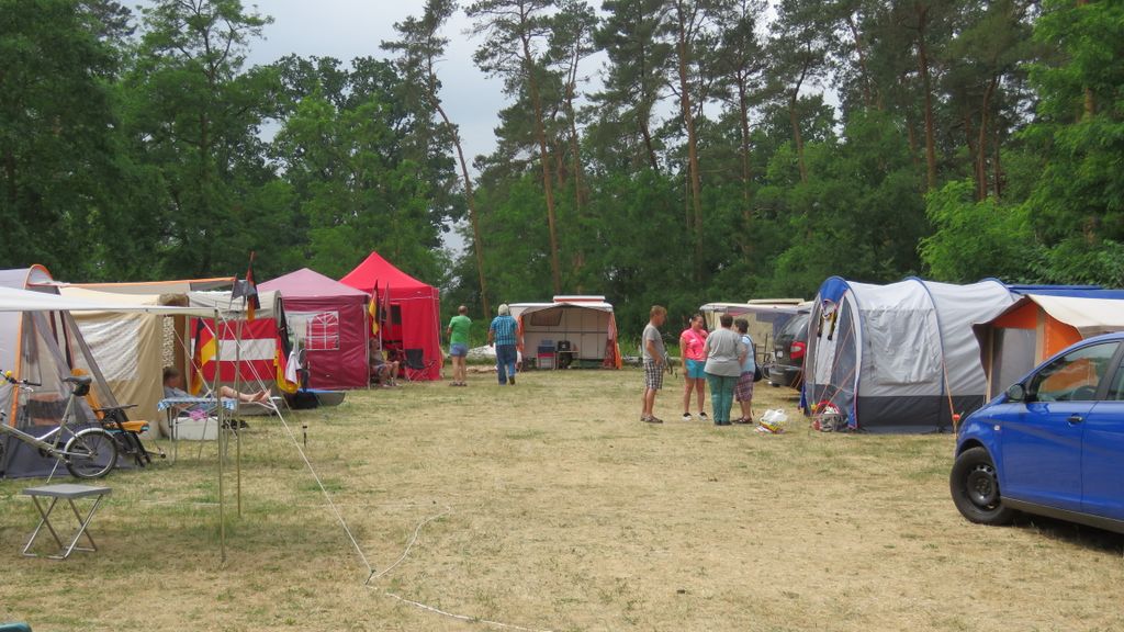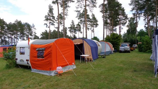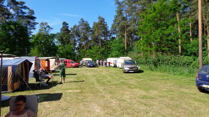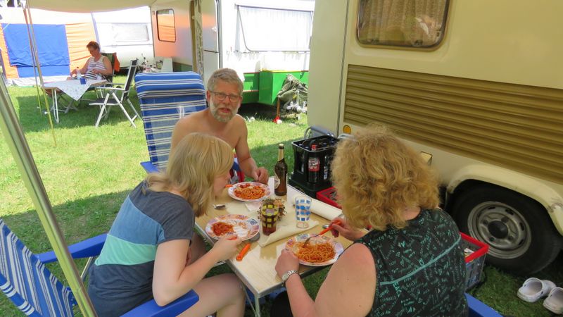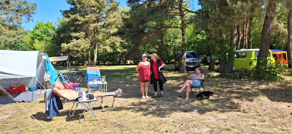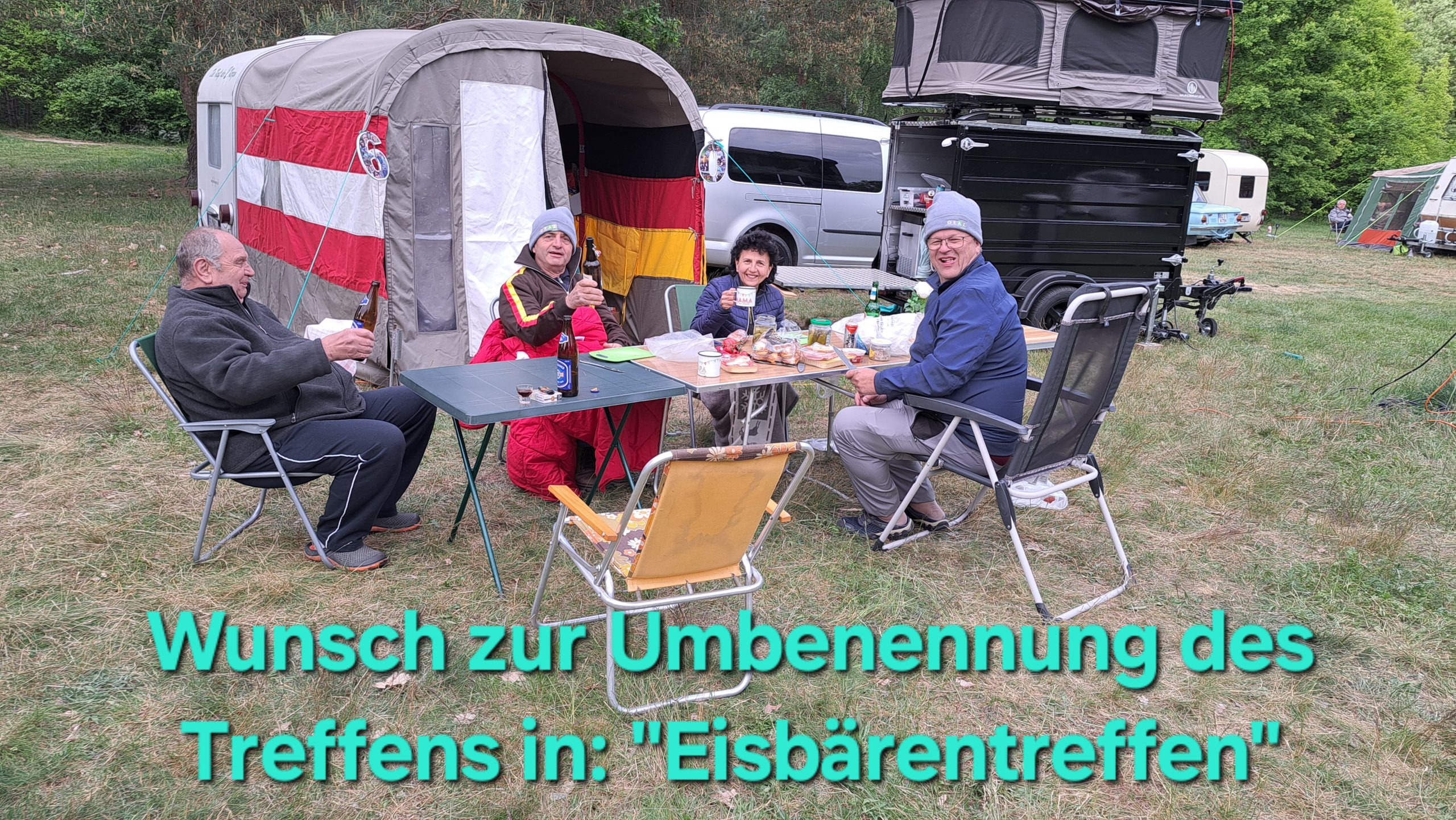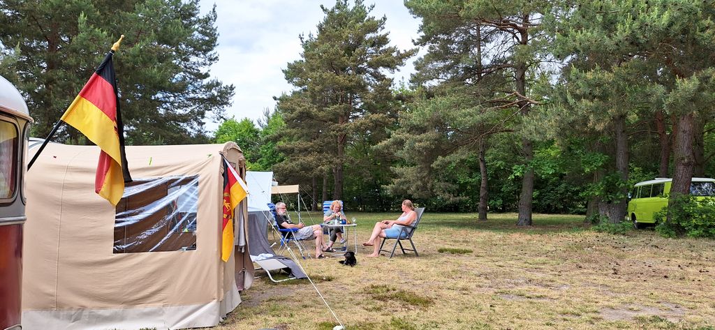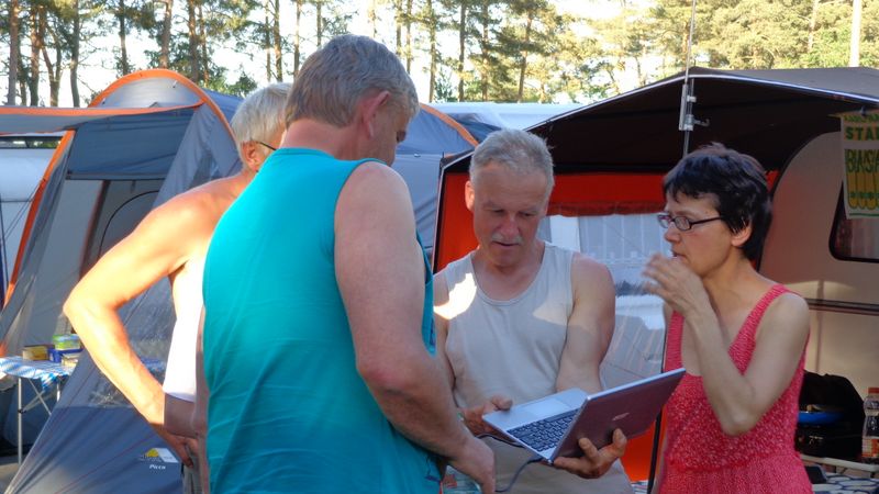 unser gemeinsames Frühstück, schön das alle dabei waren. Da haben wir dann auch gleich das originellste Gespann prämiert. So konnte Micha mit dem Trabbi-Kübel und dem passenden Qek einen prima Liegestuhl, gesponsert von www.elbe-caravan.de, in Empfang nehmen