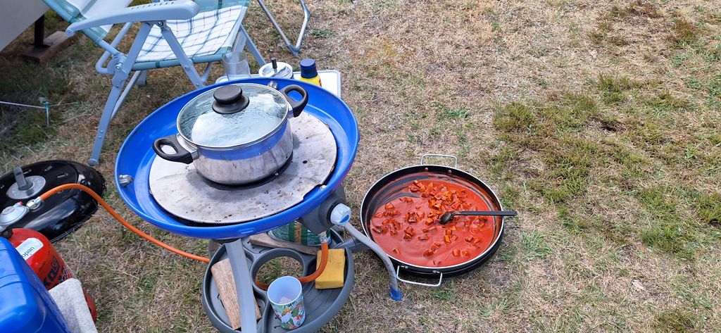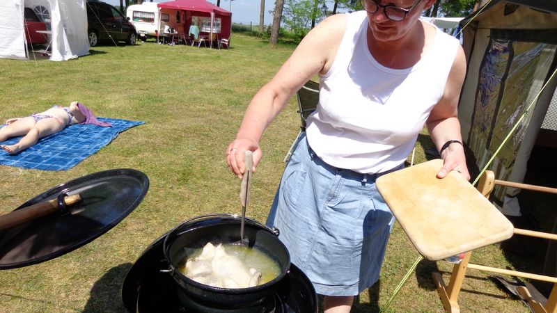 Auch das leibliche Wohl kam nicht zu kurz. Jeder konnte seine mitgebrachten Delikatessen selbst grillen und natürlich auch mal von den anderen kosten. Veit und Sabine hatten für alle einen besonderen Leckerbissen vorbereitet, es gab gefüllte Pfirsiche mit Camembert und Preiselbeeren. Danke für Eure Mühe!